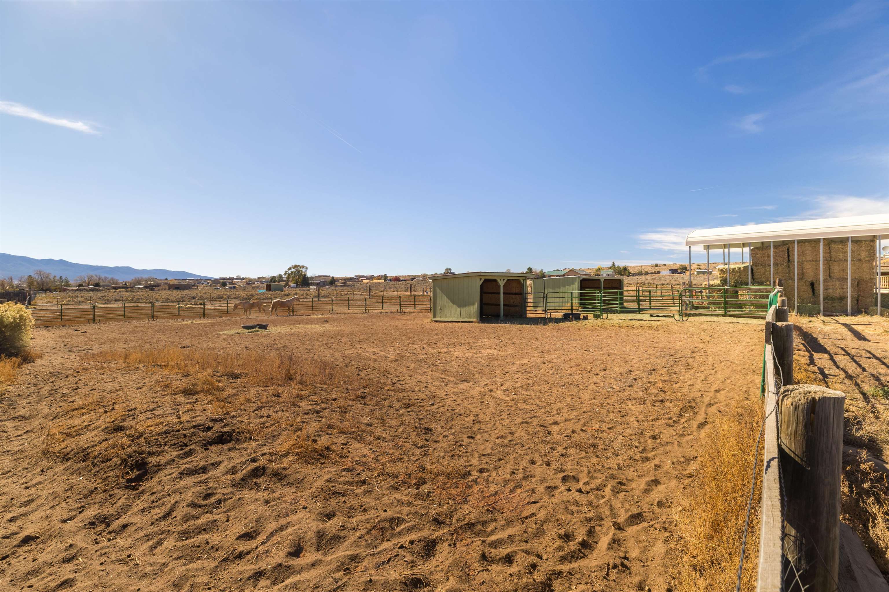 A Versatile Northern New Mexico Ranchette on 3.79 Acres Discover space, privacy, and boundless potential in this 3 bed / 2 bath home set on three separately deeded lots totaling 3.79 acres. With wide-open views, generous outdoor living, and a layout that adapts easily to your lifestyle, this property is ready for horses, hobbies, or your next creative venture. A welcoming home anchors the land, featuring a bright, comfortable floor plan and a wraparound deck on two sides—perfect for morning coffee, sunset unwinding, or simply taking in the mountain light. The property includes multiple sheds and corrals, a private well, fresh interior paint and plenty of room to expand, garden, or build. Each parcel has a shed with water close to it. The large hay storage shed will convey with the property as will the separate studio shed currently being used an office/training space. There is also a tack room with electricity and an attached hay barn. Already operating as a successful dog-training and boarding business, the infrastructure is in place for continued use, or easily reimagined for horse property, home-based business, or multi-generational living. This rare offering checks all the boxes: views, acreage, flexibility, and no compromises on privacy and very few restrictions. Whether you’re seeking a functional small ranch, business opportunity, or a peaceful homestead with room to roam, this property is ready to meet you where you are.