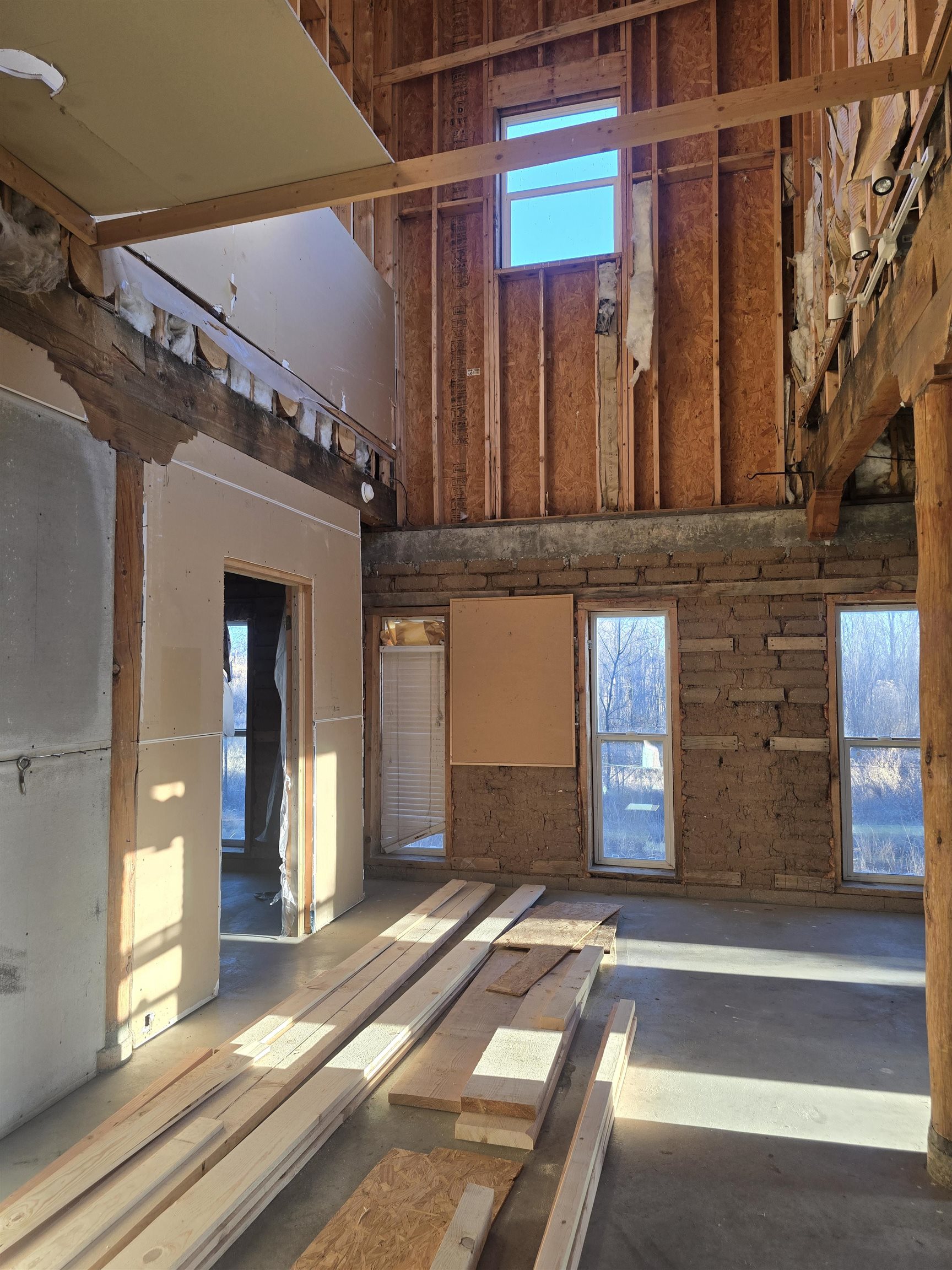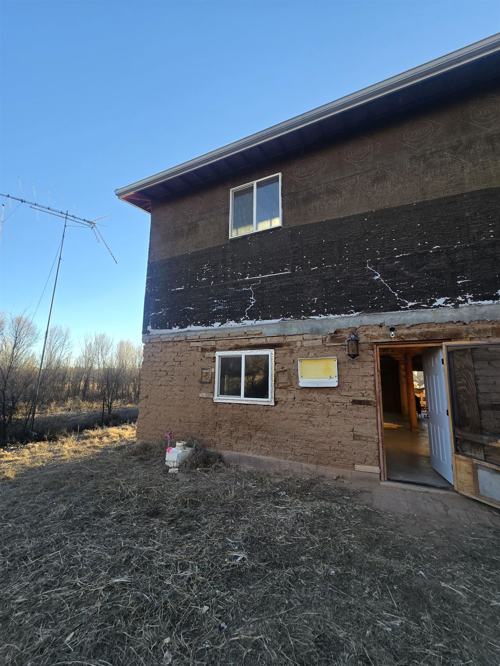 Fabulous views set the stage for this rare Northern New Mexico opportunity a soulful adobe with classic vigas, sitting on a little over an acre of greenbelt land just a short 700-foot stroll to the Rio Chama. Once envisioned as a forever home and a quiet piece of heaven, the property retains thoughtful touches from a prior owner, including a charming chicken coop, corrals, and a shed reminders of a life imagined close to the land. Irrigation ditch adjoins property. Built in 2007 with a dream, this home now stands as a true blank canvas awaiting its next visionary steward. The open concept layout features a striking grand staircase leading to an upper level filled with natural light from soaring 25-foot ceilings, offering incredible potential to finish and personalize the space to reflect your family’s dreams or creative vision. Perfectly positioned just 39 minutes from Los Alamos, minutes to Abiquiú or Española, and only 48 minutes to Santa Fe, this property offers the rare balance of privacy, inspiration, and accessibility. A remarkable opportunity to complete a dream and create something truly special in Northern New Mexico. This property is being sold "As Is." This is a unique opportunity to own a distinctive property with a head start toward completion.