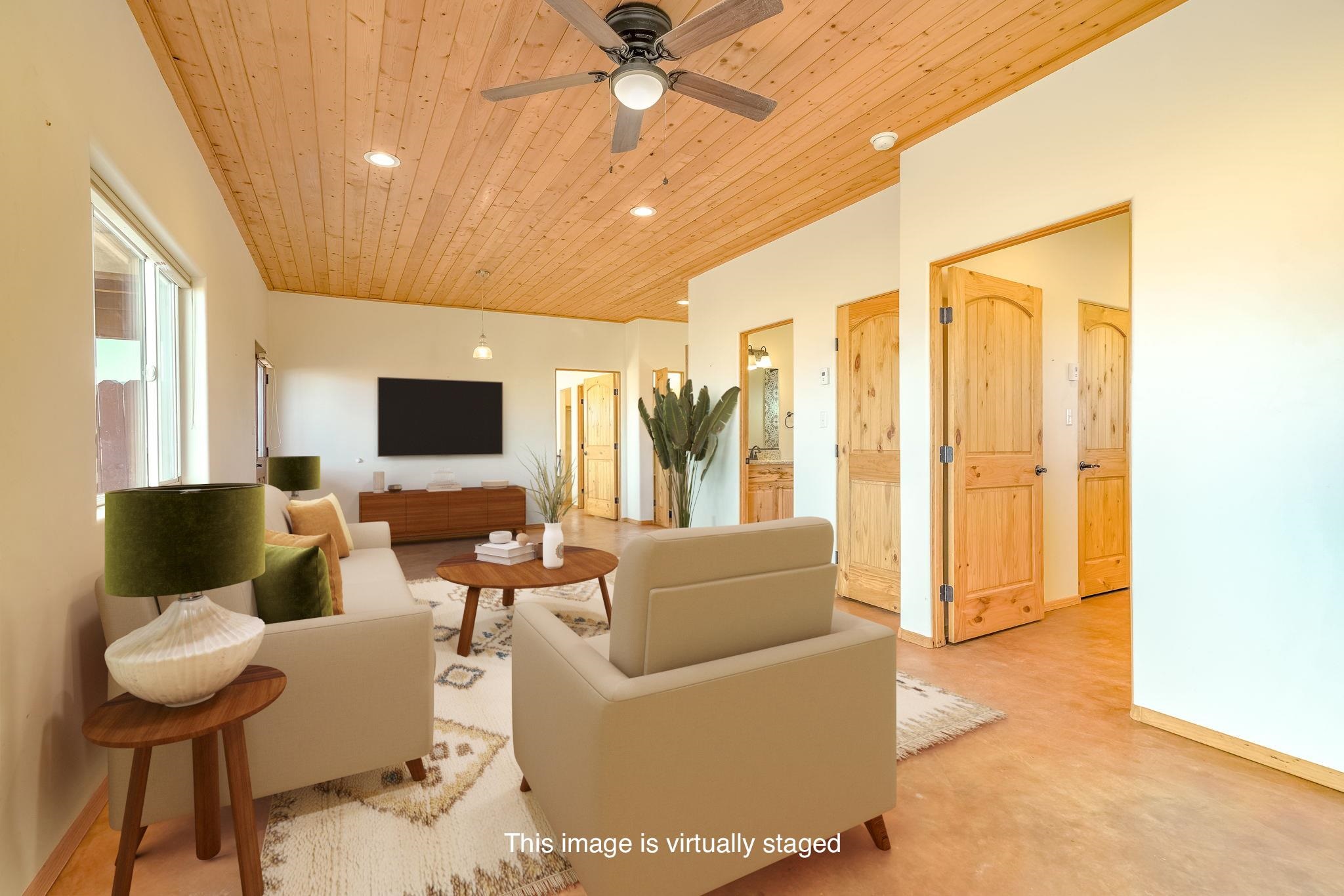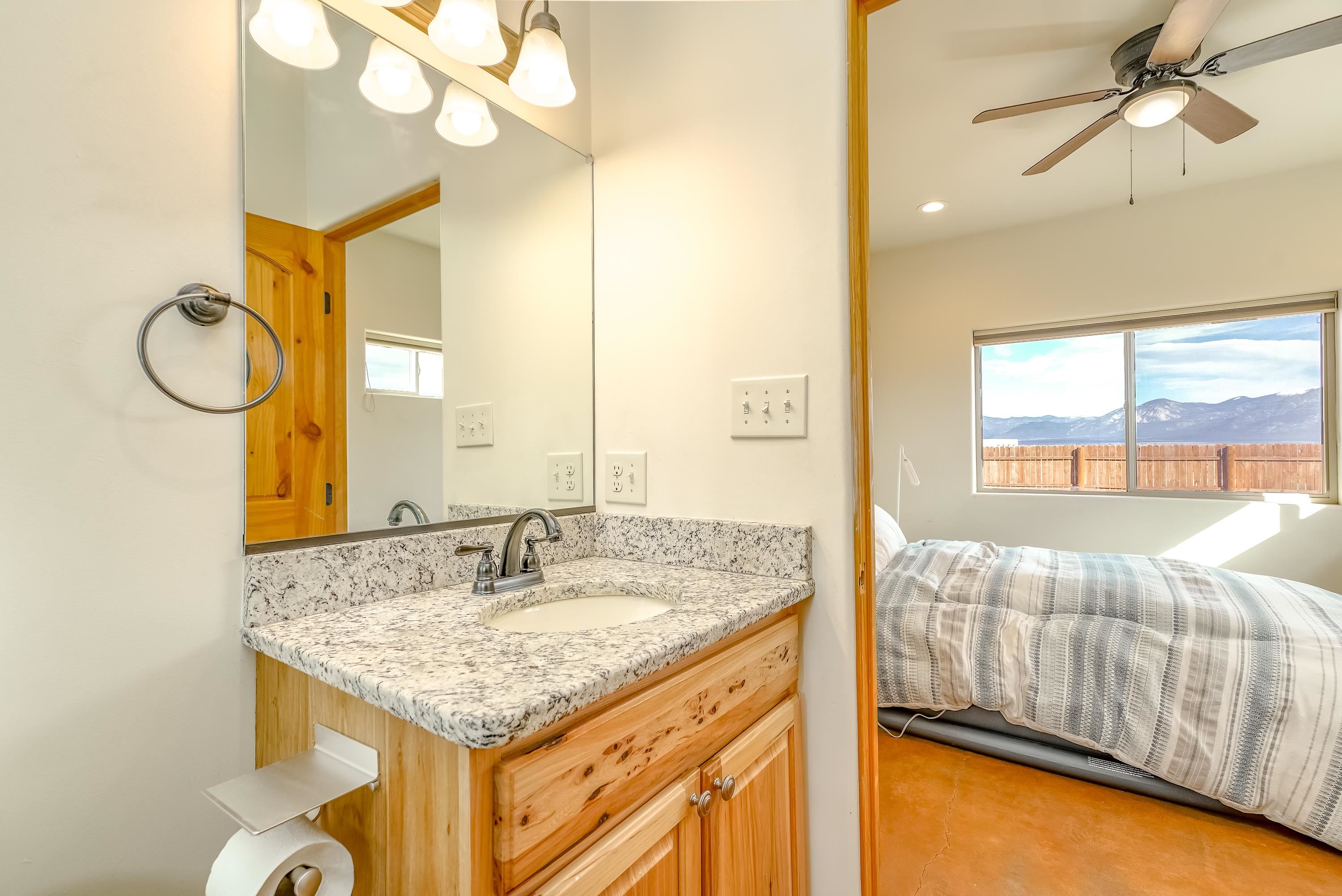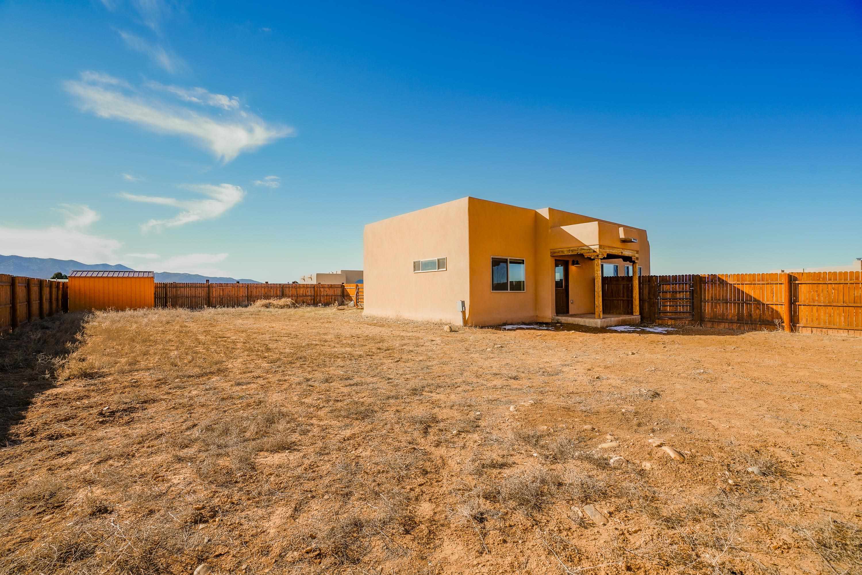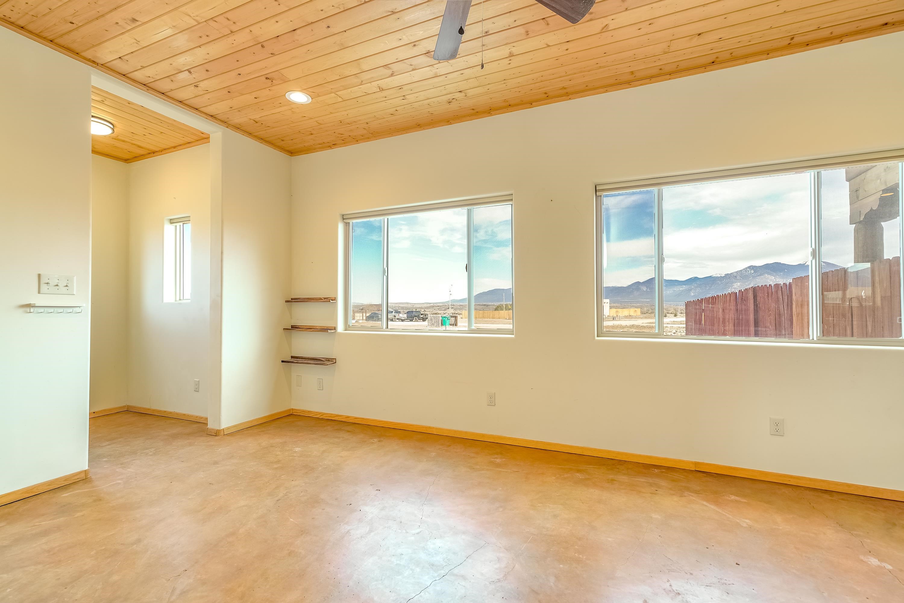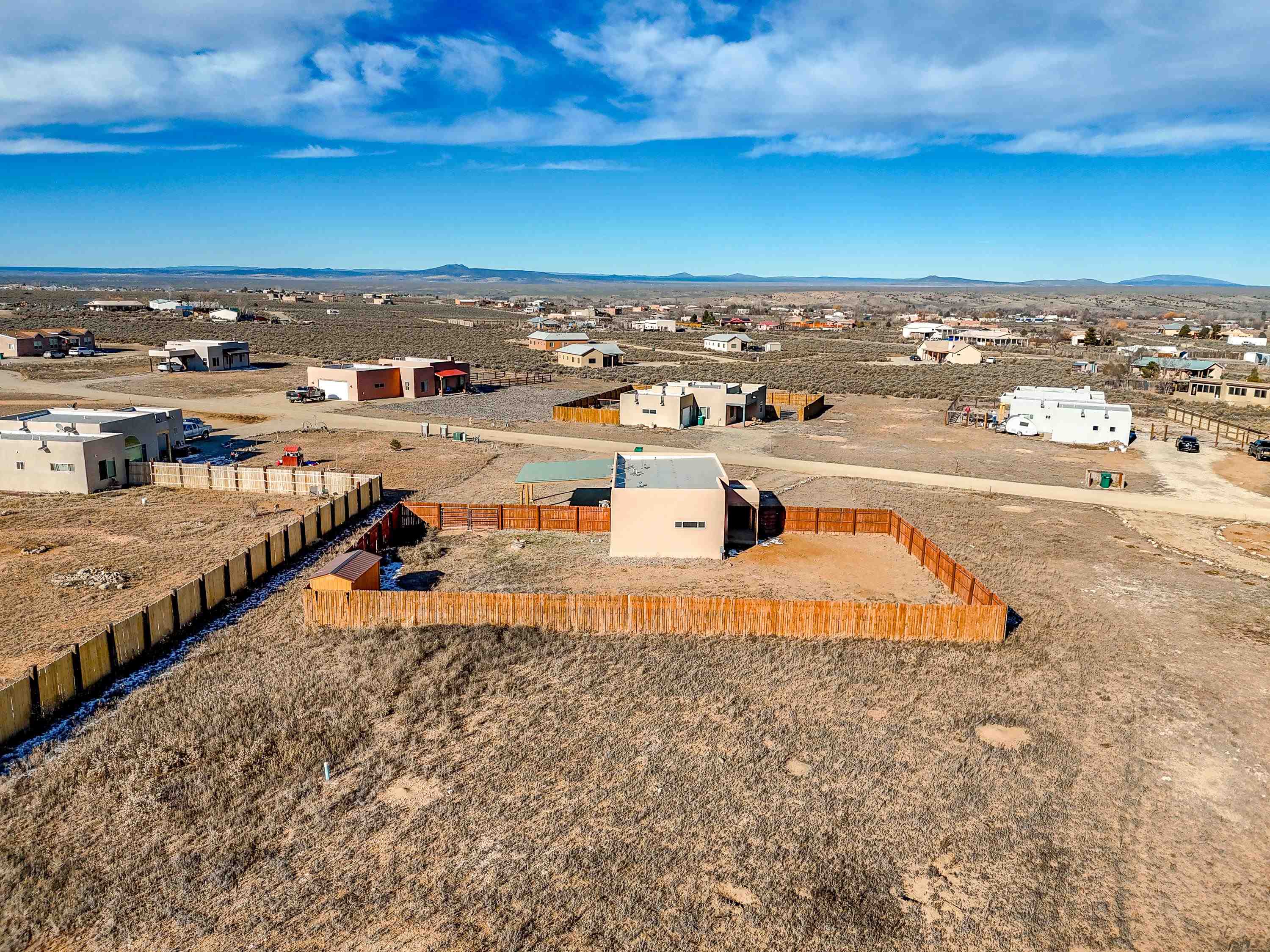 Discover classic Northern New Mexico charm in this beautiful 1,000-square-foot Pueblo-style home. This 2-bedroom, 2-bath residence blends authentic character with modern comfort. The home, built in 2022 offers hot water radiant heat, stained cement floors, and custom blinds on all windows, creating a warm and inviting interior year-round. Enjoy indoor-outdoor living with a covered porch and a fenced backyard—ideal for relaxing, entertaining, or pets. A two-car attached carport provides convenient covered parking. The property is well-equipped with fiber-optic internet, town water, Navien on-demand water heater and natural gas for easy, efficient living. The beautifully appointed kitchen has stainless steel appliances and gas oven/range. Take in breathtaking views of the Sangre de Cristo Mountains right from home, while being just minutes from hiking trails and only five minutes from local restaurants and shops. Located 15 minutes from Taos Plaza, you’ll have quick access to renowned art galleries, dining, shopping, and nightlife. Taos Ski Valley is just 35 minutes away. This charming Pueblo-style home offers the perfect balance of scenic beauty, comfort, and proximity to everything Taos has to offer.