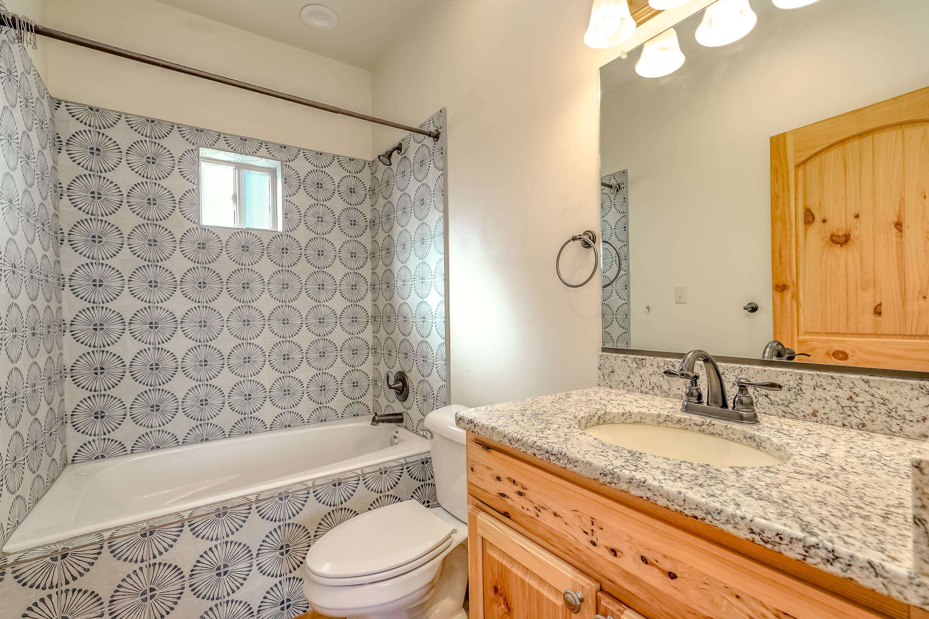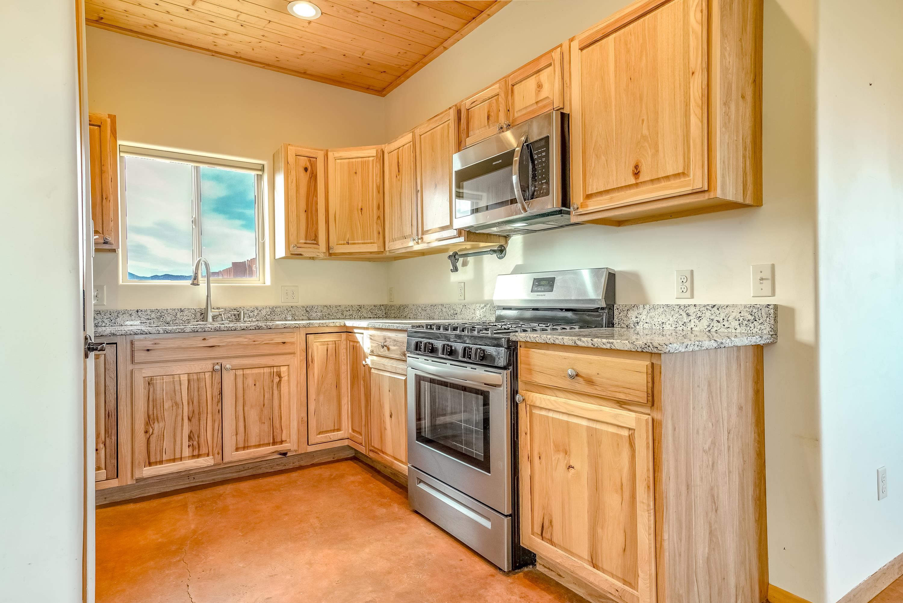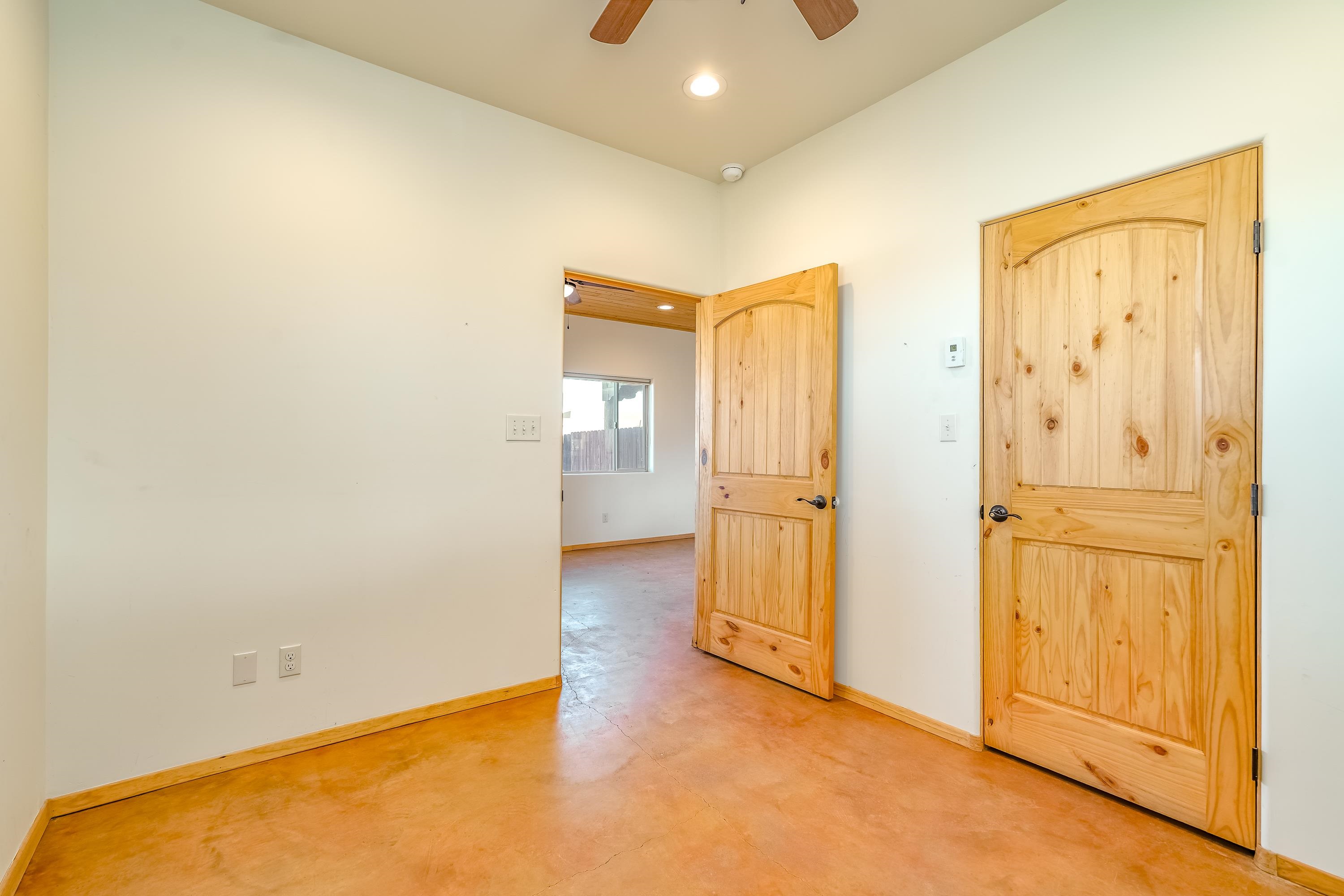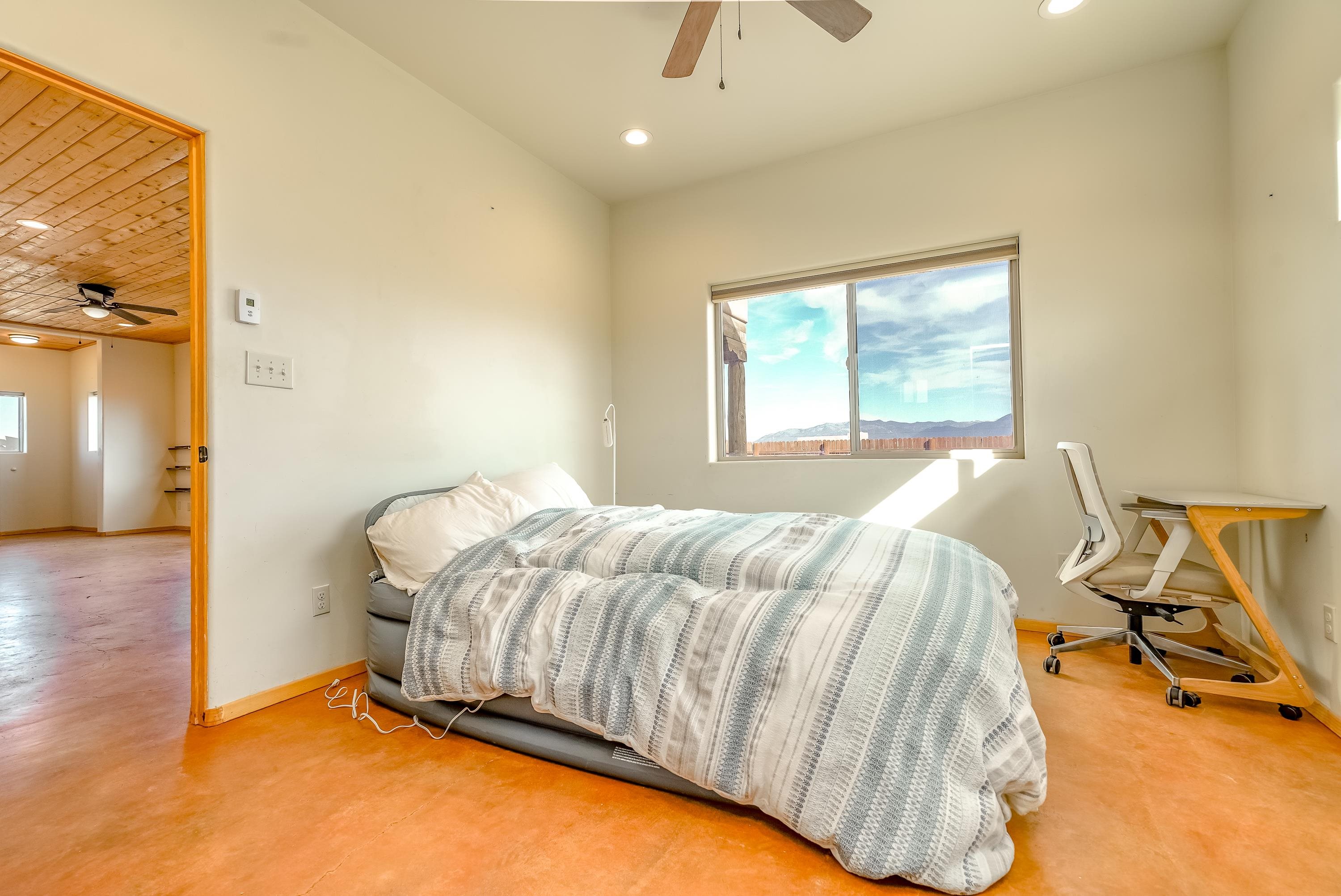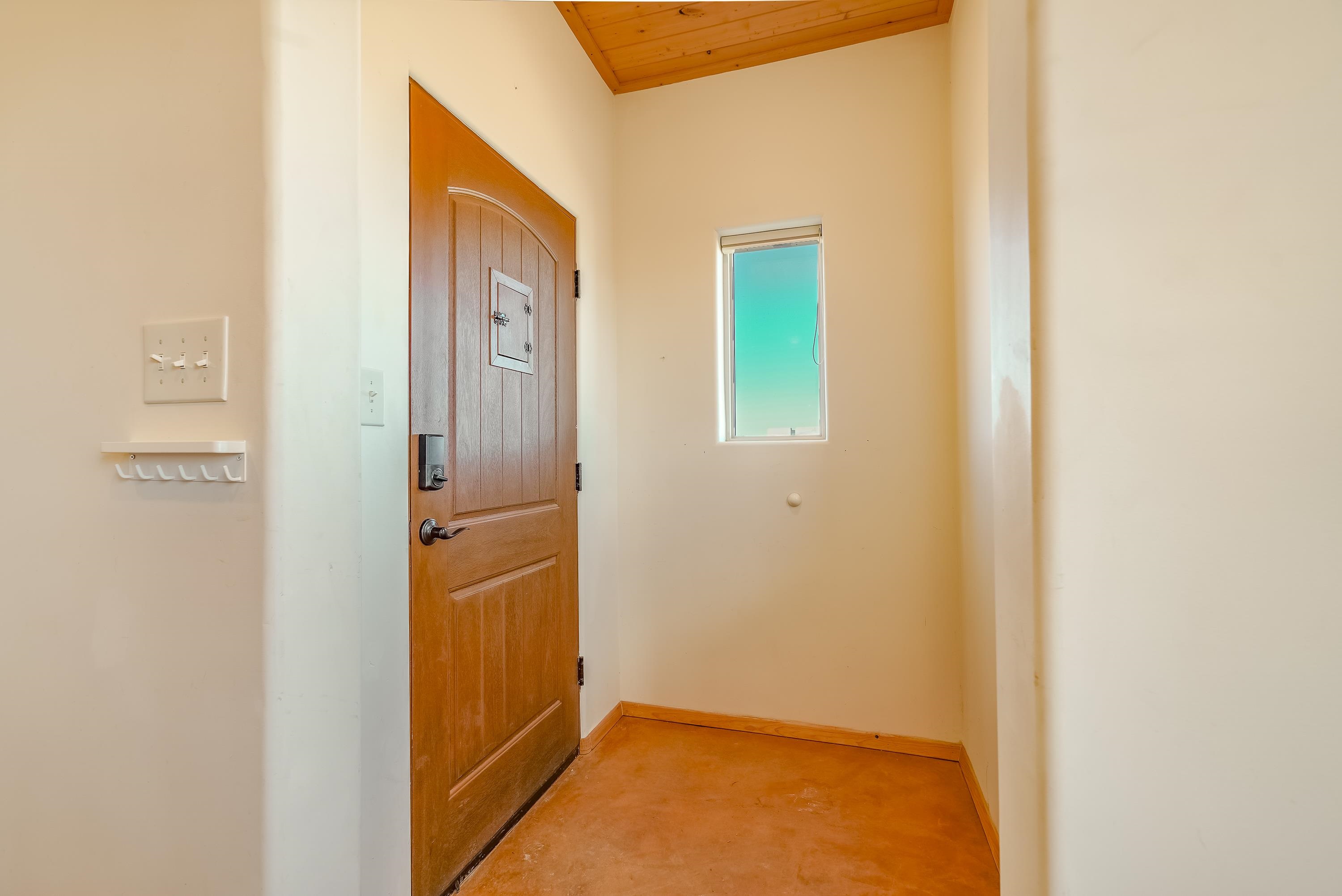 Discover classic Northern New Mexico charm in this beautiful 1,000-square-foot Pueblo-style home. This 2-bedroom, 2-bath residence blends authentic character with modern comfort. The home, built in 2022 offers hot water radiant heat, stained cement floors, and custom blinds on all windows, creating a warm and inviting interior year-round. Enjoy indoor-outdoor living with a covered porch and a fenced backyard—ideal for relaxing, entertaining, or pets. A two-car attached carport provides convenient covered parking. The property is well-equipped with fiber-optic internet, town water, Navien on-demand water heater and natural gas for easy, efficient living. The beautifully appointed kitchen has stainless steel appliances and gas oven/range. Take in breathtaking views of the Sangre de Cristo Mountains right from home, while being just minutes from hiking trails and only five minutes from local restaurants and shops. Located 15 minutes from Taos Plaza, you’ll have quick access to renowned art galleries, dining, shopping, and nightlife. Taos Ski Valley is just 35 minutes away. This charming Pueblo-style home offers the perfect balance of scenic beauty, comfort, and proximity to everything Taos has to offer.