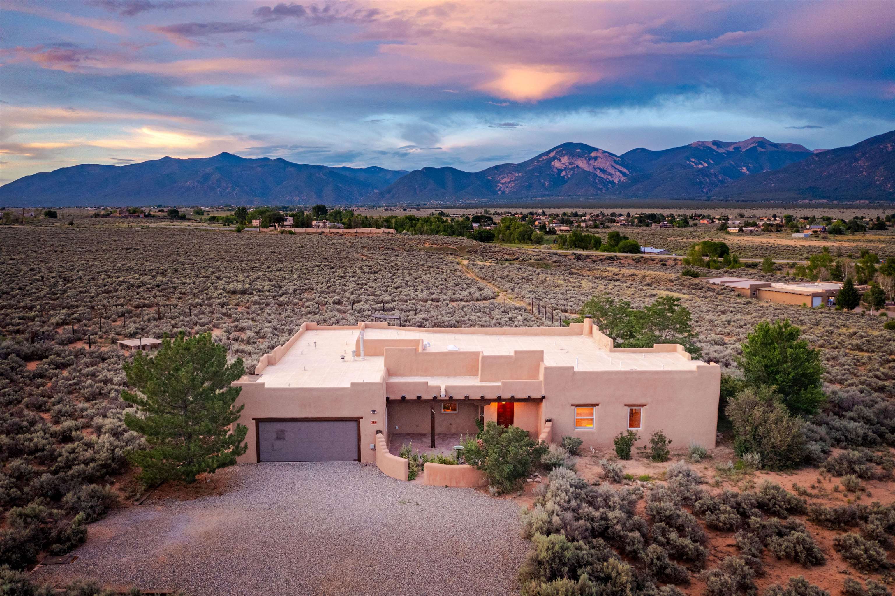 Charming Southwest-Style Home in Blueberry Hill Experience the warmth and character of this beautiful home, built with adobe construction and featuring a cozy wood-burning fireplace in the living room. The exterior has recently been updated with fresh stucco, enhancing its curb appeal. The open-concept living and dining areas create a welcoming space for daily living and entertaining. The updated kitchen boasts granite countertops and a picturesque view from the kitchen window, perfect for enjoying morning coffee or simply taking in the stunning mountain scenery. The front covered portal welcomes you home, complemented by a lovely garden walkway that adds charm and tranquility. The rear patio provides an ideal setting for outdoor gatherings while soaking in breathtaking mountain views—an incredible backdrop for relaxing, dining, or entertaining guests. The property also features an attached 2-car garage, providing convenient parking and storage. Located in the highly desirable area of Blueberry Hill, this home is close to Taos Ski Valley, shopping, and dining at the historic Taos Plaza. Whether you're seeking a full-time residence, a part-time retreat, or an income-generating investment property, this location offers versatility and appeal. Contact Cyndi today to schedule your private showing and discover all that this charming property has to offer!