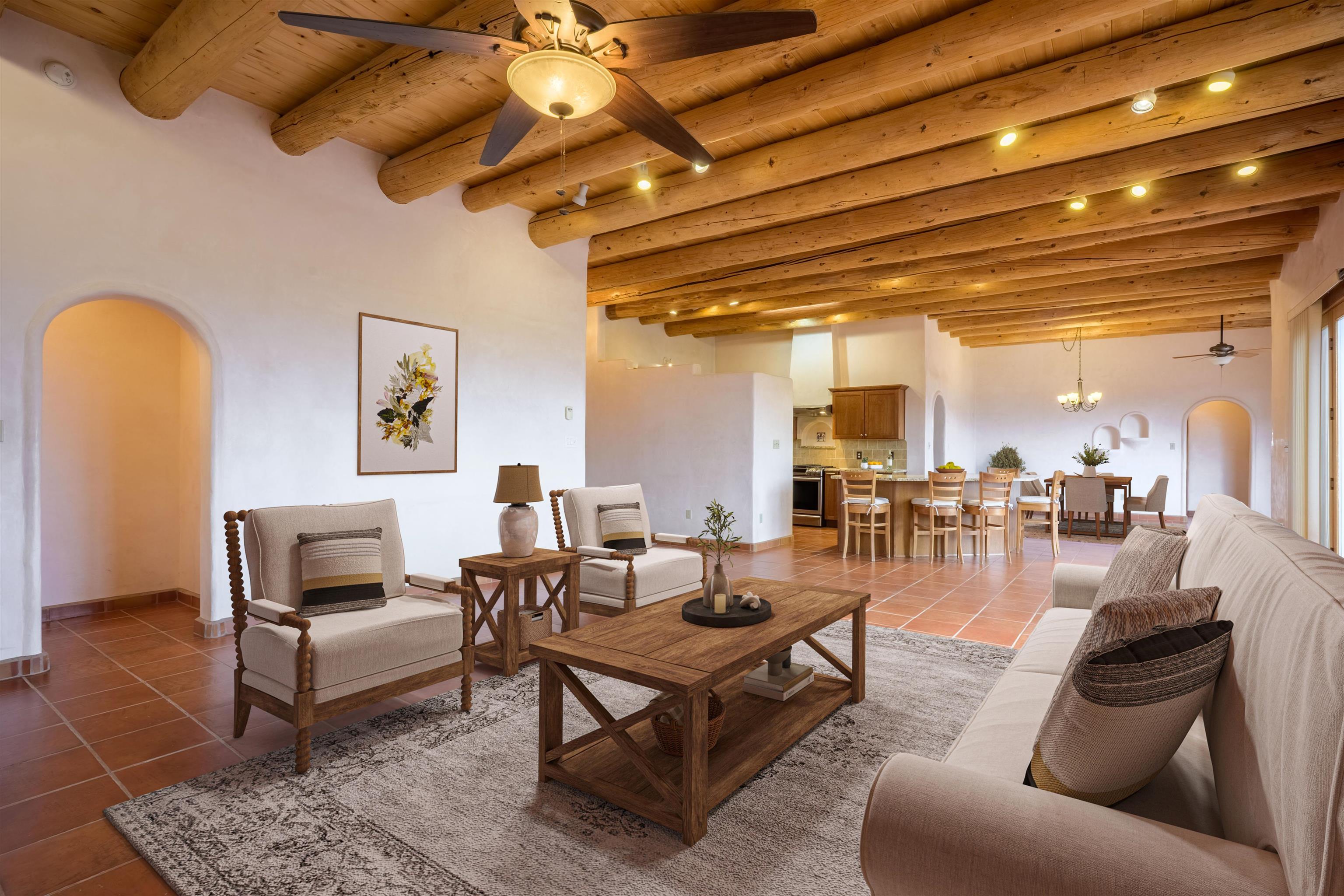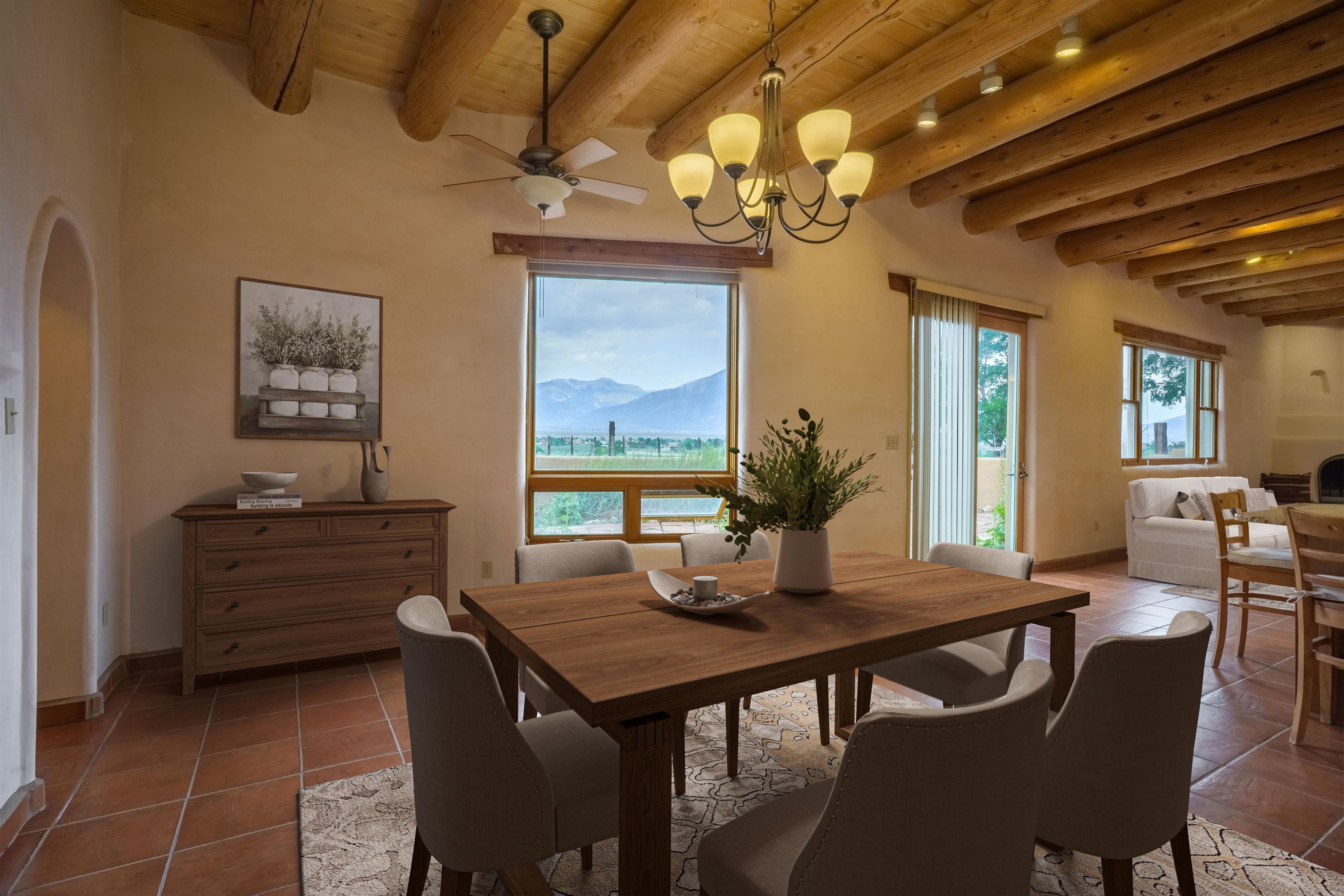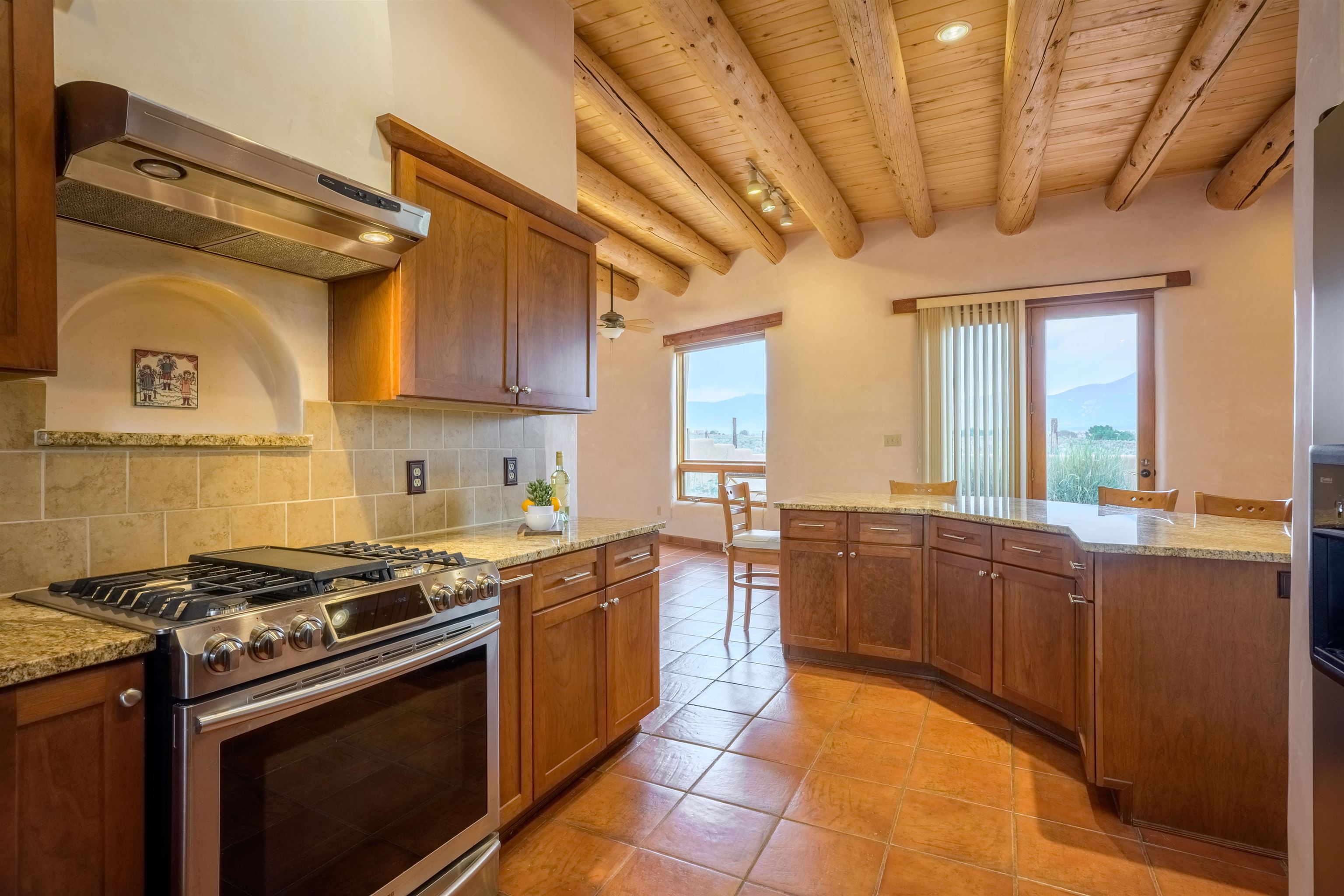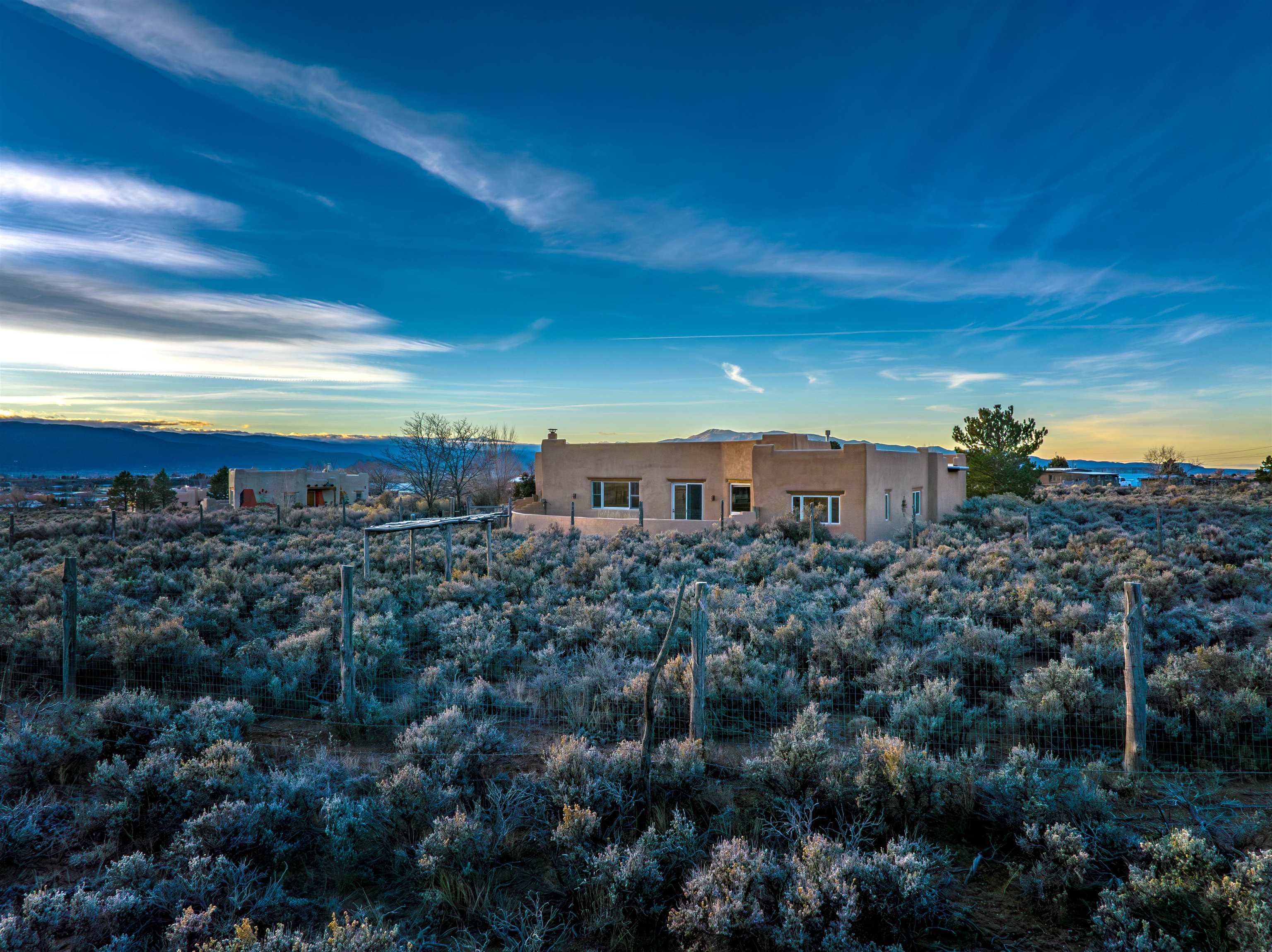 Charming Southwest-Style Home in Blueberry Hill Experience the warmth and character of this beautiful home, built with adobe construction and featuring a cozy wood-burning fireplace in the living room. The exterior has recently been updated with fresh stucco, enhancing its curb appeal. The open-concept living and dining areas create a welcoming space for daily living and entertaining. The updated kitchen boasts granite countertops and a picturesque view from the kitchen window, perfect for enjoying morning coffee or simply taking in the stunning mountain scenery. The front covered portal welcomes you home, complemented by a lovely garden walkway that adds charm and tranquility. The rear patio provides an ideal setting for outdoor gatherings while soaking in breathtaking mountain views—an incredible backdrop for relaxing, dining, or entertaining guests. The property also features an attached 2-car garage, providing convenient parking and storage. Located in the highly desirable area of Blueberry Hill, this home is close to Taos Ski Valley, shopping, and dining at the historic Taos Plaza. Whether you're seeking a full-time residence, a part-time retreat, or an income-generating investment property, this location offers versatility and appeal. Contact Cyndi today to schedule your private showing and discover all that this charming property has to offer! DRONE VIDEO LINK: https://vimeo.com/1150346219