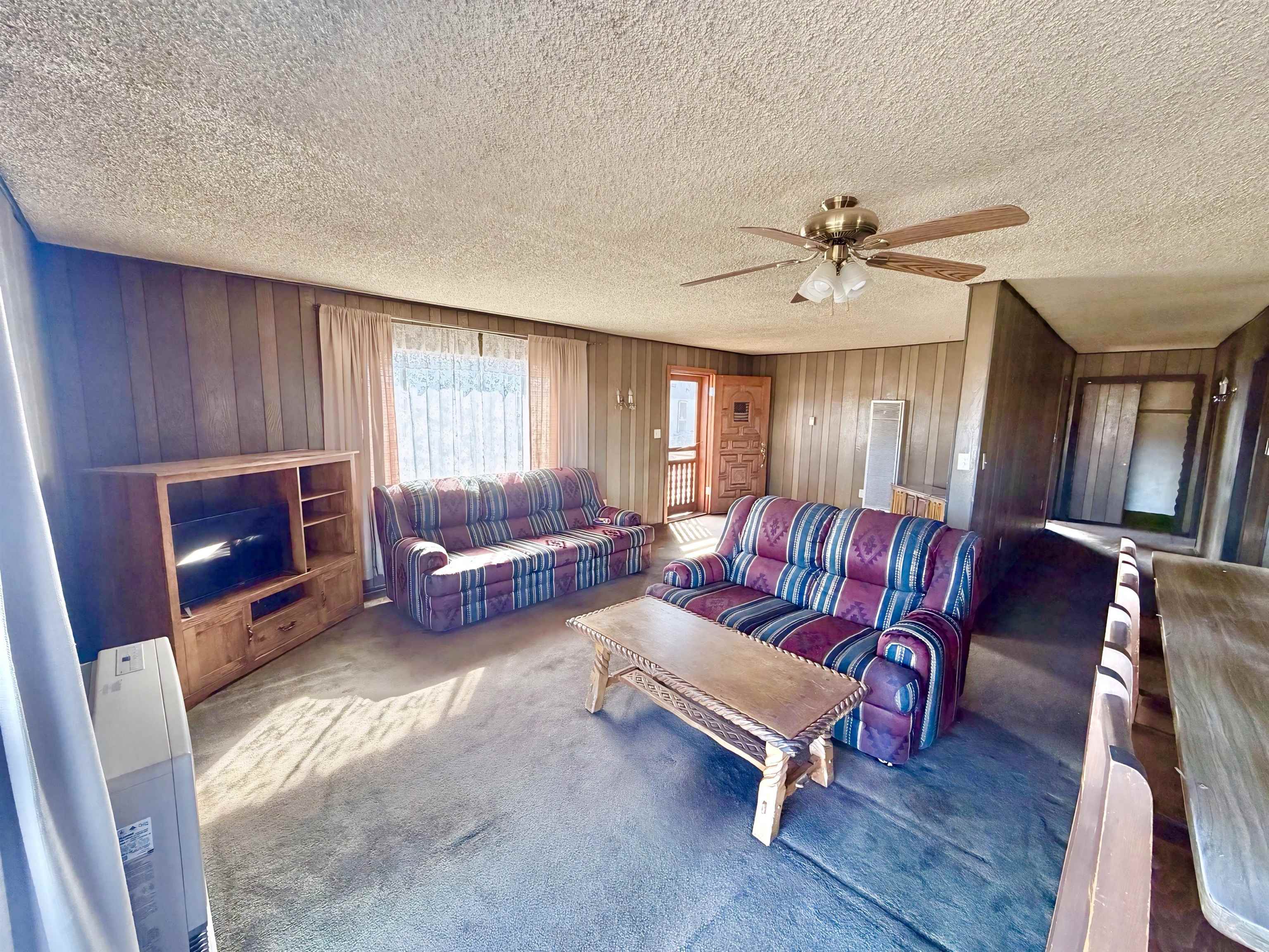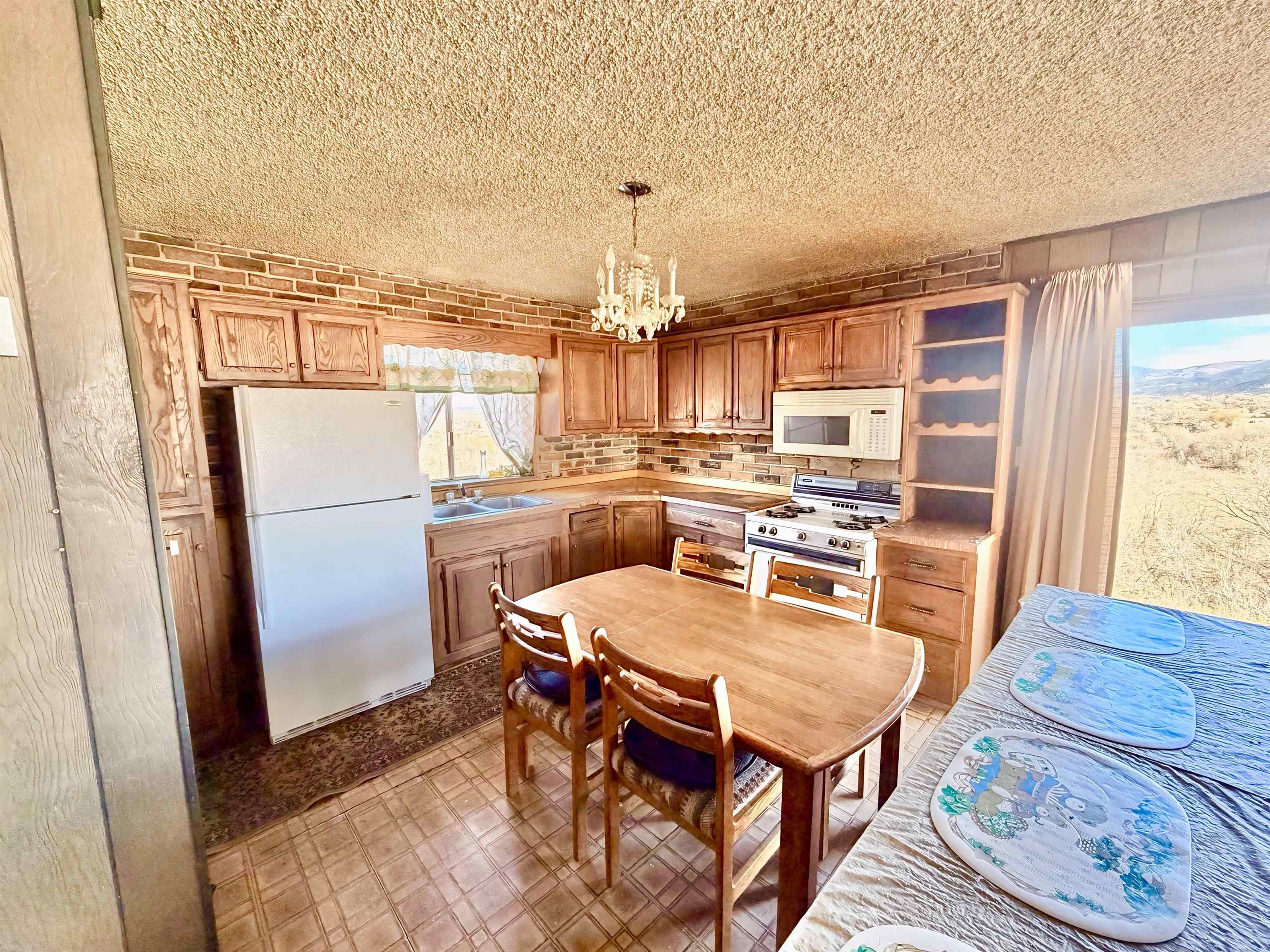 This residence offers unparalleled and exquisite views of the Ranchos de Taos Valley, with a panoramic overlook of the historic San Francisco de Asis Catholic Church, commonly referred to as the Ranchos Church. Its prime location provides effortless access to US Highway 68, facilitating northward travel to Taos or southward journeys to Santa Fe. As you step outside, embrace the invigorating Taos breeze while savoring the magnificent, unobstructed northerly vistas. This approximately 1200 square foot, two-bedroom, and one-bathroom home, constructed around 1973, exudes a cozy ambiance upon entry. The spacious north-east facing sliding glass door windows offer an exterior view of these awe-inspiring vistas, which can be enjoyed from the kitchen, dining, and living areas at any time. To enhance a more modern aesthetic, updates are feasible. Additionally, the property’s expansive size, encompassing a combined .568 acres with Lot B at .258 acres and Lot A at .310 acres, provides ample room for expansion. The main house is constructed using frame construction, featuring a pitched Pro-panel roof and stucco exterior walls. The interior boasts wood panel walls, carpeted and laminate flooring, plaster ceilings, and functional wood cabinetry in the kitchen, complemented by well kept appliances. Furthermore, the property includes an old adobe home situated in the eastern section of Lot A. This old time structure can be salvaged by skilled hands, as it retains substantial structural integrity, but will require substantial renovation. We invite you to explore this exceptional property and its amenities, ensuring that they align with your requirements at this prime location.