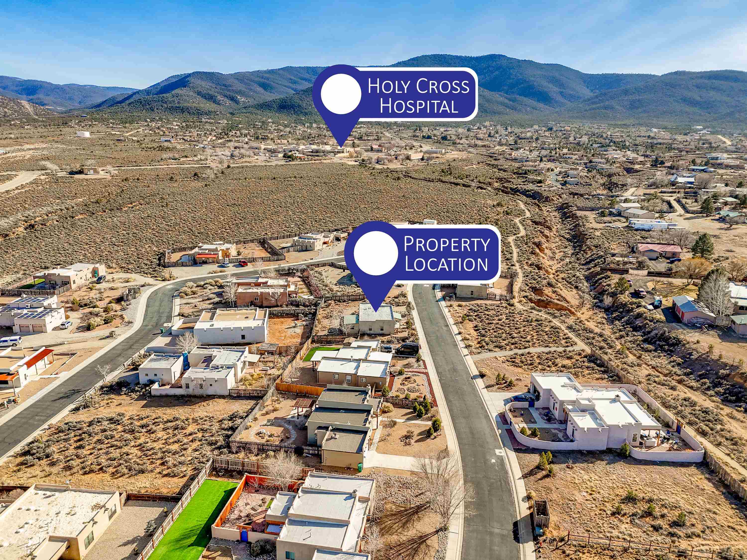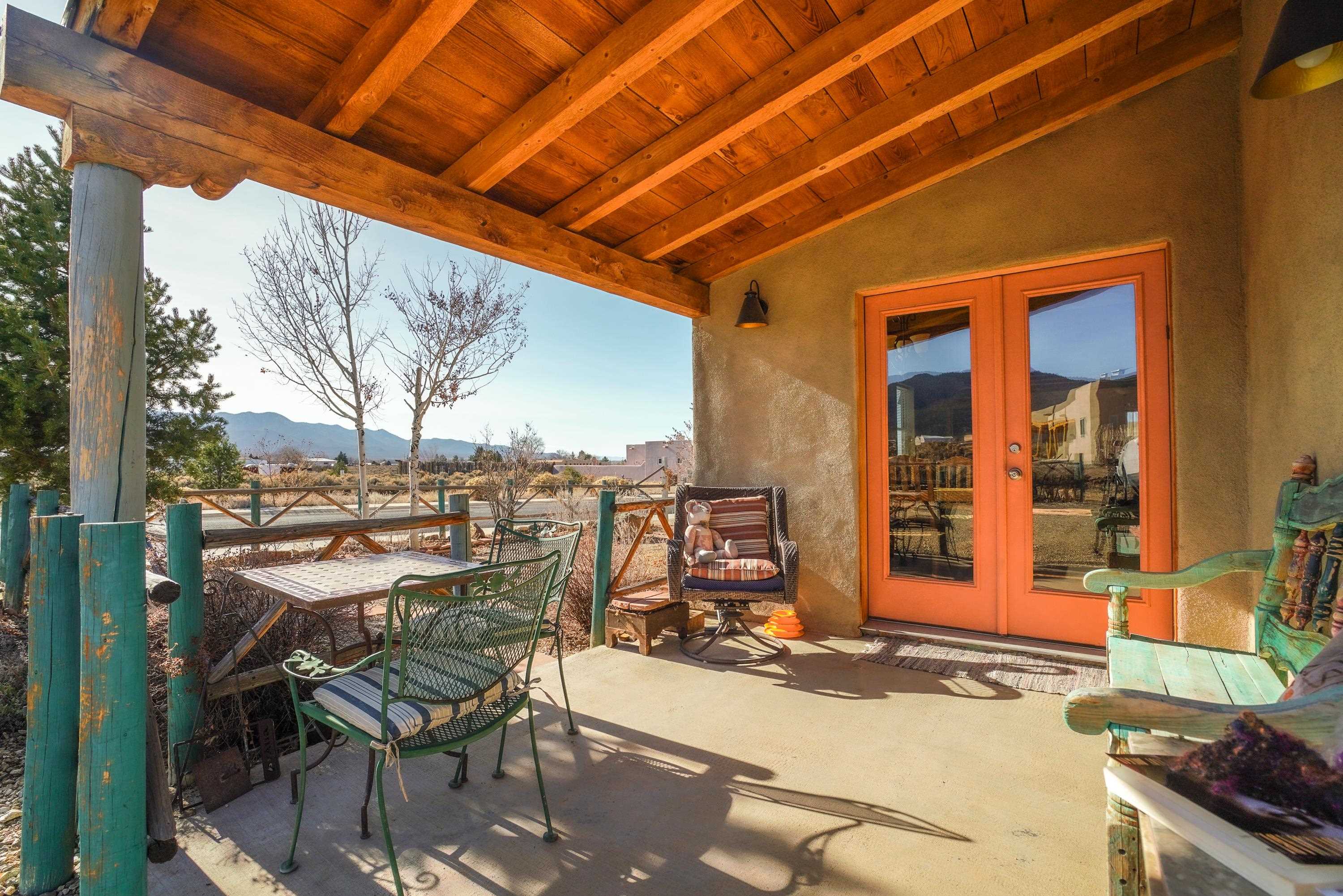 This beautiful 2 bed 2 bath plus studio home is sure to delight. Enjoy an open and spacious living area filled with natural light from abundant windows offering lovely views. The upscale kitchen is thoughtfully designed and features granite countertops plus stainless-steel appliances. Relax on the covered porch taking in great mountain views and unforgettable sunsets. The thoughtfully designed split-bedroom layout offers privacy and the primary suite and has a large walk-in closet. There is a charming artist’s studio or office attached which has its own entrance ideal for a quiet workspace. A truly special home combining comfort, creativity, and convenience. Work from home worry free with High-Speed WiFi available. Conveniently located near the hospital in the Las Olas Subdivision, offering established covenants and close access to walking trail. Just minutes to Taos Plaza with shopping and dining. Take advantage of Taos Air’s direct flights to Dallas and Austin, enhancing effortless travel.