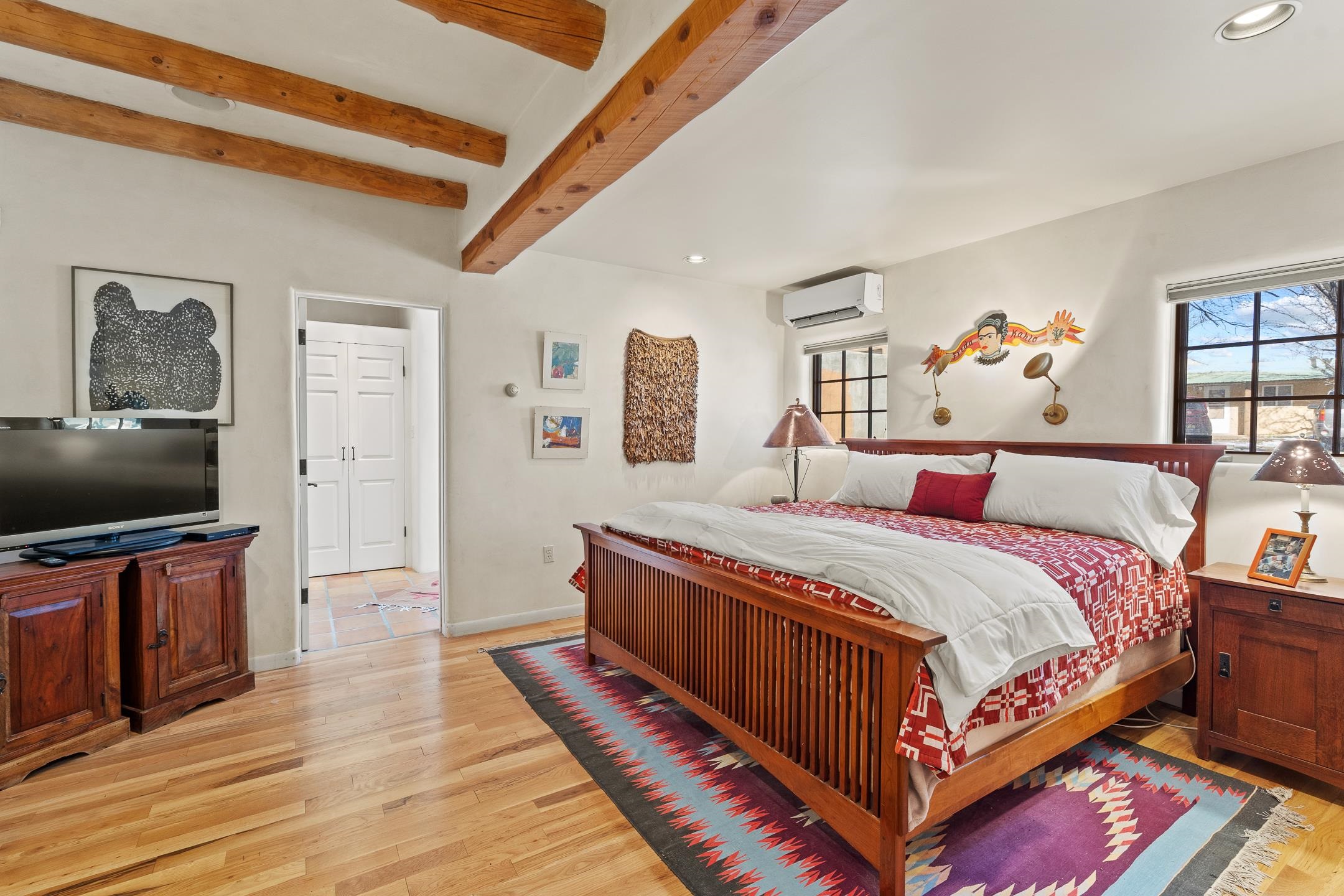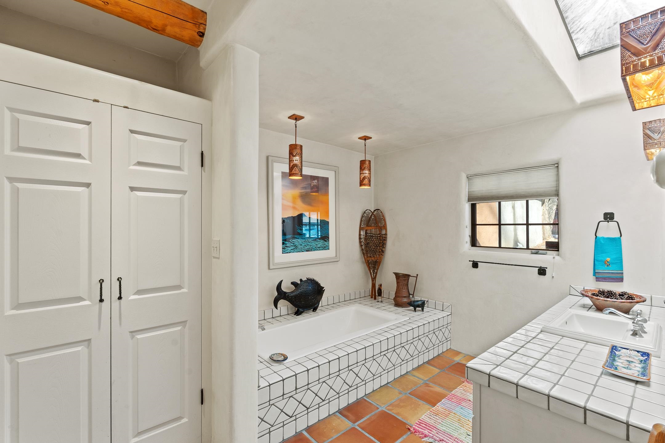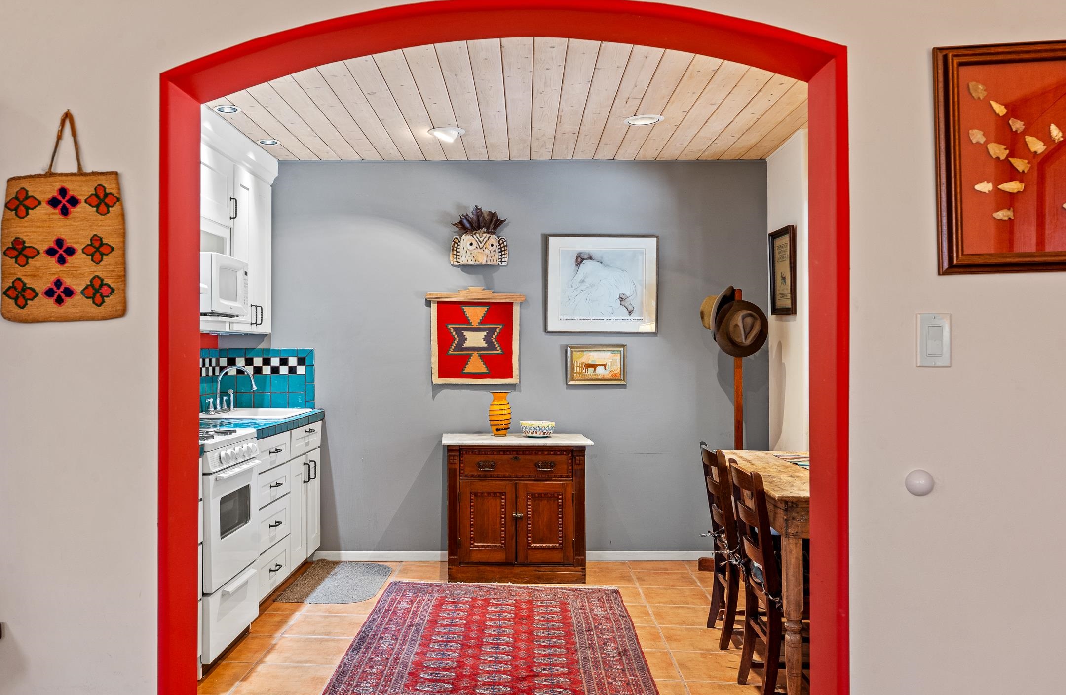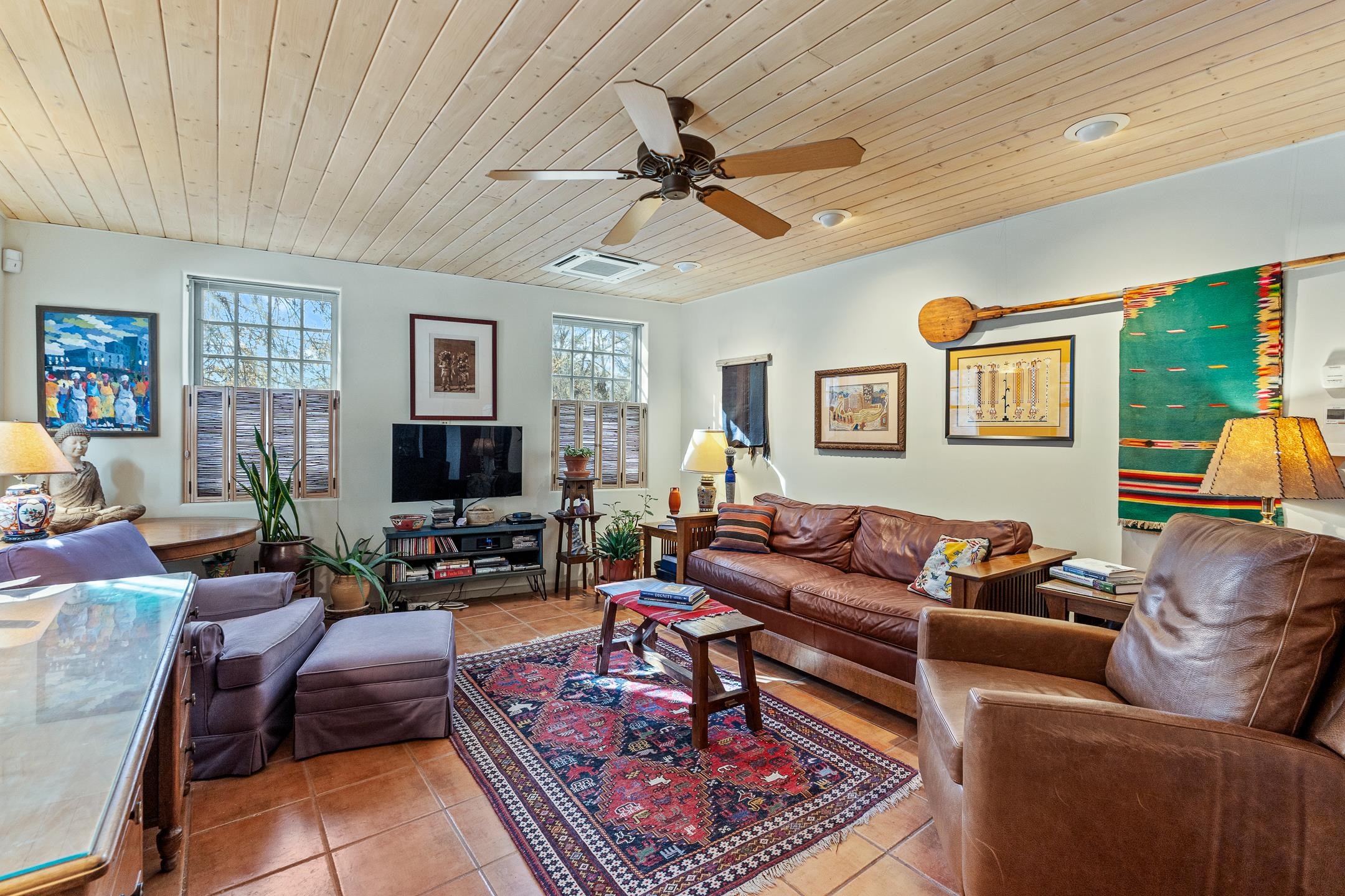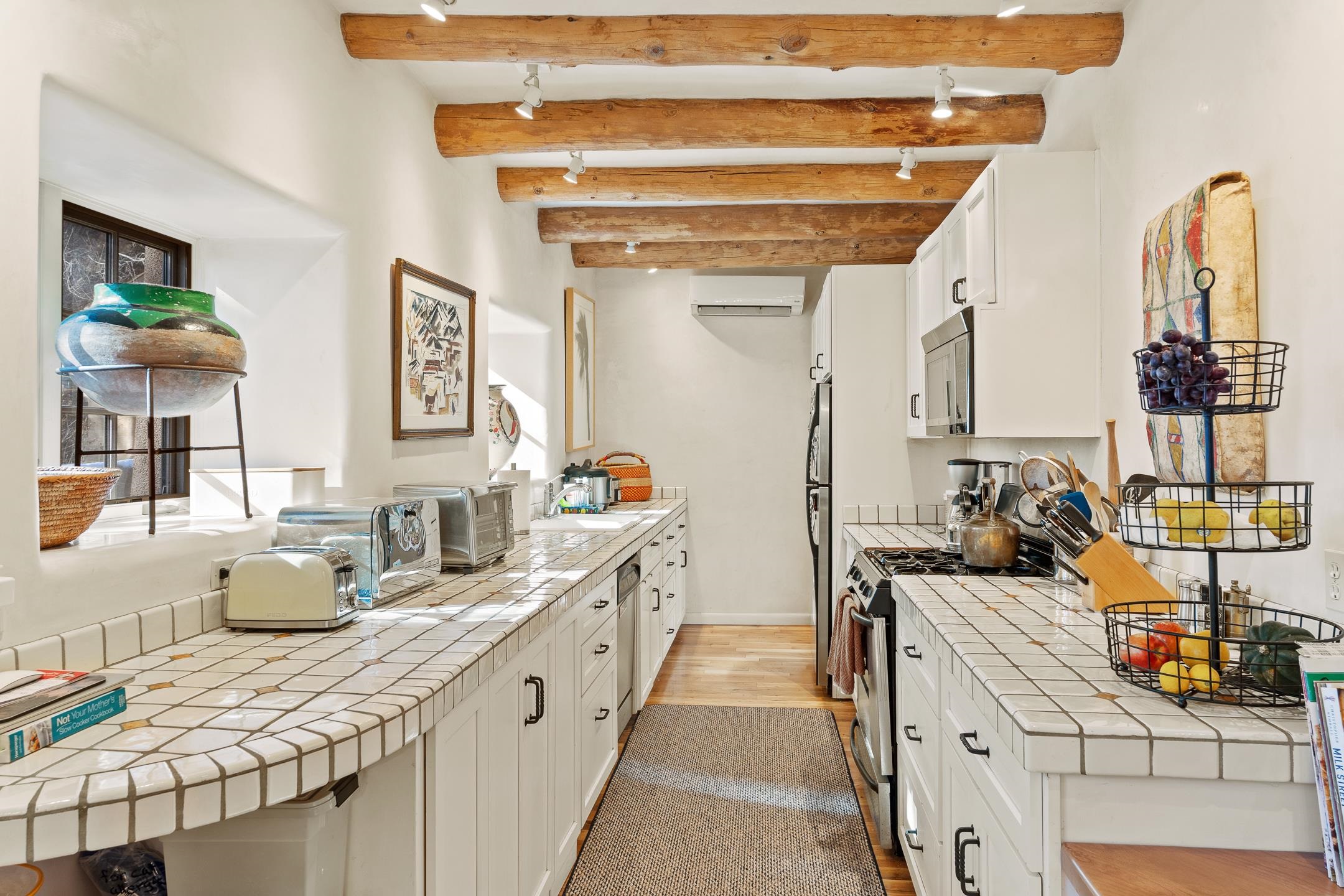 Situated within Taos’ highly sought-after Historic District, this exceptional multi-level adobe property honors the area’s rich cultural heritage while offering refined modern livability. The Upper House was formerly the cantina for La Loma Plaza and is ideally located within walking distance to the Historic Taos Plaza, shopping, and dining. The property presents a rare opportunity to own a piece of Taos history, thoughtfully adapted for contemporary living. The Upper House, originally built in the late 1800s to early 1900s just outside the original Taos Plaza walls, was carefully and completely remodeled in 2001 with deep respect for its historic character, scale, and setting. Rich architectural details include original vigas, coved ceilings, and authentic adobe brick construction on three sides. Interior finishes reflect timeless Southwestern elegance with diamond-finished plaster walls, wood floors, Saltillo tile baths, and a kiva fireplace faithfully replicated from the original design. The primary suite features a walk-in closet and a four-piece bath, complemented by a powder room and in-unit washer and dryer. The Lower Home, constructed in 2006, was intentionally designed to complement the Historic District with appropriate massing, materials, and architectural continuity. Offering exceptional versatility, the first level includes a guest suite or bonus living area with a bedroom, two large closets, a three-piece bath with a stackable washer/dryer, a kitchen and dining area, and a spacious storage room, all accented by Saltillo tile floors. The second level features a generous primary suite, a flexible living space upon entry, such as a study with a closet or a potential additional bedroom, a large bedroom with a four-piece en-suite bathroom, and direct patio access. Wood floors and 9–10-foot wood beam ceilings throughout add warmth, volume, and character. Outdoor living is a defining feature of the property. Flagstone portals and stairways with embedded fossils, brick-paved patios, viga and latilla ceilings, and a kiva fireplace on the upper portal create inviting spaces for year-round enjoyment. A second-floor deck captures mountain views, while the upper portal and patio offer sweeping sunset vistas and a unique, elevated, treehouse-like ambiance. The fully fenced property includes a remote-controlled driveway gate, parking for four or more vehicles, and mature landscaping both outside and within the pedestrian gate. Both homes were built by respected local builder Jim Pollard and designed by architect Sharon Porter, reflecting a cohesive vision aligned with Historic District standards and the timeless architectural traditions of Taos. Beyond the property, enjoy easy access to renowned cultural and recreational destinations, including walking distance to historic Taos Plaza and nearby activities such as Taos Pueblo, Taos Ski Valley, hiking, rafting, biking, and golf. Taos Regional Airport offers direct flights from several U.S. cities, enhancing both accessibility and lifestyle appeal. NOTE: The fire in the fireplaces is virtually staged. Seller currently occupies the property full-time and requests an extended closing, anticipated for late summer. Matterport Tours: Main House: https://my.matterport.com/show/?m=YHNou8Rq4ph Upstairs Casita: https://my.matterport.com/show/?m=kwQXeKkwhaw Downstairs Guest House: https://my.matterport.com/show/?m=xjmswRdqfXM
