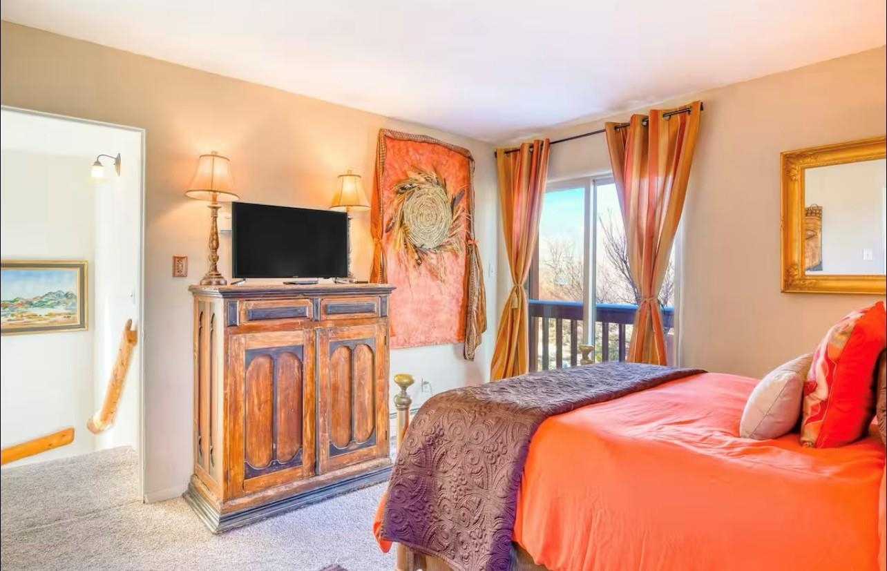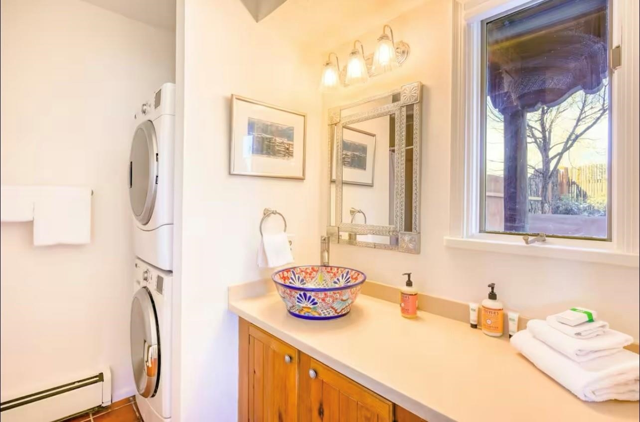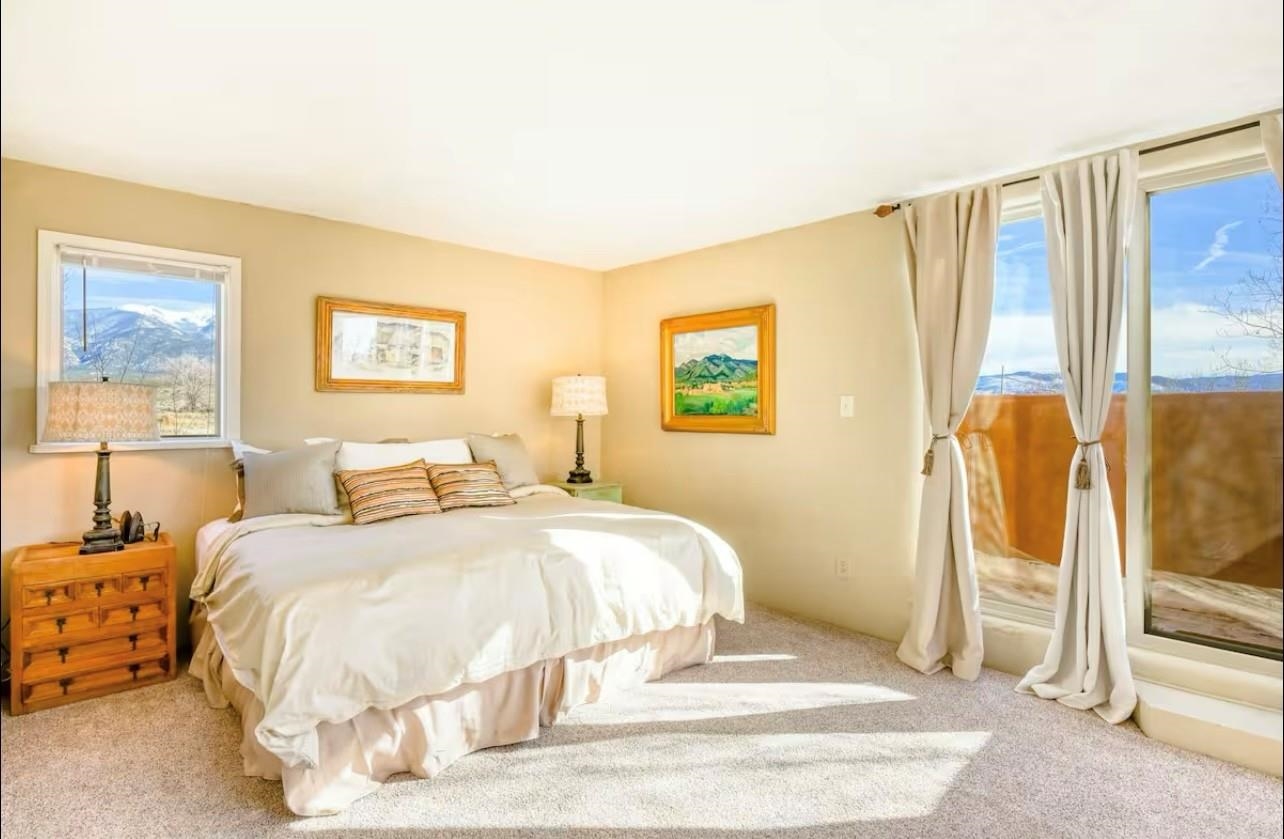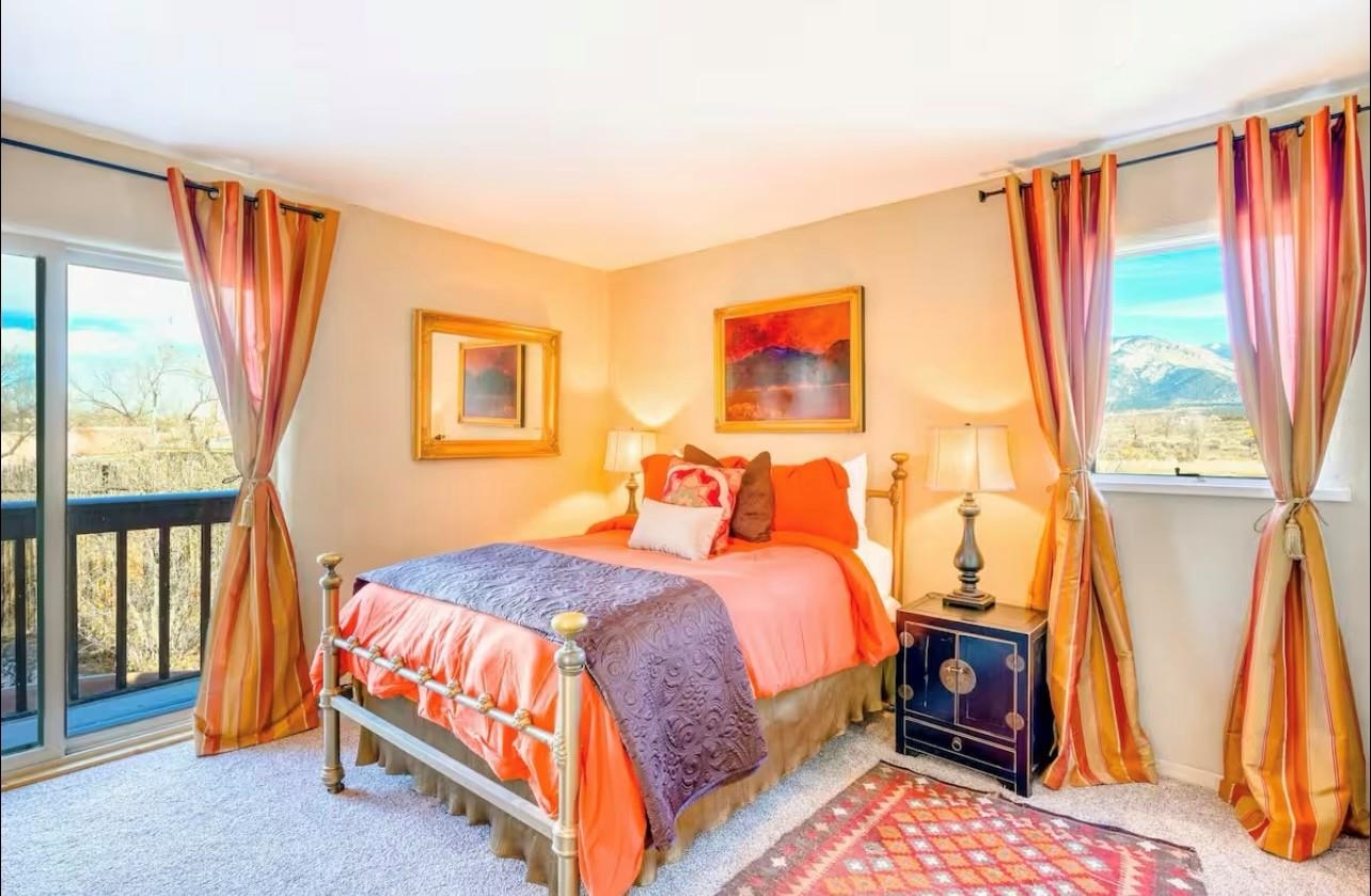 YOUR PLACE IN THE FUN. If your’e looking for a stylish get-a-way or home-sweet-home that’s near Taos Ski Valley and the great outdoors yet convenient to town, then take a look at this find! This 2BR/2BA approx. 1,4016 sq ft townhouse (no HOA fees) has so much to offer. The unbeatable location puts you under 30 min. to TSV and USFS and under 5 min. from the Tennis Ranch for tennis, pickleball, and swimming as well as 6 nearby restaurant/bars.. Picturesque Arroyo Seco is just up the road for shops, galleries, and even a well -stocked grocery. Being an end unit in this small 4 unit complex, there are lots of windows to provide lots of dramatic mountain views and lots of natural light. The living room has or an airy feel and the vigas, Mexican tile floors, bancos, and a nicho create a warm, Southwest ambience. The ample kitchen functions perfectly for a couple or a small crowd and boasts a built-in banco for in-kitchen seating. An artistic “keyhole†design separates the area and echoes traditional pueblo architecture. Out the kitchen door is an expansive, private walled patio to extend living area in the warmer months. Pets? A fenced dog run is possible. Completing the downstairs is a full bath with a washer/dryer convenient to all. Upstairs is the spacious primary bedroom with a sunny nook ideal for an office ( if you must), or relaxing with a good book or some good music. The 2nd bedroom offers more mountain views with a deck with space to chill, take in the views, or sip a cerveza. A large second bath with dual Talavera sinks completes the upper level. You’ll love the tranquility yet you have easy year-round access to the historic Town of Taos, colorful Arroyo Seco, TSV, USFS, Rio Grande Nat’l Monument, so hiking, biking, skiing, boarding, fishing, golf, and horseback riding are all available when you want to play. Isn’t it time to “Live a Little?†(Note: this is a townhouse, not a condo)