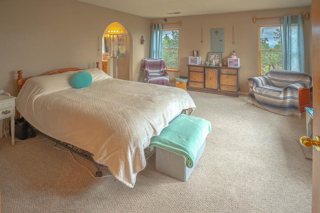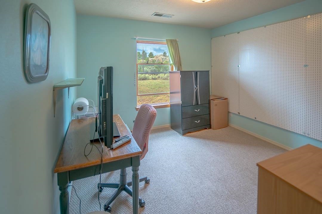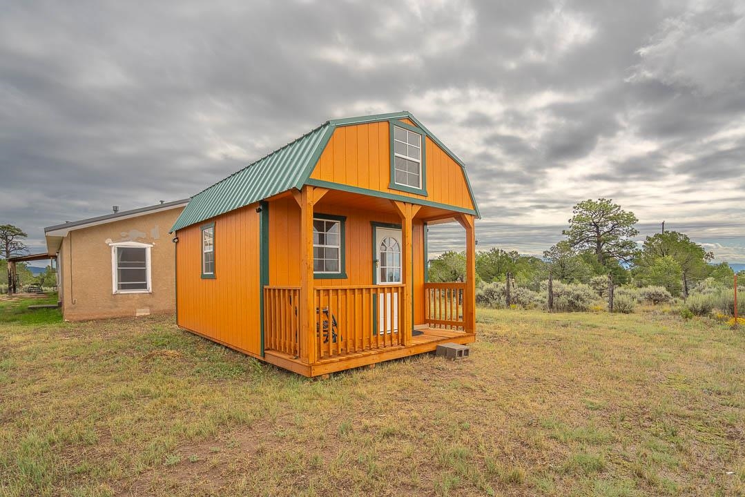 PRICE IMPROVEMENT! Come discover this charming mountain retreat with beautiful views and endless possibilities. Escape to the beauty of Northern New Mexico in this spacious and serene 4-bedroom, 2-bath home offering 2,227 square feet of thoughtfully designed living space on 2.5 acres of breathtaking land. Nestled in the peaceful Camino de Las Tablas area of Tres Piedras, NM, this inviting retreat at 20 Calle de Golondrina South (Forest Road 222) perfectly balances comfort, privacy, and natural beauty. Step inside to a warm and welcoming living area featuring skylights, a cozy wood-burning stove, and a dedicated office space - ideal for remote work with fiber-optic internet already in place. The spacious eat-in kitchen is designed for both everyday living and entertaining, with modern appliances, ample counter space, and generous storage. The primary suite offers a true sanctuary with a large walk-in closet and a spa-like en-suite bathroom featuring double sinks, modern finishes, and a separate tub and shower - an ideal place to unwind. Additional bedrooms are well sized and thoughtfully located at the opposite end of the home, providing privacy and flexibility for guests, family, or a home office. Outside, the property shines with a detached workshop equipped with electricity and heat, two storage sheds, and a covered carport for two vehicles. Whether you need space for hobbies, projects, or creative pursuits, the possibilities are endless. Enjoy outdoor living with a welcoming fire pit, expansive forested surroundings, stunning mountain views, and incredible night skies. Located just a short drive from Carson National Forest, this home offers easy access to hiking, outdoor adventures, and year-round recreation, while remaining within reach of Taos, Ojo Caliente, and Abiquiú.