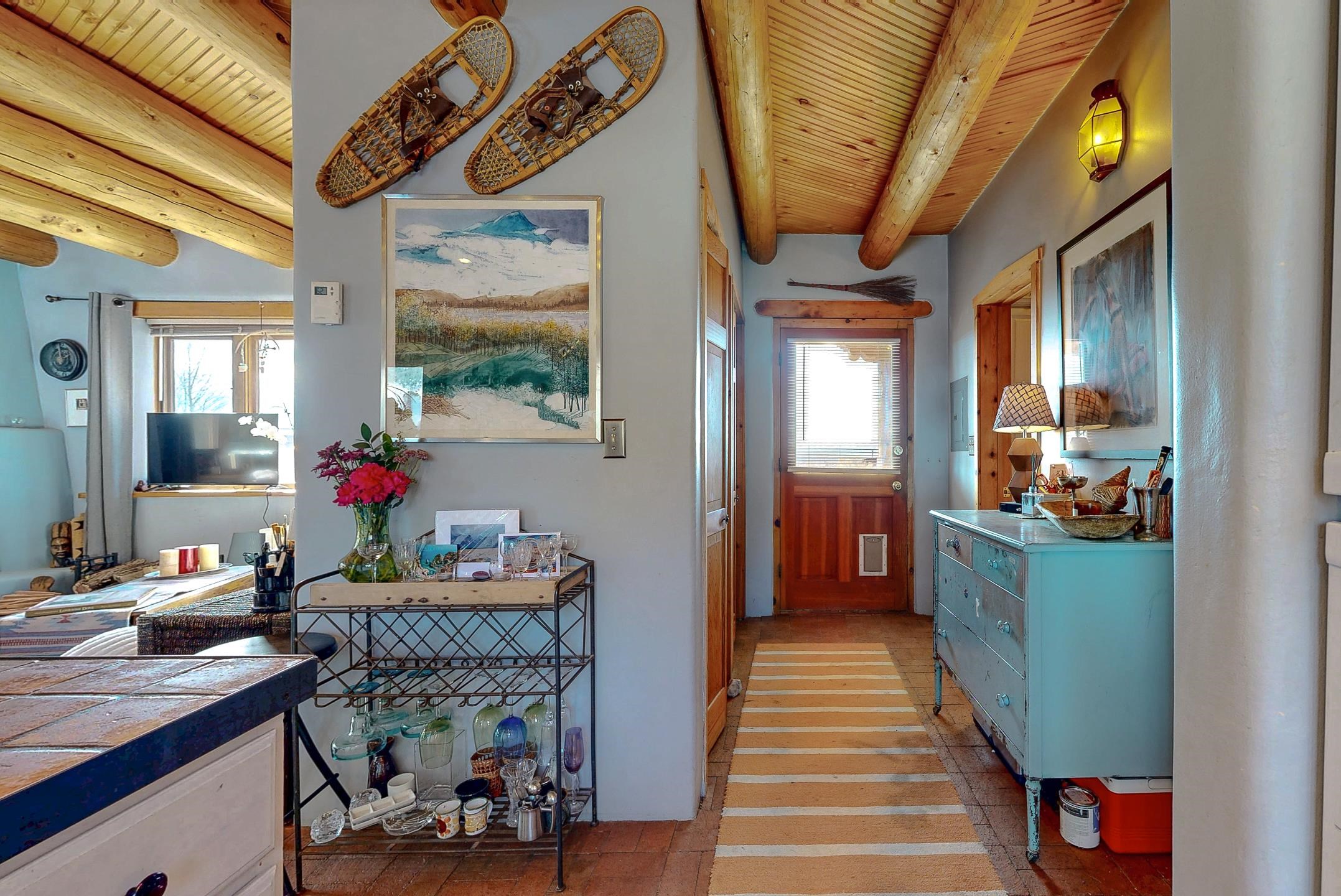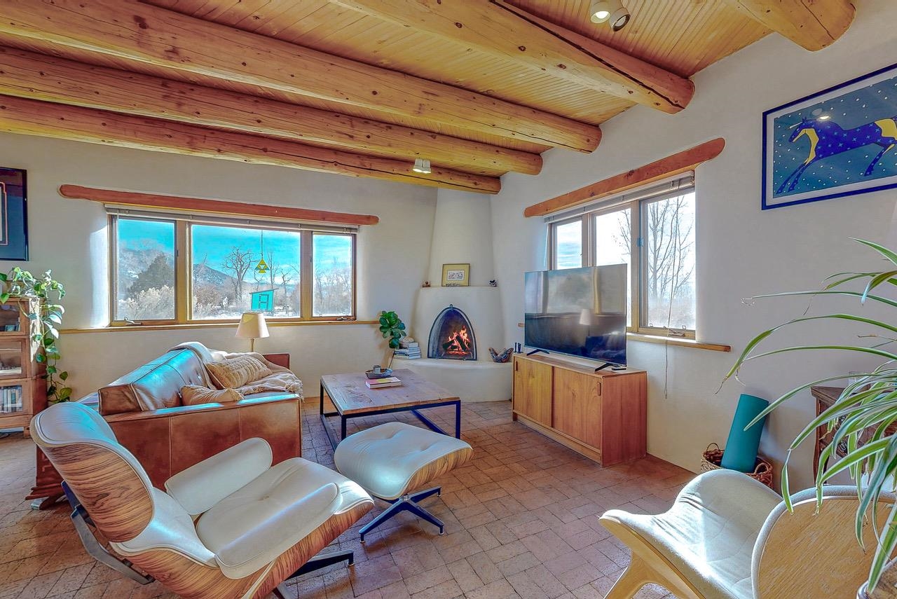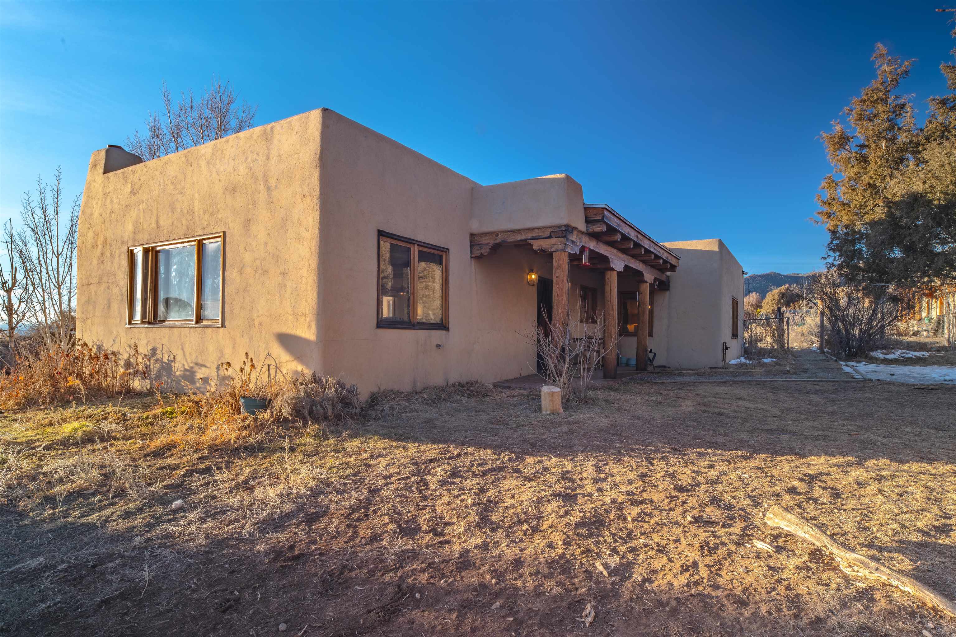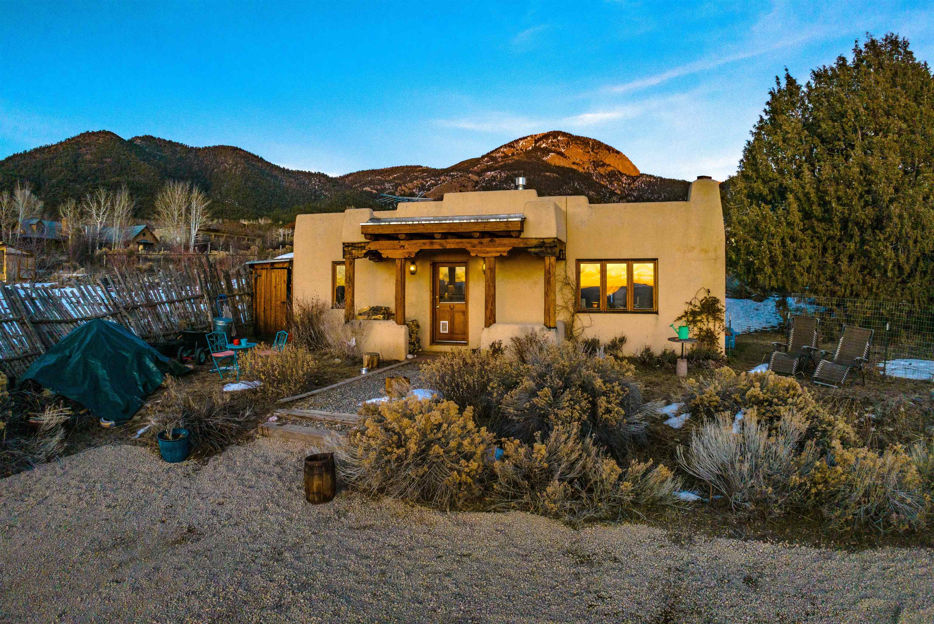 Authentic Adobe Home in Desirable El Salto with Casita & Mountain Views Nestled in the highly sought-after El Salto area, this authentic adobe-and-stucco property offers timeless Northern New Mexico charm amid breathtaking mountain views. The main residence features 2 bedrooms and 2 baths, complemented by a detached 1-bedroom, 1-bath casita — ideal for guests, rental income, studio space, or multigenerational living. Both structures are traditional adobe construction with classic stucco exteriors, reflecting the enduring architectural heritage of Taos. The main home showcases exposed vigas, tongue-and-groove wood ceilings, warm brick flooring, smooth plaster walls, and a charming kiva fireplace that anchors the living area. Expansive windows frame dramatic views of the surrounding mountains and mesa while filling the home with beautiful natural light throughout the day. The kitchen maintains regional character with handcrafted tile details and scenic outlooks. Bedrooms are tranquil and sun-filled, while bathrooms feature colorful tile accents consistent with classic Southwestern style. Outside, the property enjoys wide-open skies, mature trees, and a peaceful setting that captures the magic of El Salto. The detached casita offers privacy and versatility, making this property well-suited for full-time living, a part-time retreat, or investment potential. Located just minutes from the Village of Arroyo Seco with its charming shops, restaurants, galleries, and artisan culture. World-class skiing at Taos Ski Valley is only a short drive away, and the Historic Taos Plaza with additional dining and shopping options is conveniently close. A rare opportunity to own an authentic adobe home and casita in one of Taos’ most desirable and scenic locations. Don't let this gem slip away! MATTERPORT VIDEO - CASITA https://my.matterport.com/show/?m=RUb6rfUrNaE DRONE VIDEO: https://vimeo.com/1164014754 Fire in fireplaces is virtually staged. Seasonal change photos are virtually staged.