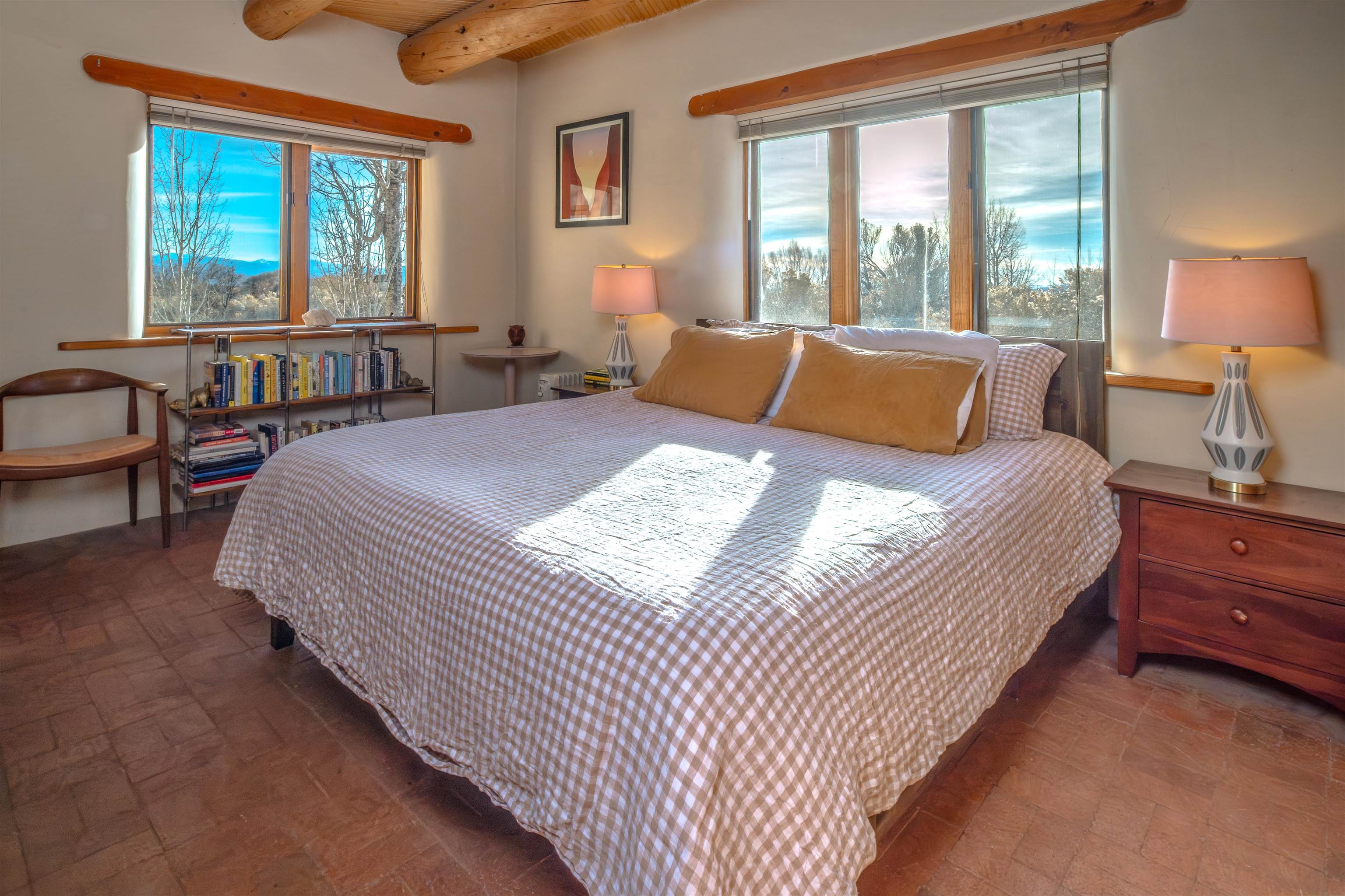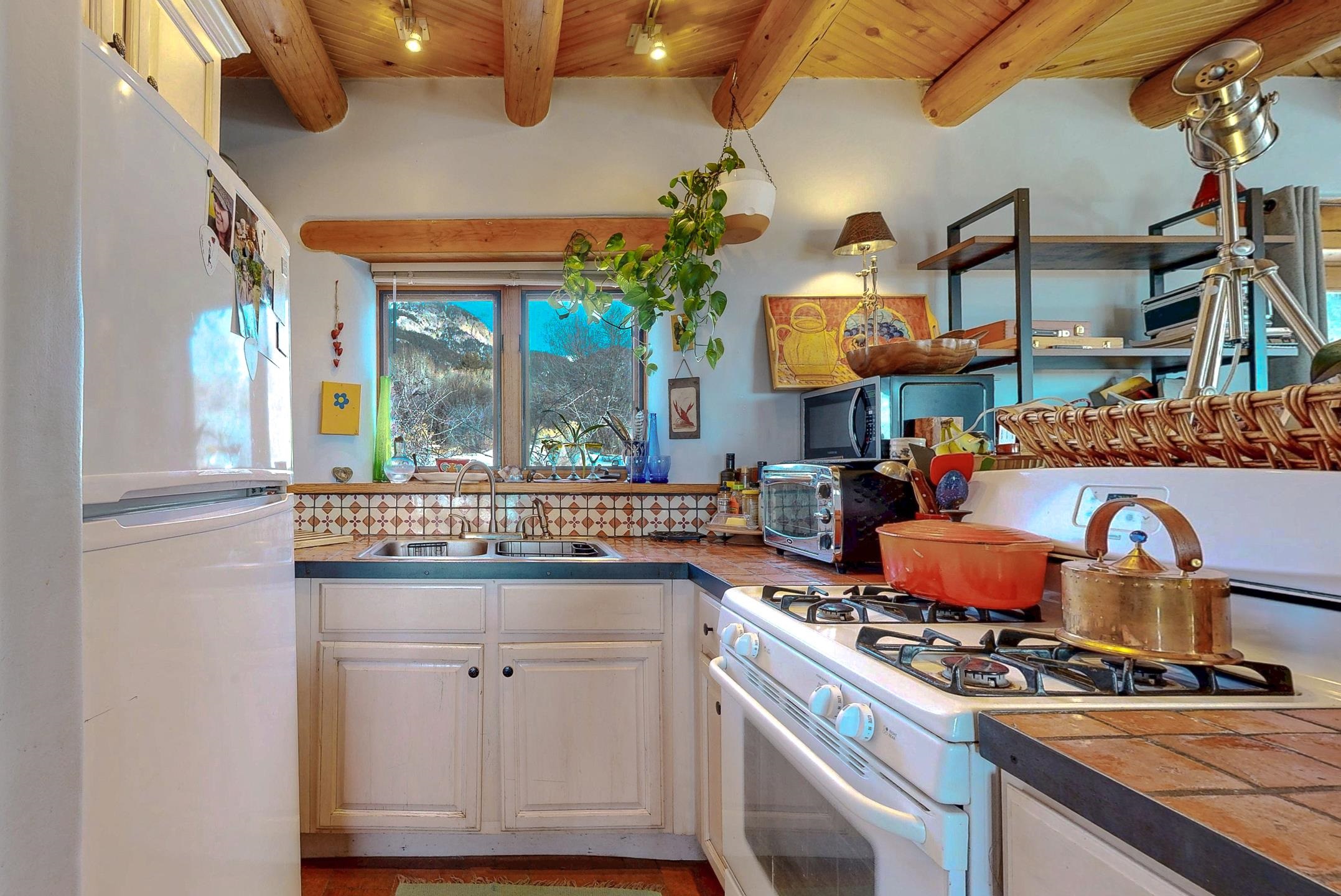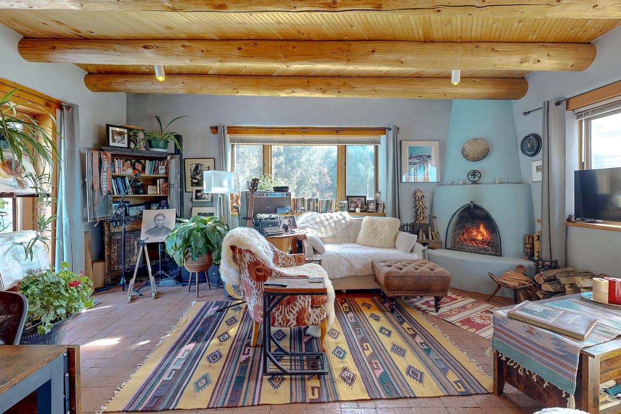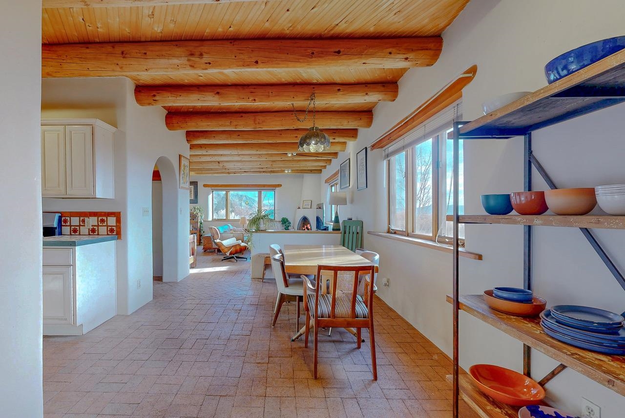 Authentic Adobe Home in Desirable El Salto with Casita & Mountain Views Nestled in the highly sought-after El Salto area, this authentic adobe-and-stucco property offers timeless Northern New Mexico charm amid breathtaking mountain views. The main residence features 2 bedrooms and 2 baths, complemented by a detached 1-bedroom, 1-bath casita — ideal for guests, rental income, studio space, or multigenerational living. Both structures are traditional adobe construction with classic stucco exteriors, reflecting the enduring architectural heritage of Taos. The main home showcases exposed vigas, tongue-and-groove wood ceilings, warm brick flooring, smooth plaster walls, and a charming kiva fireplace that anchors the living area. Expansive windows frame dramatic views of the surrounding mountains and mesa while filling the home with beautiful natural light throughout the day. The kitchen maintains regional character with handcrafted tile details and scenic outlooks. Bedrooms are tranquil and sun-filled, while bathrooms feature colorful tile accents consistent with classic Southwestern style. Outside, the property enjoys wide-open skies, mature trees, and a peaceful setting that captures the magic of El Salto. The detached casita offers privacy and versatility, making this property well-suited for full-time living, a part-time retreat, or investment potential. Located just minutes from the Village of Arroyo Seco with its charming shops, restaurants, galleries, and artisan culture. World-class skiing at Taos Ski Valley is only a short drive away, and the Historic Taos Plaza with additional dining and shopping options is conveniently close. A rare opportunity to own an authentic adobe home and casita in one of Taos’ most desirable and scenic locations. Don't let this gem slip away! MATTERPORT VIDEO - CASITA https://my.matterport.com/show/?m=RUb6rfUrNaE DRONE VIDEO: https://vimeo.com/1164014754 Fire in fireplaces is virtually staged. Seasonal change photos are virtually staged.