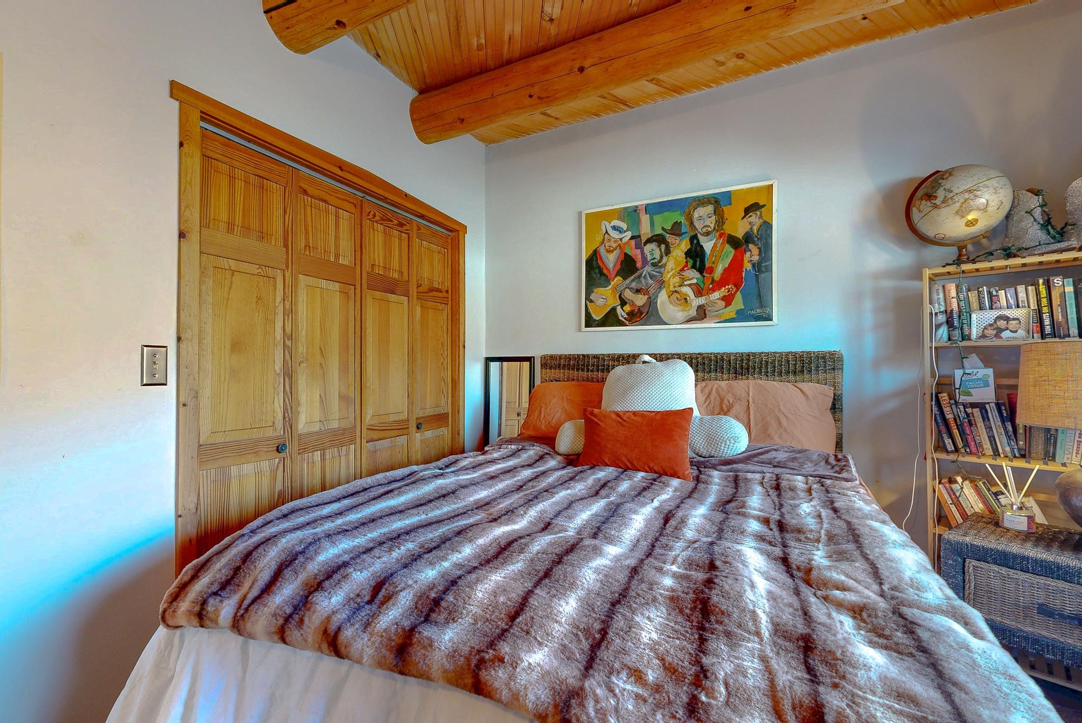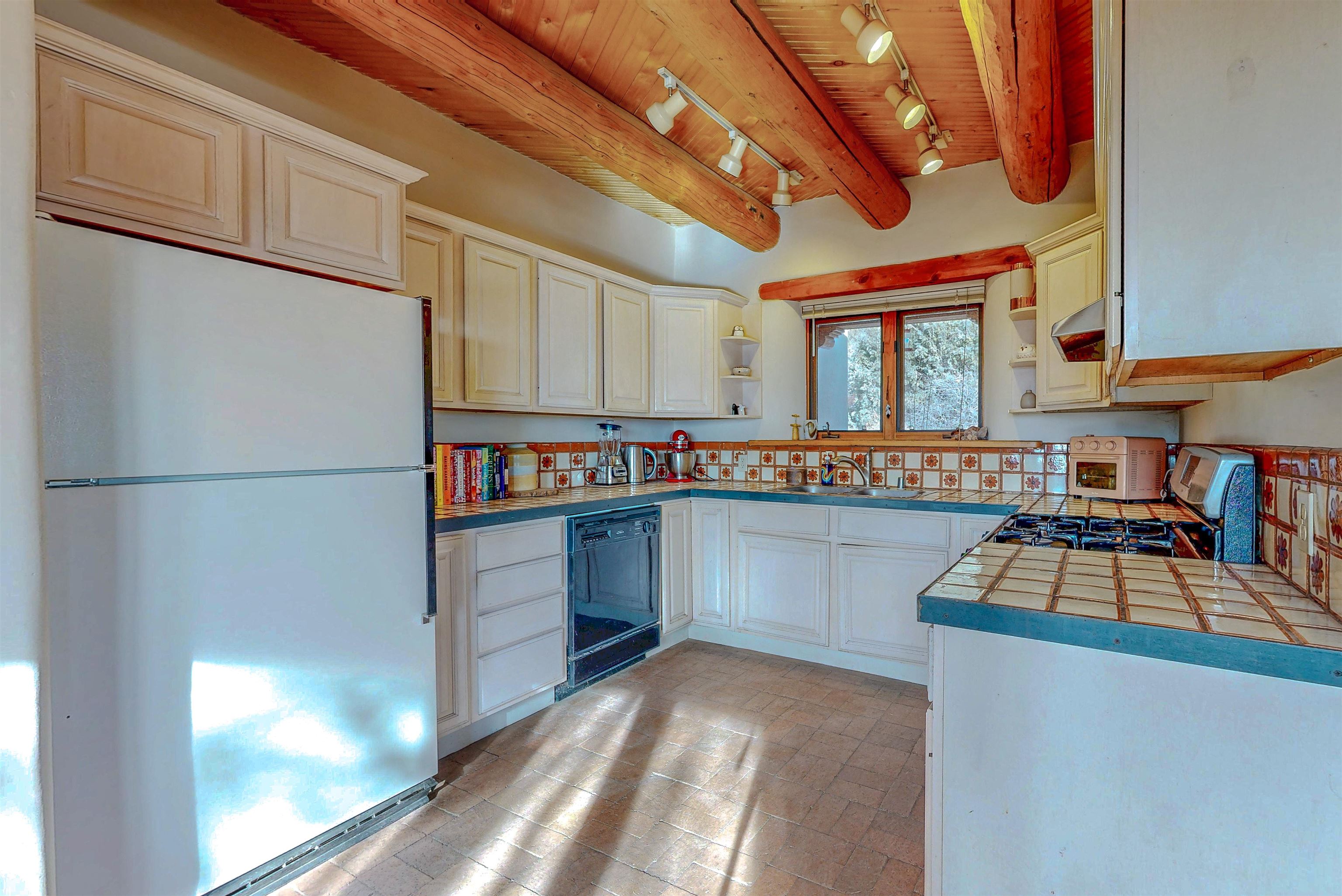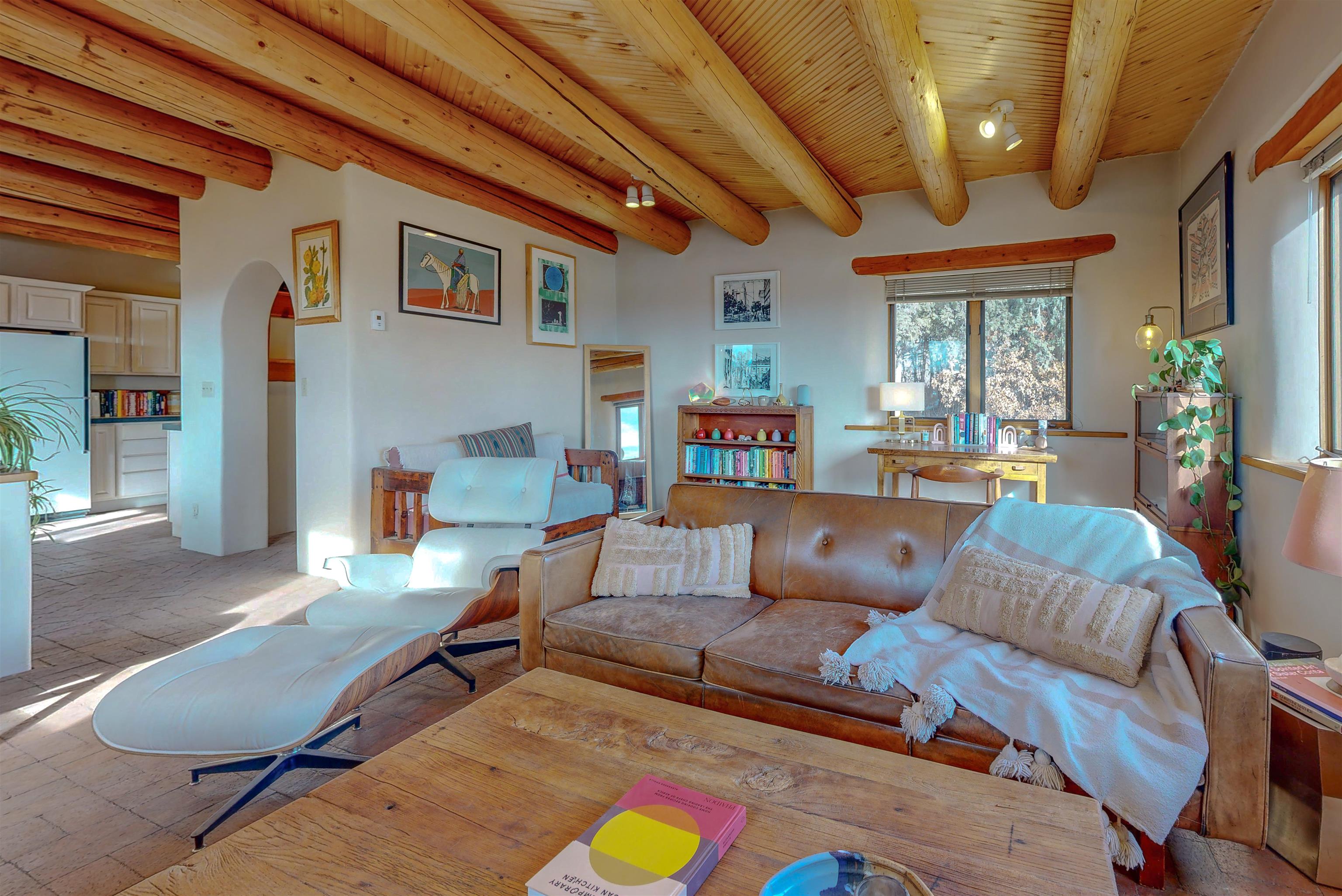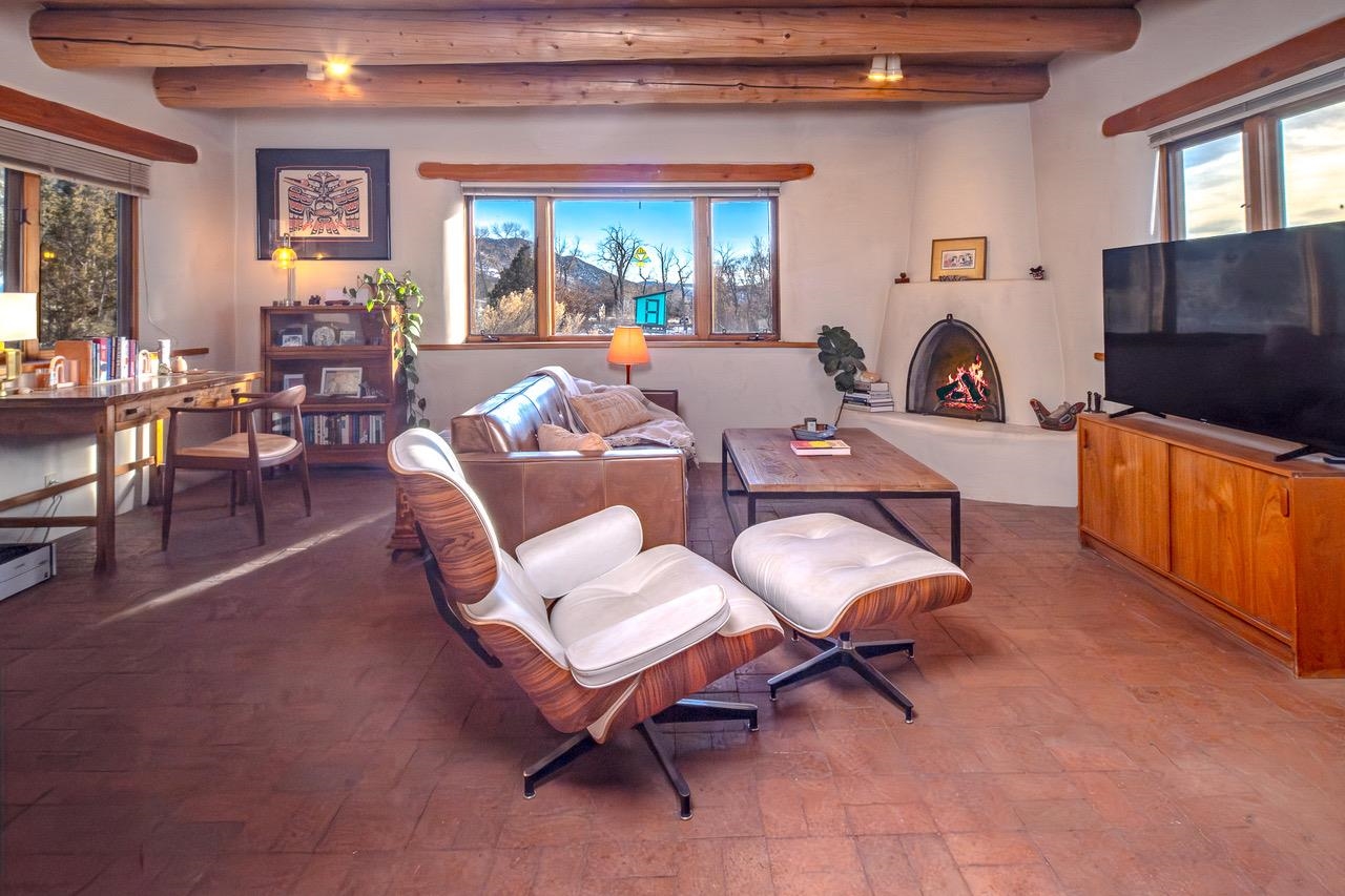 Authentic Adobe Home in Desirable El Salto with Casita & Mountain Views Nestled in the highly sought-after El Salto area, this authentic adobe-and-stucco property offers timeless Northern New Mexico charm amid breathtaking mountain views. The main residence features 2 bedrooms and 2 baths, complemented by a detached 1-bedroom, 1-bath casita — ideal for guests, rental income, studio space, or multigenerational living. Both structures are traditional adobe construction with classic stucco exteriors, reflecting the enduring architectural heritage of Taos. The main home showcases exposed vigas, tongue-and-groove wood ceilings, warm brick flooring, smooth plaster walls, and a charming kiva fireplace that anchors the living area. Expansive windows frame dramatic views of the surrounding mountains and mesa while filling the home with beautiful natural light throughout the day. The kitchen maintains regional character with handcrafted tile details and scenic outlooks. Bedrooms are tranquil and sun-filled, while bathrooms feature colorful tile accents consistent with classic Southwestern style. Outside, the property enjoys wide-open skies, mature trees, and a peaceful setting that captures the magic of El Salto. The detached casita offers privacy and versatility, making this property well-suited for full-time living, a part-time retreat, or investment potential. Located just minutes from the Village of Arroyo Seco with its charming shops, restaurants, galleries, and artisan culture. World-class skiing at Taos Ski Valley is only a short drive away, and the Historic Taos Plaza with additional dining and shopping options is conveniently close. A rare opportunity to own an authentic adobe home and casita in one of Taos’ most desirable and scenic locations. Don't let this gem slip away! MATTERPORT VIDEO - CASITA https://my.matterport.com/show/?m=RUb6rfUrNaE DRONE VIDEO: https://vimeo.com/1164014754 Fire in fireplaces is virtually staged. Seasonal change photos are virtually staged.