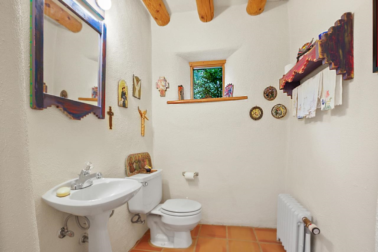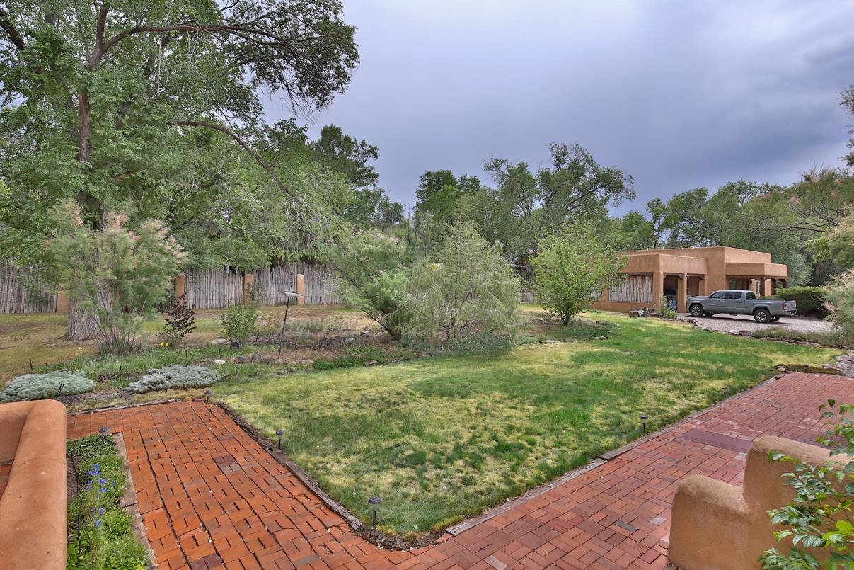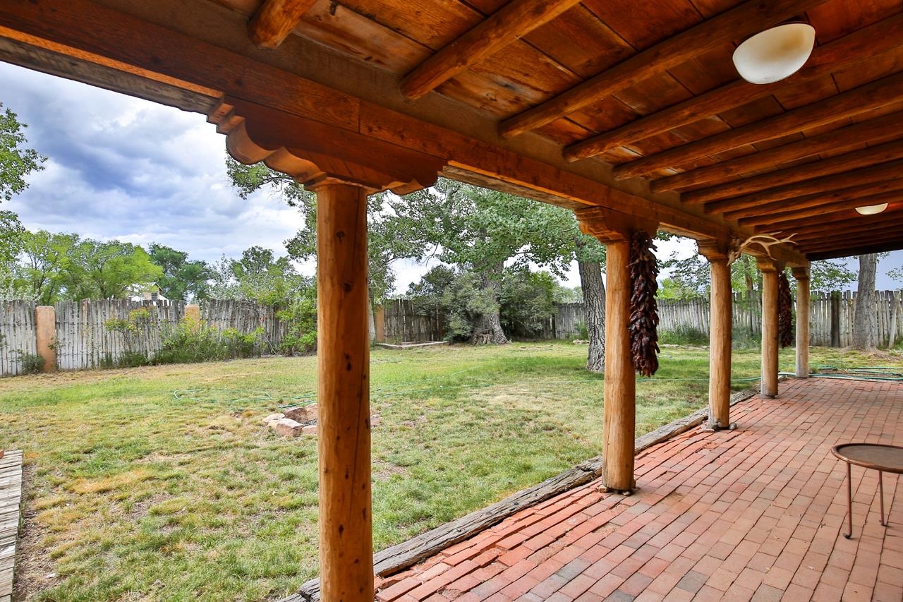 Privately set on 5.33 irrigated acres at the south end of Taos, this rare over-100-year-old, double-thick adobe estate offers enduring craftsmanship, warmth, and authenticity that cannot be replicated. Originally built in 1928, the substantial adobe walls provide exceptional insulation, quiet, and structural presence—hallmarks of true historic Taos construction. The home features seven traditional kiva fireplaces, creating warmth, character, and ambiance throughout multiple living spaces. A gracious central hallway serves as a gallery-style entrance, ideal for art display, and connects spacious rooms that flow naturally for both everyday living and entertaining. The kitchen, breakfast nook, formal dining room, library, and office provide a flexible and functional layout with room to gather or retreat. With four bedrooms, three with ensuite baths, the home offers comfort and privacy for residents and guests. An attached art studio with a two-car carport adds versatility and presents an excellent opportunity for conversion into a guest casita, creative studio, or private retreat. The expansive acreage and irrigated land create a true compound setting, offering ample room for future improvements such as additional guest structures, gardens, or recreational spaces (subject to approvals). Rich in history, substance, and potential, this distinctive adobe property represents a rare opportunity to own an authentic Taos estate with room to grow.