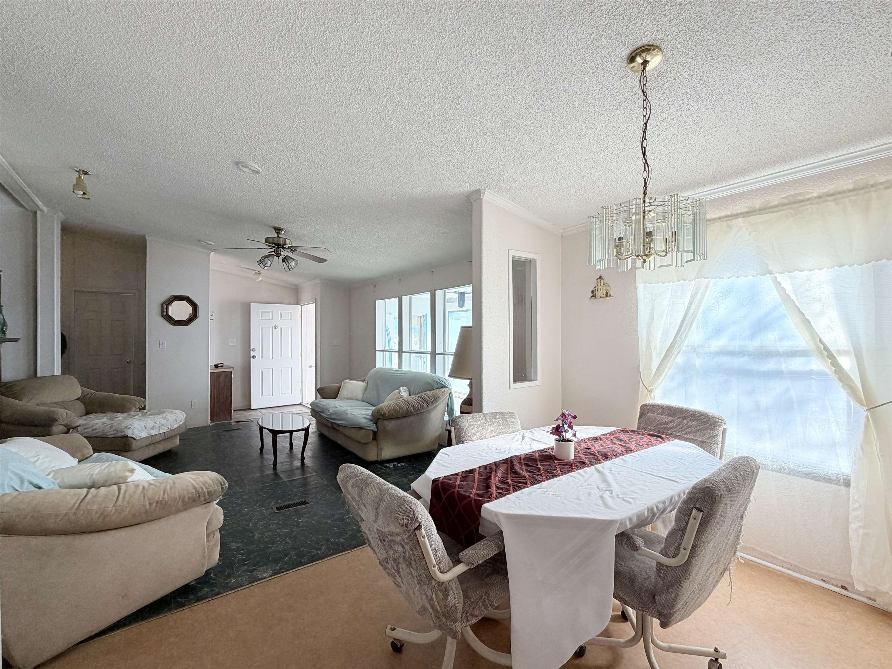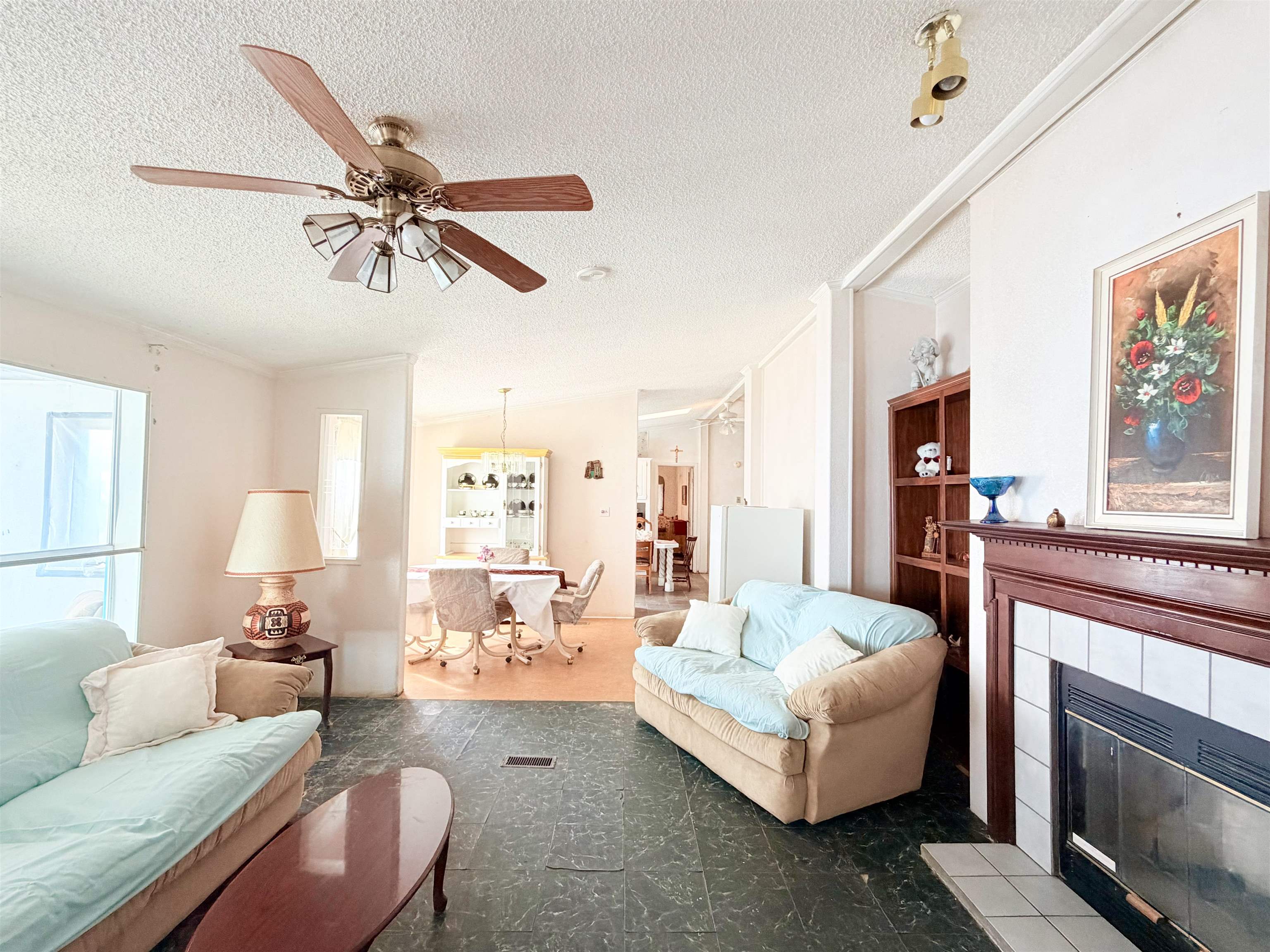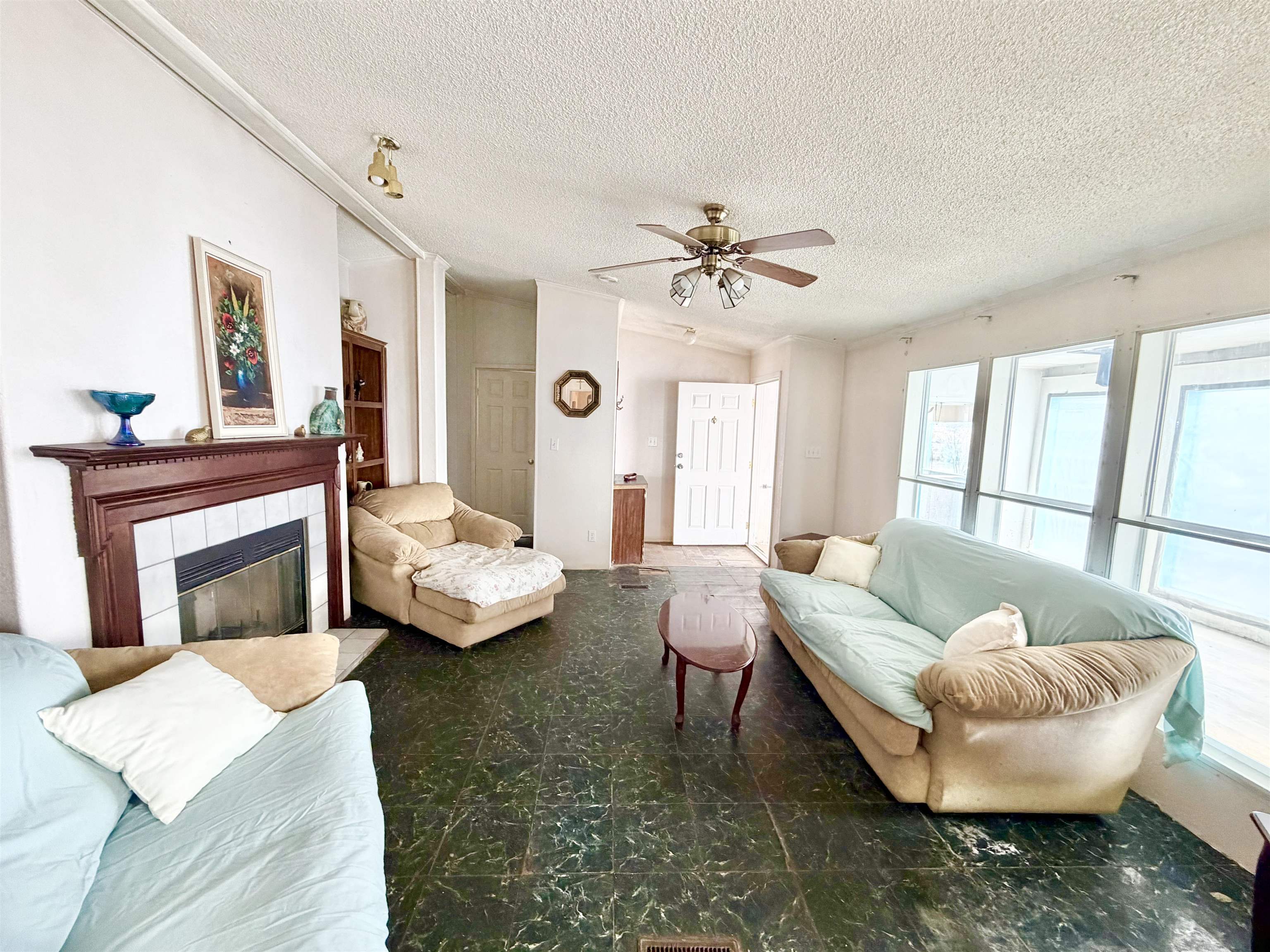 This spacious 76'x28' manufactured home, spanning approximately 2,326 square feet, offers very nice views and an expansive open sky. With four bedrooms and three bathrooms, it provides ample room for your family and any future endeavors. The property features a second area on the north side, equipped with water and septic hookups, ideal for constructing or placing another manufactured home. Additionally, a detached, hand-built garage and a shed are conveniently located adjacent to the main residence. Upon entering, you are greeted by a generous sunroom that seamlessly transitions into the main living room through the front door. The expansive common areas, characterized by high ceilings, create a welcoming and airy atmosphere throughout the home. Three spacious bedrooms and a bathroom are situated on the east side, while the primary bedroom and ensuite bathroom are located on the west side. A third bathroom adjacent to the washroom ensures easy access for entertaining guests and accommodating visitors. This home offers generous accommodations, providing ample opportunities for imagination and creativity. Contact us today to schedule a viewing and discover how this property can best meet your needs.