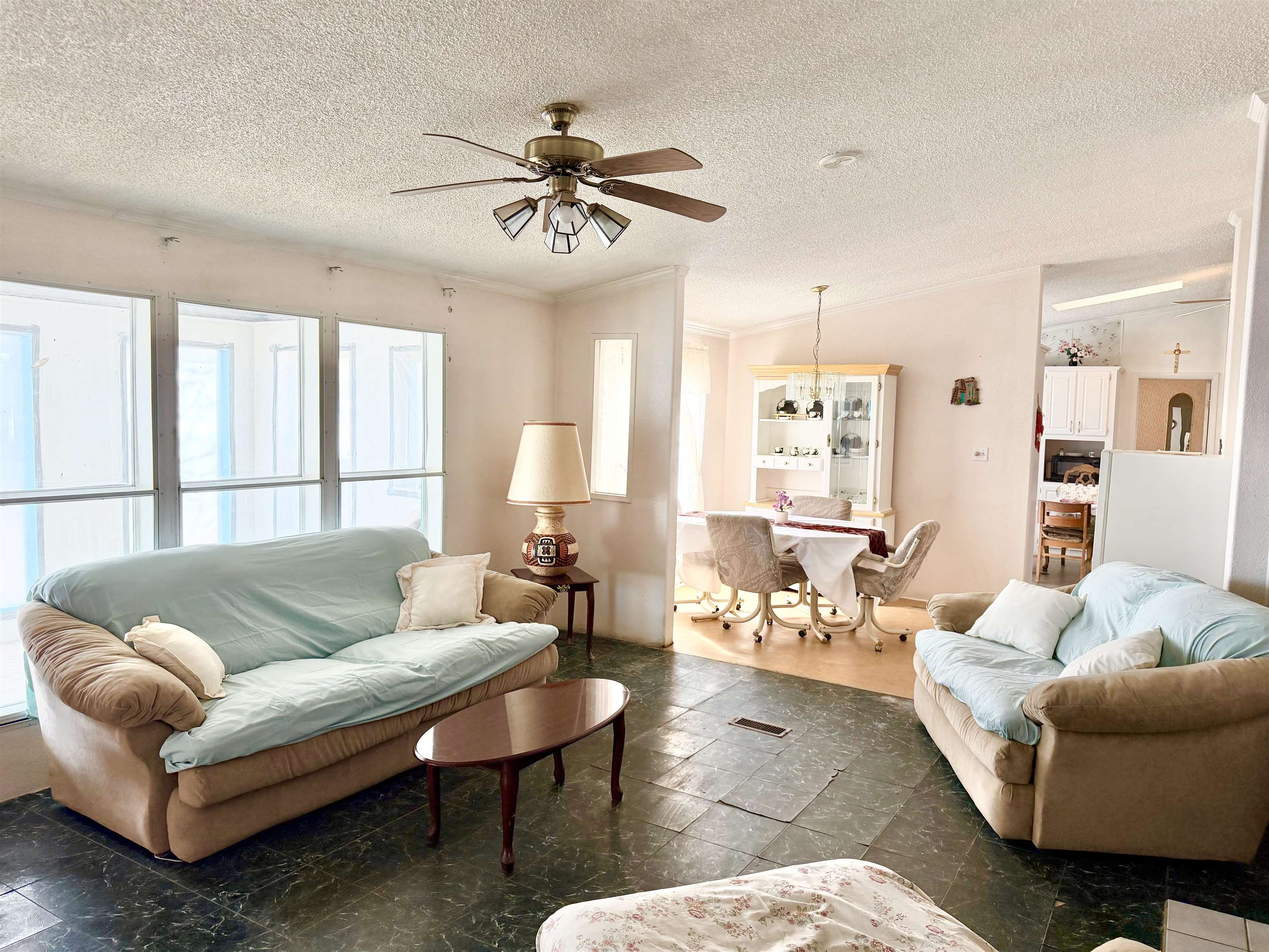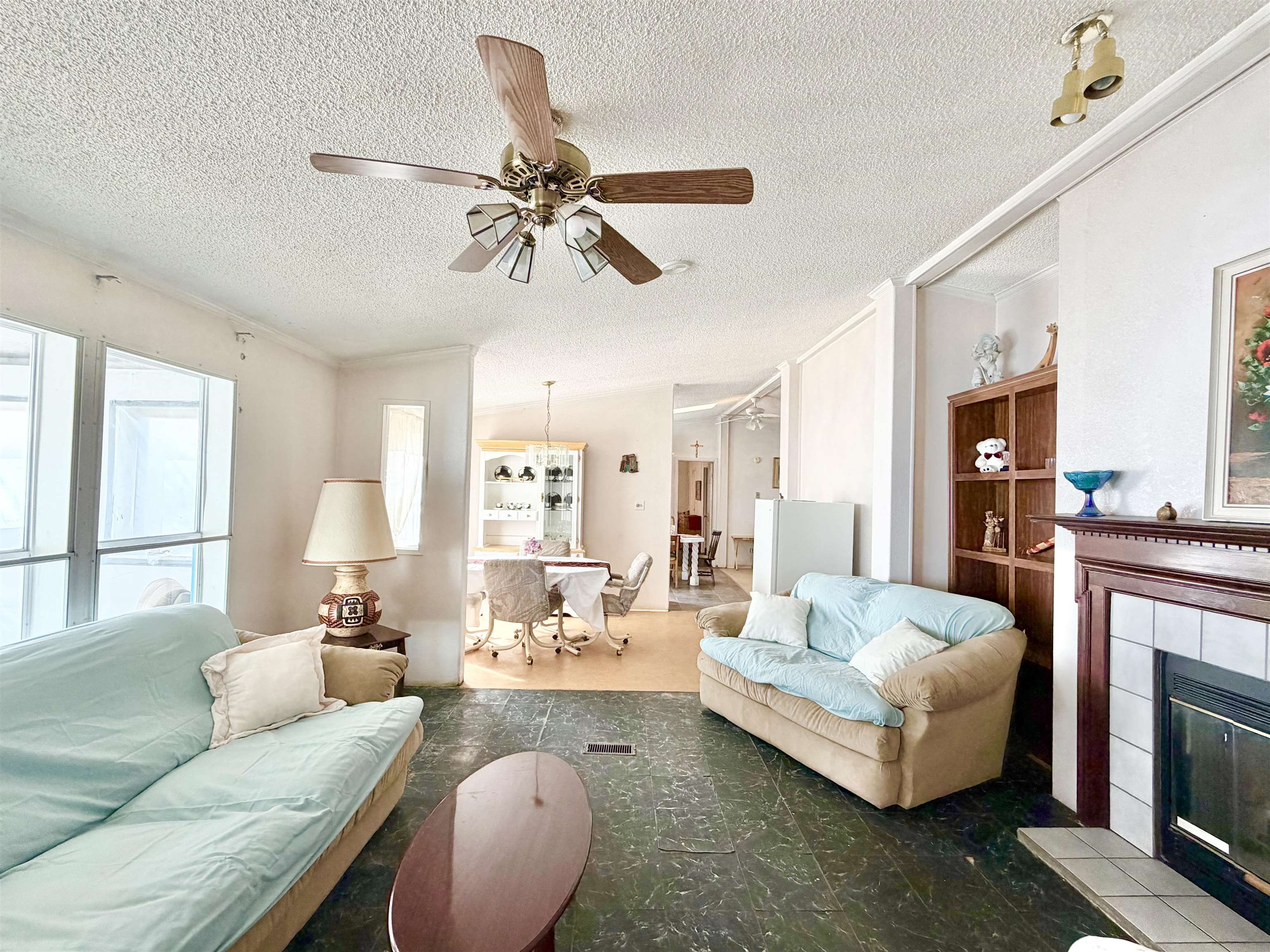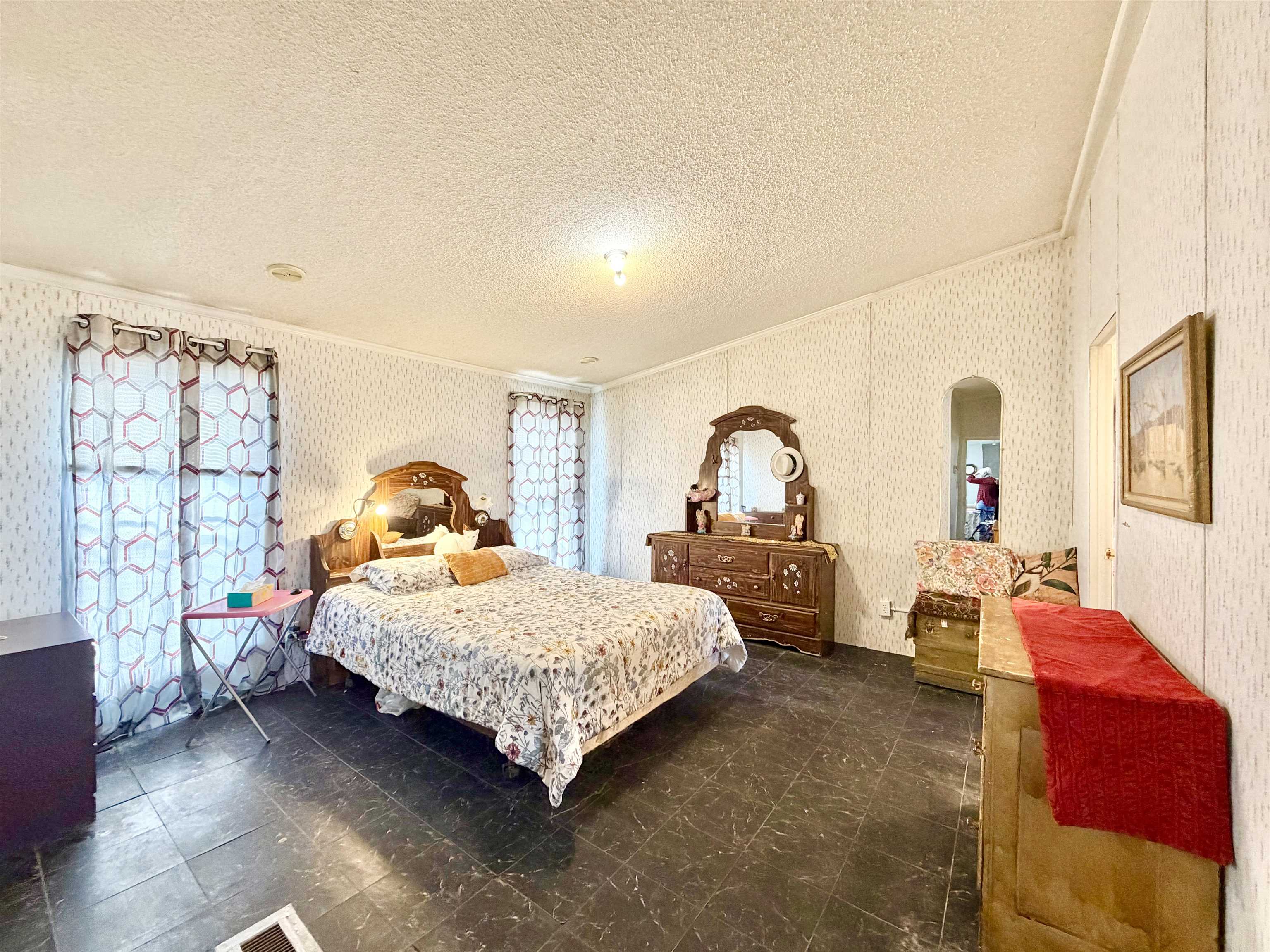 This spacious 76'x28' manufactured home, spanning approximately 2,326 square feet, offers very nice views and an expansive open sky. With four bedrooms and three bathrooms, it provides ample room for your family and any future endeavors. The property features a second area on the north side, equipped with water and septic hookups, ideal for constructing or placing another manufactured home. Additionally, a detached, hand-built garage and a shed are conveniently located adjacent to the main residence. Upon entering, you are greeted by a generous sunroom that seamlessly transitions into the main living room through the front door. The expansive common areas, characterized by high ceilings, create a welcoming and airy atmosphere throughout the home. Three spacious bedrooms and a bathroom are situated on the east side, while the primary bedroom and ensuite bathroom are located on the west side. A third bathroom adjacent to the washroom ensures easy access for entertaining guests and accommodating visitors. This home offers generous accommodations, providing ample opportunities for imagination and creativity. Contact us today to schedule a viewing and discover how this property can best meet your needs.