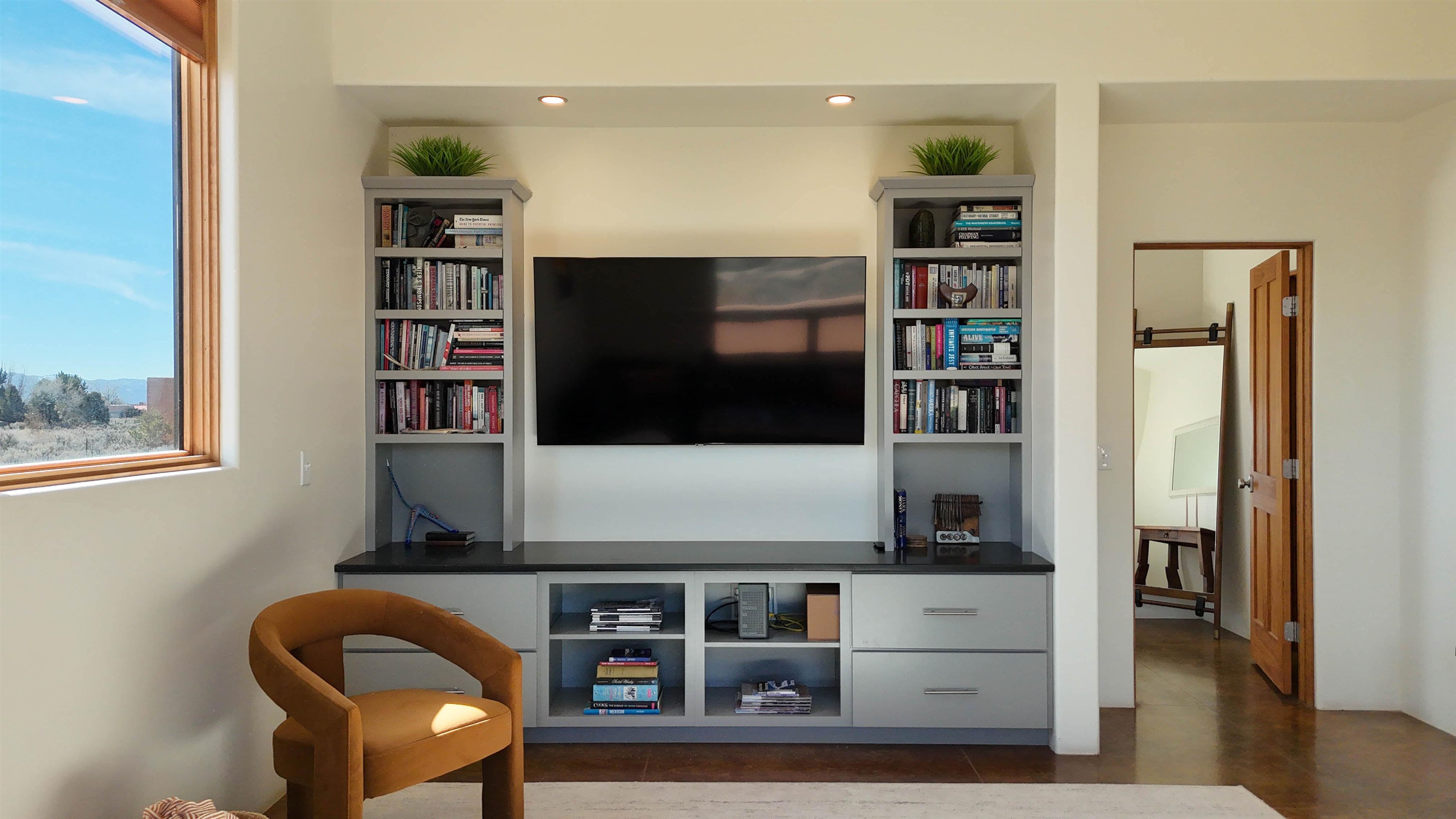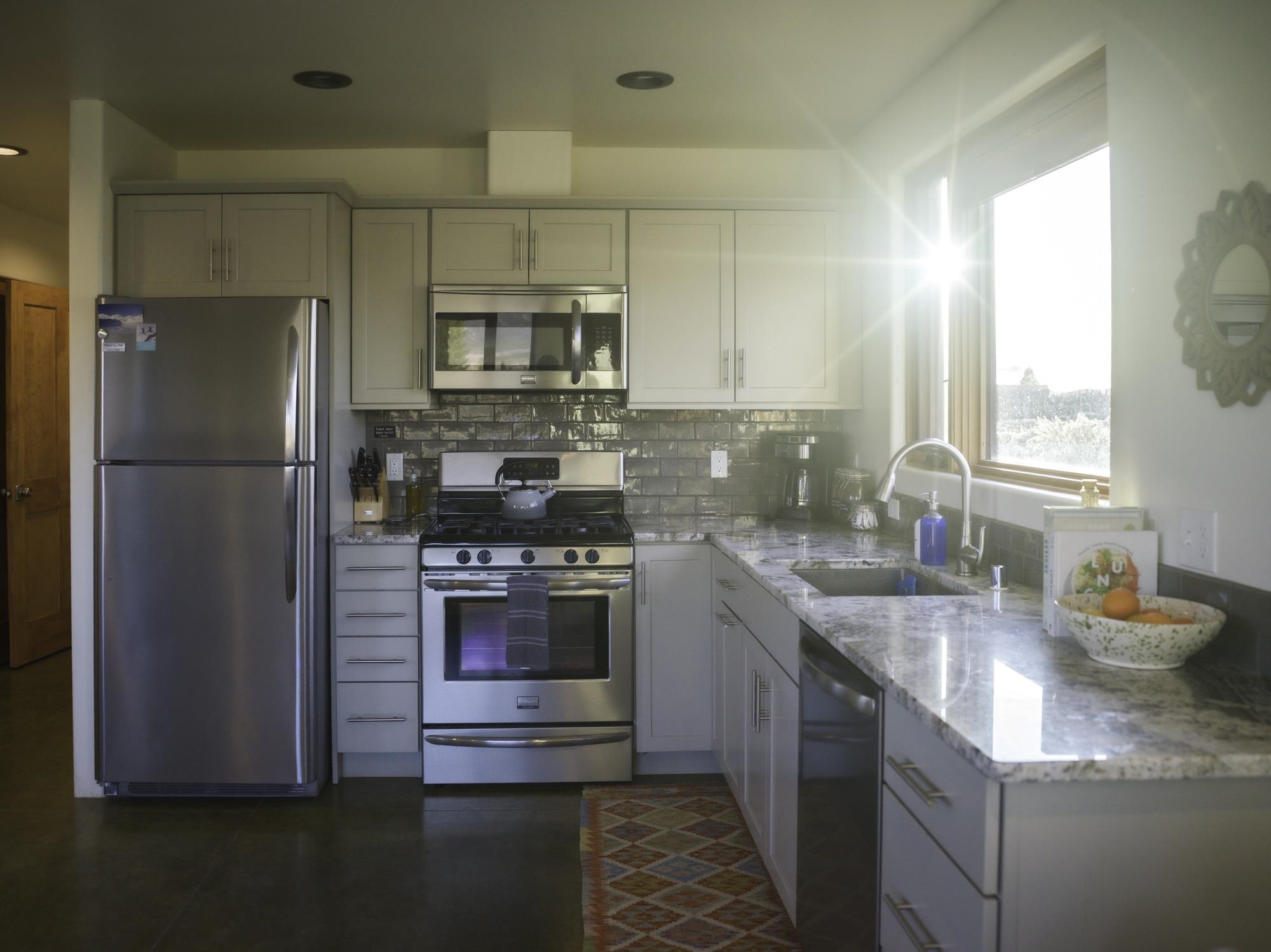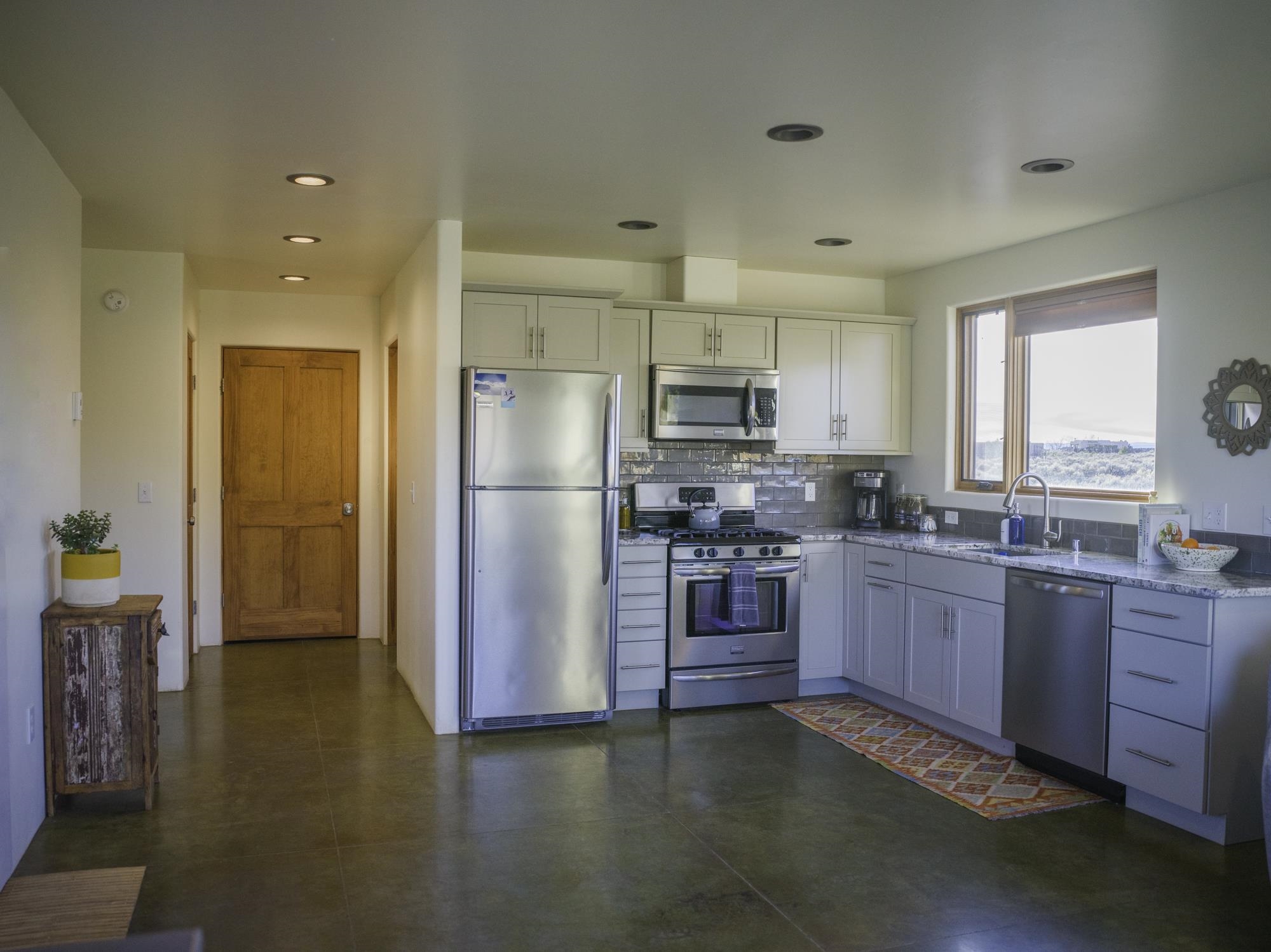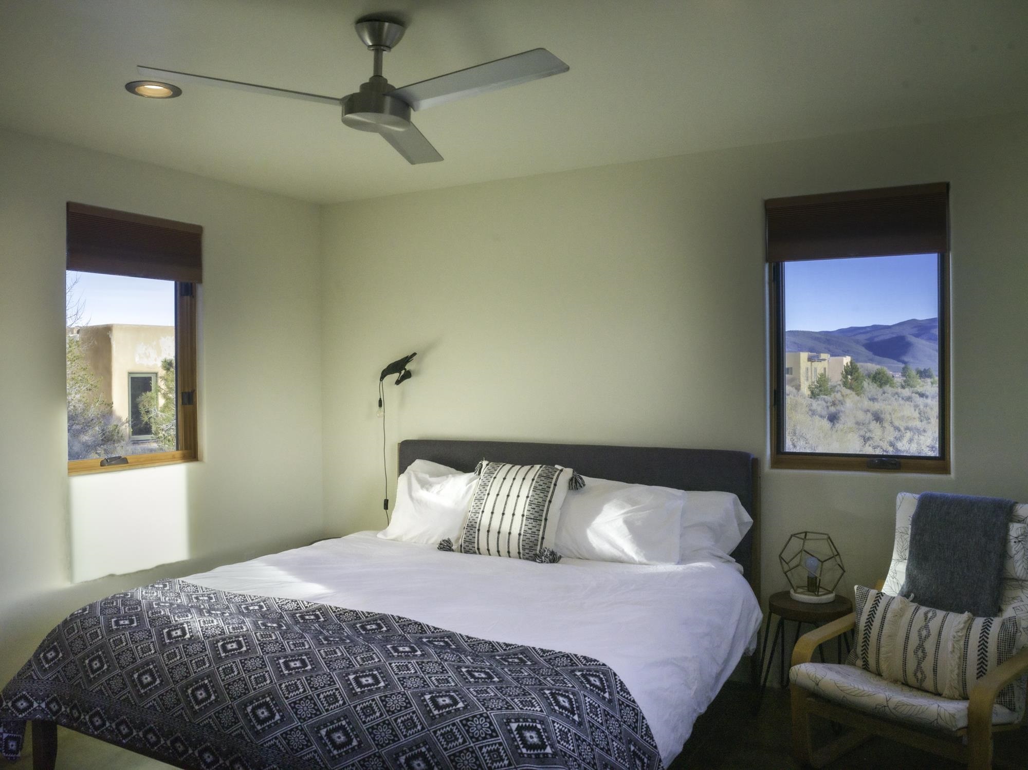 Framed by unobstructed views of Taos Mountain and set in one of El Prado’s most desirable locations, this 2018-built residence reflects a thoughtful, modern approach to high-desert living. The architecture is clean and restrained, allowing light, proportion, and landscape to take the lead. Just 10 minutes from the Plaza in Taos and 20 minutes from Taos Ski Valley, the setting offers both quiet and connection, perfect for supporting a range of living and income possibilities. The 1,748 sq ft main home features 2 bedrooms and 2 baths beneath soaring ceilings, with radiant-heated concrete floors grounding the interiors in warmth and subtle texture. Open living spaces are intentionally oriented toward the mountain, creating a seamless dialogue with the indoors. Finishes are contemporary and refined, with an emphasis on clean lines, natural light, and livable simplicity. An attached heated garage integrates convenience without interrupting the home’s aesthetic clarity. A completely separate 740 sq ft guest house — 1 bedroom, 1 bath — mirrors the same design sensibility. Bright, efficient, and beautifully proportioned, perfect for a private retreat, studio, or income-producing space with a strong short-term rental history available for review. Well-sited on its acre, modern in execution, and quietly architectural in presence, this is a home where design and landscape are in balance.