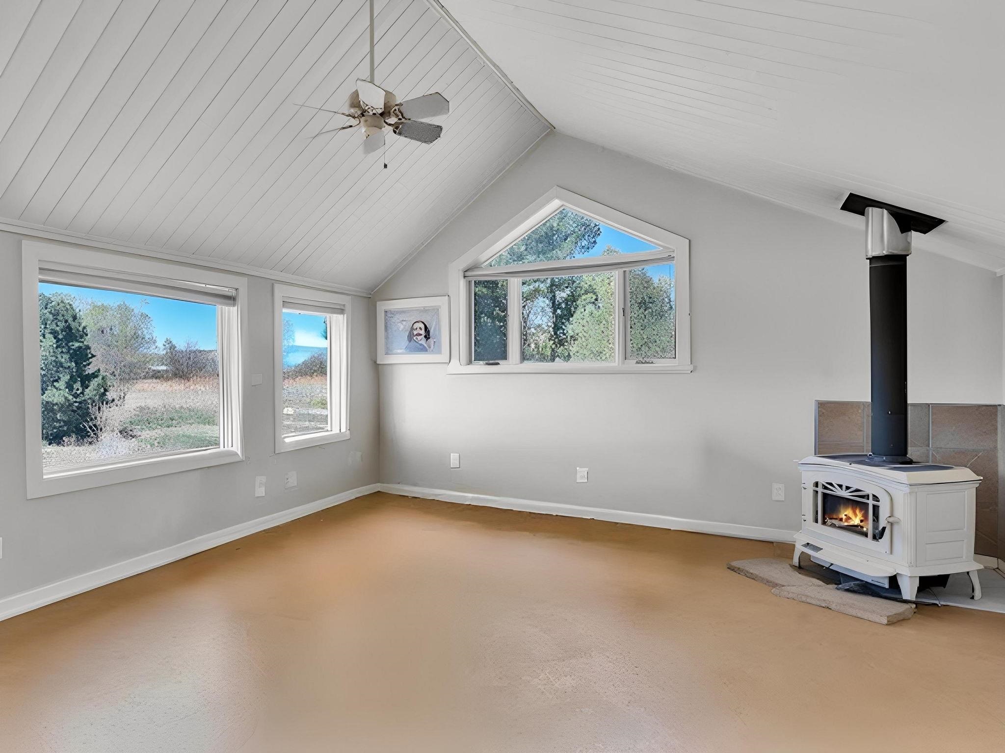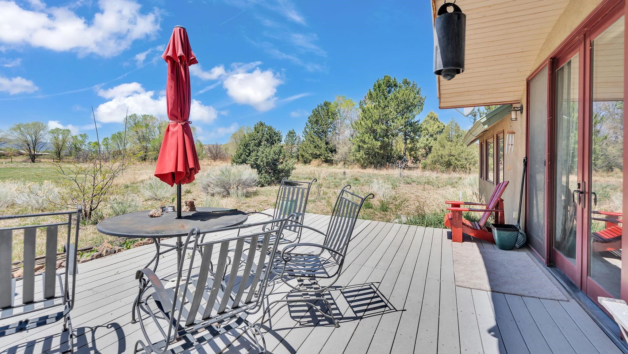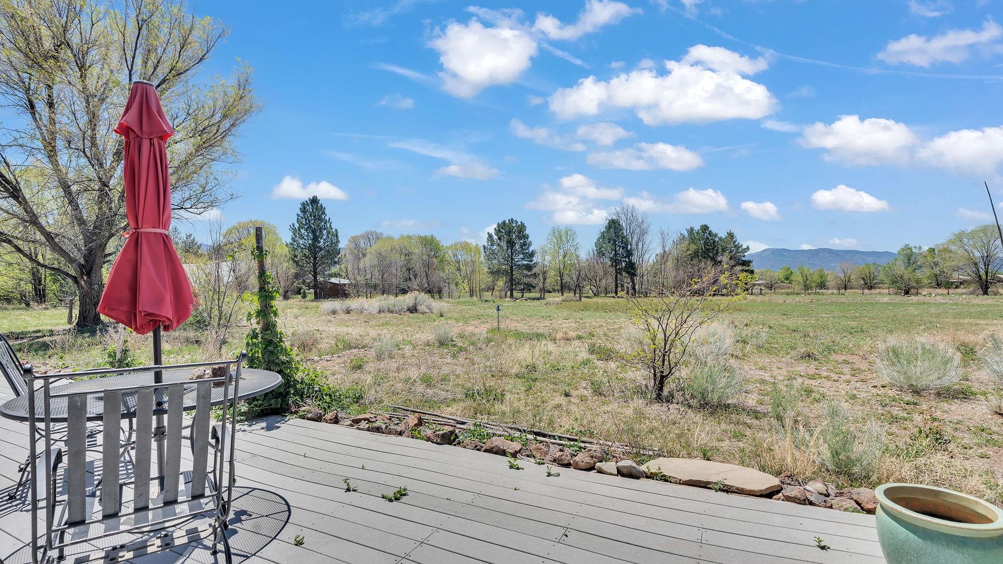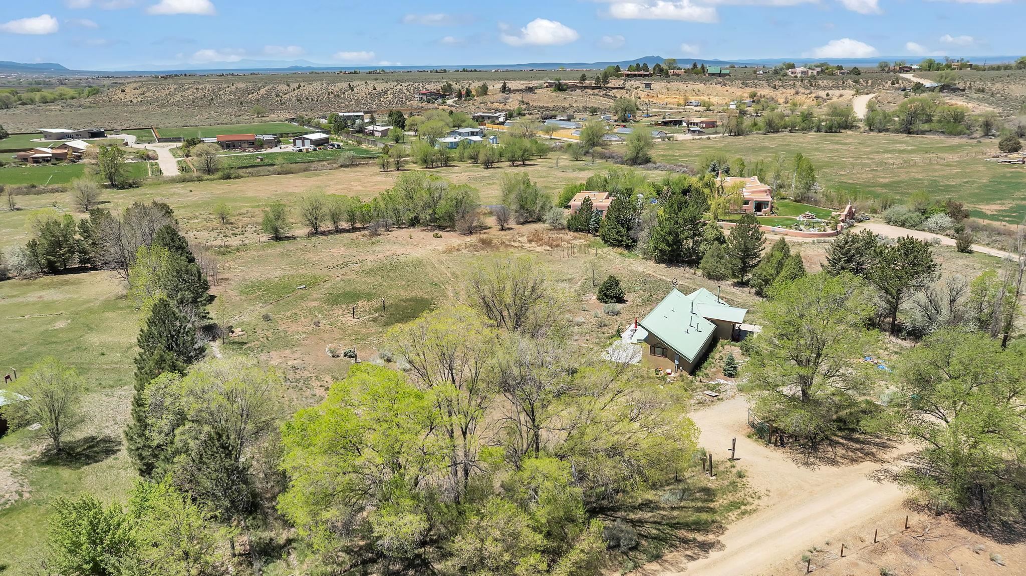A Perfect Sanctuary in the El Prado Valley ~ Nestled within the tranquil El Prado valley you will find this remarkable contemporary Southwest-style home sitting on nearly 2 irrigated acres with invaluable acequia surface water rights. Surrounded by mature trees and completely enclosed by a private fence, this secure haven offers some of the most breathtaking sunset views to be enjoyed from the backyard deck. The home itself is an architectural gem that is filled with natural light that ensures efficient warmth during the colder months, accompanied by an efficient wood burning stove in the corner of the living room which keeps the whole home cozy. Additionally, the home is pre-plumbed for hot water radiant heat if the new owner desires to upgrade. The fully loaded kitchen is a culinary dream, equipped with stainless steel appliances, ready for you to create and share delicious memories. The unique design features a sturdy metal roof with an appropriate pitch and overhang to deter rain and snow. Outside, the expansive yard is a rare find in El Prado, offering endless possibilities for expansion, gardening, and farming. Imagine cultivating your own bountiful garden or simply enjoying the vast open space for children to play freely, and pets to roam. This property presents the perfect blend of thoughtfully designed square footage and expansive land in the heart of coveted El Prado with easy access to both Downtown Taos, and the Taos Ski Valley or Rio Grande River for fun. Don't miss this extraordinary chance to make this unique residence your own. Don't miss the opportunity to own the perfect blend of comfortable living space and expansive land in the highly coveted El Prado neighborhood.