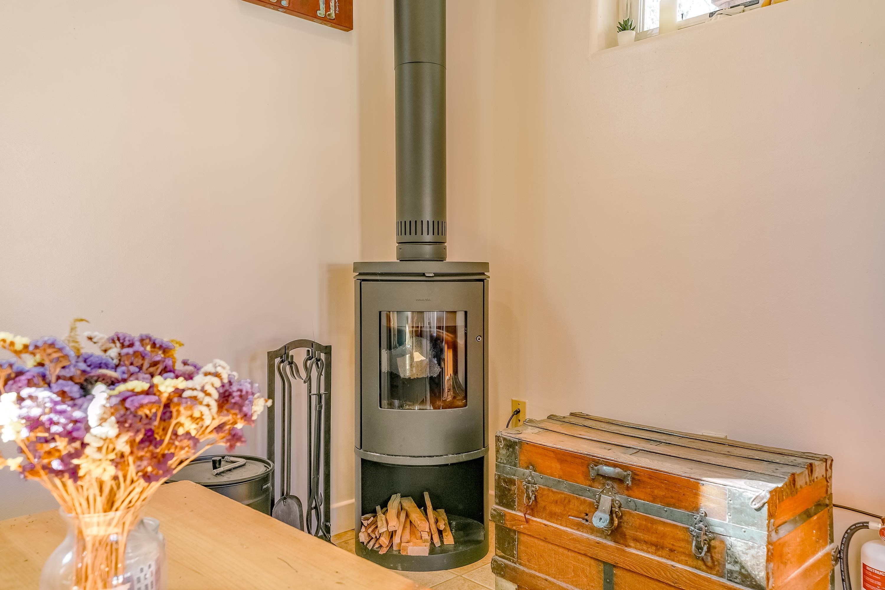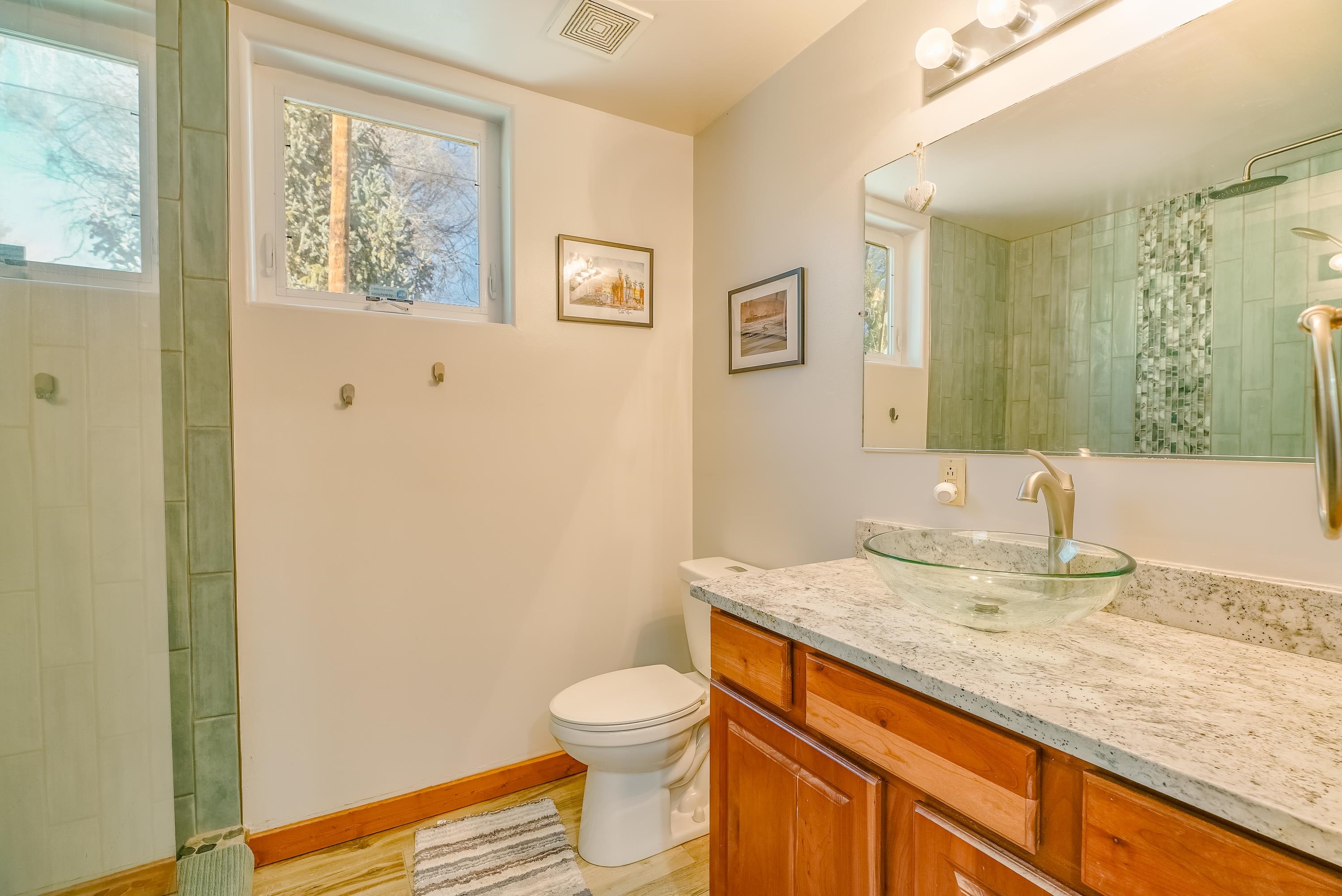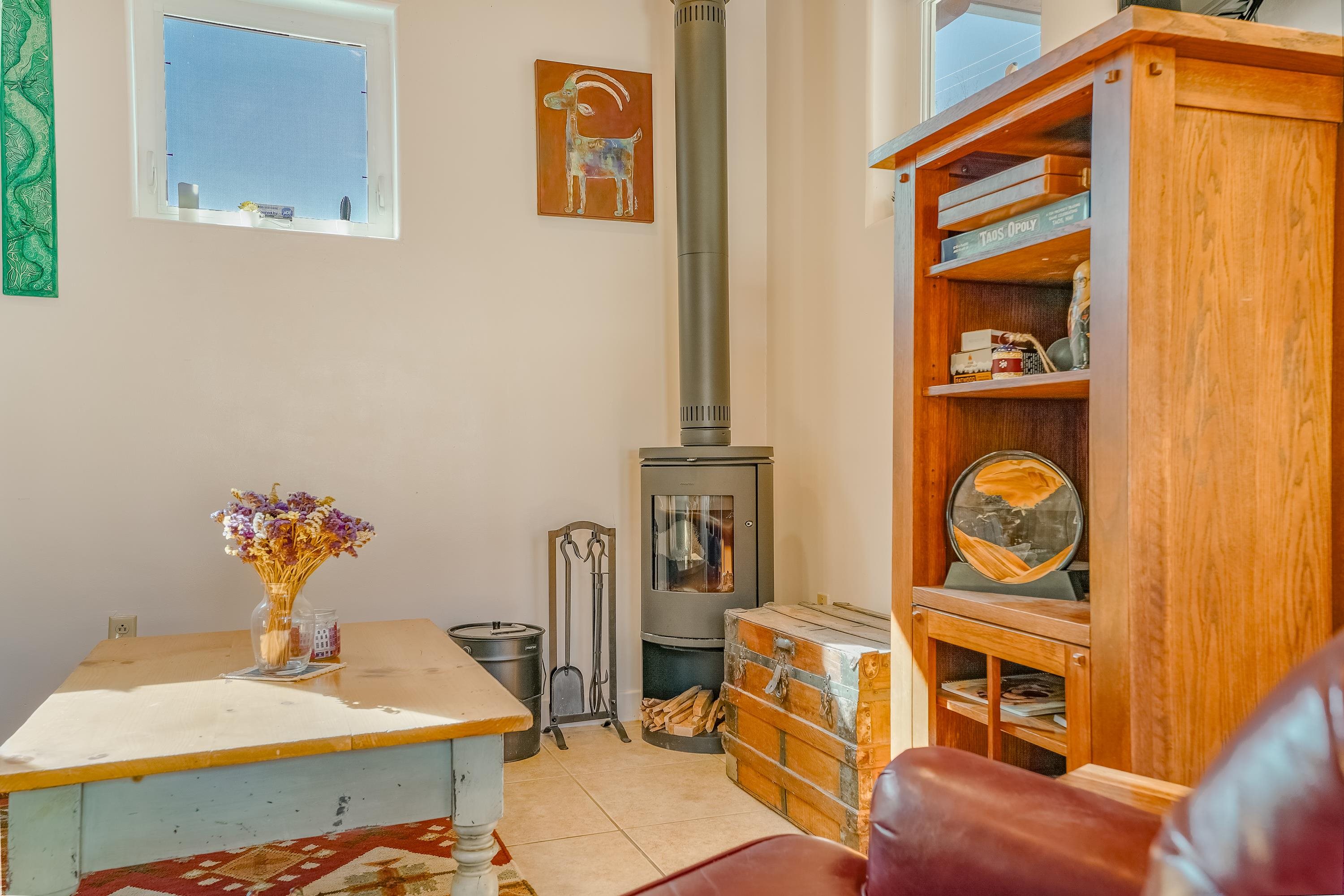 Location, convenience, and the best floor plan you can ask for makes this home stand out! On a quiet dead-end street right in the middle of town, the home is just a few minutes walk away from the plaza, grocery stores, and local shops. Featuring two primary suite bedrooms positioned on opposite sides of the house, each with its own en-suite bathroom, making it ideal for owners and guests to enjoy their own private spaces. Next to both bathrooms there is generous built in cabinetry for all your home goods, clothes, and more. The living room is finished with soft wood touches, properly placed windows to maximize natural light and a sleek wood burning fireplace. Tile throughout the home makes the mud that we so love here in New Mexico easy to clean up! The kitchen is flexible and functional with a movable island that can be adjusted to fit the owner’s needs. An on-demand hot water system provides both domestic hot water and radiant floor heating throughout the home. Natural gas hookup keeps your monthly utility bills lower than the cost of your Sunday brunch. A stacked washer and dryer means no trip to the laundry mat. Out back, the enclosed backyard creates a private outdoor area with aspen trees and plenty enough space for a dining and grilling area under the portal. Mature landscaping around the property is maintained by the HOA, keeping the exterior looking clean and well cared for without the extra work that comes along with maintaining your own yard. Randall Lane is lined with tall drooping willows, elms, and cottonwoods making it a peaceful place to take a walk. Oh! And don't forget that much for the furnishings and kitchen ware in the home will convey at the time of the sale; how about that for easy! Come see why this is a great spot to enjoy everything Taos has to offer just minutes away, while still feeling privately set back on a beautiful street with a winning floor plan.