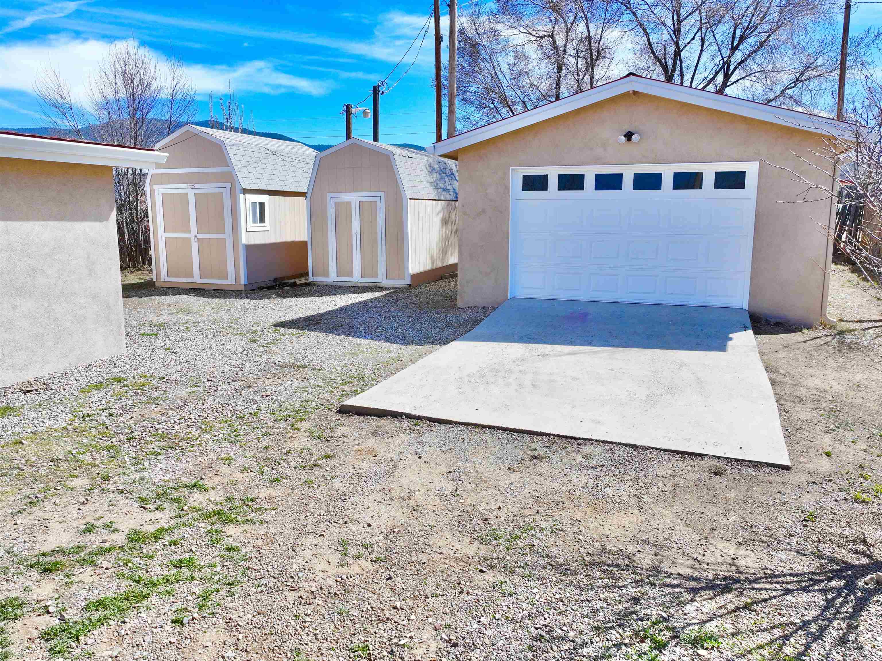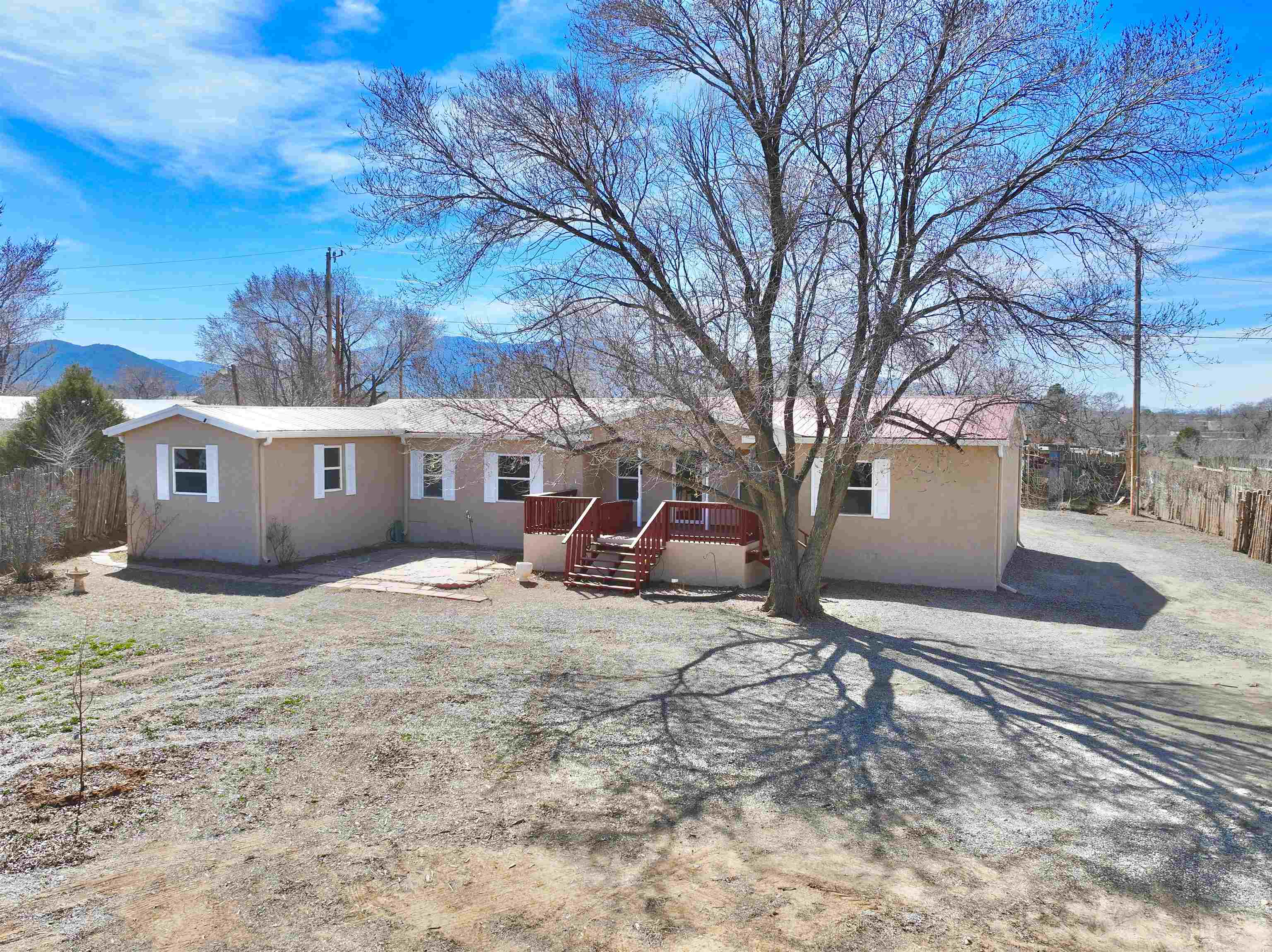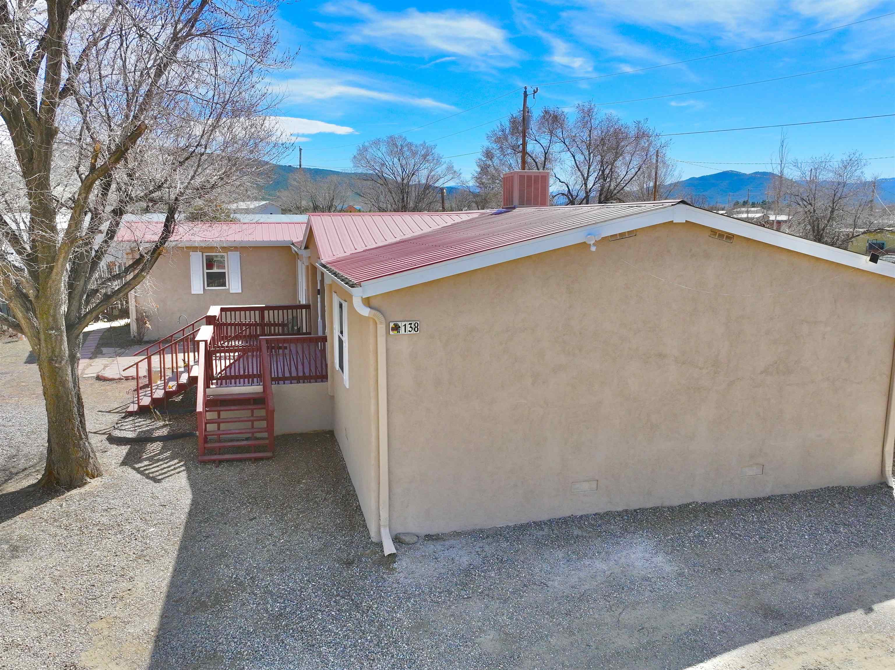 Welcome to 138 Dona Ana Drive, a peaceful and accessible home that offers approximately 2,381 sq. ft. of living space with 3 bedrooms, and 2 bathrooms on 1.18 acres of fenced land. This property is conveniently located within walking distance of the Taos Spa & Tennis Club, just outside the Town of Taos business district. Nearby amenities include restaurants, stores, and convenience stations. The home features stucco exterior walls, decking, pro-panel roofing, a one car oversized detached garage, two external storage sheds, both with ample storage space and mature fruit trees. Inside, you'll find two spacious living rooms, each with a fireplace. One living room offers a wood burning fireplace while the other offers a gas fireplace. Each living room has a door exiting to two separate portals where you will enjoy views of our beautiful Northern New Mexico mountain ranges, sun rises and sunsets. The 3 bedrooms and 2 bathrooms provide extremely comfortable living, with a bonus room off the primary suite. This bonus space can be used for just about anything your heart desires. The kitchen boasts customized cabinetry, granite countertops, and updated appliances including a refrigerator, microwave, range, and dishwasher. Off the kitchen, you will find a nicely sized and conveniently located laundry room with a door leading directly out into the backyard. The house has been freshly painted and features new carpet, new light fixtures, door knobs and outlet coverings, as well as some new doors. If all this doesn't have you sold just yet, one final bonus is that the home also has surface water rights appurtenant to the land. This home is truly an awesome buy as it literally offers everything a buyer would want and more. Schedule your showing today. You won't be disappointed.