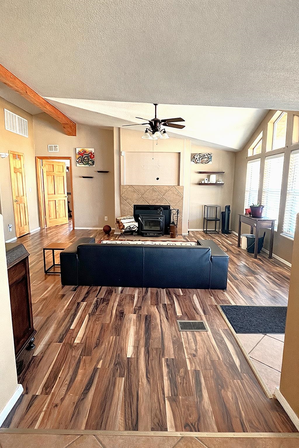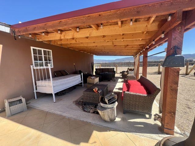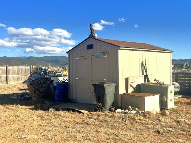 Set on 0.87 acres in beautiful Ranchos de Taos, this spacious 4-bedroom, 2-bath home offers comfort, flexibility, and inviting outdoor living, all framed by spectacular Northern New Mexico views. Inside, the flexible floor plan provides a variety of living options. The home features four true bedrooms, including one ideally suited as a home office, hobby room, or dedicated pet space, complete with a convenient doggy door providing direct access to the backyard. Updated blinds throughout much of the home create a clean, finished look, while refreshed ceiling fans in every bedroom add comfort and efficiency. Practical updates add peace of mind, including a newly upgraded well tank and a refrigerator less than a year old. When the weather turns cool, enjoy multiple heating options with an insert fireplace and pellet stove, adding warmth and ambiance to the living space. Outdoor living truly shines on this property. A full-length covered front porch offers the perfect place to relax and take in the peaceful surroundings, while the expanded rear patio provides space for entertaining or quiet evenings outdoors. The patio features partial coverage and solar perimeter lighting, creating a welcoming atmosphere for gatherings under the Northern New Mexico sky. A water catchment system has also been installed to help efficiently water plants and garden areas. The fully fenced backyard offers a secure space for pets and children, and added gravel helps minimize mud and keep things cleaner when coming and going. A 12' x 10' Tuff Shed (installed in 2022) provides durable, lockable storage for tools, outdoor equipment, and gear. With nearly an acre of land, there is plenty of room for a future carport, garage, garden, or additional outdoor projects. Offered partially furnished, this home adds convenience and value for the next owner. With practical upgrades, versatile living space, and room to grow, this property offers a wonderful opportunity to enjoy the space, views, and relaxed lifestyle of Ranchos de Taos.