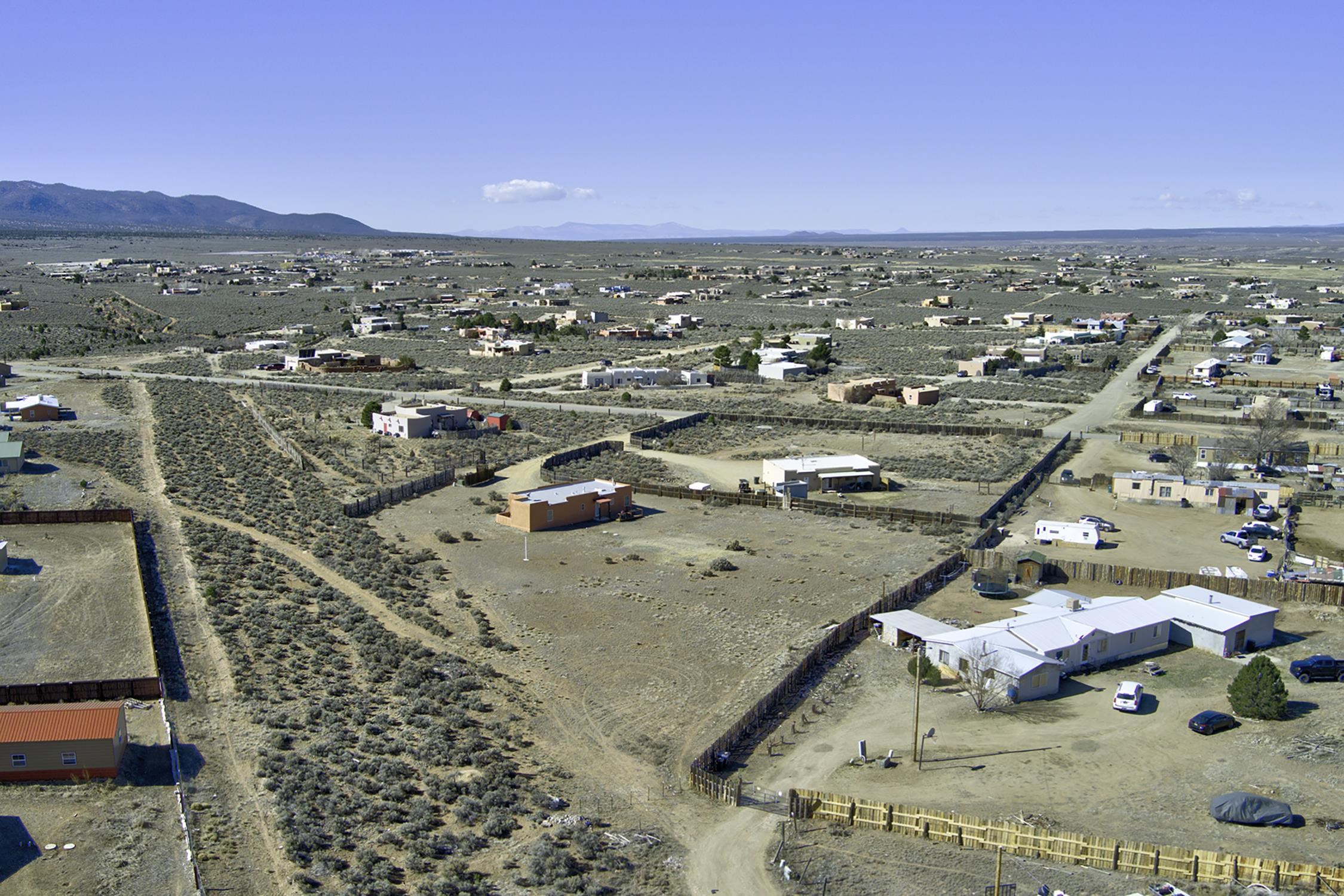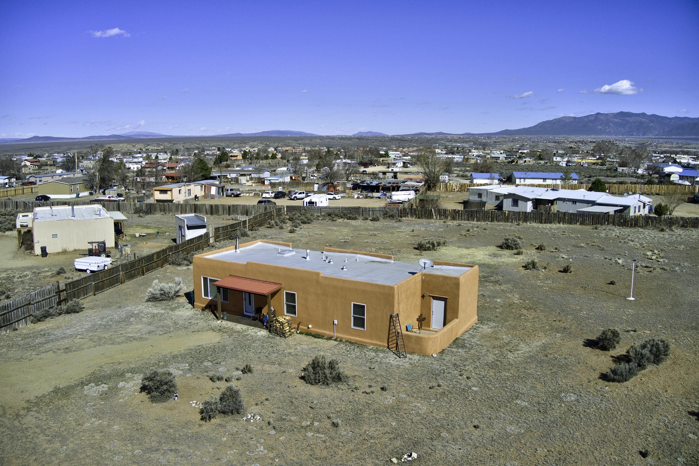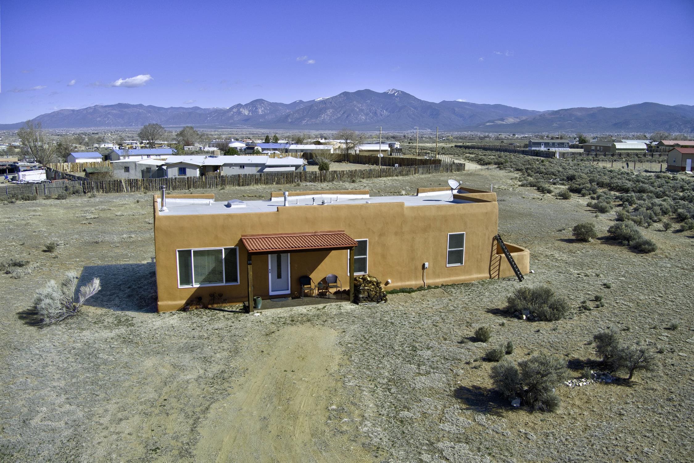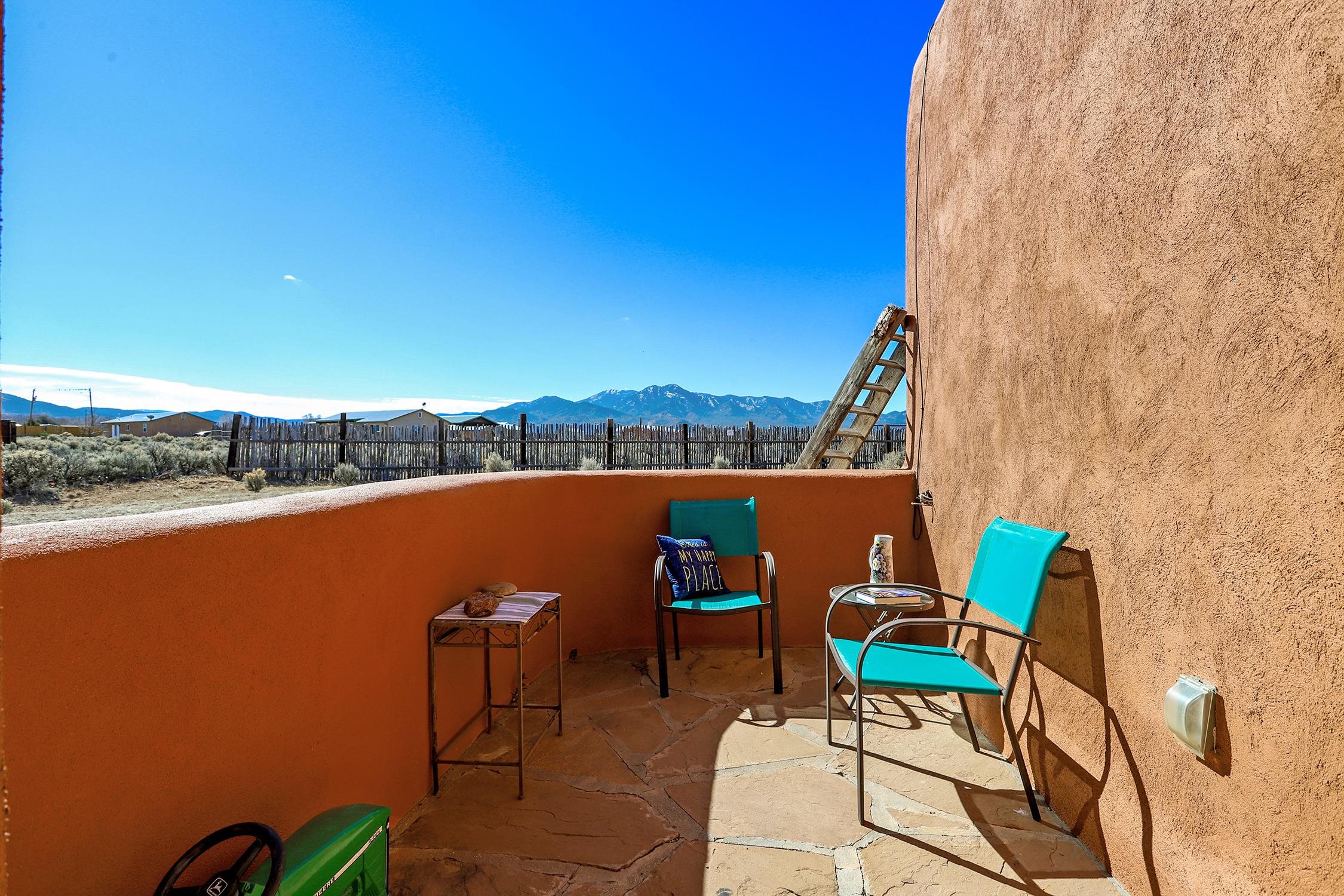 Enjoy the beauty and lifestyle of Ranchos de Taos from this charming 1,309 sq ft home set on 1.21 acres with beautiful views of Taos Mountain. The home offers a warm and inviting feel with a cozy living area and wood stove, perfect for crisp mountain evenings, along with hot water radiant floor heat that keeps the home comfortable year-round and even extends onto the front patio. Step outside to a lovely back deck where you can relax and take in the big skies and stunning Taos Mountain views. The primary bedroom features a walk-in shower and a private exterior door that leads to a sweet walled patio, creating a peaceful spot for morning coffee or quiet evenings. Additional features include tile floors throughout, natural gas, and a practical layout designed for comfortable living. The property is served by a shared well and septic system and offers the space and tranquility that make Ranchos de Taos so desirable. Located just minutes from the Rift Trail, the Taos Country Club golf course, and the shops, dining, and galleries of town, this home offers easy access to both outdoor adventure and Taos culture.