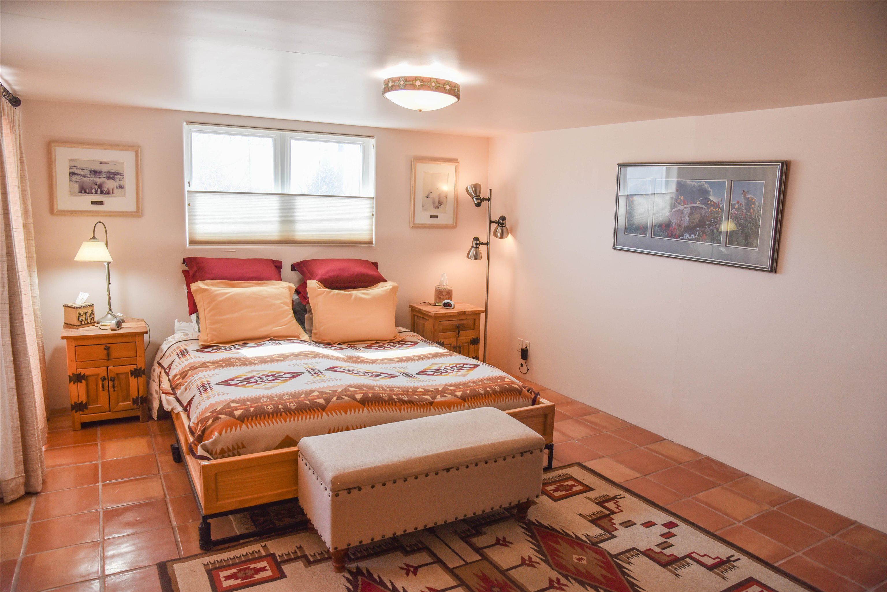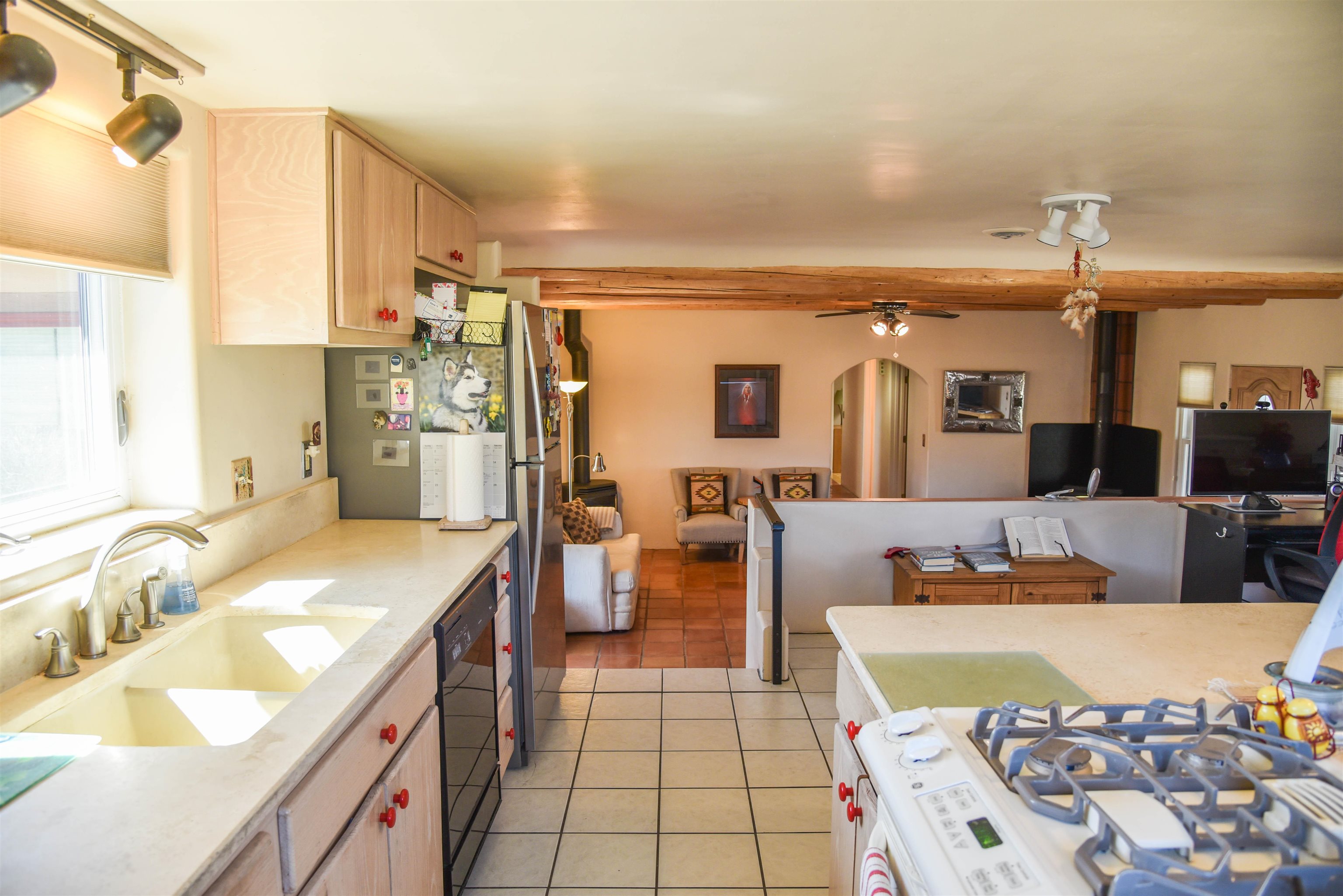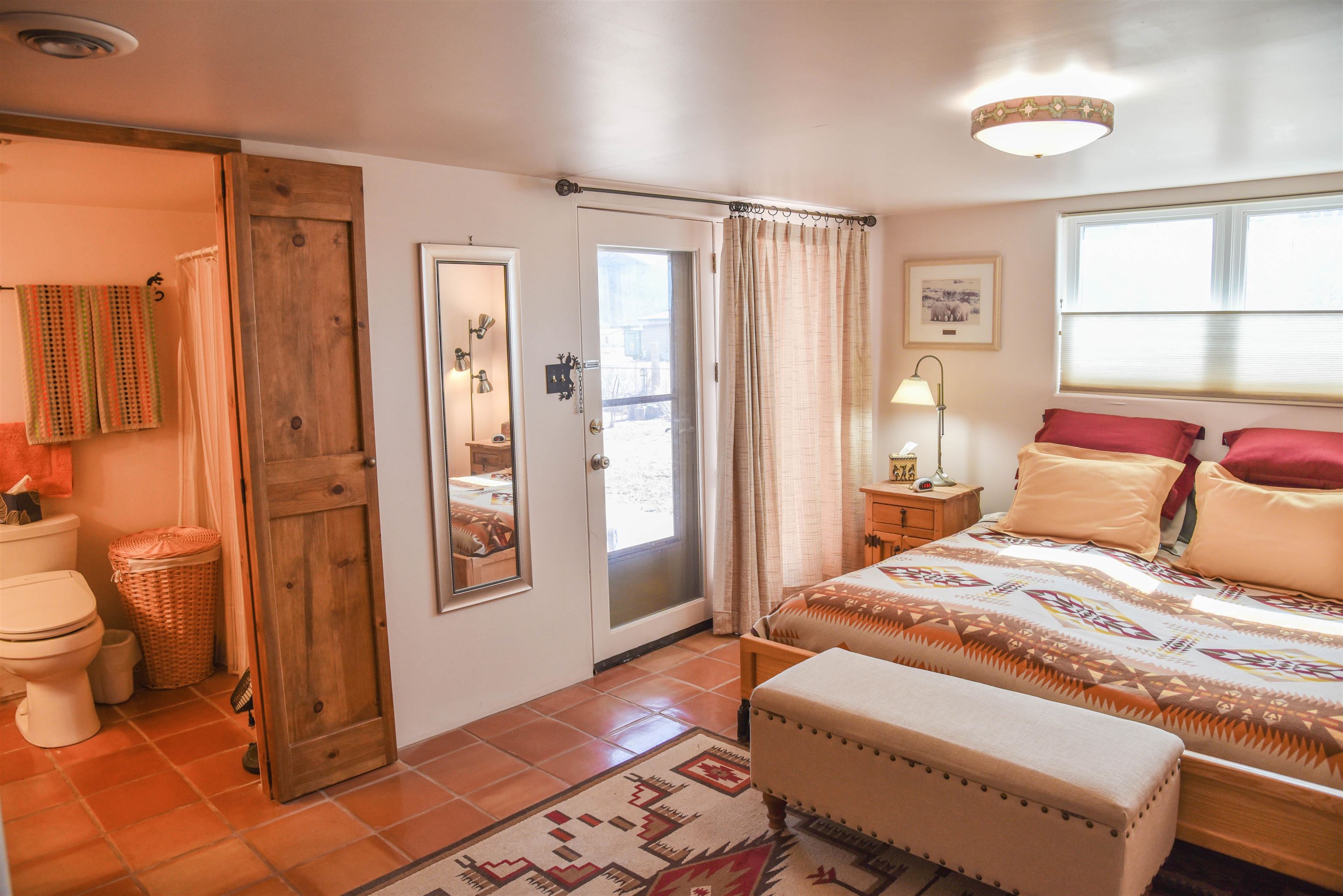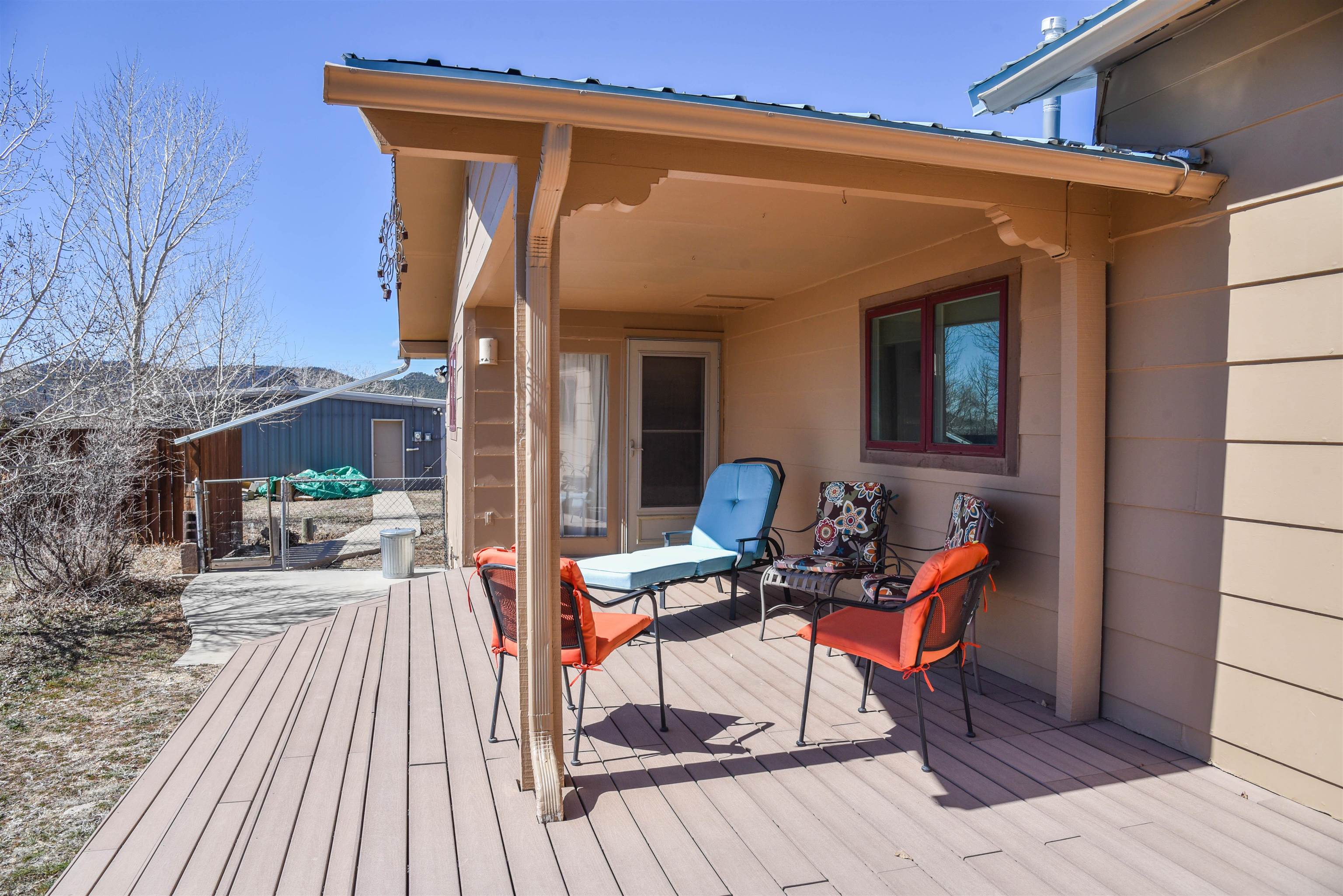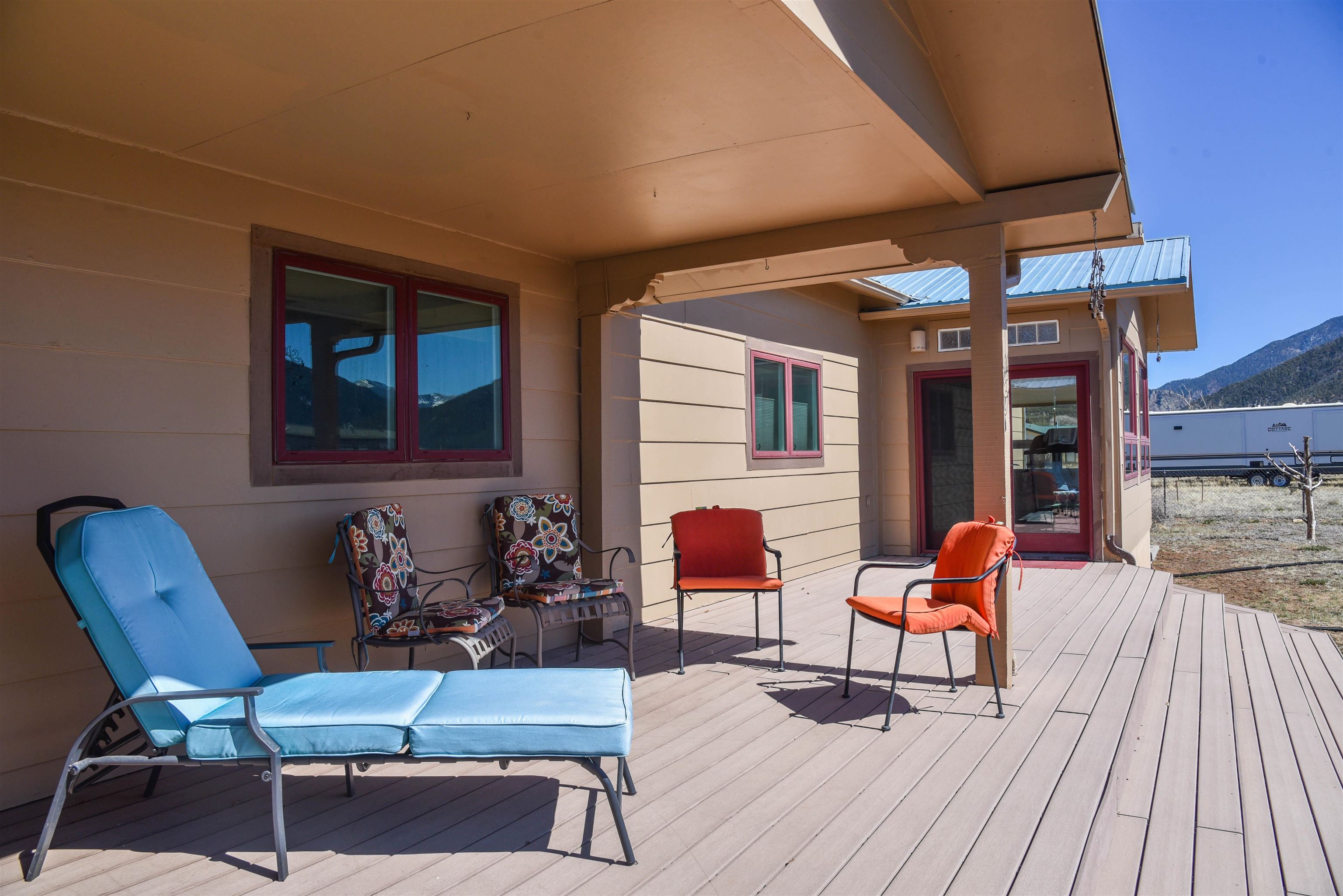 Upon entry into this charming, quaint single-level southwestern style home is the welcoming living room featuring a comfortable seating area, wood stove, gas stove, beautiful vigas and warm well-sought after saltilla tile throughout most of the home. Up the steps to your left is the bright well equipped kitchen with lots of storage and counterspace, a microwave, dishwasher, island, gas stove, new refrigerator (less than 1 yr old) and dining area/work space. Beyond the living room you'll find the ever so warm and inviting sunroom/workout area that overlooks the Eastern mountains and the door leading to the back partially covered sunning deck. Deck is made of composite materials. To the right of the living area you'll find the laundry room complete with a newer water-heater (less than 5 yrs old, a new washer/dryer set (less than 1 yr old), wash tub/sink and a great folding countertop area with plenty of cabinetry for storage. Continuing down the hallway to the left you'll find the first guest bedroom with a futon that folds down into a full-sized bed, closet area and built in drawers for clothing/linen storage. Directly after, you'll find the second bedroom currently used as another workout space also furnished with a closet space and built in drawers. Meanwhile across the hallway, you'll find the full bath complete with a shower/tub combo, linen knook, vanity, and throne. Towards the back of the home, you will come across the TV room/sitting area, the door leading out the attached heated 2-car garage and the master bedroom suite. The master bedroom is large enough to house a king sized bed and nightstands with room to space! Special features are the gas stove, walk-in closet with plenty of hanging space, the large bathroom with walk-in shower, large vanity, throne. And a door leading to the covered portion of the backyard deck (composite) and backyard. Following the sidewath path to the West side of the property you'll find a gate, and the 1500 sq ft. workshop with a single bay door and side entrance ready and willing for projects! On the roof of workshop is where the 6 paid off solar panels live. The yard of this home is completely fenced all the way around. Back at the house in the 2-car garage you'll find a gas stove to heat the garage as well as a pantry/storage knook for any additional storage needs. This home is is currently on Fiber Optic Wi-Fi, Satellite TV and Solar. This home has gorgeous mountain views all around! Perfect for anyone looking to relocate or as an investment property whether short-term or long-rental!!! Selling mostly furnished. Priced to sell fast! Best deal on the market, schedule your showing today!!!
