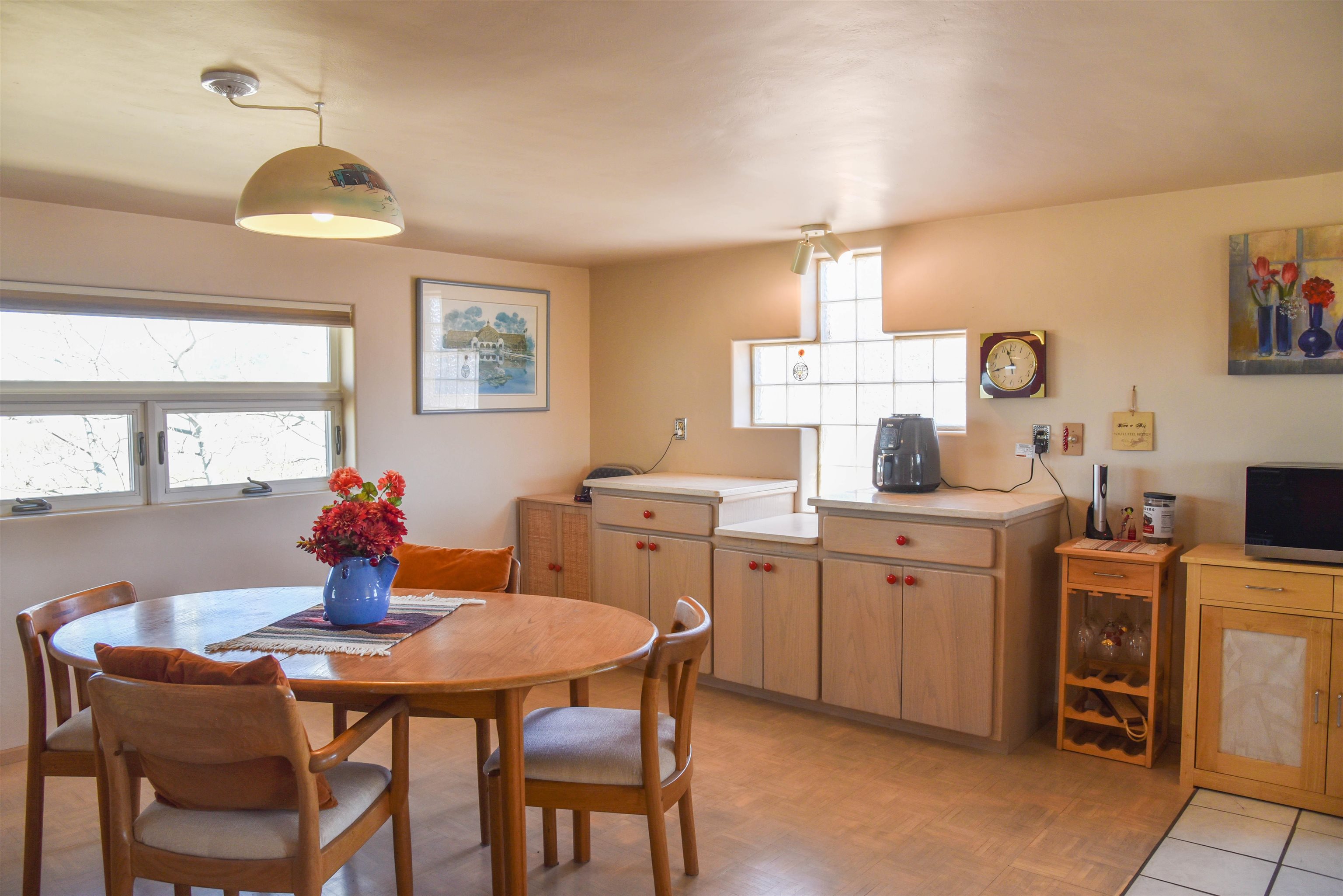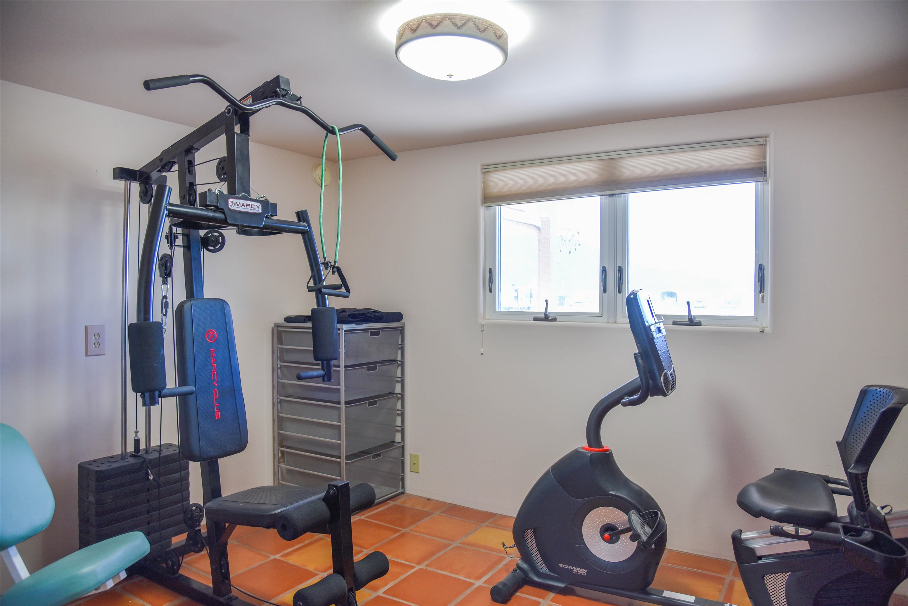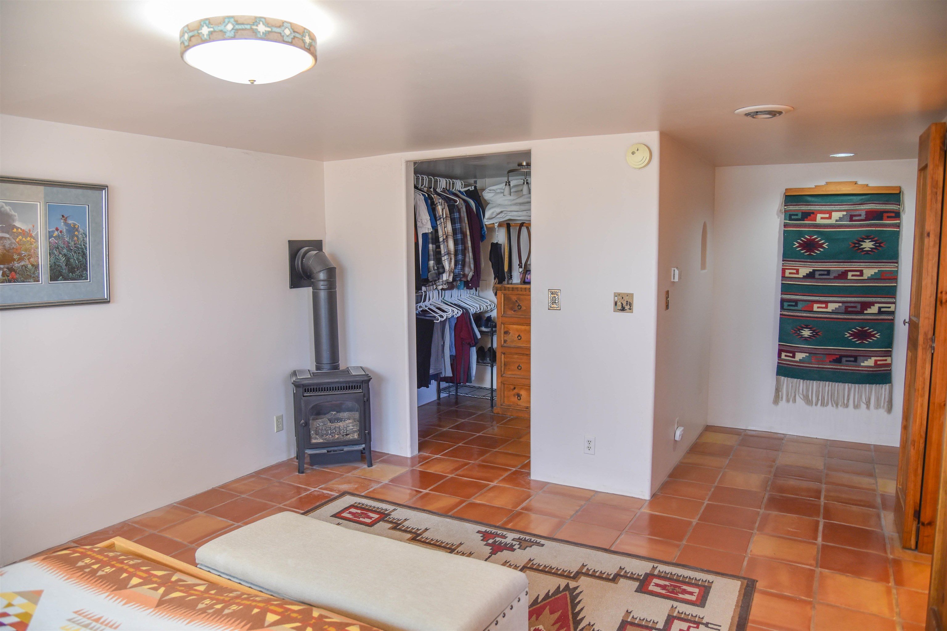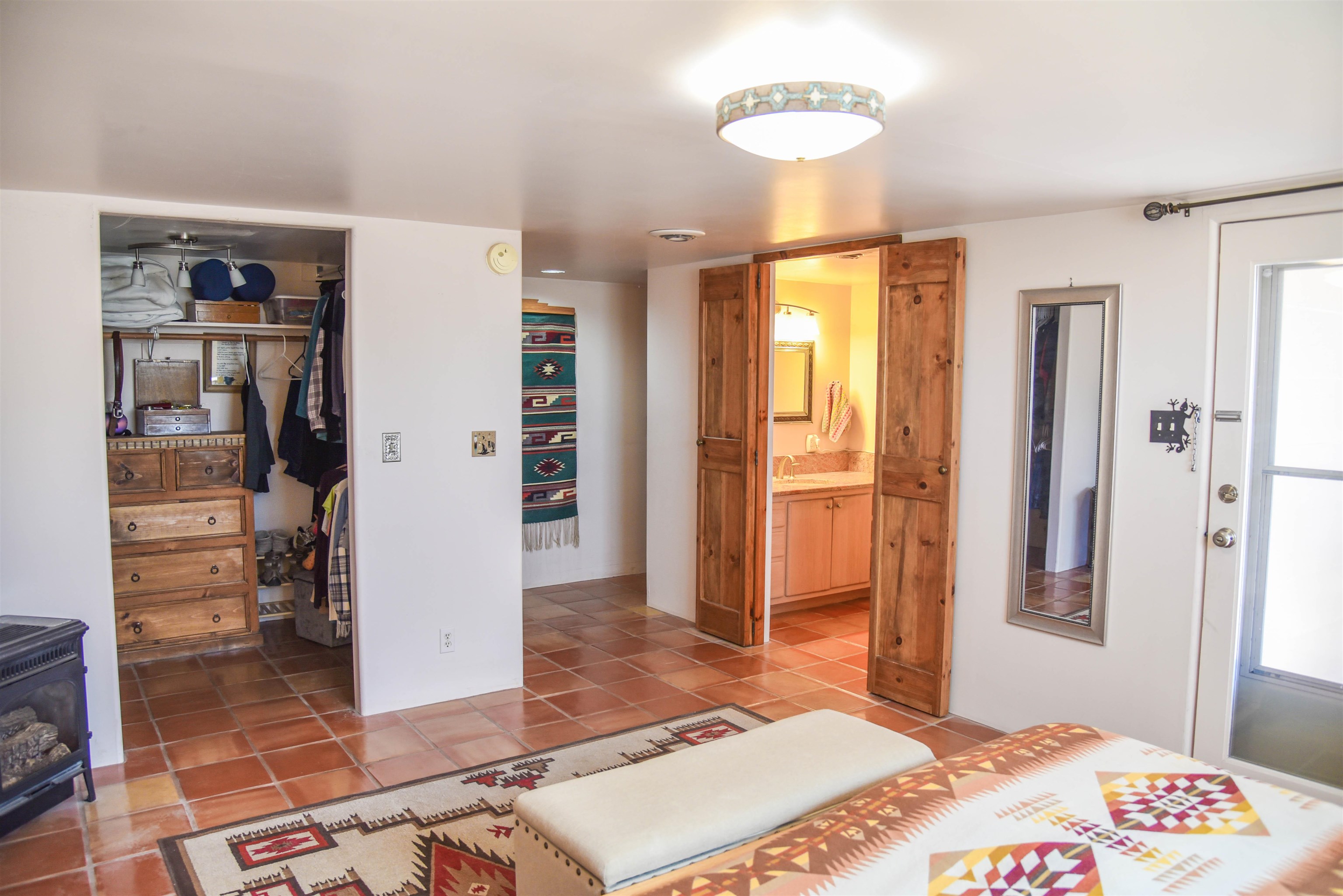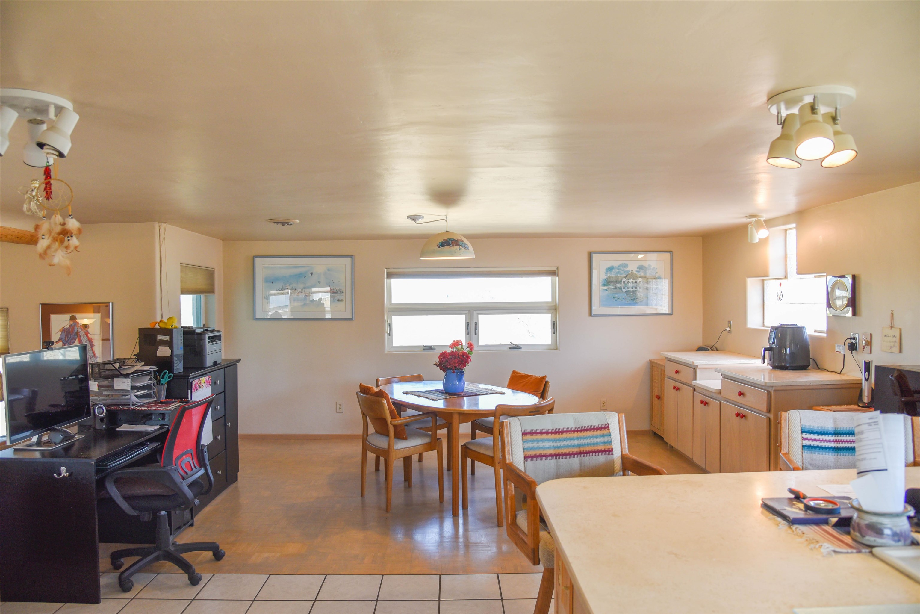 Upon entry into this charming, quaint single-level southwestern style home is the welcoming living room featuring a comfortable seating area, wood stove, gas stove, beautiful vigas and warm well-sought after saltilla tile throughout most of the home. Up the steps to your left is the bright well equipped kitchen with lots of storage and counterspace, a microwave, dishwasher, island, gas stove, new refrigerator (less than 1 yr old) and dining area/work space. Beyond the living room you'll find the ever so warm and inviting sunroom/workout area that overlooks the Eastern mountains and the door leading to the back partially covered sunning deck. Deck is made of composite materials. To the right of the living area you'll find the laundry room complete with a newer water-heater (less than 5 yrs old, a new washer/dryer set (less than 1 yr old), wash tub/sink and a great folding countertop area with plenty of cabinetry for storage. Continuing down the hallway to the left you'll find the first guest bedroom with a futon that folds down into a full-sized bed, closet area and built in drawers for clothing/linen storage. Directly after, you'll find the second bedroom currently used as another workout space also furnished with a closet space and built in drawers. Meanwhile across the hallway, you'll find the full bath complete with a shower/tub combo, linen knook, vanity, and throne. Towards the back of the home, you will come across the TV room/sitting area, the door leading out the attached heated 2-car garage and the master bedroom suite. The master bedroom is large enough to house a king sized bed and nightstands with room to space! Special features are the gas stove, walk-in closet with plenty of hanging space, the large bathroom with walk-in shower, large vanity, throne. And a door leading to the covered portion of the backyard deck (composite) and backyard. Following the sidewath path to the West side of the property you'll find a gate, and the 1500 sq ft. workshop with a single bay door and side entrance ready and willing for projects! On the roof of workshop is where the 6 paid off solar panels live. The yard of this home is completely fenced all the way around. Back at the house in the 2-car garage you'll find a gas stove to heat the garage as well as a pantry/storage knook for any additional storage needs. This home is is currently on Fiber Optic Wi-Fi, Satellite TV and Solar. This home has gorgeous mountain views all around! Perfect for anyone looking to relocate or as an investment property whether short-term or long-rental!!! Selling mostly furnished. Priced to sell fast! Best deal on the market, schedule your showing today!!!