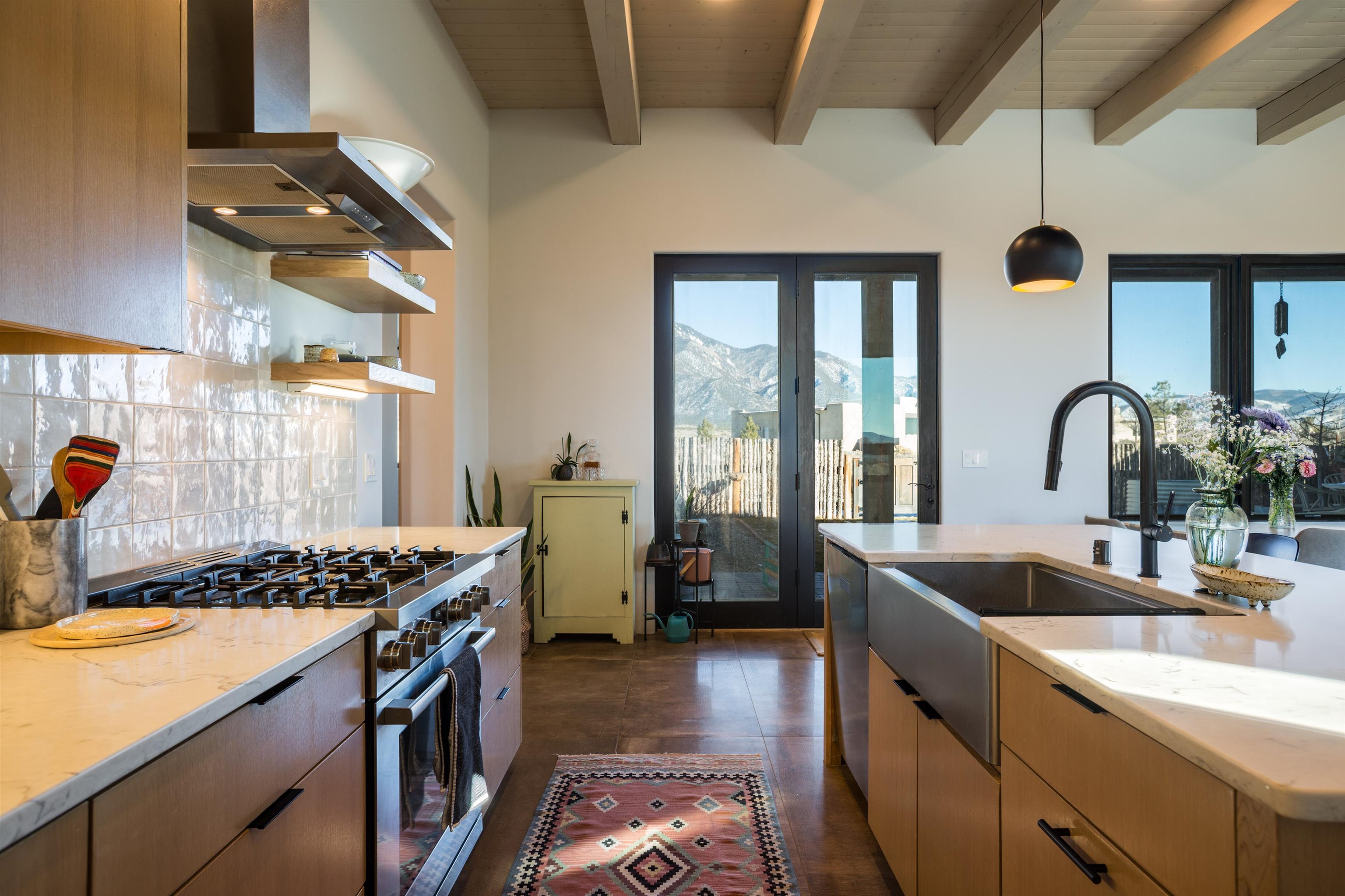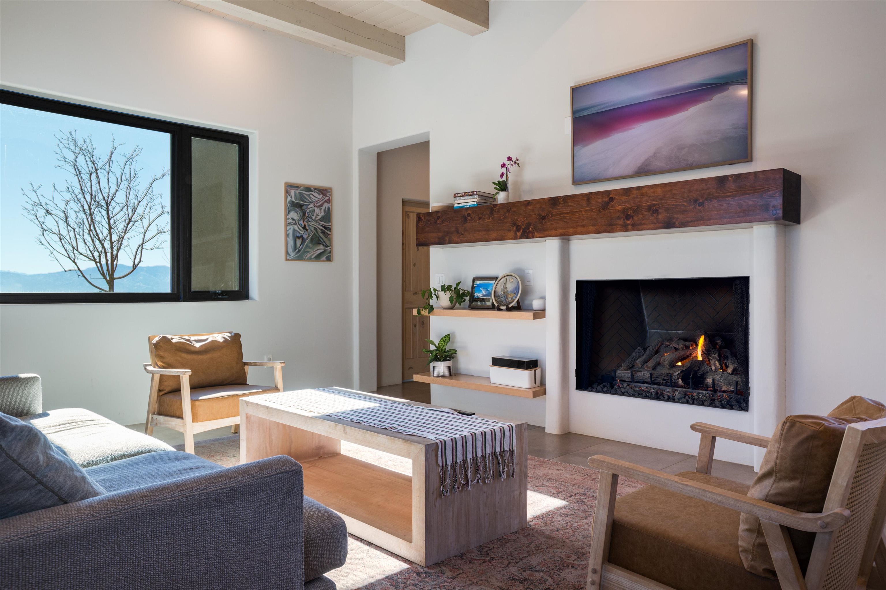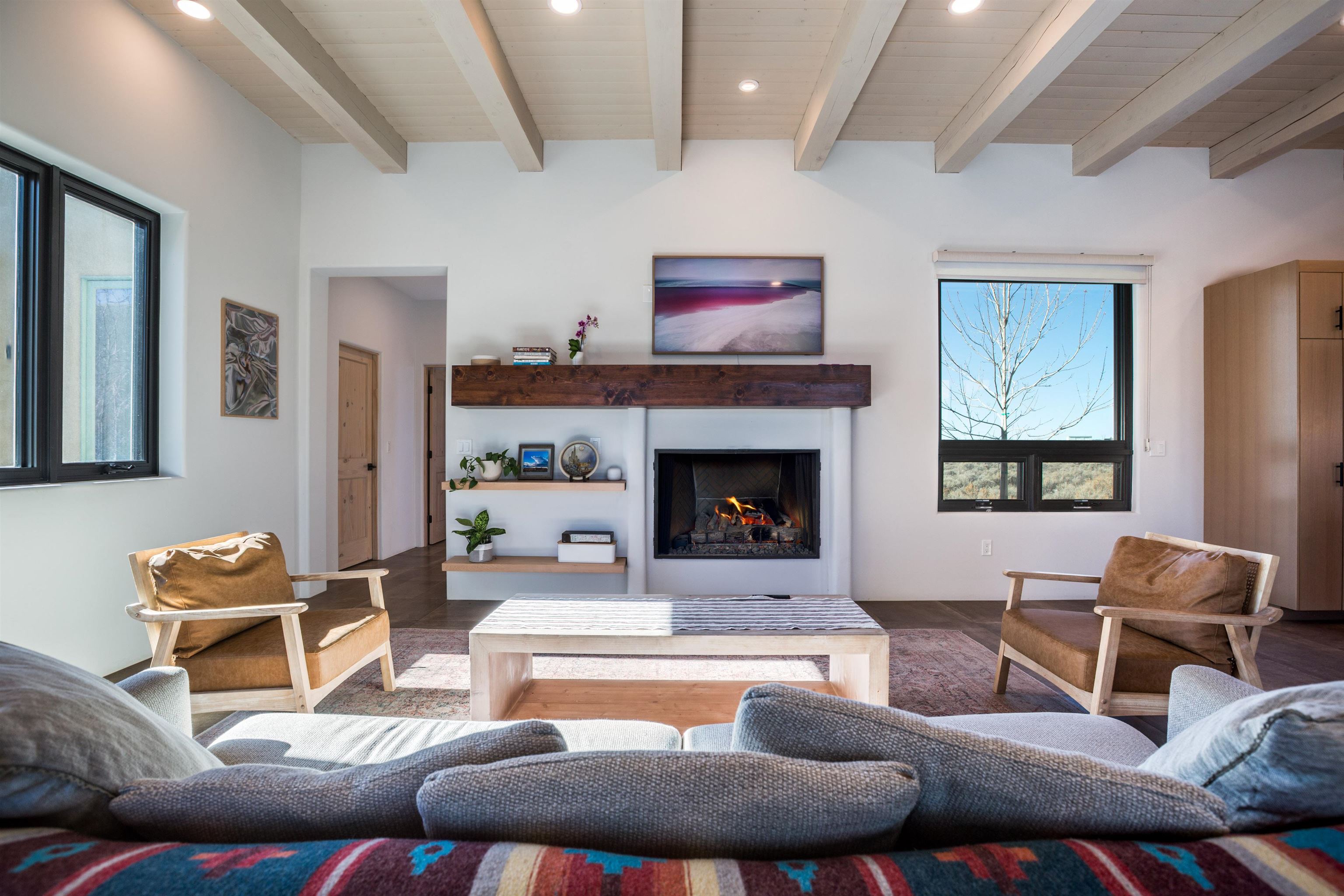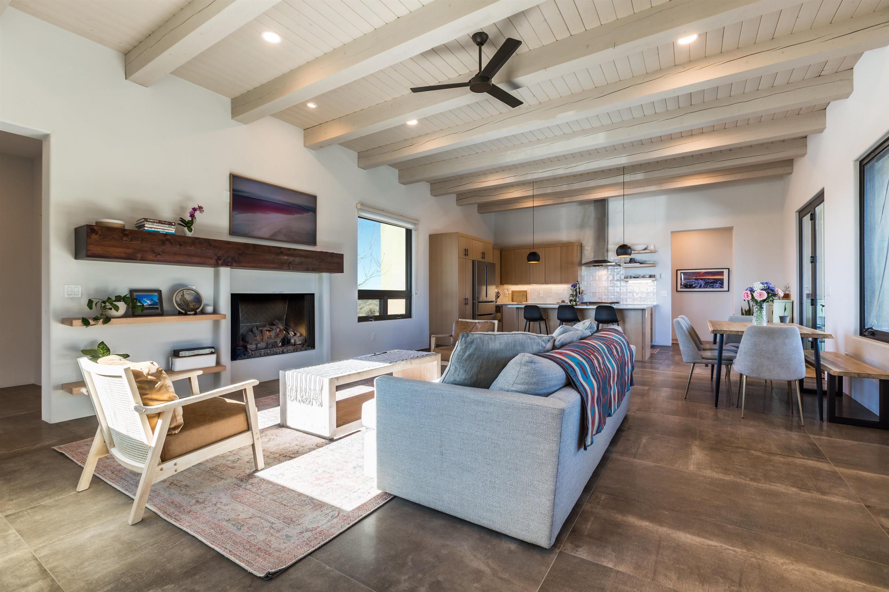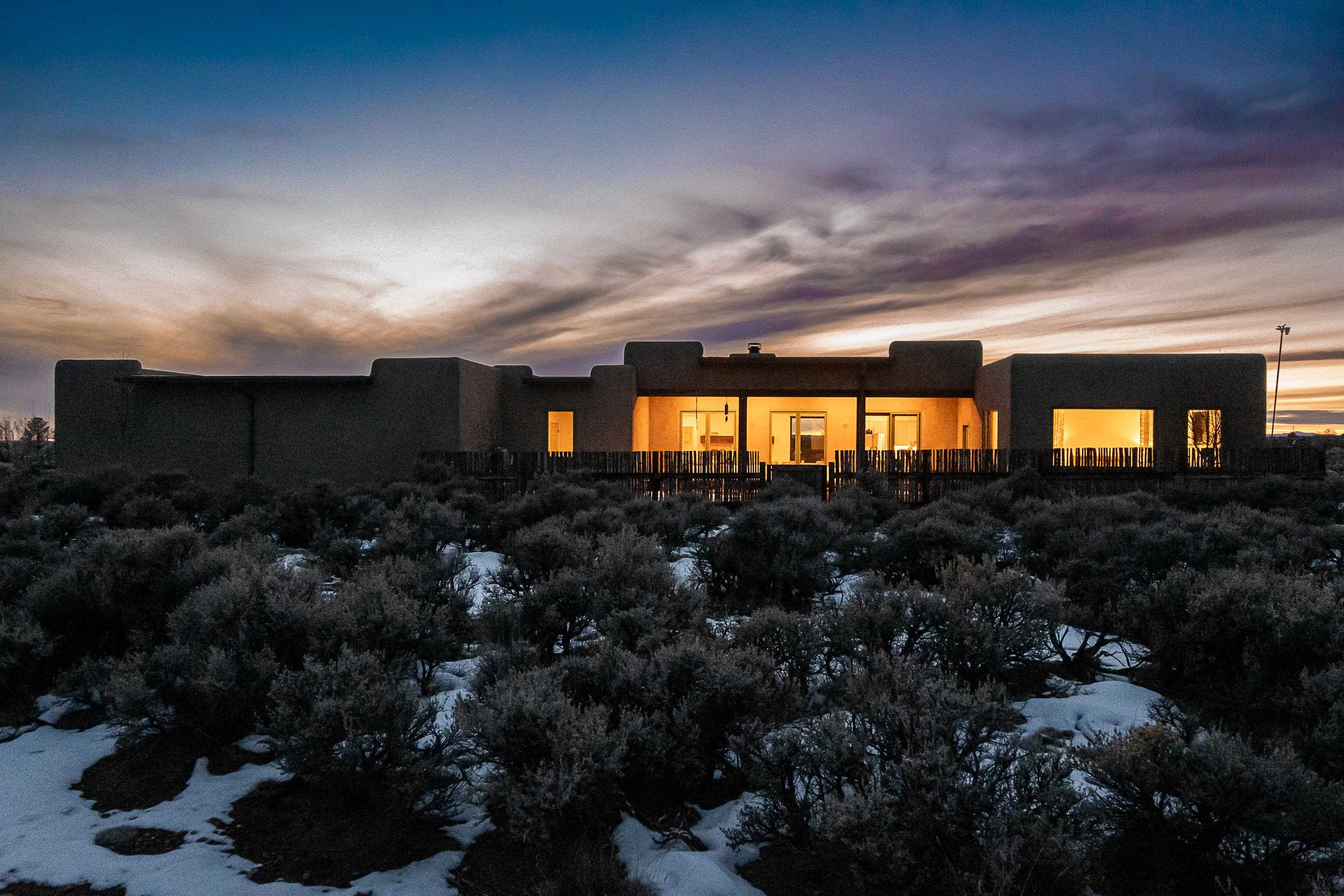 Set in a coveted northside location with expansive views of Taos Mountain, this beautifully crafted contemporary Southwestern home by Edelman Enterprises offers an effortless blend of comfort, quality, and style. Thoughtfully designed with wonderful natural light throughout, the home features three bedrooms and three baths with a spacious, flowing layout ideal for both everyday living and entertaining. The open great room and kitchen serve as the heart of the home, seamlessly connecting to a covered portal that opens onto a lush grassy lawn—perfect for morning coffee, evening gatherings, or simply taking in the mountain air. Clean architectural lines and warm Southwestern finishes create an inviting yet refined atmosphere. A gigantic oversized heated, attached two-car garage (equipped with EV Charging) provides abundant space for vehicles, storage, or gear for all your Taos adventures. With its sought-after northside setting, quality construction, and easy indoor-outdoor living, this property offers a rare opportunity to enjoy the very best of Taos living.