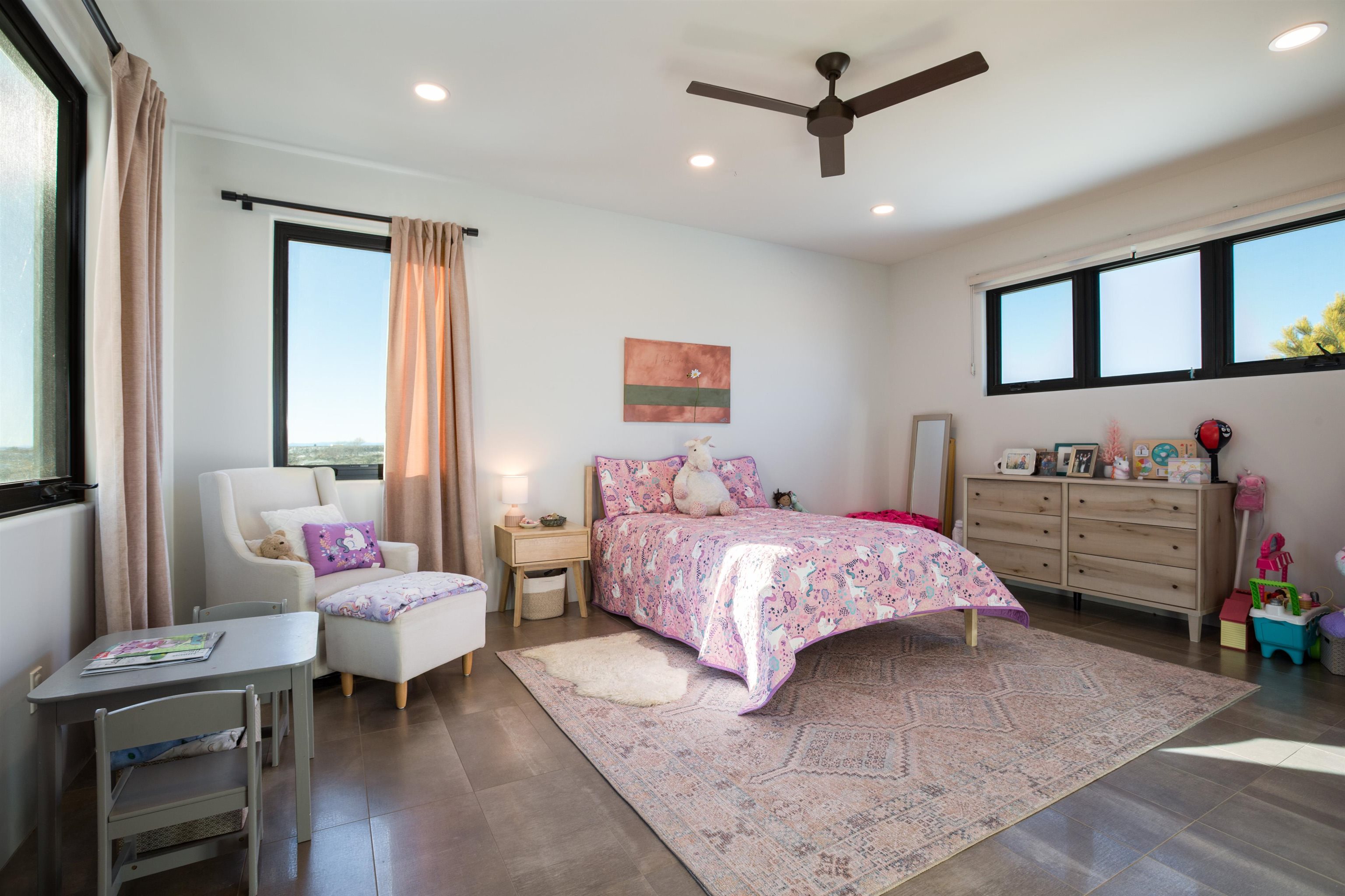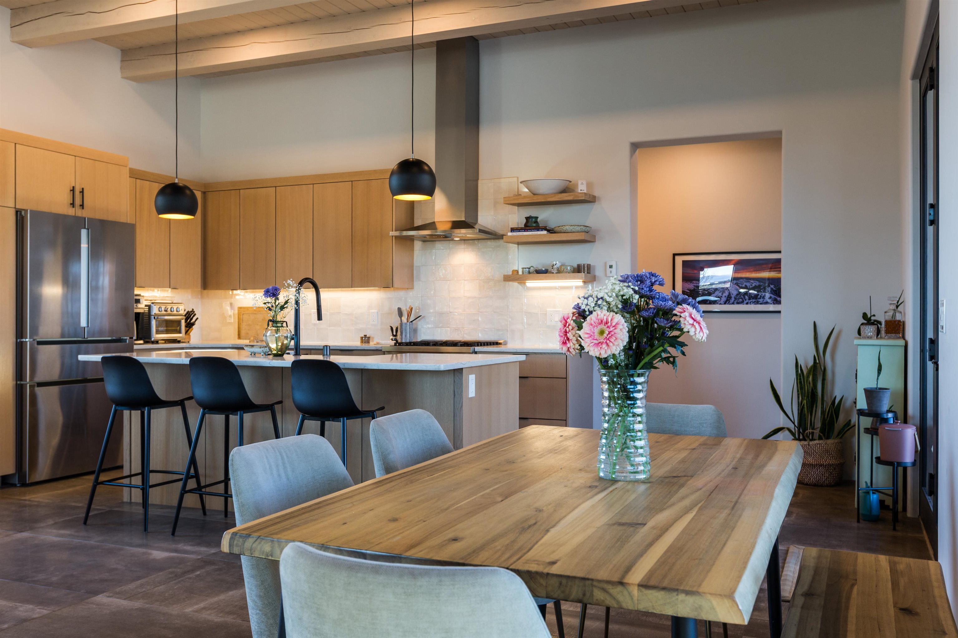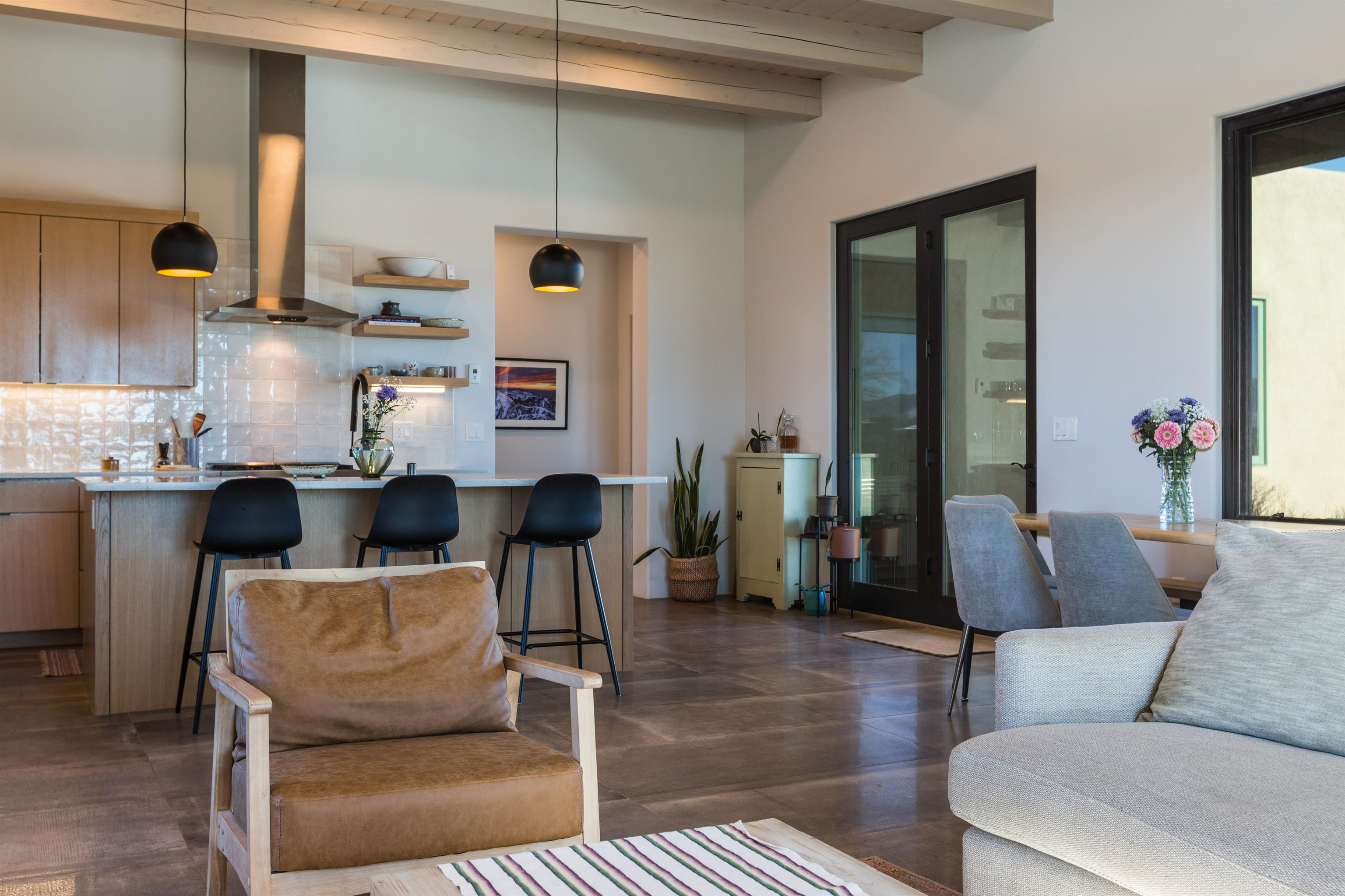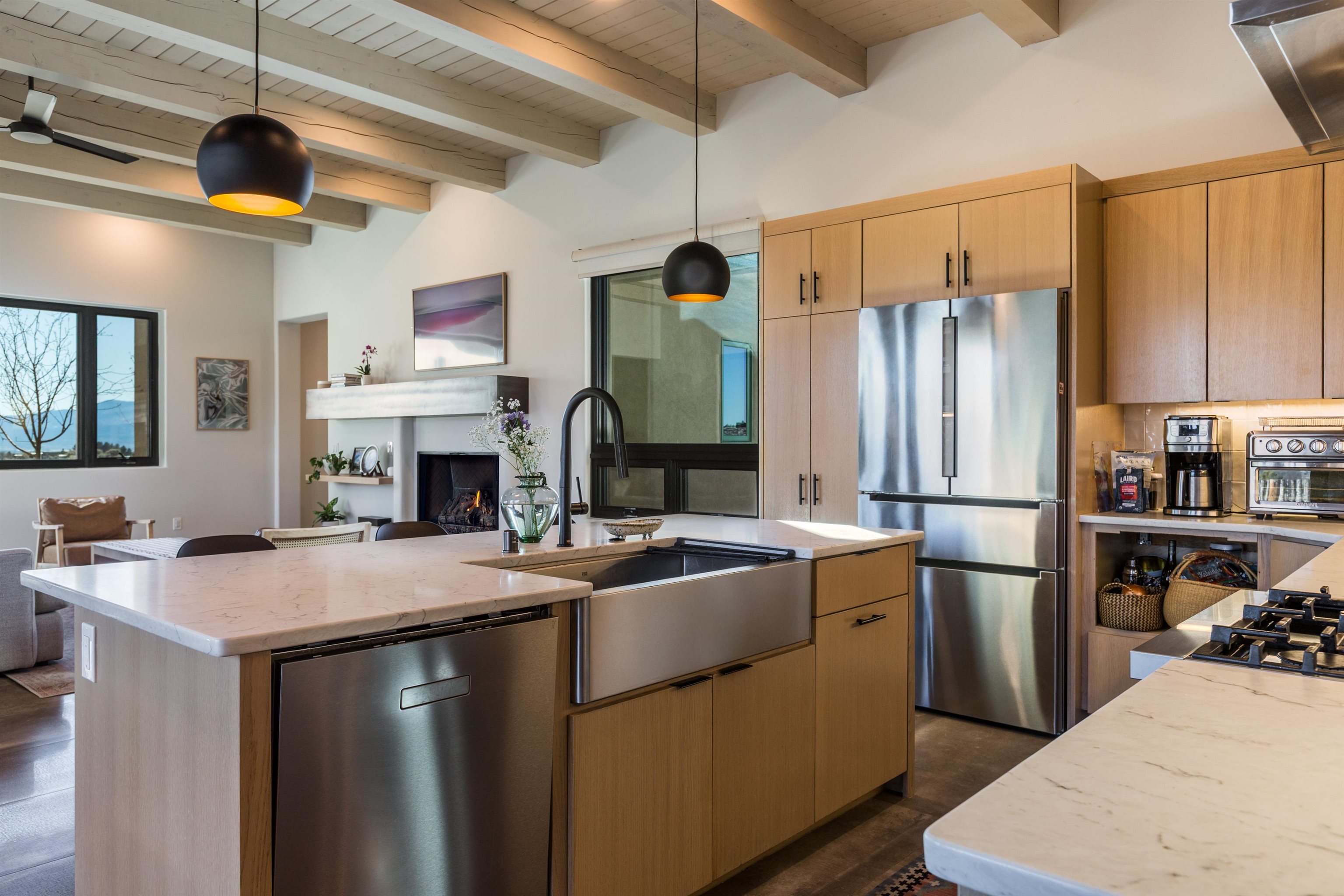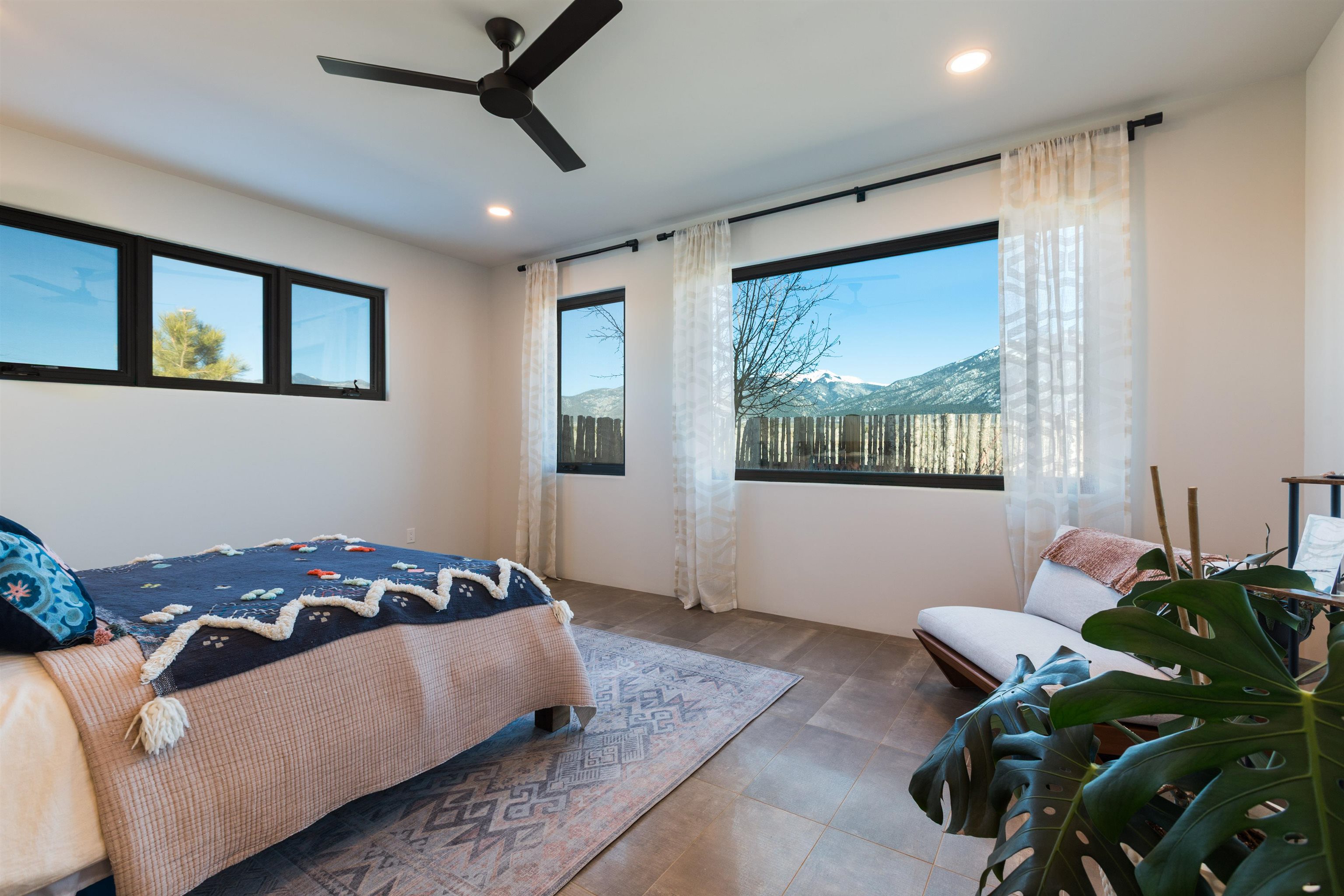 Set in a coveted northside location with expansive views of Taos Mountain, this beautifully crafted contemporary Southwestern home by Edelman Enterprises offers an effortless blend of comfort, quality, and style. Thoughtfully designed with wonderful natural light throughout, the home features three bedrooms and three baths with a spacious, flowing layout ideal for both everyday living and entertaining. The open great room and kitchen serve as the heart of the home, seamlessly connecting to a covered portal that opens onto a lush grassy lawn—perfect for morning coffee, evening gatherings, or simply taking in the mountain air. Clean architectural lines and warm Southwestern finishes create an inviting yet refined atmosphere. A gigantic oversized heated, attached two-car garage (equipped with EV Charging) provides abundant space for vehicles, storage, or gear for all your Taos adventures. With its sought-after northside setting, quality construction, and easy indoor-outdoor living, this property offers a rare opportunity to enjoy the very best of Taos living.