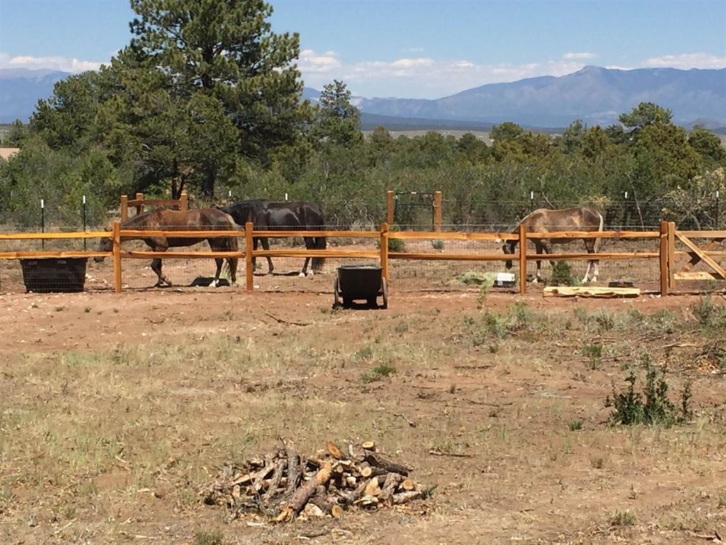 DREAM PROPERTY-If you dream about owning property adjacent to desirable, nicely forested, National Forest Public Lands, which provides you the opportunity to hike or to RIDE HORSEBACK directly from your property onto thousands of acres of public land,with abundant wildlife, nature, views, and recreation opportunities, waiting for you to explore ....THIS IS IT! The North boundary of this property is also the Carson National Forest boundary, with private and convenient personal horse or pedestrian access gates from the subject property onto the National Forest. There are also two secure entry gates to the subject property, for your vehicle access. This property consists of 7.485 acres of largely fenced property boundaries, gentle topography, nicely groomed forested land with Ponderosa Pine, Pinon Pine, Juniper, other native vegetation, and wonderful and distant views, especially of the Sangre de Cristo(Rocky Mountains) to the East. Community water and electricity are at the site with waterlines and 3-above ground, freeze proof water hydrants, and this generous homesite provides the elbow room one enjoys. This special country property provides you with a lovely homesite, and room for corrals and outbuilidings. Convenient access gates are in place so you can ride or walk directly on to the National Forest land from your private property. Waterlines are already in, thanks to the local community Water Association with a transferable water membership in place. This property is a rare opportunity A must see property. A summer getaway, seasonal retreat, horse property, or a full time country residence. Access is good: a 30 mile drive to historic Taos, New Mexico, with ambiance, shopping, 'tri-cultural', and with art galleries, Historic Taos Pueblo, and the Taos Ski Valley. One can drive a few miles South of this property to the nearby(20 miles) Ojo Caliente Hot Springs Resort for a relaxing swim, steam, massage, or a soak. Santa Fe, NM also has much to offer, dining, shopping, culture, professional medical facilities, at an approximate 70 mile distance.