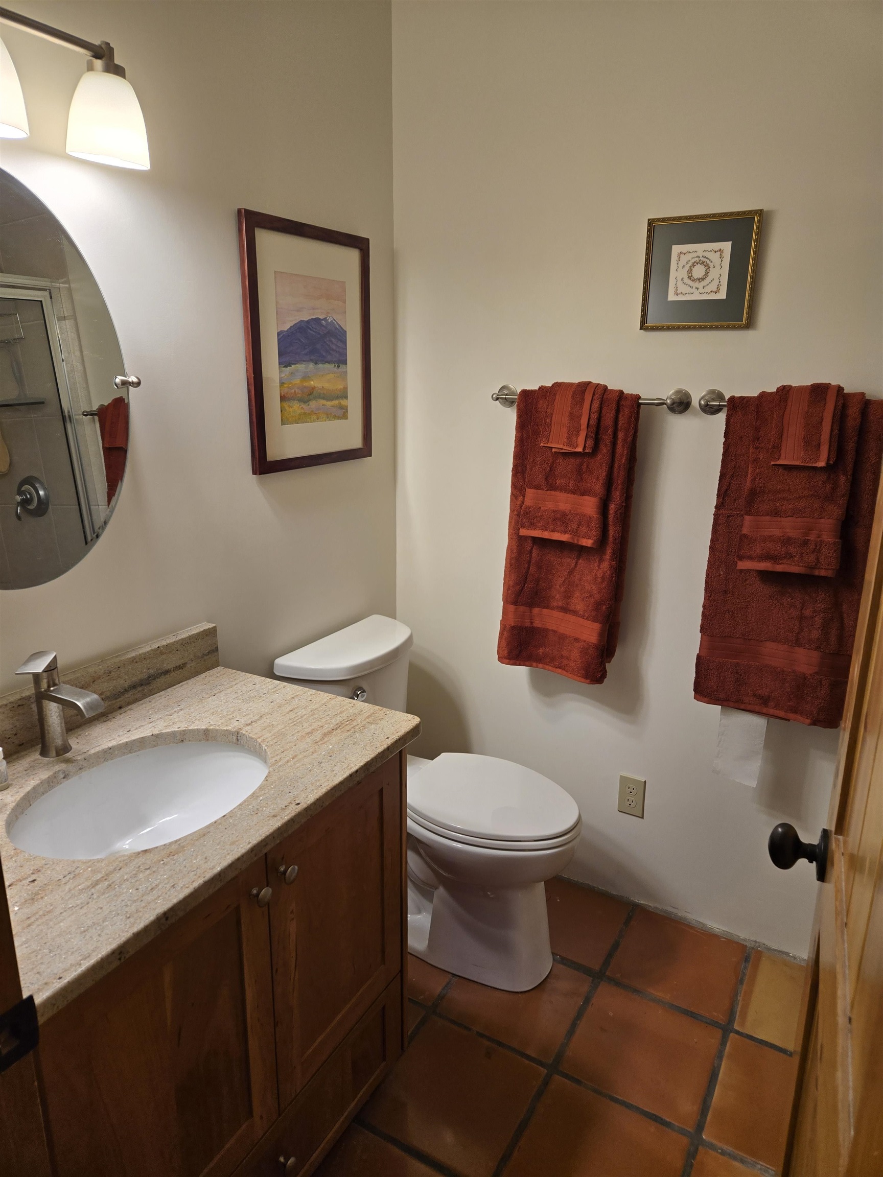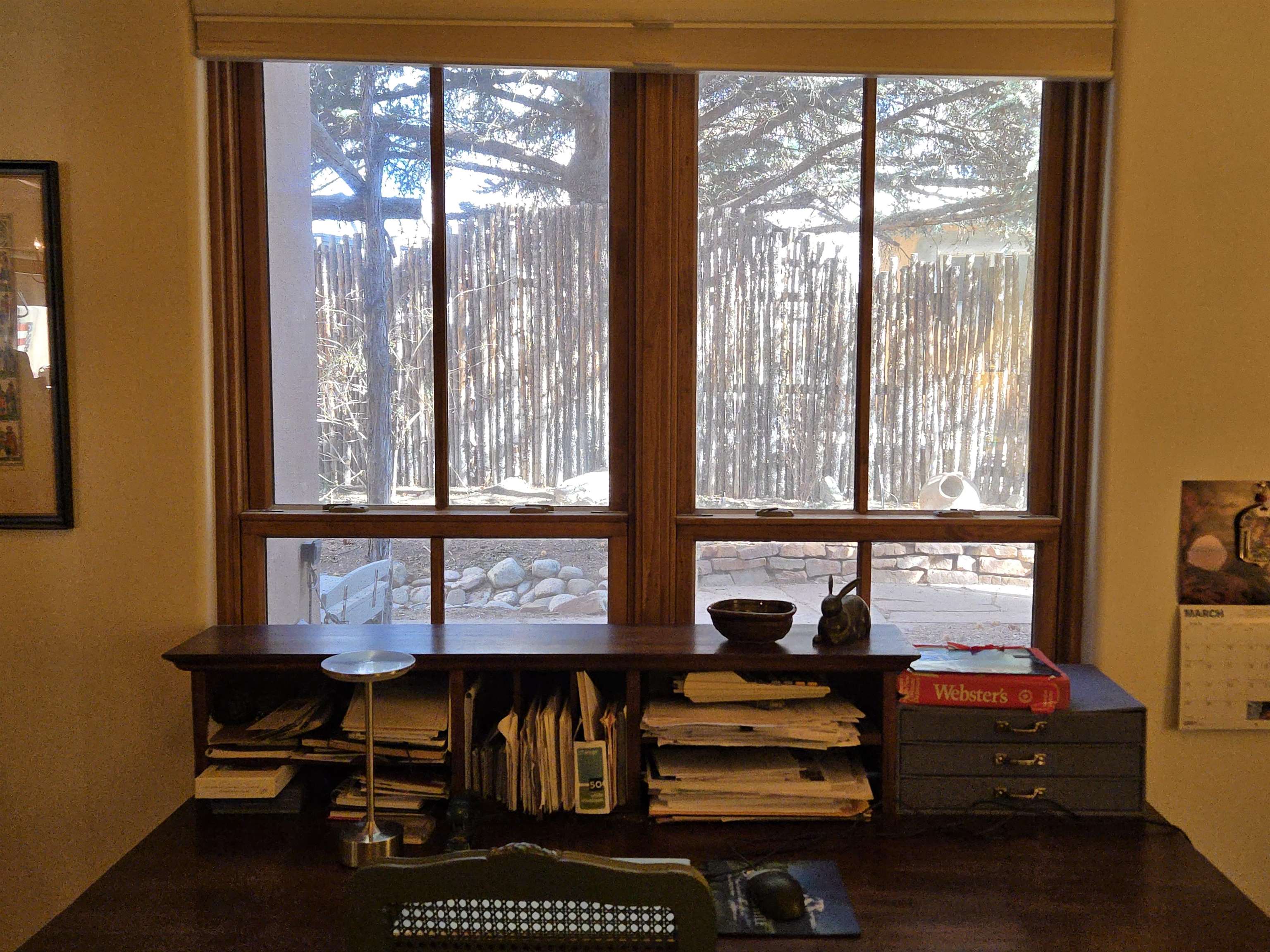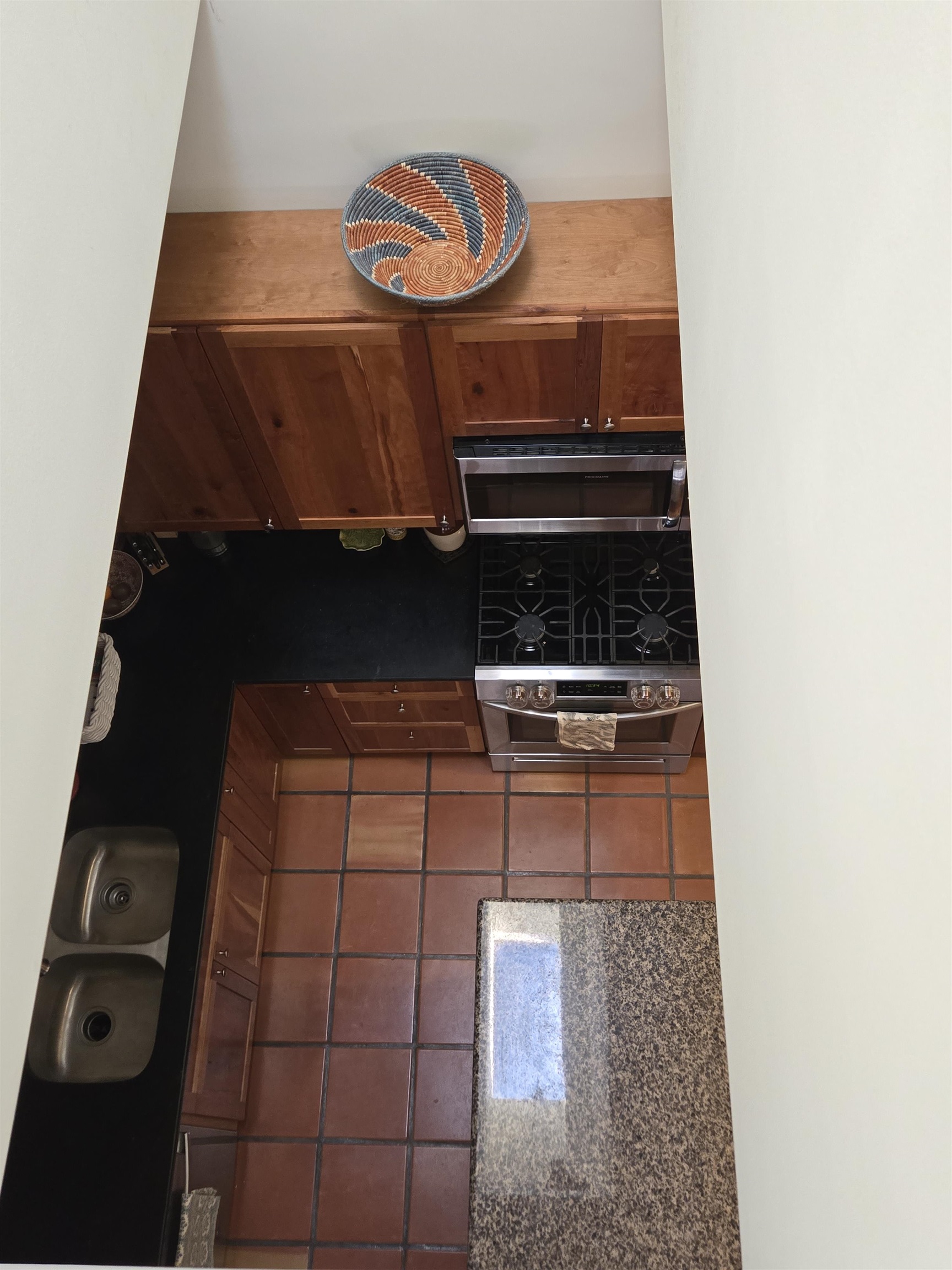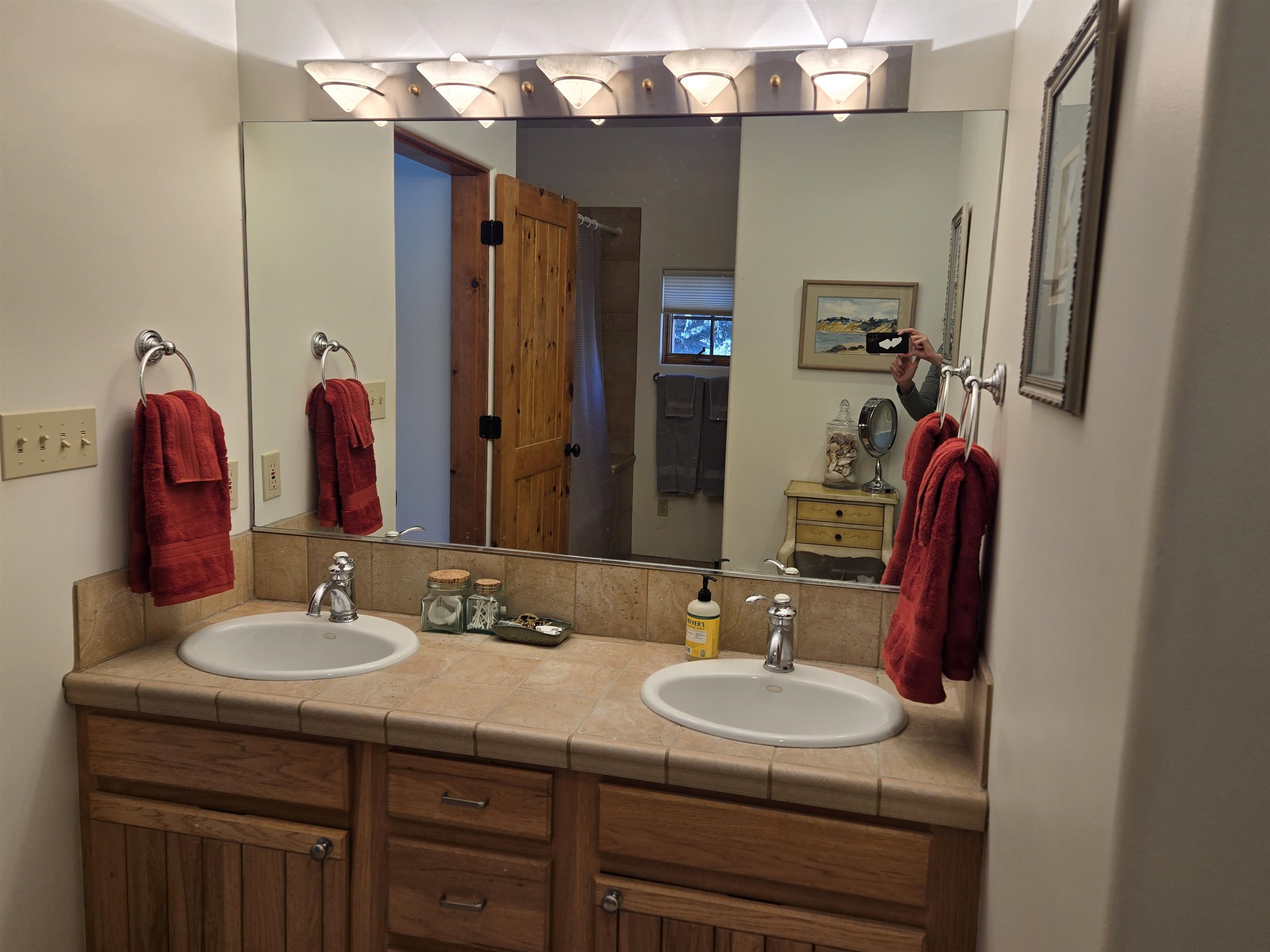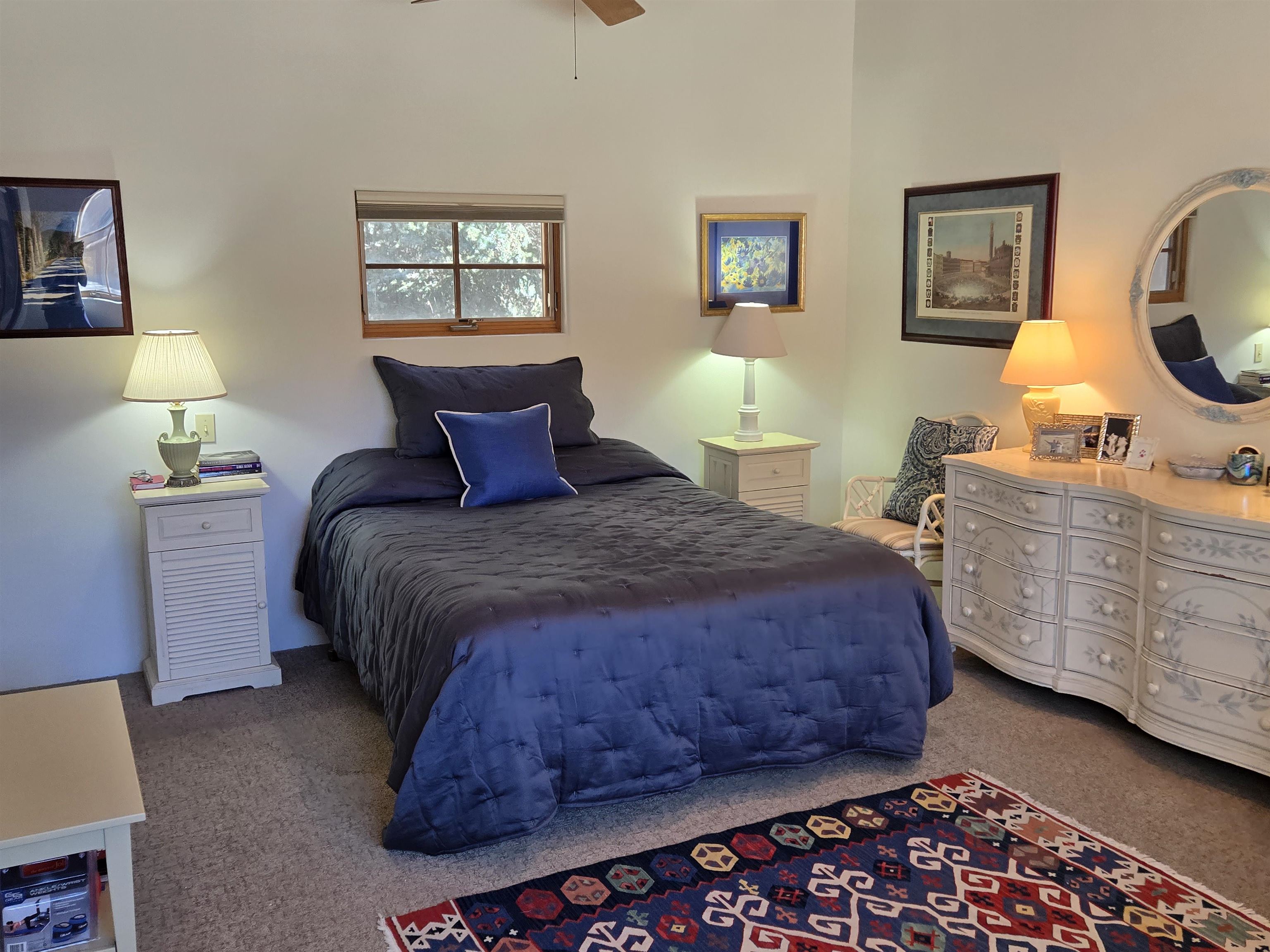 This Kit Carson Road two bedroom two and a half bath condominium location is the place you need to be, within walking distance of dining, shopping, music and galleries downtown in Taos. This quiet compound is home to just nineteen units on a shady street. The two-story condominium has a lovely open floorplan that expands out onto a private courtyard where your potted flowers will glow. Remodeled in 2022, this unit saw top quality upgrades of cabinetry, stainless appliances, new Saltillo tile flooring throughout the ground floor and an on demand water heater for endless showers! Granite countertops sparkle under the two-story skylight. The kitchen supplies ample storage in the rich wood cabinets and island. The owners love to entertain, and the space worked beautifully for many functions throughout the seasons. The large LIVING ROOM is so cozy with handsome vigas, the Pueblo-style gas fireplace and wood frame windows. The warmth of wood flows through the home with pretty raised panel wood doors. Ceiling fans circulate fresh air in handsome fashion. The quality Hunter blinds work seamlessly, opening from top or bottom to control the streaming sunlight or privacy. Large sliding patio doors open out to the private courtyard from the dining room. The main floor also features a BEDROOM / OFFICE with ensuite bath, large closet, a powder room with laundry closet and large under staircase storage area. Upstairs a LARGE PRIMARY BEDROOM is spacious enough to share an art studio area. It features a lovely bath with a large tub, linen cabinets and sunny glass block corner to spread the sky light around. The upper level has its own deck with space for seating overlooking a sunny southern exposure and fresh mountain air. These units do not stay on the market long, so call to request a showing today.