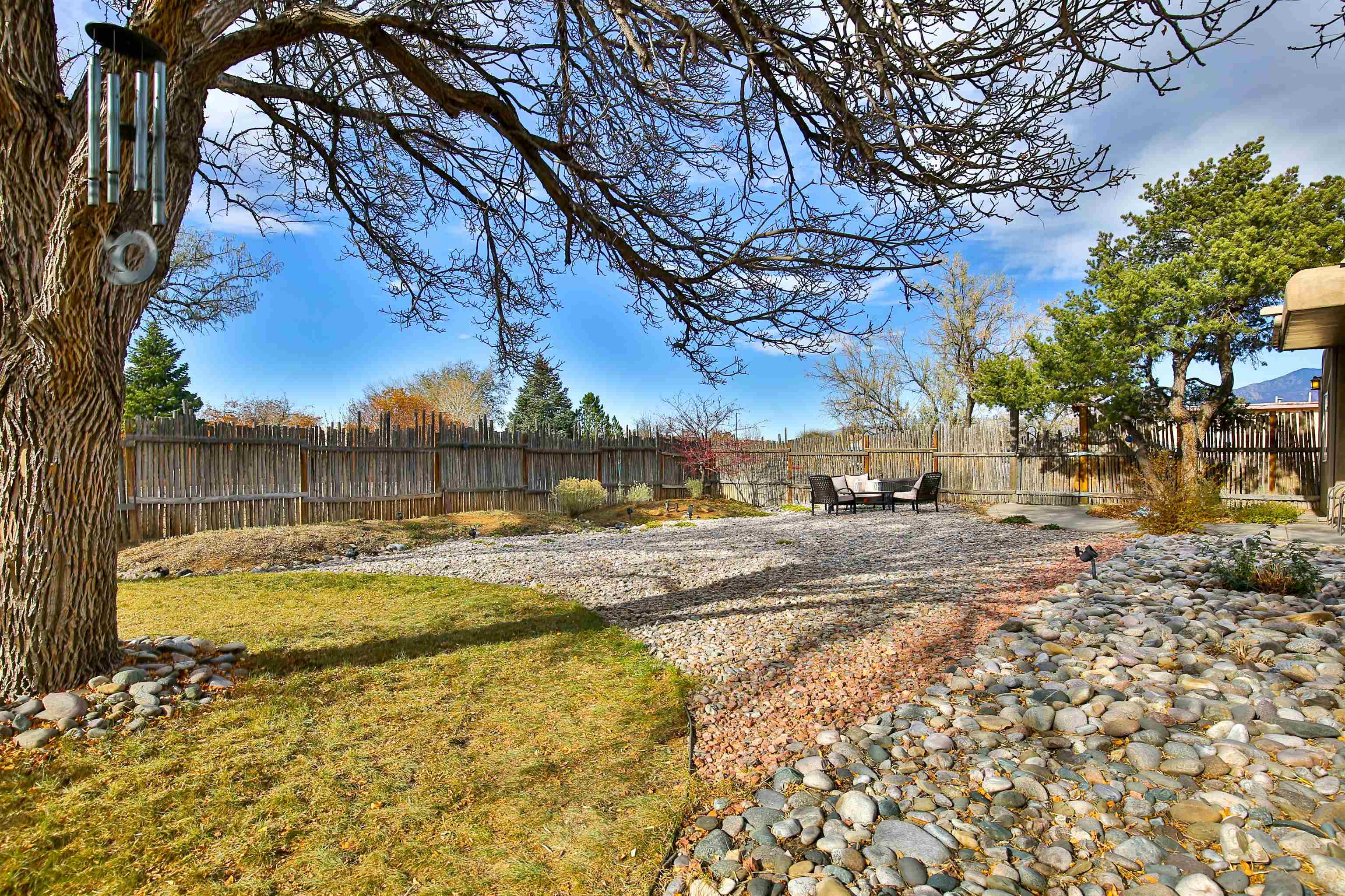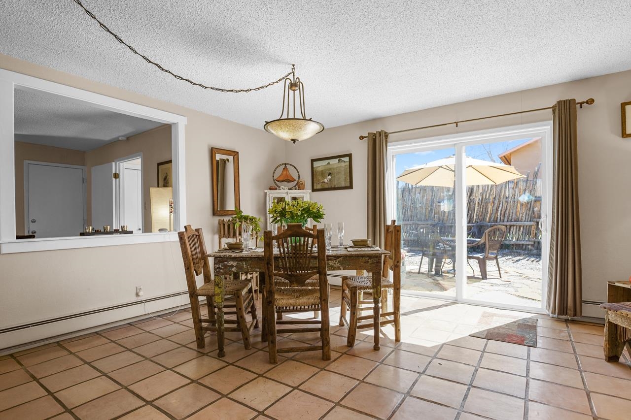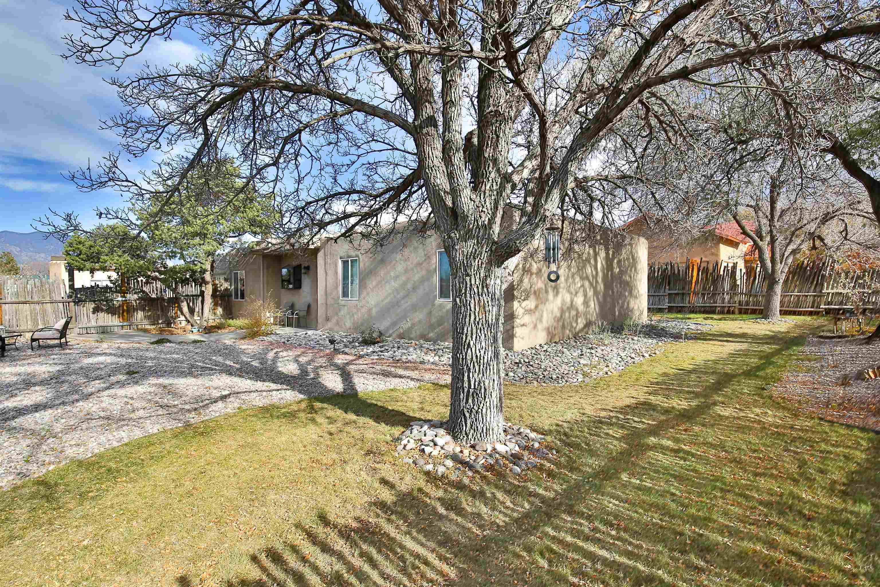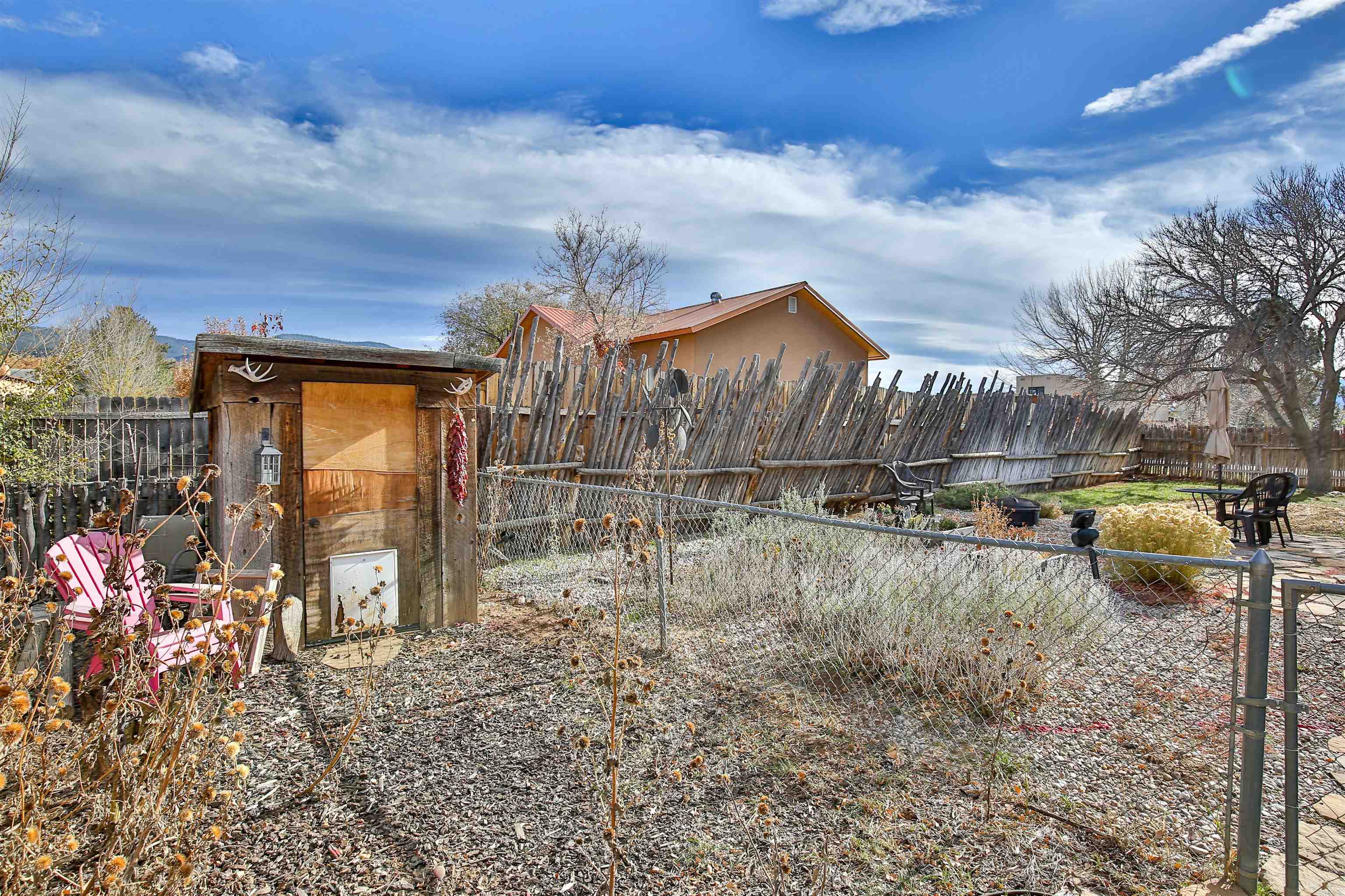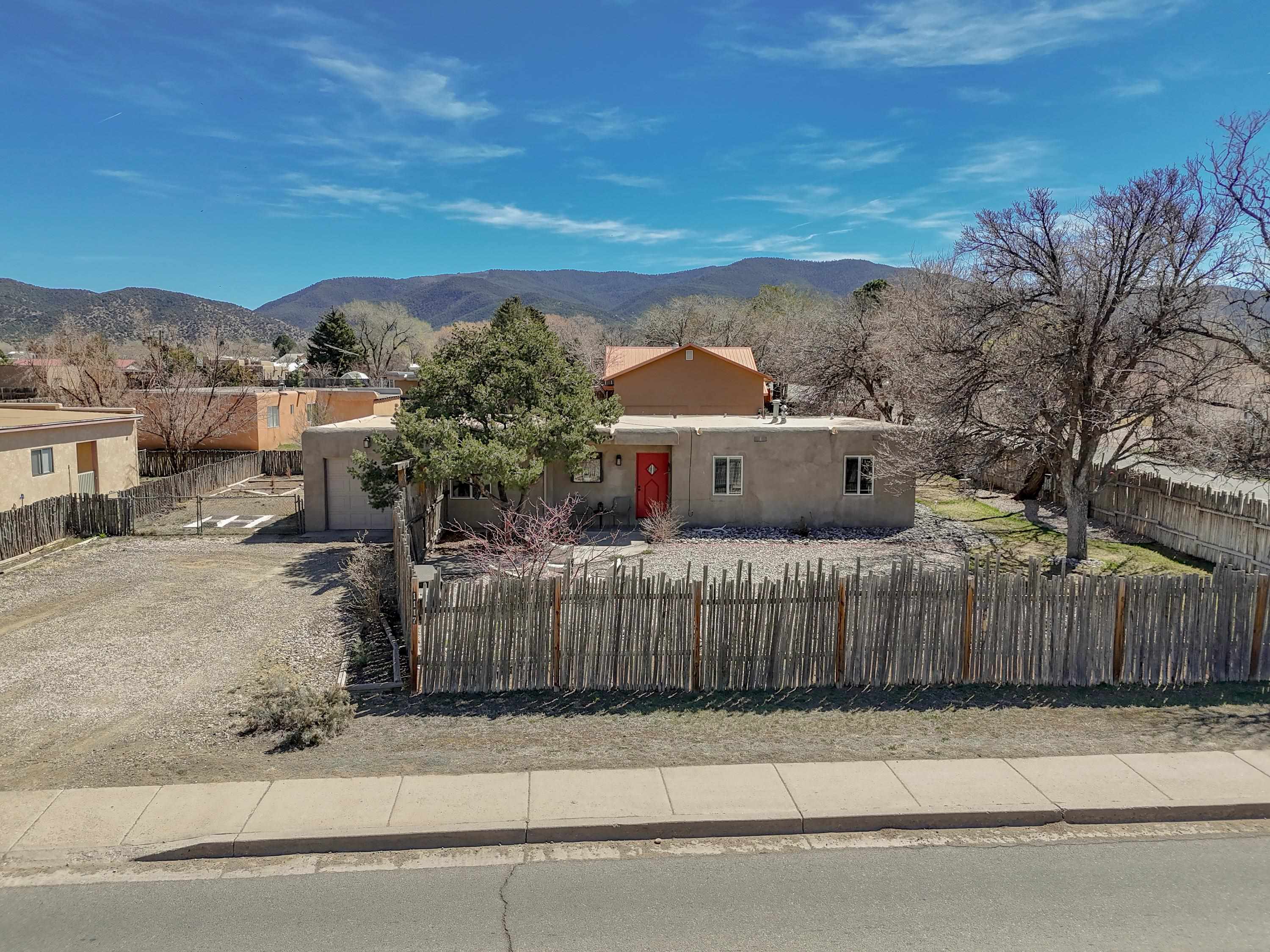 Your easy, breezy Taos home just showed up. This 1292 square foot 3 bedroom, 1 and 1 half bath home sits on a generous .22 acre lot in the lovely Rancho Park Estates neighborhood and is ready for its next chapter. Sunny, welcoming, and full of character, it features classic Saltillo tile, a cozy wood stove, super sunny dining and/or flex space and just the right amount of charm. And, worry-free with the new high efficiency boiler. Move right in and start living, or bring your ideas and give it a glow-up. Either way, this home is ready to roll. Step outside and you will find a shady, tree filled yard with plenty of room for gardening, relaxing, or finally committing to that outdoor project you keep talking about. There is even a storage shed for all your tools, toys, and good intentions. Add in a one car garage and a location that keeps you close to everything, and you have a home that makes Taos living feel easy, comfortable, and just a little bit groovy. Come take a look and see why this one is such a feel good find. For more views: https://youtu.be/eH93Ads5gqQ