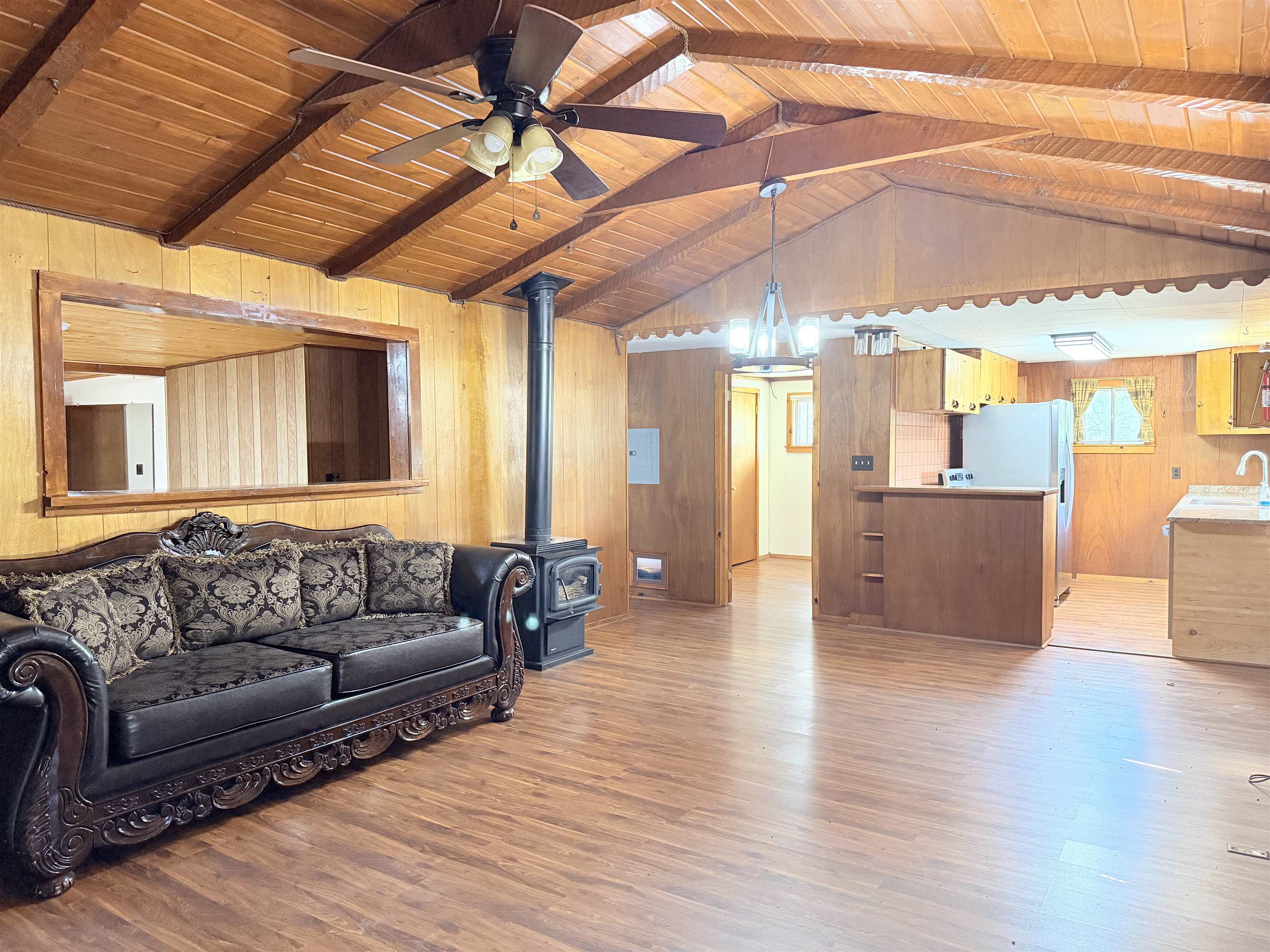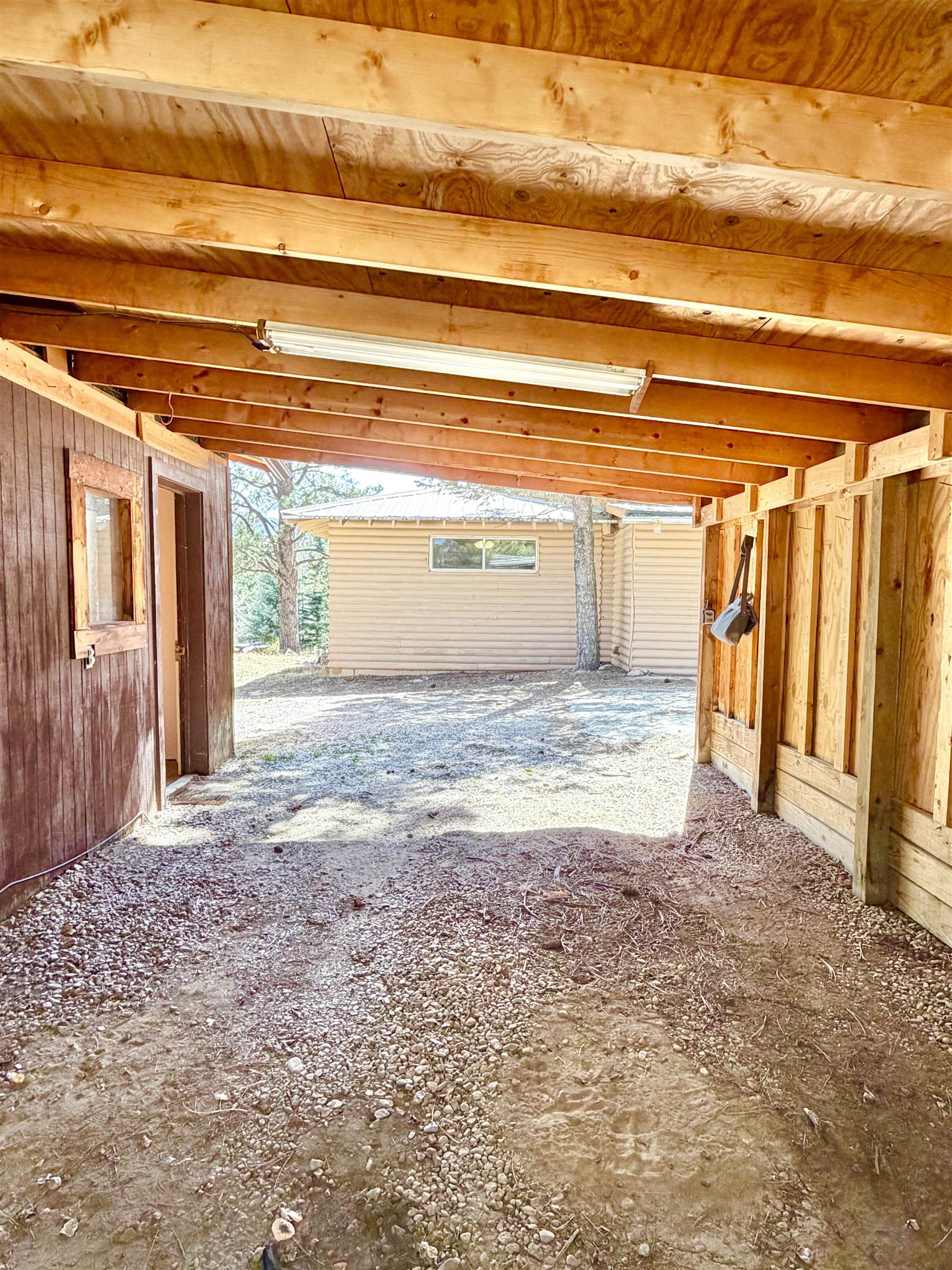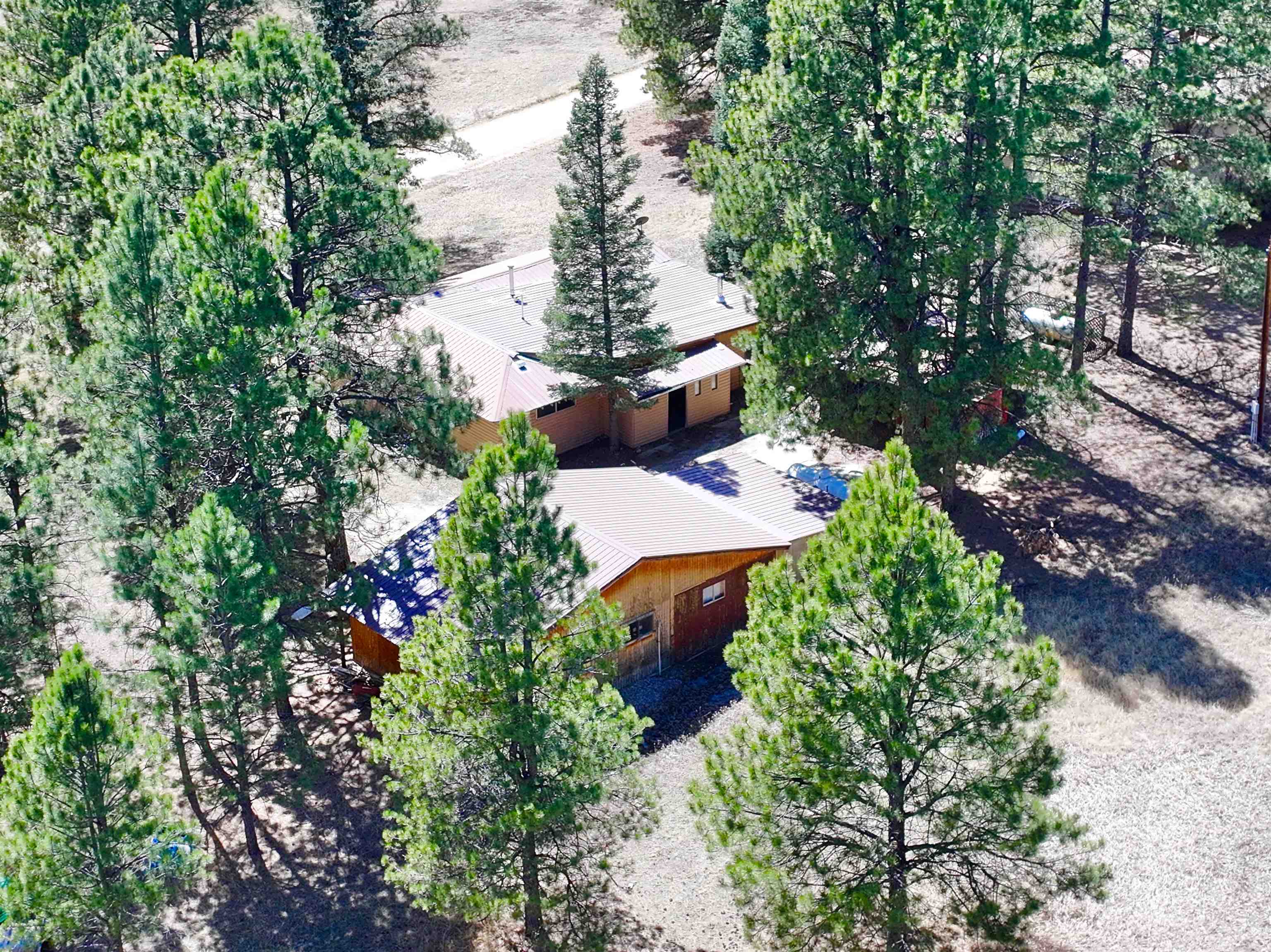 You have discovered your ideal retreat in the Valle Escondido Valley, a tranquil cabin nestled amidst the woods. This exceptional property offers a plethora of amenities, conveniently located near the Valle Escondido Golf Resort. Engage in activities such as fishing, hunting, hiking, sightseeing, mountain biking, ATV riding, and off-roading just to name a few. The home is about 25-30 minutes from Taos, about 20 minutes from Angel Fire and about 45 minutes from Red River. Perched on a gentle hillside, the property features two entry points. Upon entering, you have the option to park outside under the trees, inside a garage or in one of two carports. Upon entering the cabin from the north side, you are greeted by a foyer leading to a spacious living room with beautifully crafted pergo style wood flooring and wood finishes throughout, including a charming wood-burning stove. To your left, you will find a laundry room and a full bathroom equipped with double sinks. Continuing your exploration, you will discover another large living room adjacent to the kitchen, featuring a substantial rock/brick fireplace and another wood burning style gas stove. This area provides ample space for food preparation and entertaining. On the east side of the cabin, two bedrooms and a full bathroom are situated, offering cozy sleeping spaces that evoke the warmth and charm of a cabin setting. The cabin is heated by electric wall heaters, a fireplace, and a wood-burning style gas stove. The front of the cabin boasts a wooden deck that descends to the driveway. The garage also includes an additional heated space that can serve as extra sleeping quarters, a workshop, or storage area. Schedule an appointment today for a personalized tour of this exceptional property to determine if it aligns with your mountain retreat requirements. For more information for the Valle Escondido Homeowners Association, visit https://www.valleescondido.org.