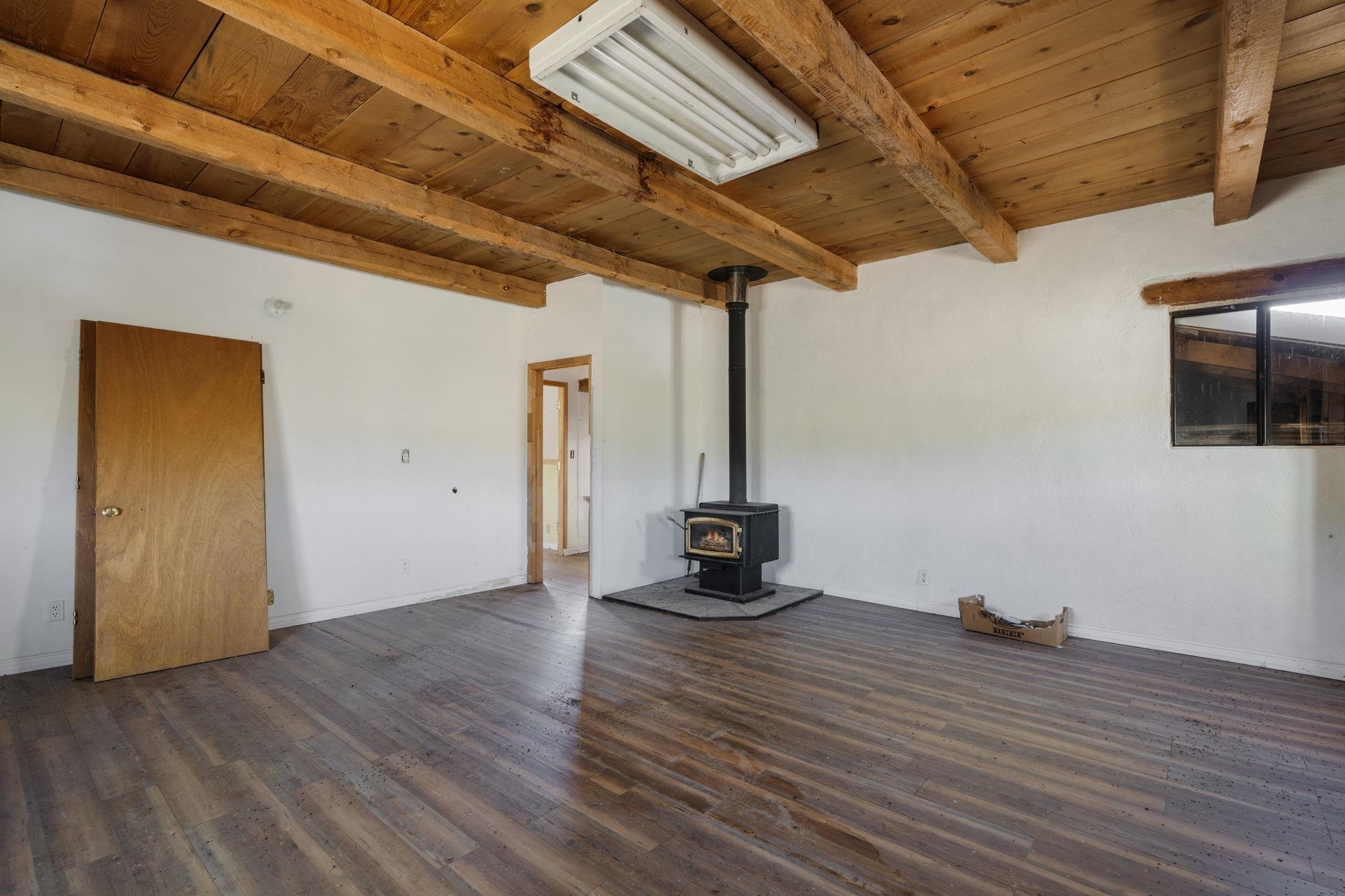 Ready to be completely reimagined : An opportunity to create a special home located in the charming community of Cordova between Truchas and Chimayo. Traditional finishes including a Northern New Mexico style pitched propanel roof (appears to be in great condition), mostly Adobe construction, beams & vigas in every room, and large windows bring in a lot of natural light, saltillo tile floors in kitchen / great room. These great features are just the beginning - new owners can continue to upgrade, repair, and improve the interior and grounds to make this property a Real Northern NM HOME. Driveway is a little rough, best to have a car with at least front wheel drive, no doors on garage / storage please limit walking around the property due to uneven grounds. Property sold in As Is condition. Sellers make no guarantees of previously used water source, septic, electrical. Buyers to conduct all due diligence on their own and at their cost. May be possible to finance with a Lender Program for Rehab loans, Buyer to research. Property is being sold in AS IS condition.