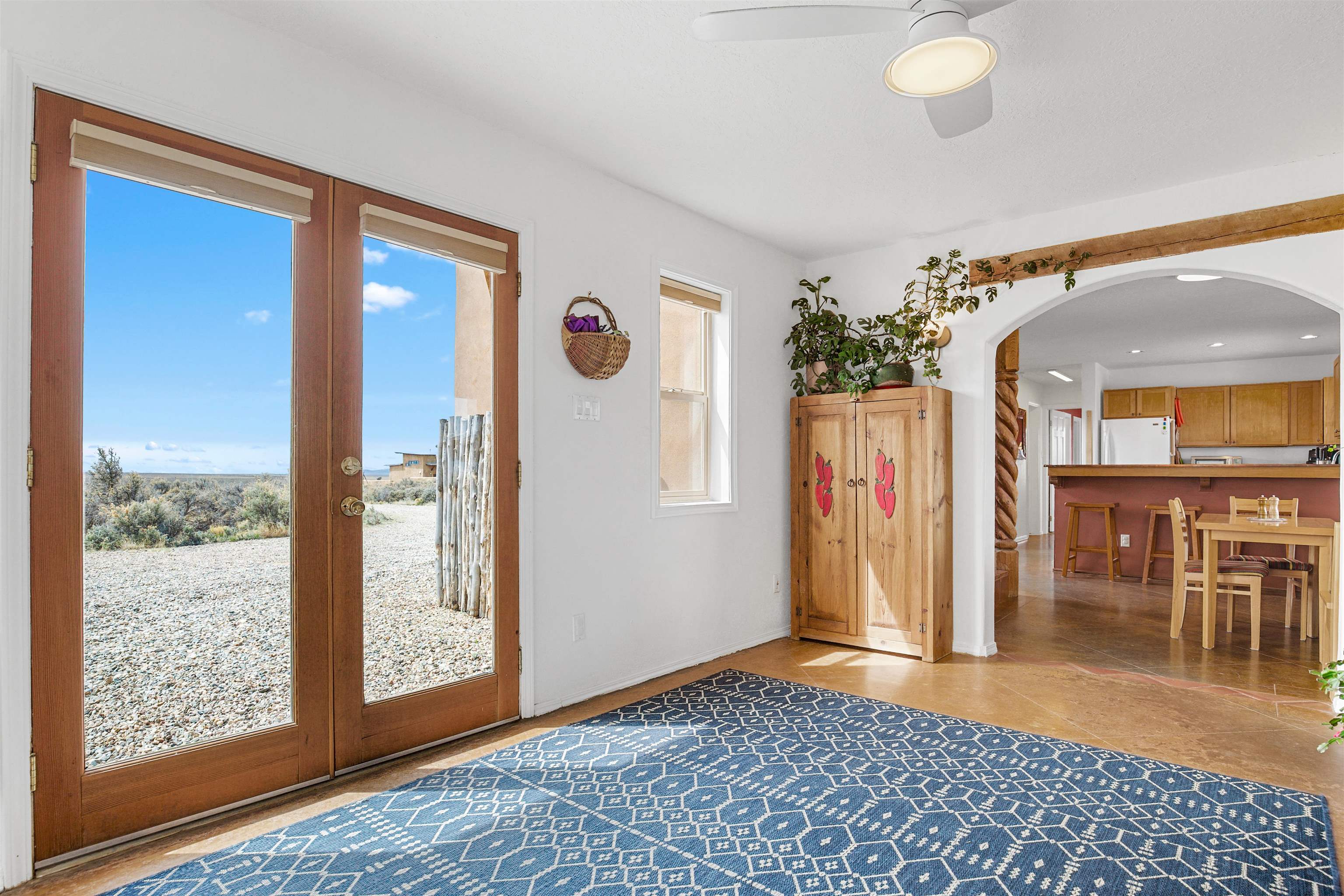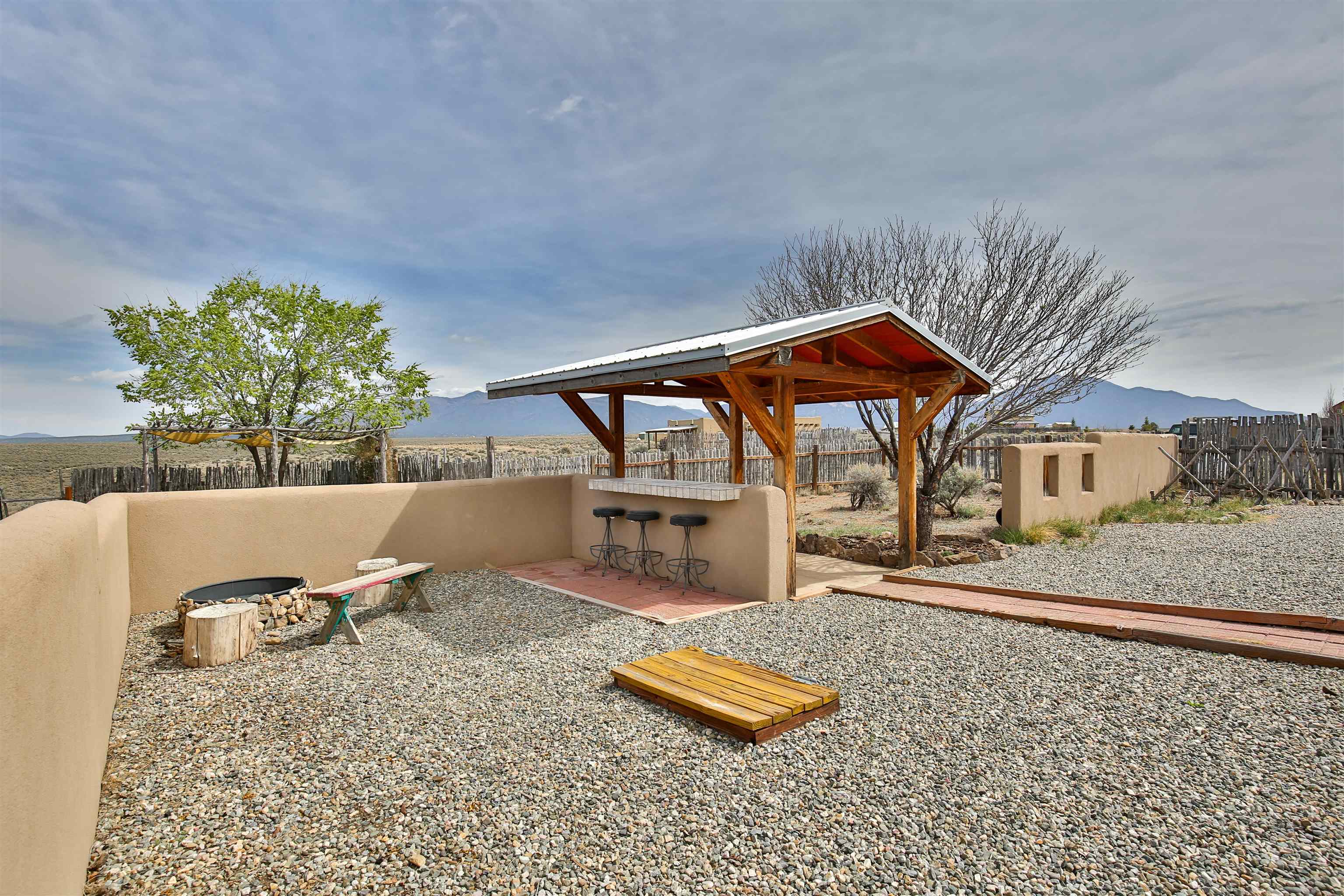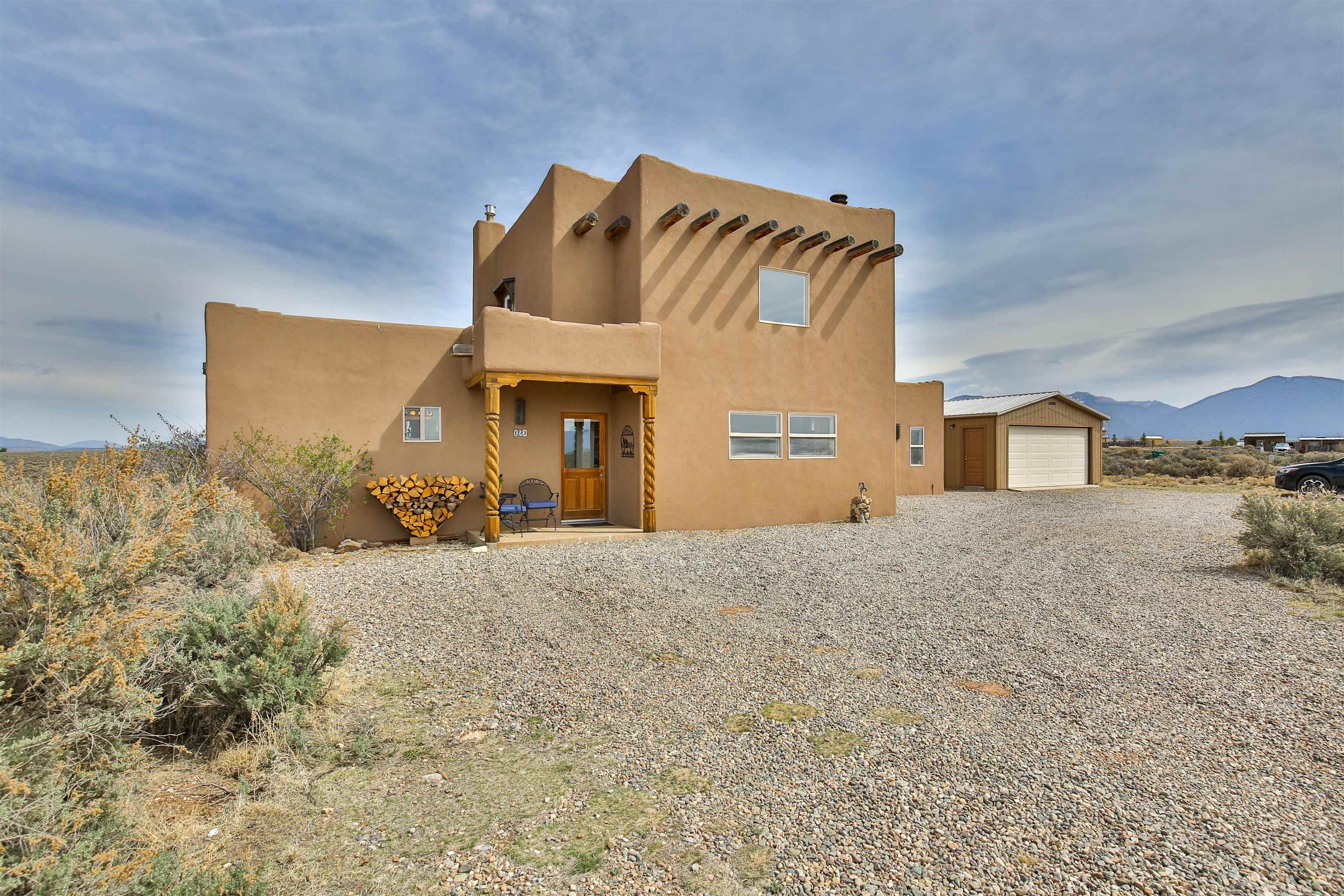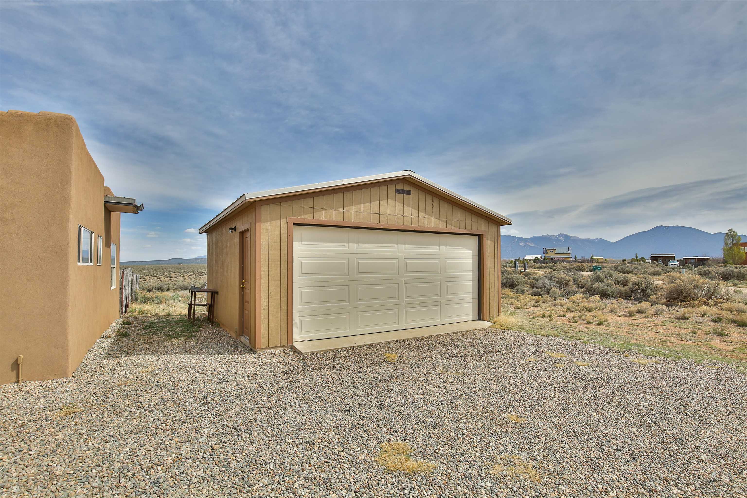 If you are looking for views, this home delivers in every direction. Seriously, every window has something to show off. This 3 bedroom, 2 and a half bath home offers space, light, and a layout that keeps things interesting. One of the bedrooms is a loft with its own ensuite bath, perfect for guests, creative space, or your own little retreat above it all. Horse lovers, this one is for you. Riding is encouraged, with designated easements along the roads and wider corridors along the east and west boundaries, so you can saddle up and head out right from home. Inside, radiant floor heat keeps things cozy, while a high efficiency wood stove adds that perfect mountain home touch. Copper countertops bring warmth and character to the kitchen, and there is room to spread out, entertain, and actually enjoy your space. The separate dining room is filled with natural light and feels made for long dinners and good company. Step outside and it only gets better. A large portal faces directly toward Taos Mountain, giving you a front row seat to one of the best views in the area. It is the perfect setting for outdoor entertaining, complete with an exterior bar and barbecue area. There is also a separate area for animals, making this property as practical as it is beautiful. If you love the outdoors, you are in the right place. Hiking, biking, and exploring are all close by, with the Rio Grande del Norte National Monument just minutes away, helping preserve the views and the wide open feel for years to come. Space, views, and a lifestyle that feels a little bigger out here. Come see it for yourself. For more views: https://youtu.be/mpZ2B_1aX8M