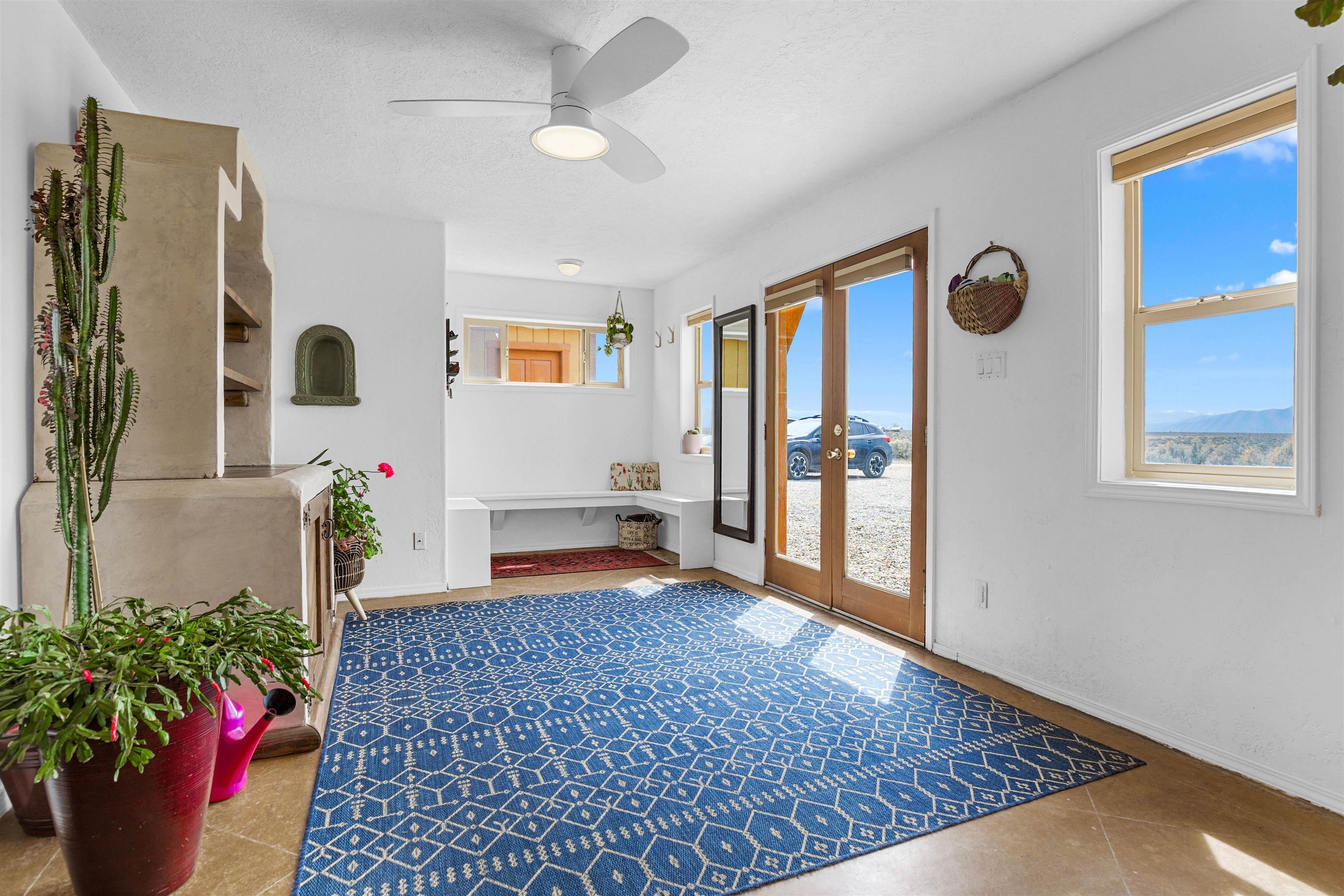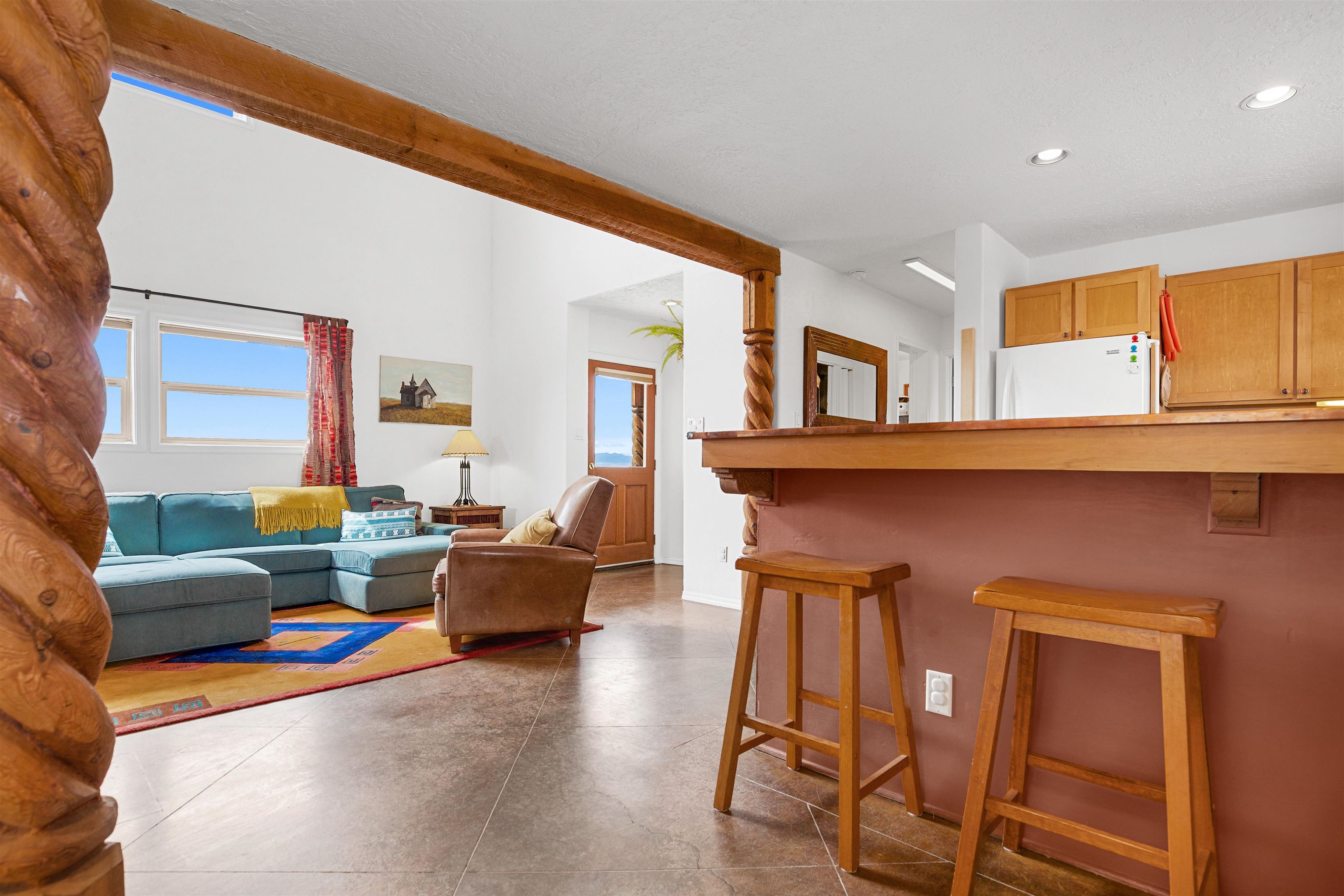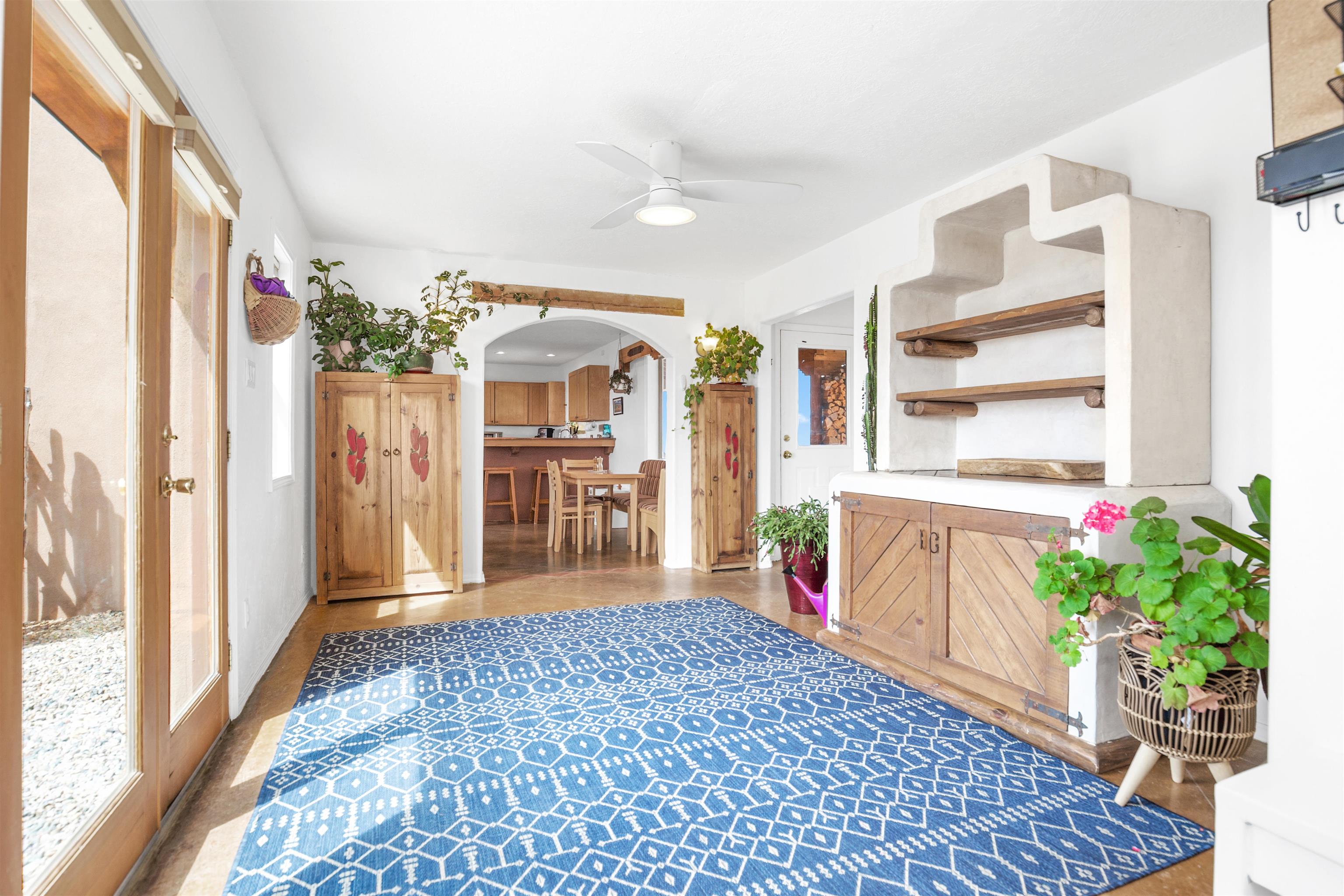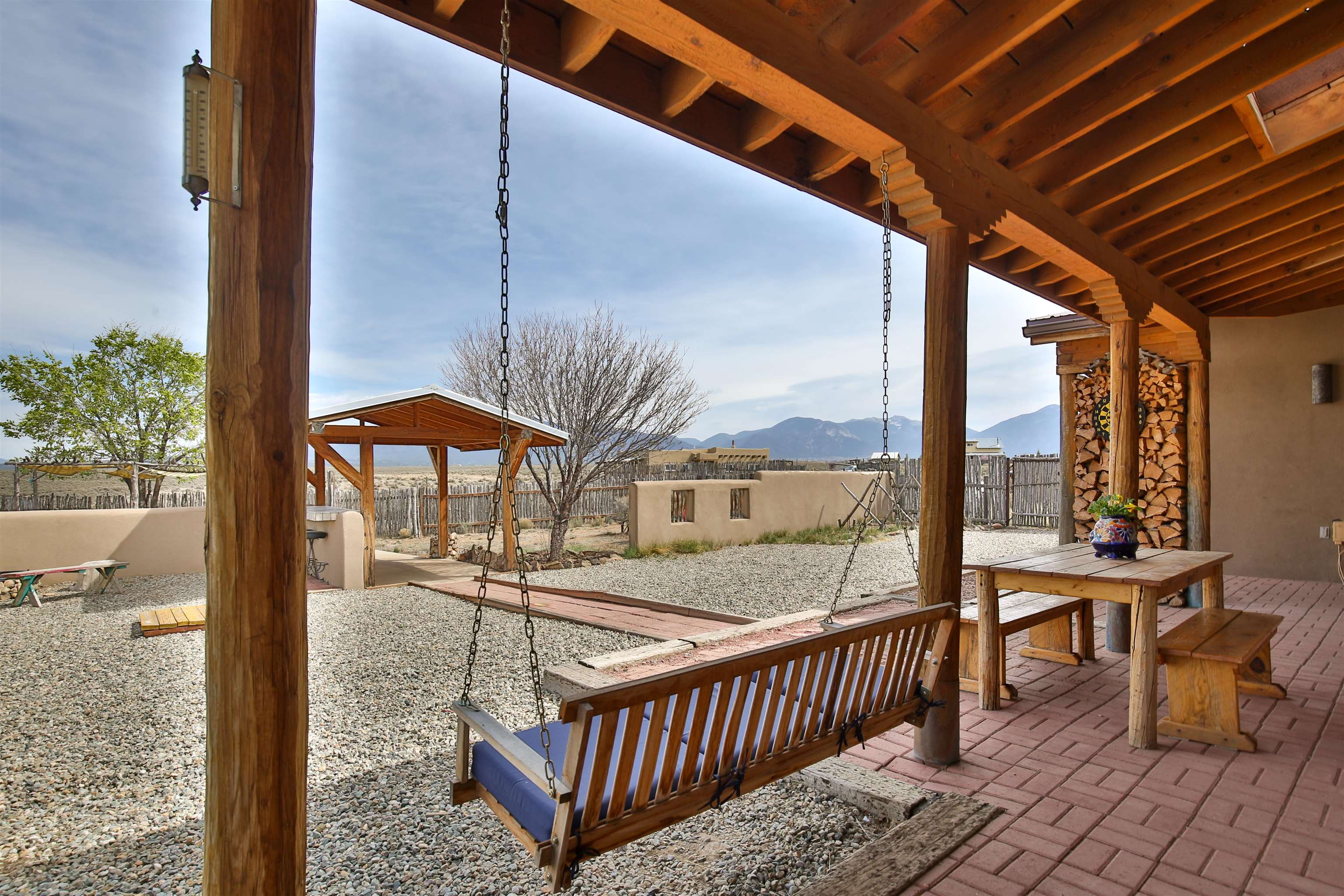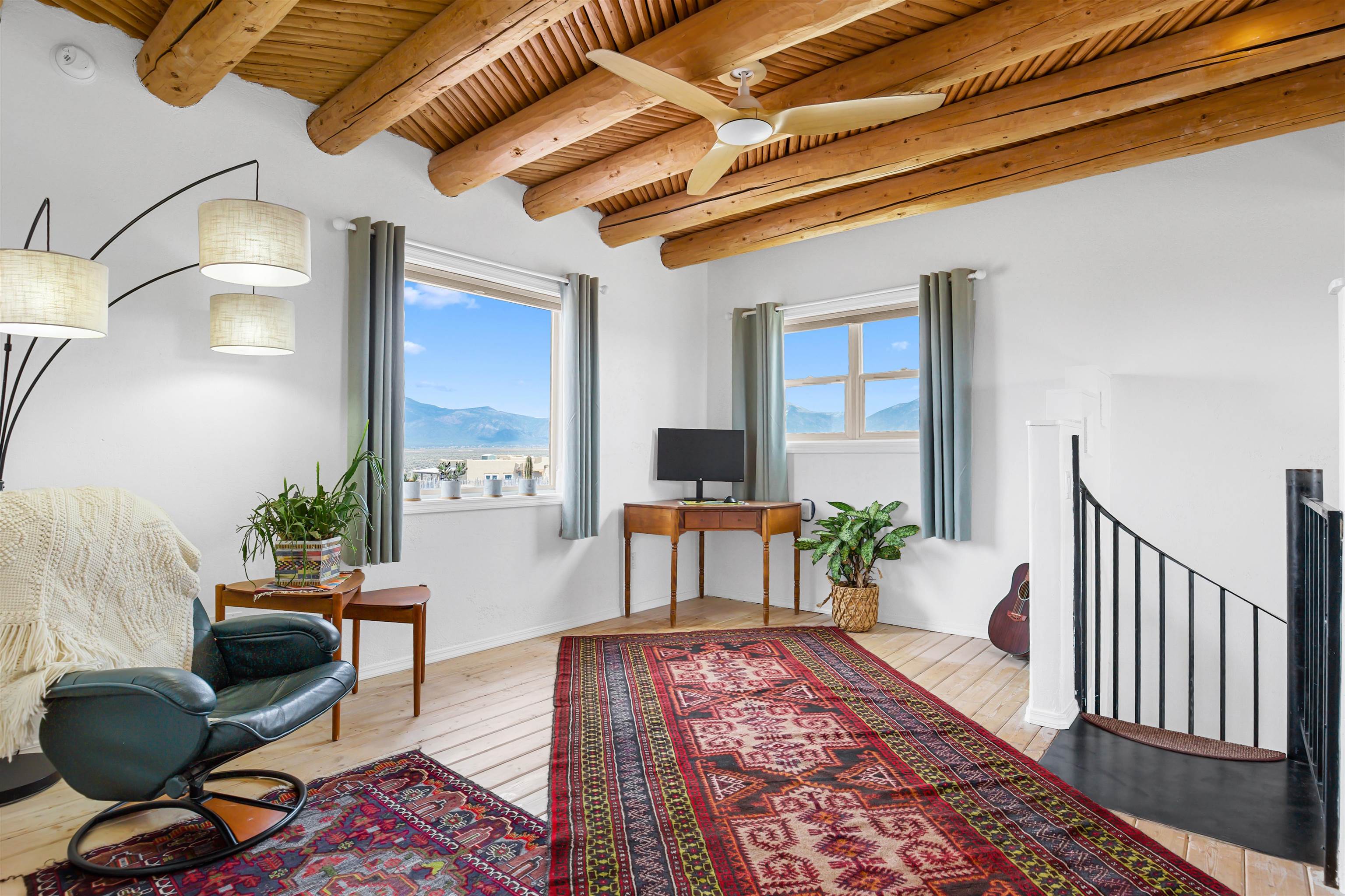 If you are looking for views, this home delivers in every direction. Seriously, every window has something to show off. This 3 bedroom, 2 and a half bath home offers space, light, and a layout that keeps things interesting. One of the bedrooms is a loft with its own ensuite bath, perfect for guests, creative space, or your own little retreat above it all. Horse lovers, this one is for you. Riding is encouraged, with designated easements along the roads and wider corridors along the east and west boundaries, so you can saddle up and head out right from home. Inside, radiant floor heat keeps things cozy, while a high efficiency wood stove adds that perfect mountain home touch. Copper countertops bring warmth and character to the kitchen, and there is room to spread out, entertain, and actually enjoy your space. The separate dining room is filled with natural light and feels made for long dinners and good company. Step outside and it only gets better. A large portal faces directly toward Taos Mountain, giving you a front row seat to one of the best views in the area. It is the perfect setting for outdoor entertaining, complete with an exterior bar and barbecue area. There is also a separate area for animals, making this property as practical as it is beautiful. If you love the outdoors, you are in the right place. Hiking, biking, and exploring are all close by, with the Rio Grande del Norte National Monument just minutes away, helping preserve the views and the wide open feel for years to come. Space, views, and a lifestyle that feels a little bigger out here. Come see it for yourself. For more views: https://youtu.be/mpZ2B_1aX8M