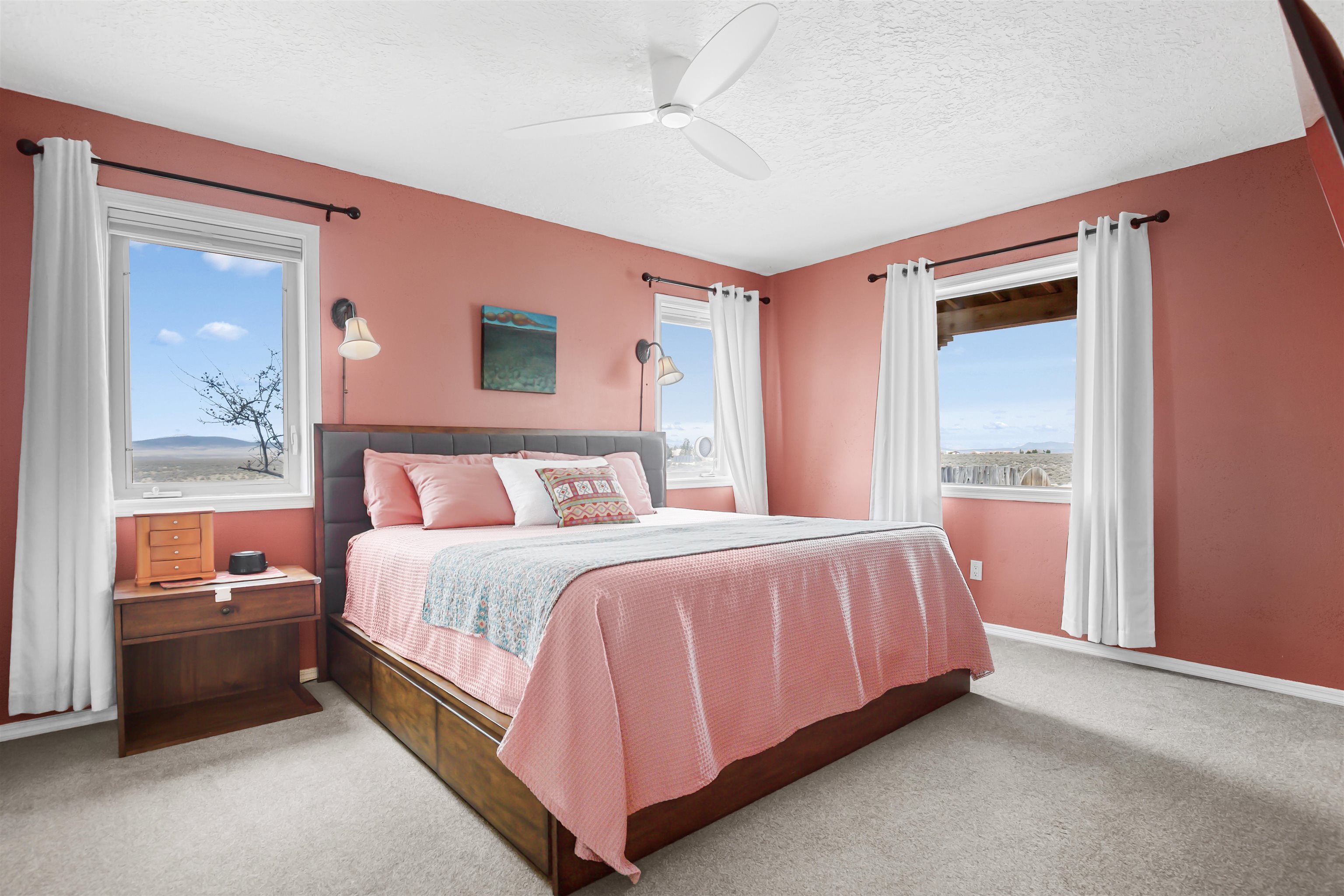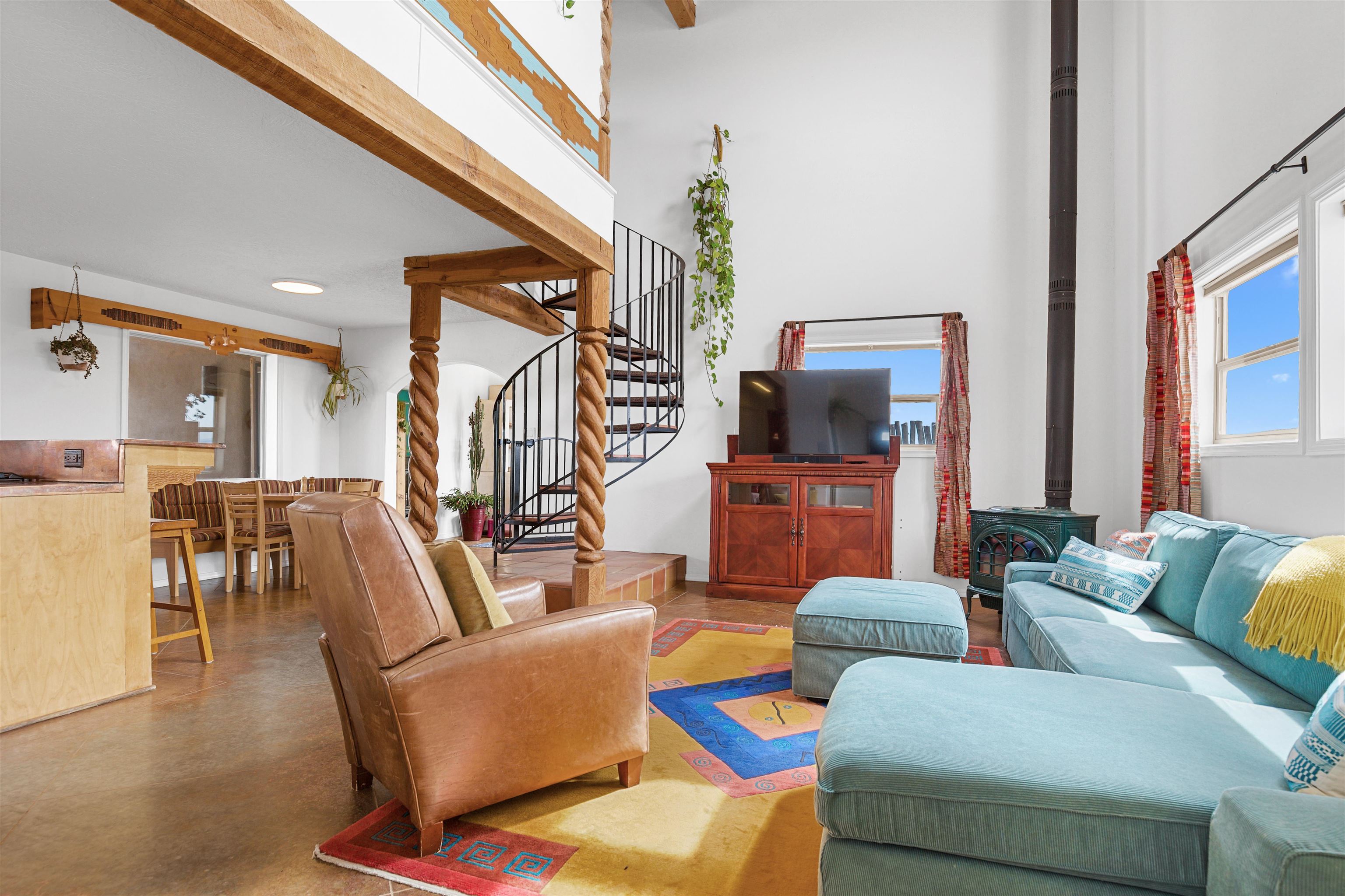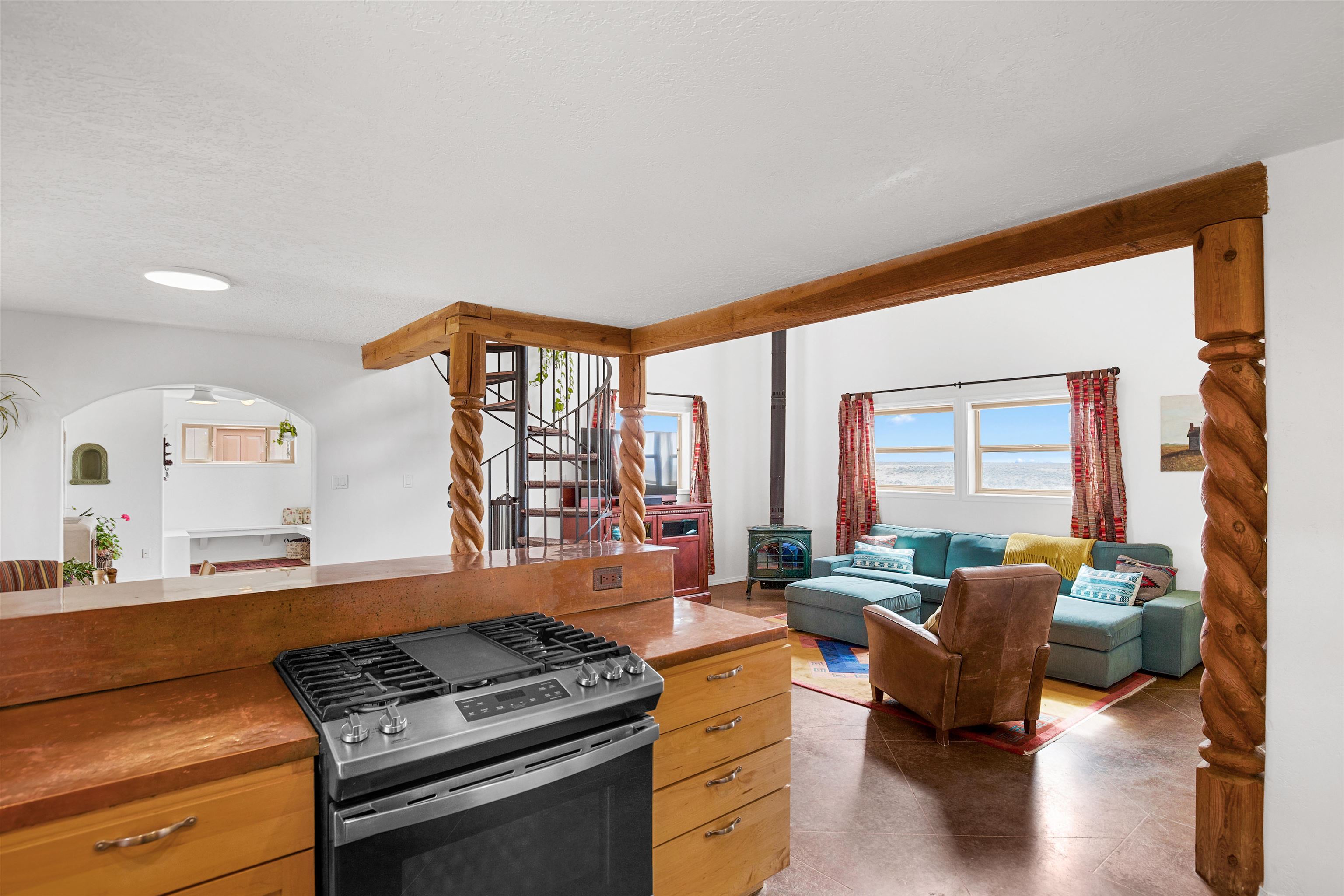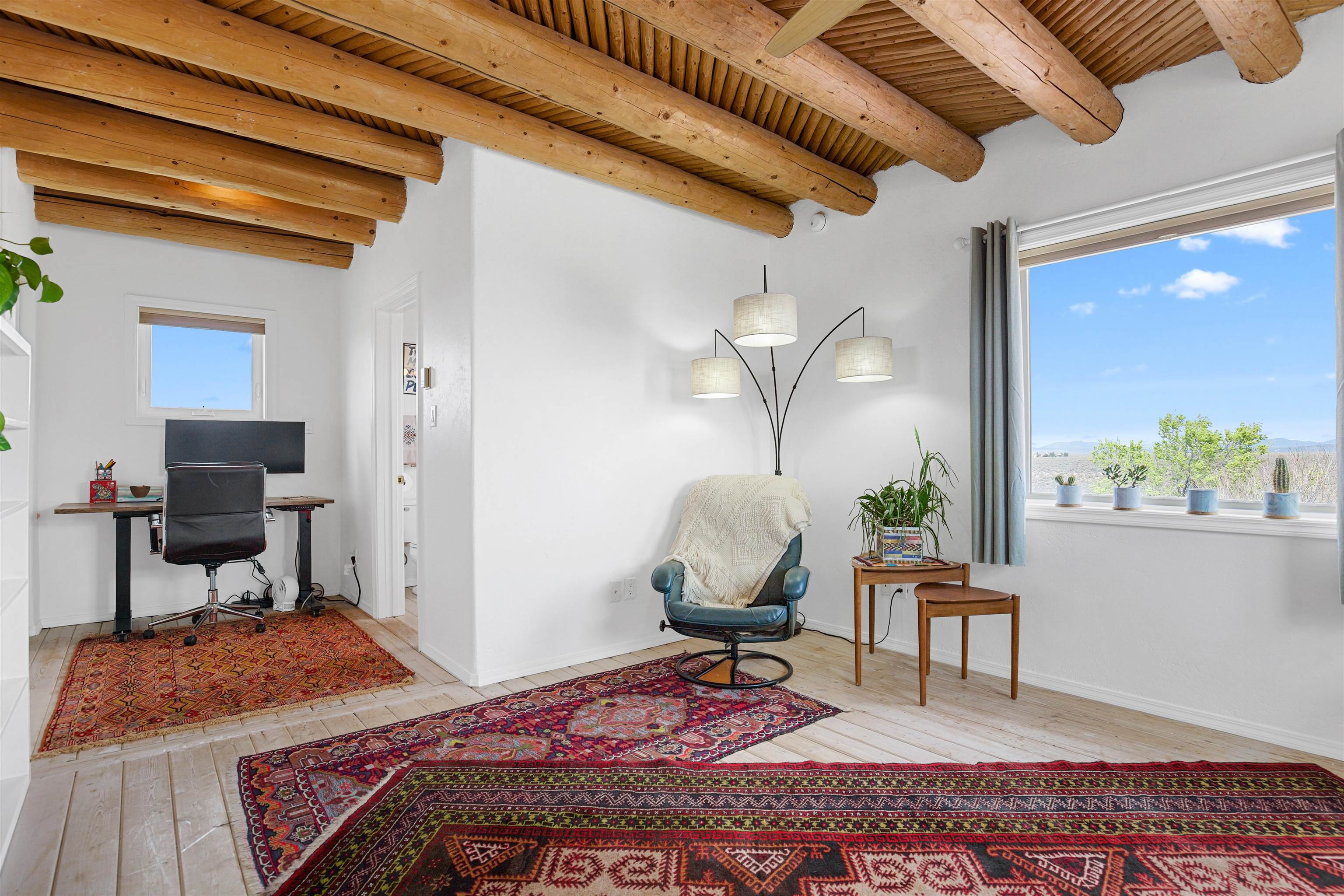 If you are looking for views, this home delivers in every direction. Seriously, every window has something to show off. This 3 bedroom, 2 and a half bath home offers space, light, and a layout that keeps things interesting. One of the bedrooms is a loft with its own ensuite bath, perfect for guests, creative space, or your own little retreat above it all. Horse lovers, this one is for you. Riding is encouraged, with designated easements along the roads and wider corridors along the east and west boundaries, so you can saddle up and head out right from home. Inside, radiant floor heat keeps things cozy, while a high efficiency wood stove adds that perfect mountain home touch. Copper countertops bring warmth and character to the kitchen, and there is room to spread out, entertain, and actually enjoy your space. The separate dining room is filled with natural light and feels made for long dinners and good company. Step outside and it only gets better. A large portal faces directly toward Taos Mountain, giving you a front row seat to one of the best views in the area. It is the perfect setting for outdoor entertaining, complete with an exterior bar and barbecue area. There is also a separate area for animals, making this property as practical as it is beautiful. If you love the outdoors, you are in the right place. Hiking, biking, and exploring are all close by, with the Rio Grande del Norte National Monument just minutes away, helping preserve the views and the wide open feel for years to come. Space, views, and a lifestyle that feels a little bigger out here. Come see it for yourself. For more views: https://youtu.be/mpZ2B_1aX8M