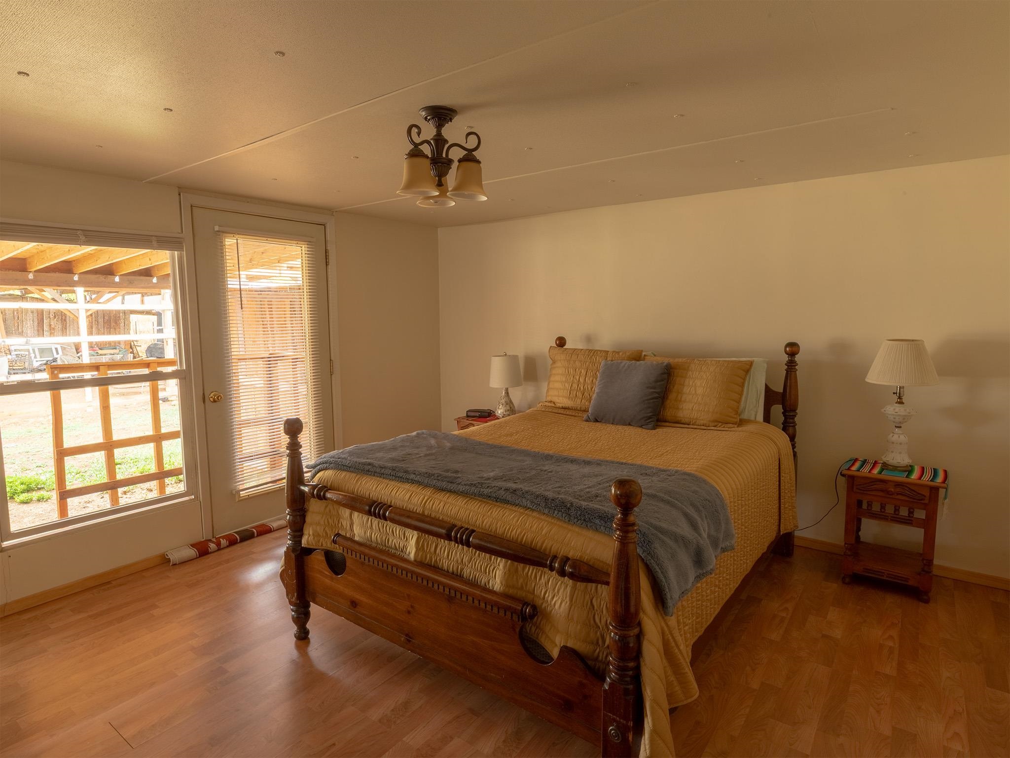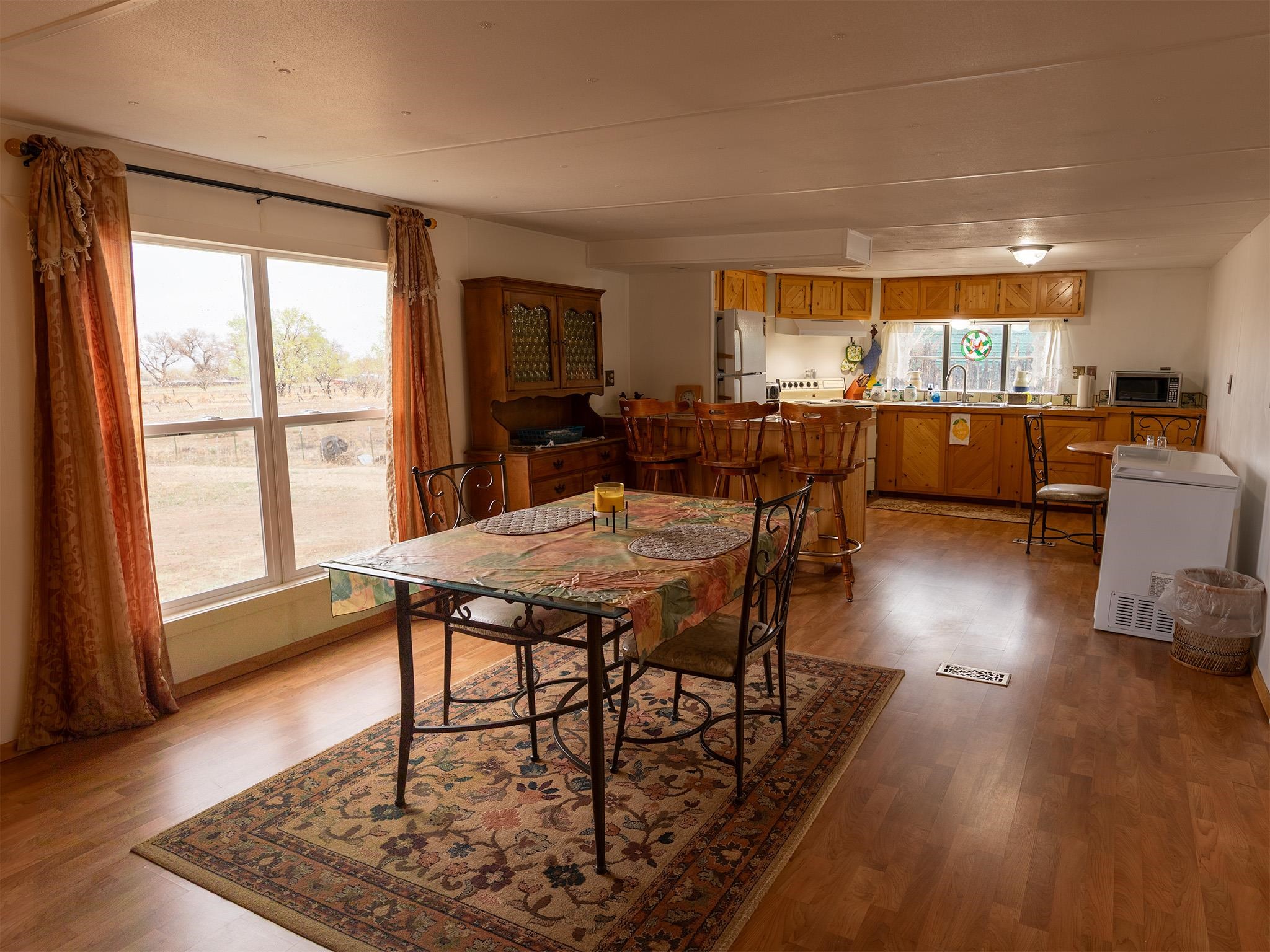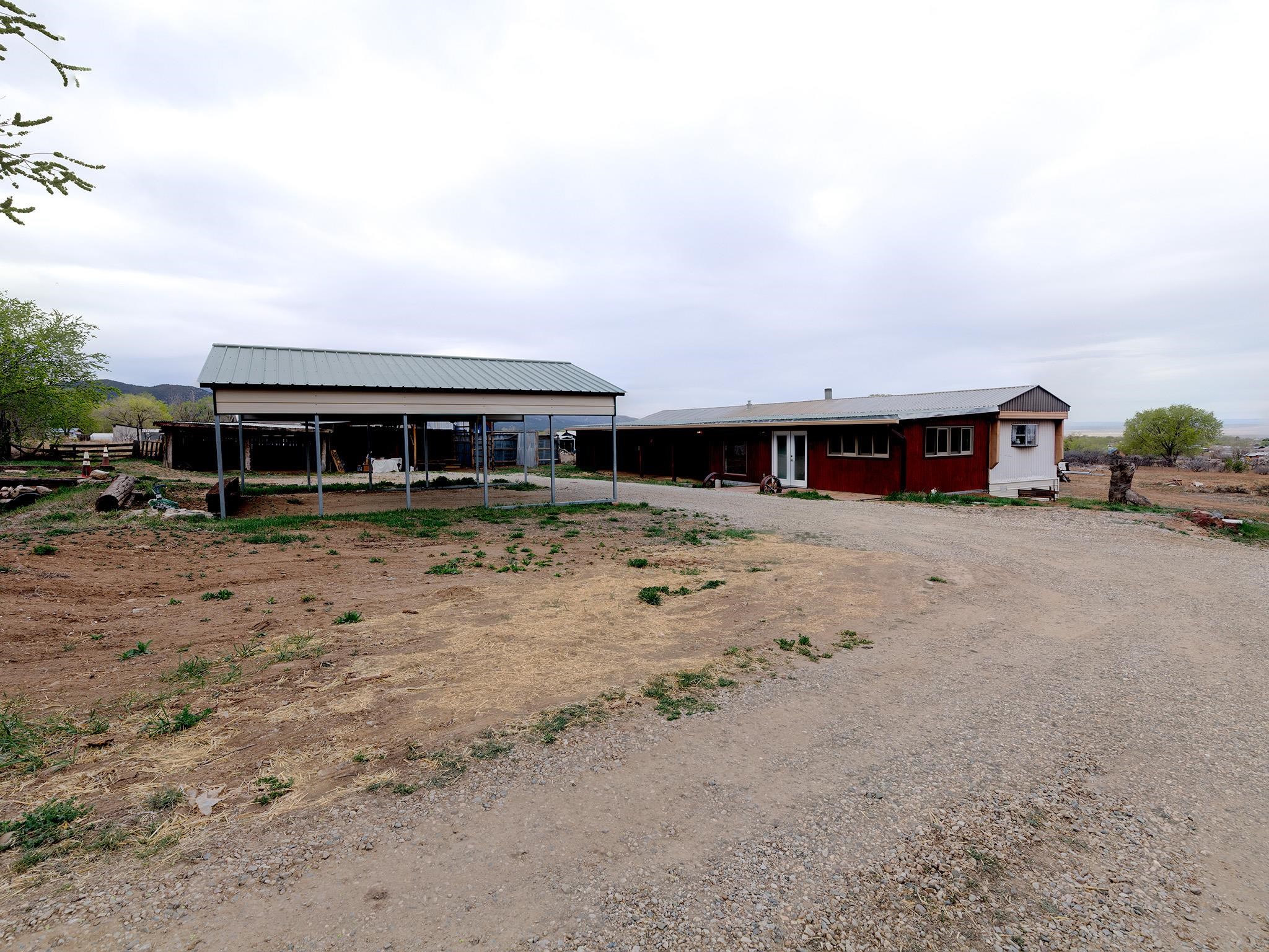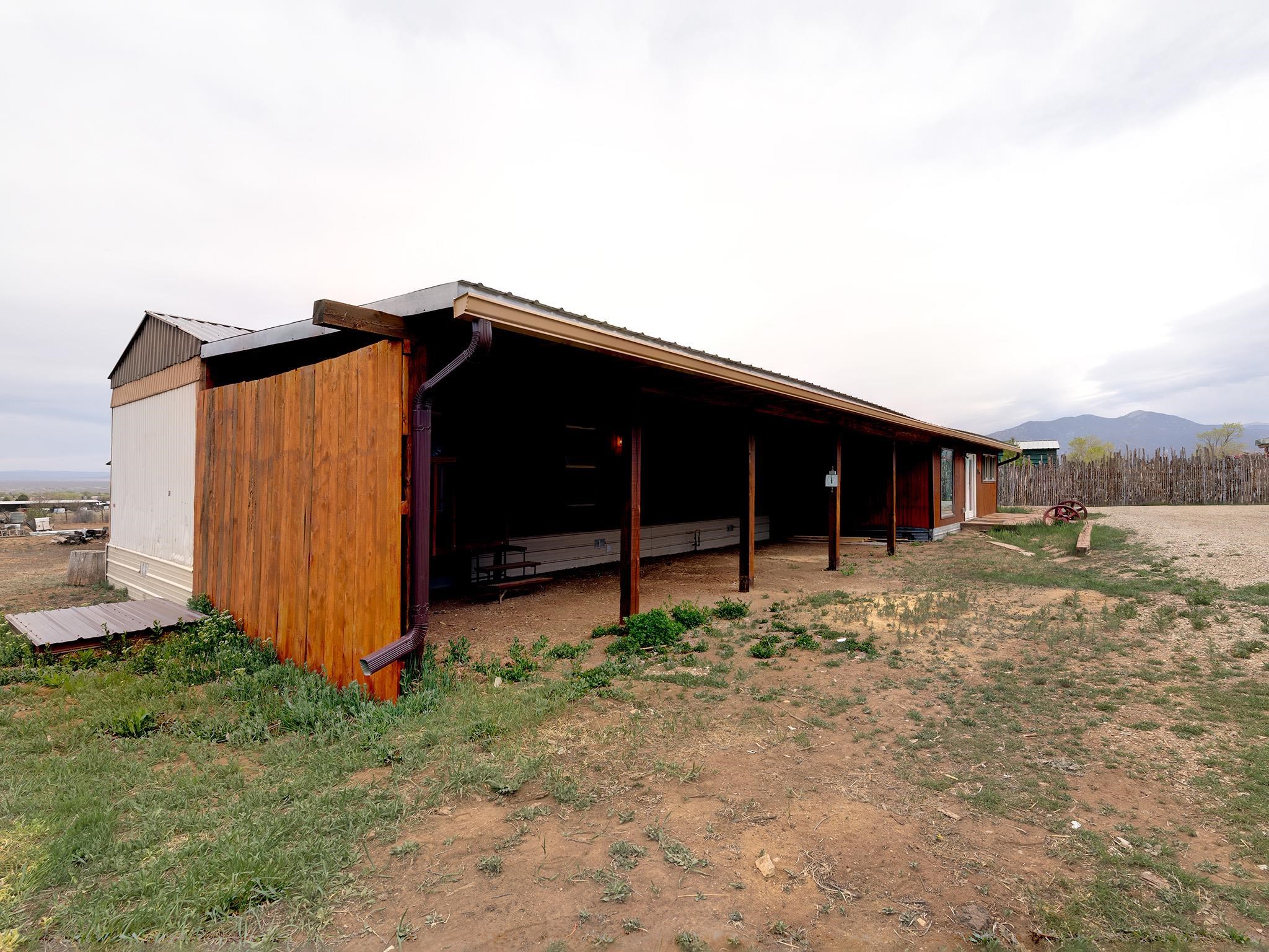 Investment opportunity meets move-in-ready living in Ranchos de Taos Positioned at the end of a legal easement in Ranchos de Taos, this 1.17-acre dual-parcel property delivers a rare combination of privacy, infrastructure, and real upside potential — all framed by expansive west and north-facing views across the Taos Valley and unforgettable sunset skies. Comprised of two tax lots, this property offers immediate flexibility and investment opportunity. One parcel, approximately 0.5 acres, is fully developable and already served by El Valle de los Ranchos water and sewer — a significant advantage that can dramatically reduce the time, cost, and friction typically associated with new construction in the area. The existing residence is a clean, recently refreshed 3-bedroom, 2-bath mobile home with an active title, complemented by a well-constructed split-level addition that creates a comfortable and functional living or family room space. The home can be conveyed furnished, offering a turnkey opportunity for rental income, seasonal use, or immediate occupancy. Maintaining the home as a titled manufactured residence may offer favorable property tax treatment compared to some site-built alternatives, contributing to overall holding cost efficiency. Buyers should verify current and future tax implications with the Taos County Assessor. Additional improvements include a two-stall detached carport and two large shop/workshop structures, providing excellent space for storage, creative use, or business operations. An irrigation ditch crosses the property, with associated water rights adding both character and long-term value. Whether you’re seeking a move-in ready home with income potential, a live/work setup, or a strategic development opportunity with infrastructure already in place, this property offers multiple paths forward in one of the most sought-after areas of Taos. Buyer to verify all utilities, water rights, development potential, and permitted uses. Square footage is approximate and may include additions. Buyers should obtain independent measurements if square footage is material to their purchase decision.