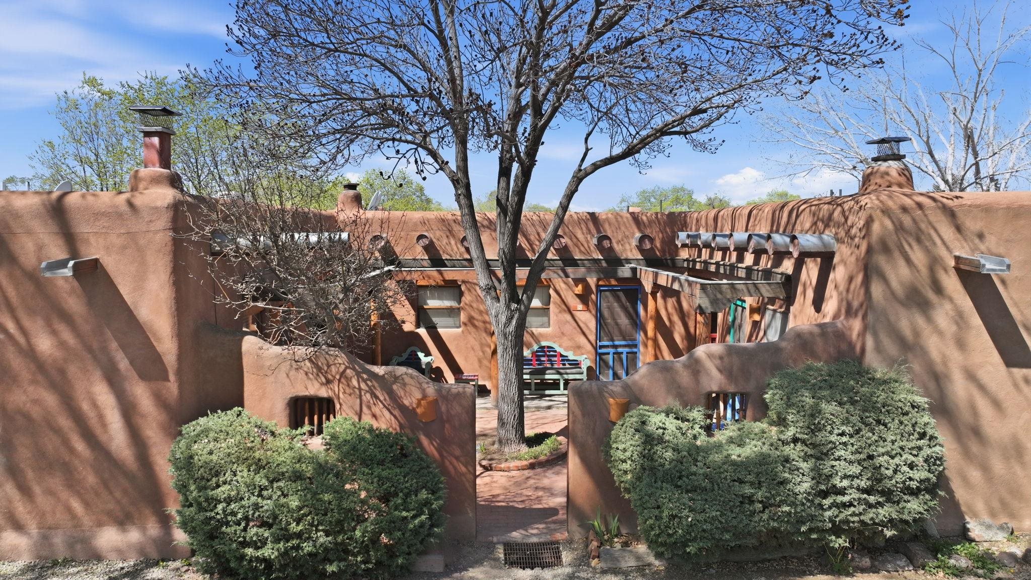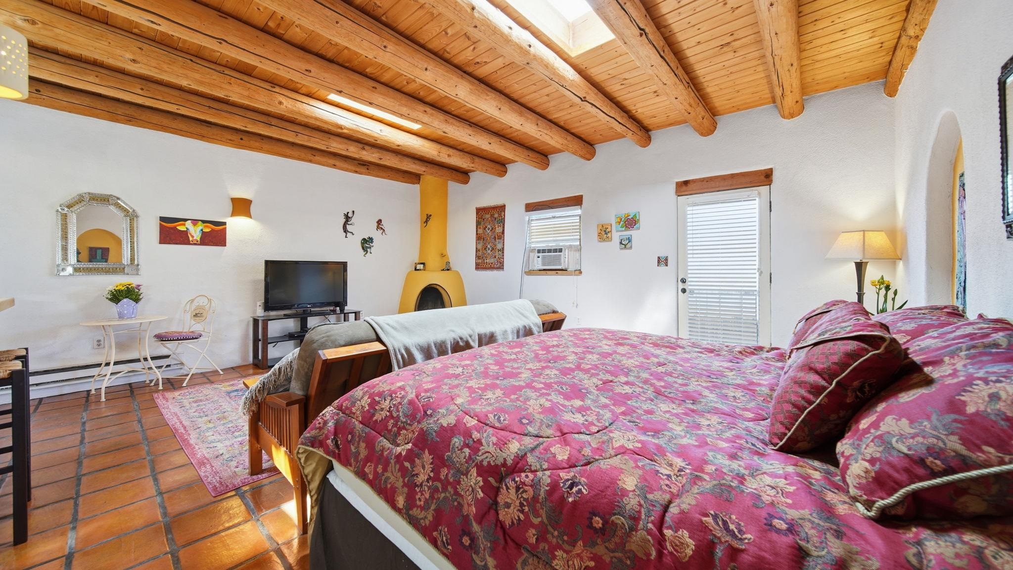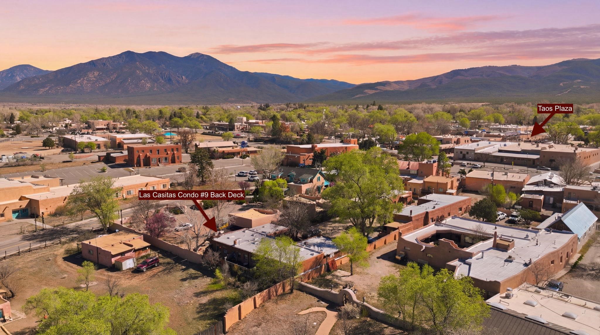Sunset-Facing Historic Adobe Studio Around the Corner from Taos Plaza ~ Quietly tucked into the very northwest corner of the Las Casitas Condominiums blooming courtyard, #9 West is a highly private adobe studio listed on the National Register of Historic Places. The space is firmly grounded in authentic Southwestern character, featuring classic Saltillo tile floors, exposed ceiling vigas and beams with t&g, large nichos, built-in bancos, and a kiva fireplace for chilly high-desert nights. Plenty of natural light flows into this warm and well lit condo with skylights. As one of only three units in the building with a western exposure, the studio provides a rare sense of space and a vantage point to watch the sunset filter through distant cottonwoods. Walk and bike everywhere from this secluded unit; the historic Taos Plaza is just steps away, offering immediate access to the area's renowned galleries, museums, restaurants, and live music venues. Taos Ski Valley for skiing and then Ojo Caliente Hot Spring for soaking, both are a short scenic drive over the Gorge Bridge and Rio Grande National Monument. Designed for an effortless lifestyle, the low condo HOA cost covers grounds maintenance, trash service, water, sewer, and general insurance on the unit structure, helping to keep utility costs down for all homeowners. This is the Taos Casita you don't want to let get away, reach out to see for yourself! Vamos!