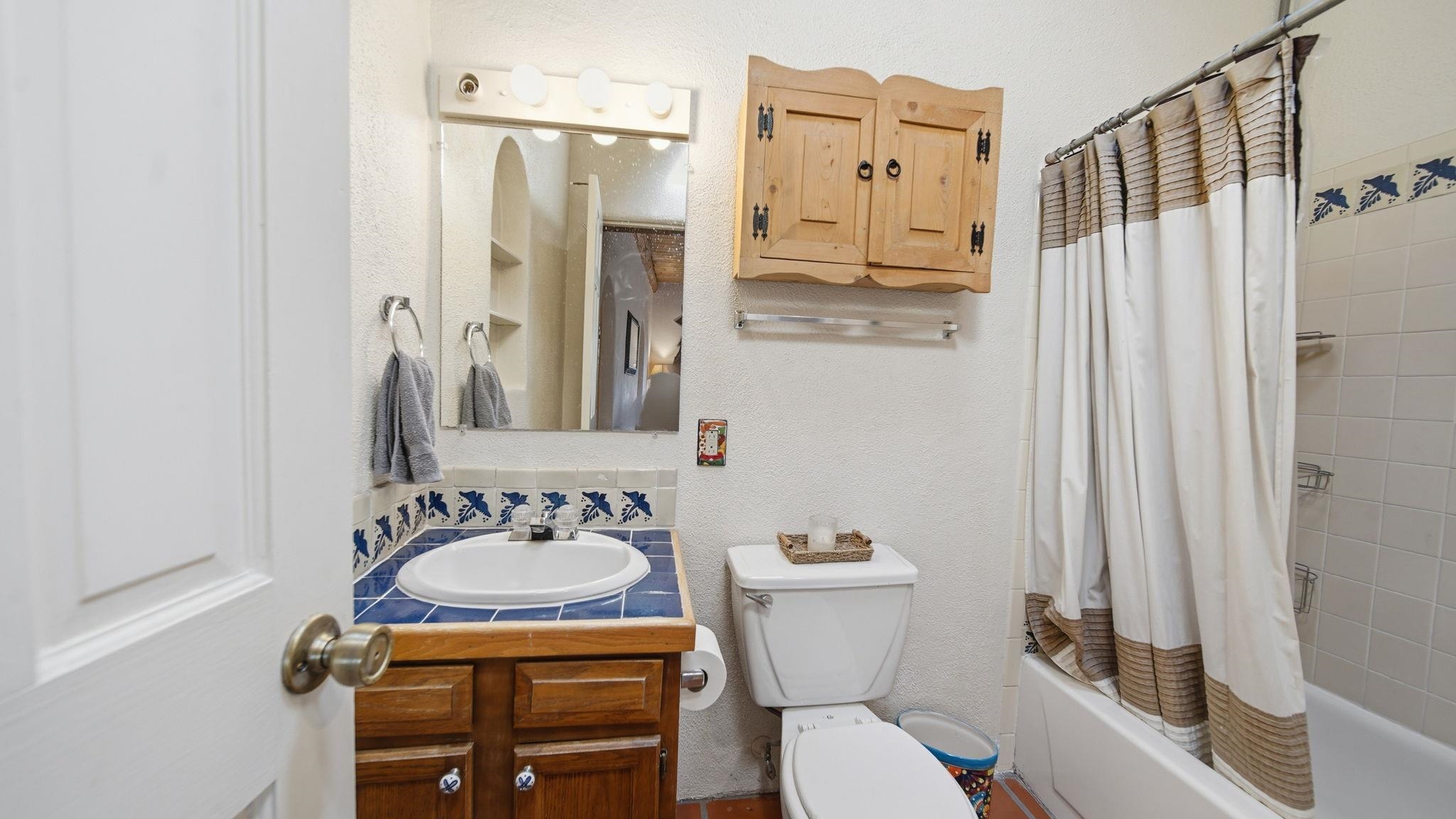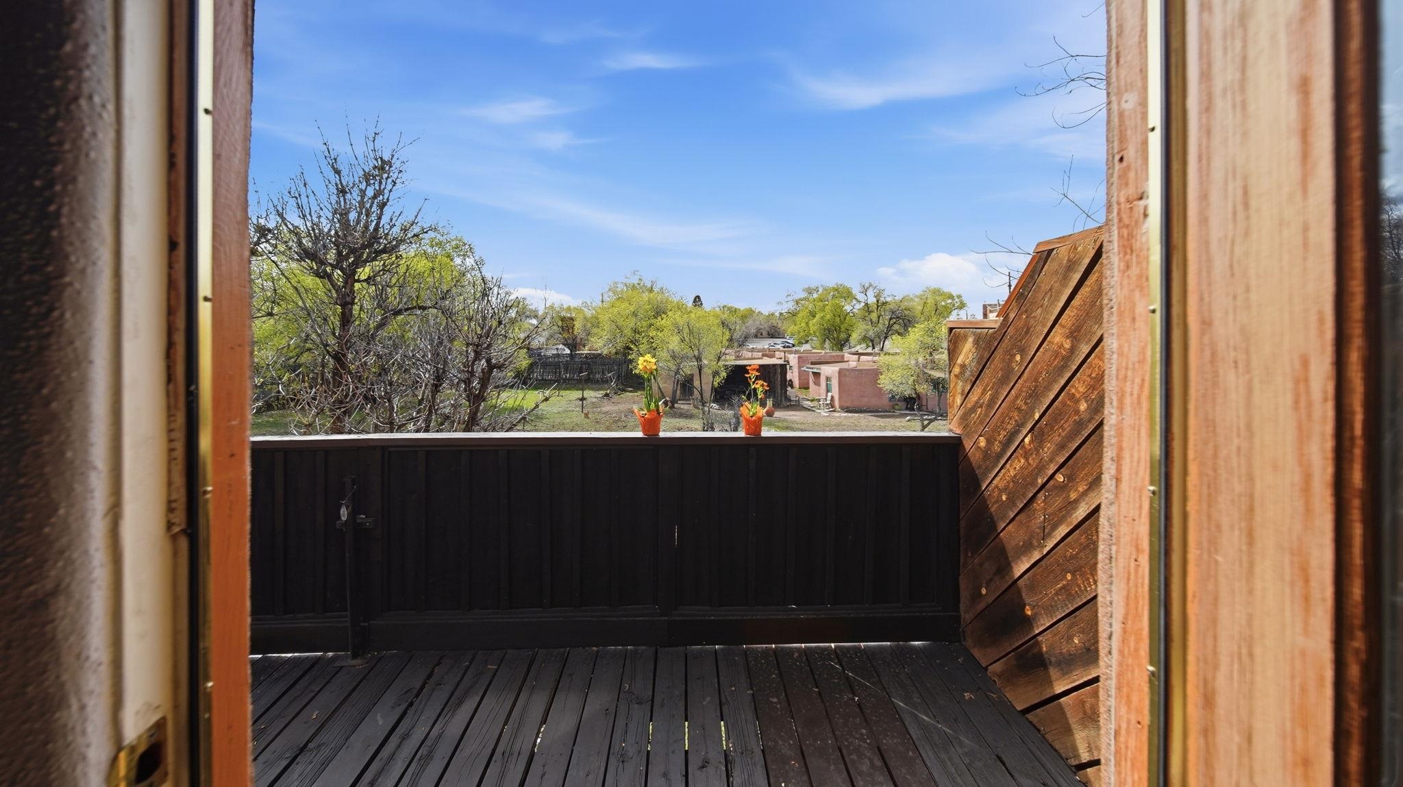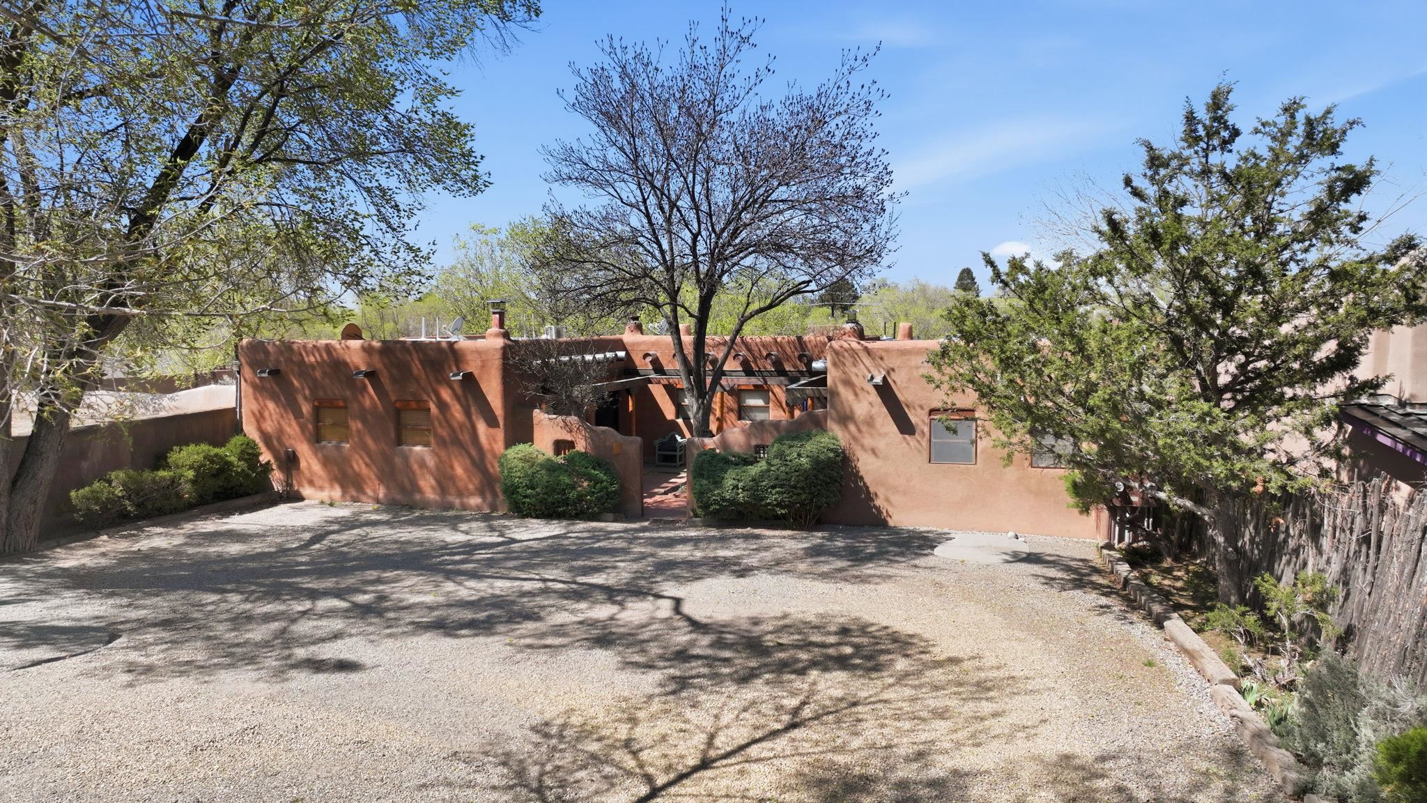 Sunset-Facing Historic Adobe Studio Around the Corner from Taos Plaza ~ Quietly tucked into the very northwest corner of the Las Casitas Condominiums blooming courtyard, #9 West is a highly private adobe studio listed on the National Register of Historic Places. The space is firmly grounded in authentic Southwestern character, featuring classic Saltillo tile floors, exposed ceiling vigas and beams with t&g, large nichos, built-in bancos, and a kiva fireplace for chilly high-desert nights. Plenty of natural light flows into this warm and well lit condo with skylights. As one of only three units in the building with a western exposure, the studio provides a rare sense of space and a vantage point to watch the sunset filter through distant cottonwoods. Walk and bike everywhere from this secluded unit; the historic Taos Plaza is just steps away, offering immediate access to the area's renowned galleries, museums, restaurants, and live music venues. Taos Ski Valley for skiing and then Ojo Caliente Hot Spring for soaking, both are a short scenic drive over the Gorge Bridge and Rio Grande National Monument. Designed for an effortless lifestyle, the low condo HOA cost covers grounds maintenance, trash service, water, sewer, and general insurance on the unit structure, helping to keep utility costs down for all homeowners. This is the Taos Casita you don't want to let get away, reach out to see for yourself! Vamos!