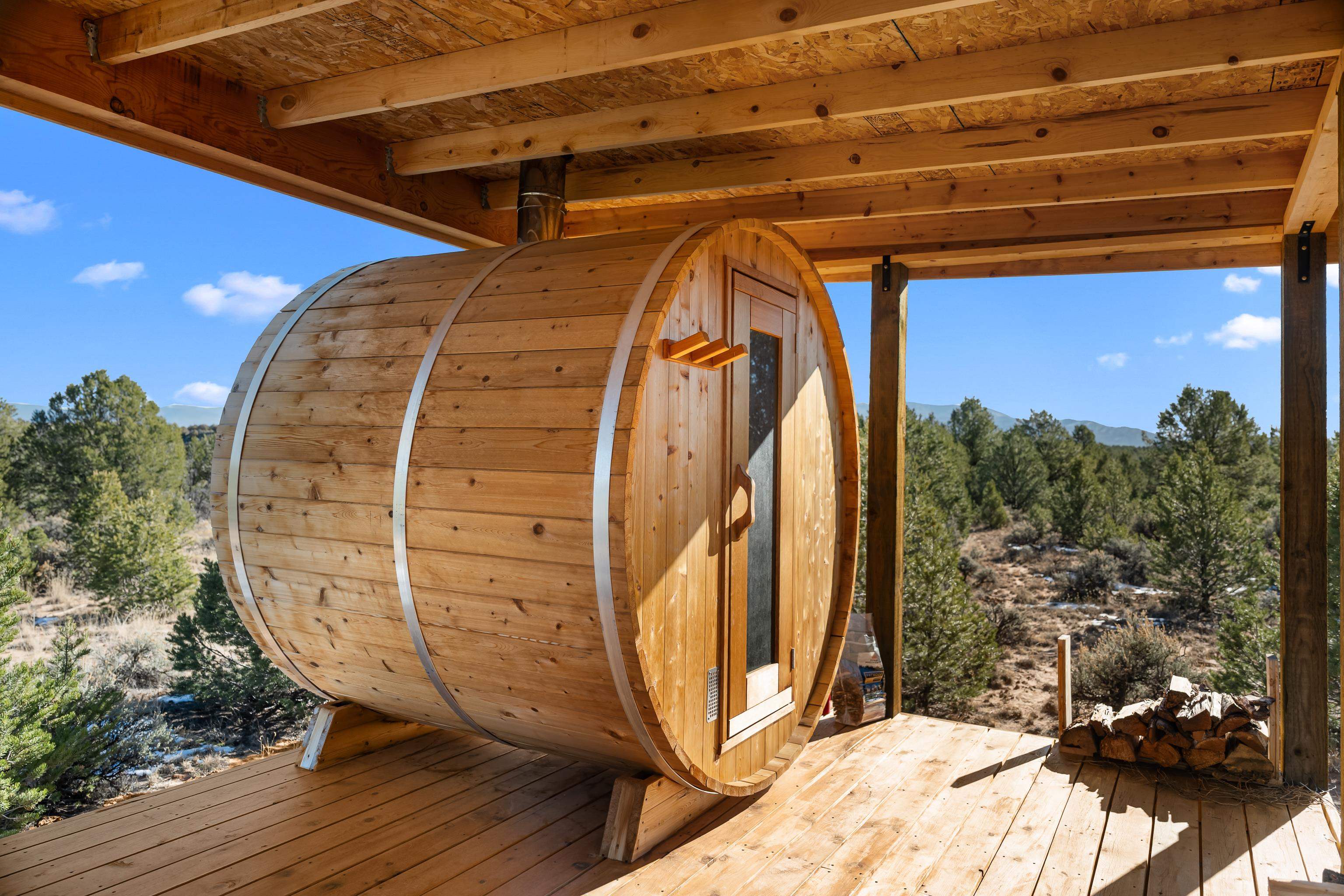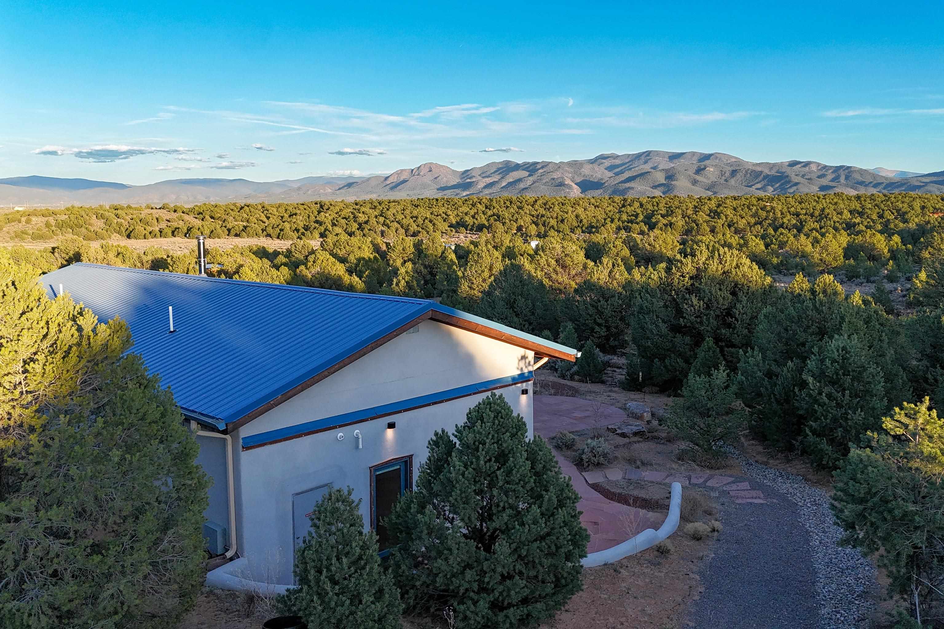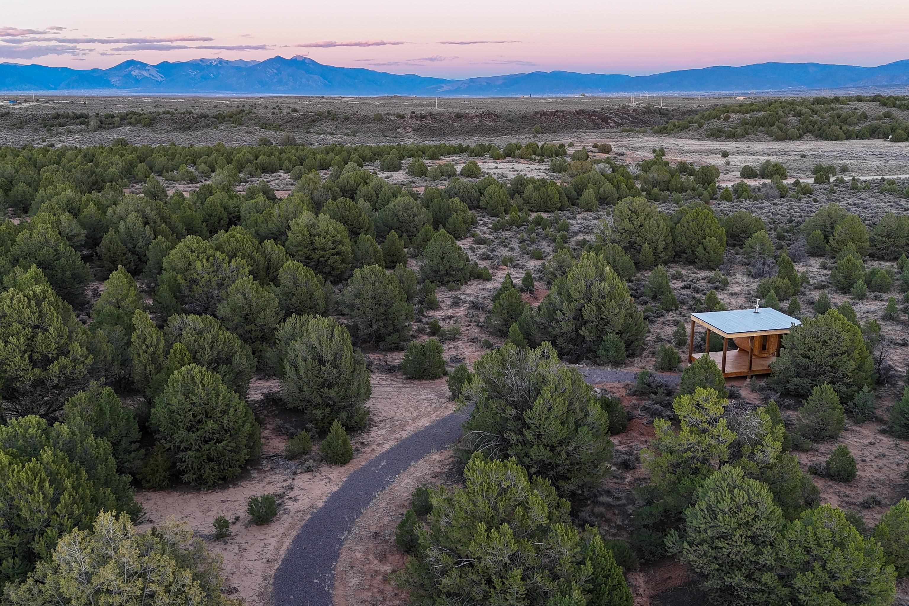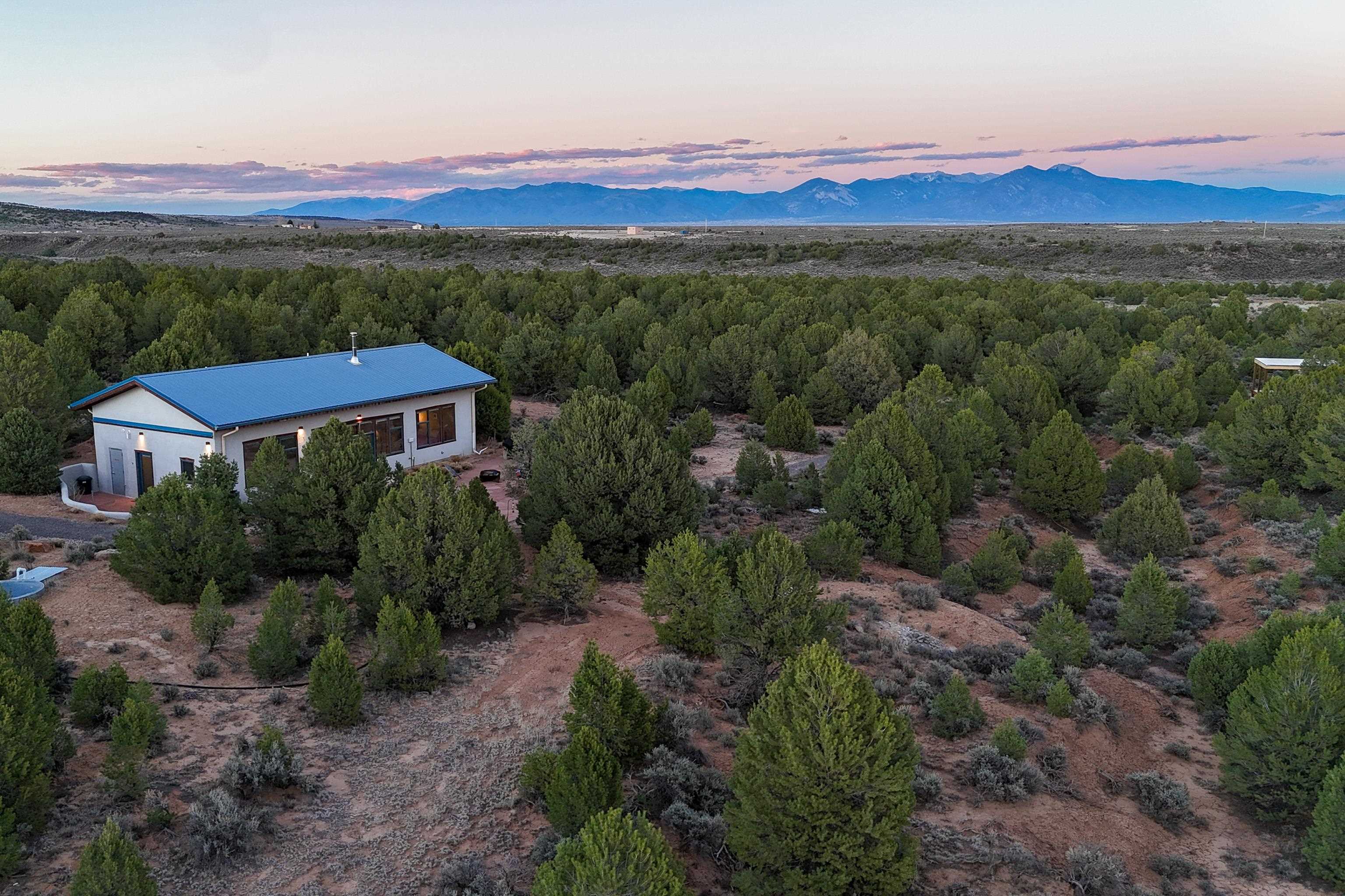 Set on 9 private acres just outside Carson, this thoughtfully crafted 2-bedroom, 2-bath home offers a rare balance of independence, comfort, and enduring quality—just 35 minutes from Taos. Built in 2013 with an emphasis on efficiency and longevity, the home pairs rammed earth and straw bale construction along the north wall with expansive south-facing windows that invite in natural light and passive solar warmth. The result is a space that feels grounded, quiet, and consistently comfortable year-round. The 1,500-square-foot interior is open and sun-filled, with a seamless flow between living, dining, and kitchen. Scandinavian-inspired solid wood cabinetry brings a clean, understated warmth, while French doors open to a beautifully crafted flagstone patio—an easy extension of daily living. Fully off-grid, the property is powered by a well-designed photovoltaic solar system with battery storage housed in a dedicated insulated room, offering reliable, modern functionality without compromise. A short walk along a gravel path leads to a separate sauna pavilion, where a wood-burning barrel sauna frames mountain views through a round picture window—an experience as much as an amenity. Gated access, wide-open skies, and a true sense of quiet define the setting. This is a home built with intention—where craftsmanship, efficiency, and a connection to the landscape come together in a way that’s increasingly hard to find.