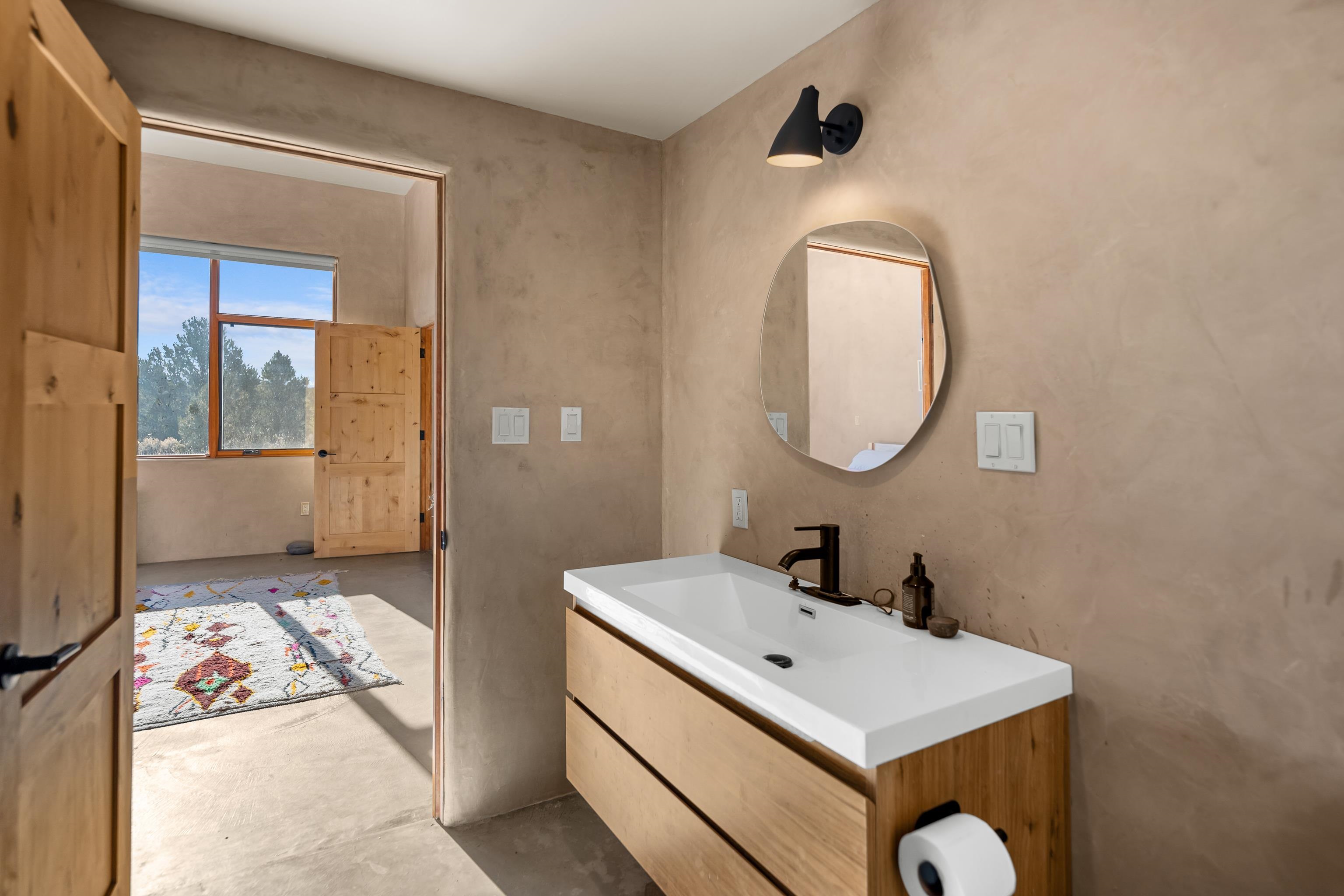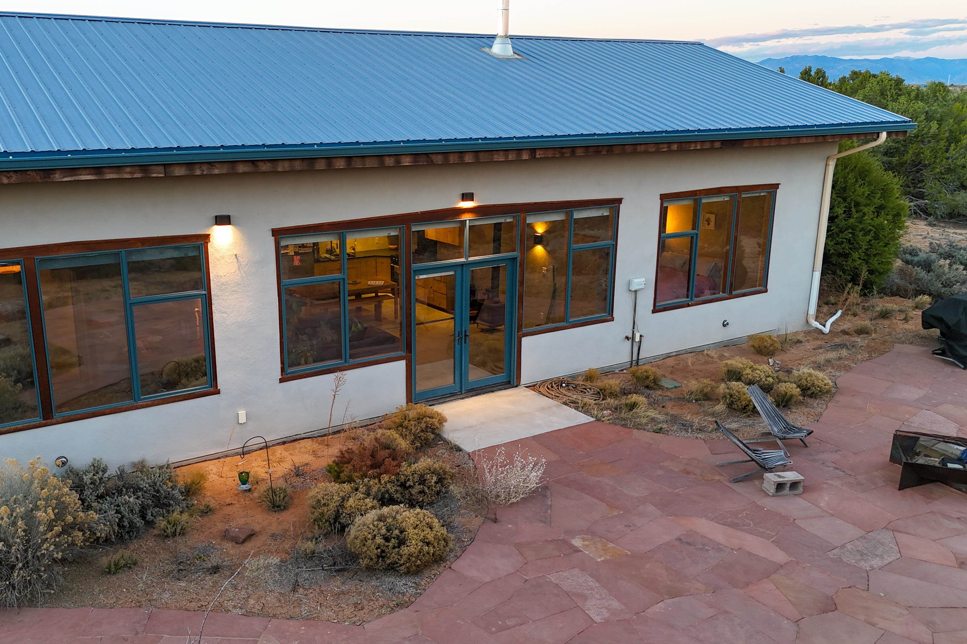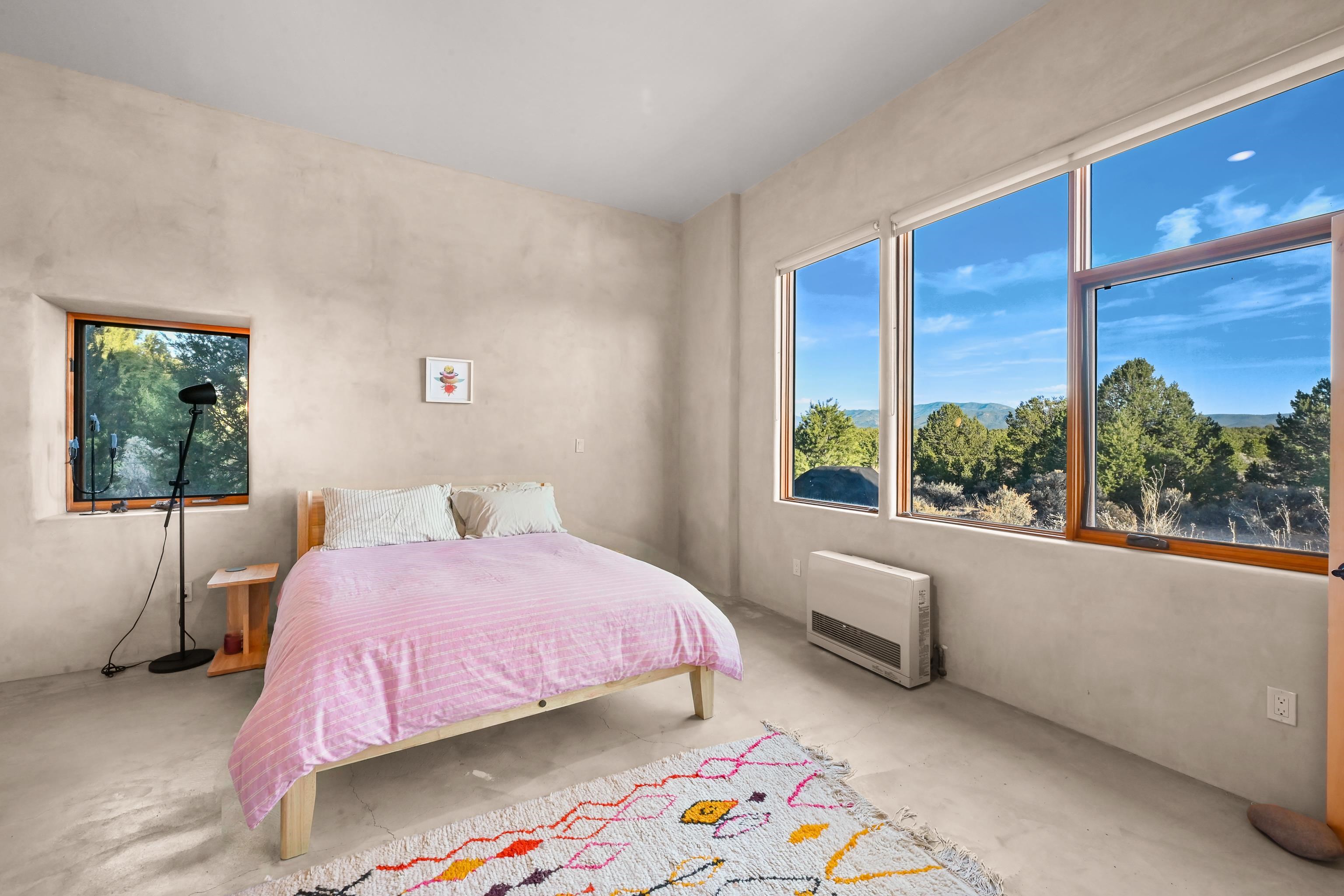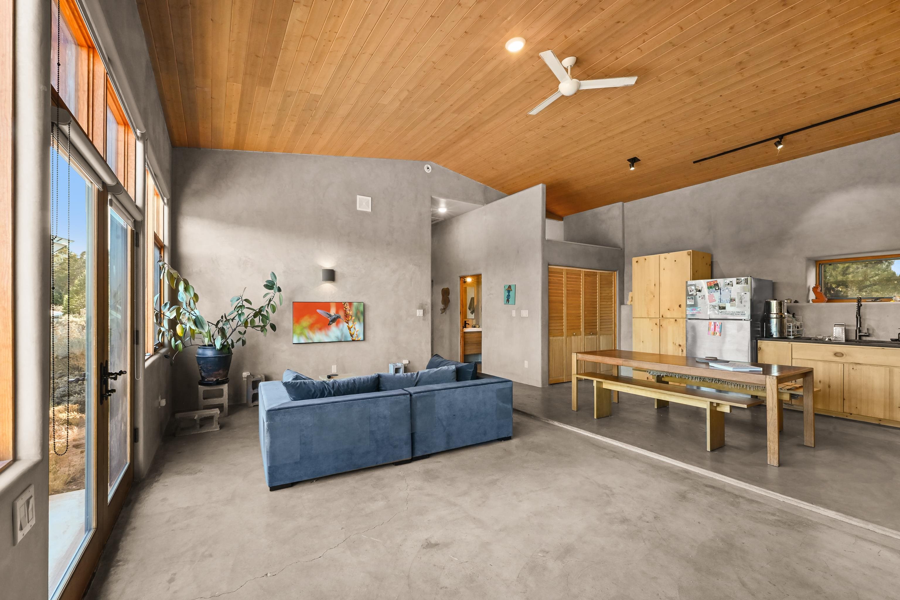 Set on 9 private acres just outside Carson, this thoughtfully crafted 2-bedroom, 2-bath home offers a rare balance of independence, comfort, and enduring quality—just 35 minutes from Taos. Built in 2013 with an emphasis on efficiency and longevity, the home pairs rammed earth and straw bale construction along the north wall with expansive south-facing windows that invite in natural light and passive solar warmth. The result is a space that feels grounded, quiet, and consistently comfortable year-round. The 1,500-square-foot interior is open and sun-filled, with a seamless flow between living, dining, and kitchen. Scandinavian-inspired solid wood cabinetry brings a clean, understated warmth, while French doors open to a beautifully crafted flagstone patio—an easy extension of daily living. Fully off-grid, the property is powered by a well-designed photovoltaic solar system with battery storage housed in a dedicated insulated room, offering reliable, modern functionality without compromise. A short walk along a gravel path leads to a separate sauna pavilion, where a wood-burning barrel sauna frames mountain views through a round picture window—an experience as much as an amenity. Gated access, wide-open skies, and a true sense of quiet define the setting. This is a home built with intention—where craftsmanship, efficiency, and a connection to the landscape come together in a way that’s increasingly hard to find.