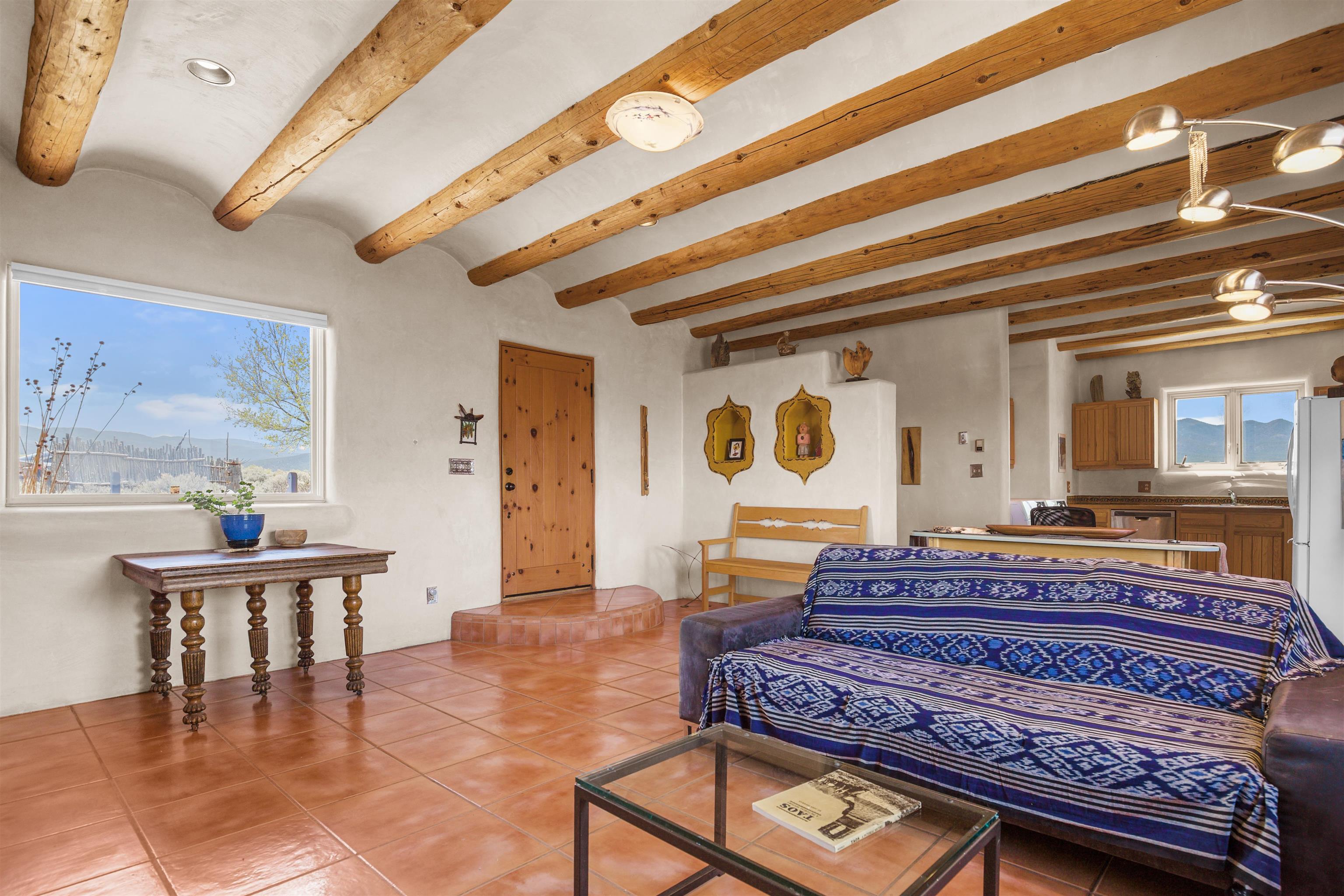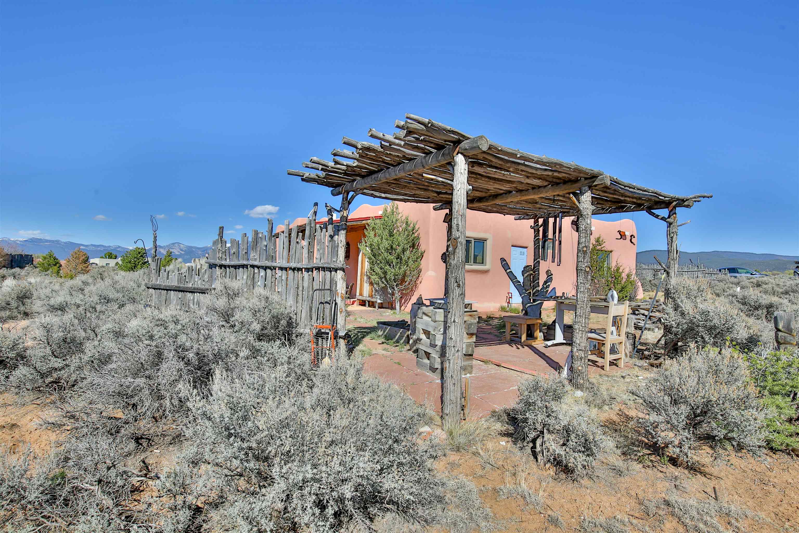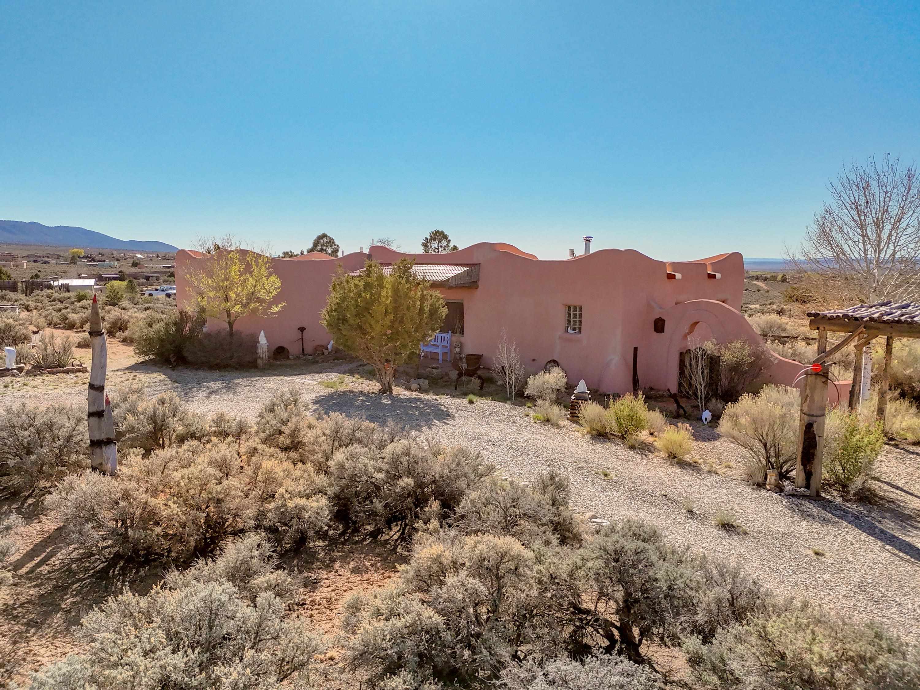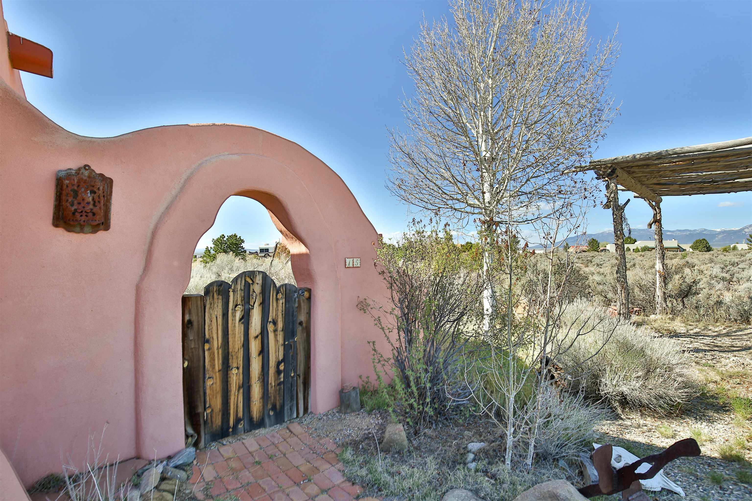 Not all adobe is created equal… this one understood the assignment. This 1,256 sq ft 2 bedroom, 2 bath home sits on 1.145 acres in the desirable Vista Linda subdivision and delivers all the Southwestern charm you were hoping for and then some. We’re talking coved viga ceilings (the best kind), nichos, handsome parapets and those beautiful diamond finish plaster walls that just feel right the second you walk in. Not only are the nichos ridiculously adorable, they were hand painted by the renowned Taos home designer Nona Wesley (Google it). The layout is open, bright, and surprisingly spacious, with a smart split bedroom design that gives everyone a little breathing room. The kitchen and bathrooms bring the personality with colorful Talavera tile, while radiant floor heat, an on demand boiler, and a radon mitigation system quietly handle the practical side of things. There’s also a cozy wood stove for those evenings when you want to lean fully into the Taos lifestyle. Step outside and it only gets better. Big mountain views in every direction, sunsets that absolutely show off, and a west facing portal that was made for evening dinners, morning coffee, or losing track of time in the best way. Mature landscaping with lilacs and aspens adds just the right amount of softness and shade. Tucked near the end of a quiet dead end road, you get peace, privacy, and a neighborhood that keeps things looking good without getting in your way. Buried utilities, reasonable covenants, and a detached one car carport keep it easy. Close to hiking, golf, and everything that makes Taos, well… Taos. Authentic adobe, modern comfort, and views that do not hold back. Come see it before someone else decides they need this kind of peace in their life. For more views: https://youtu.be/0i1UEW1tf88