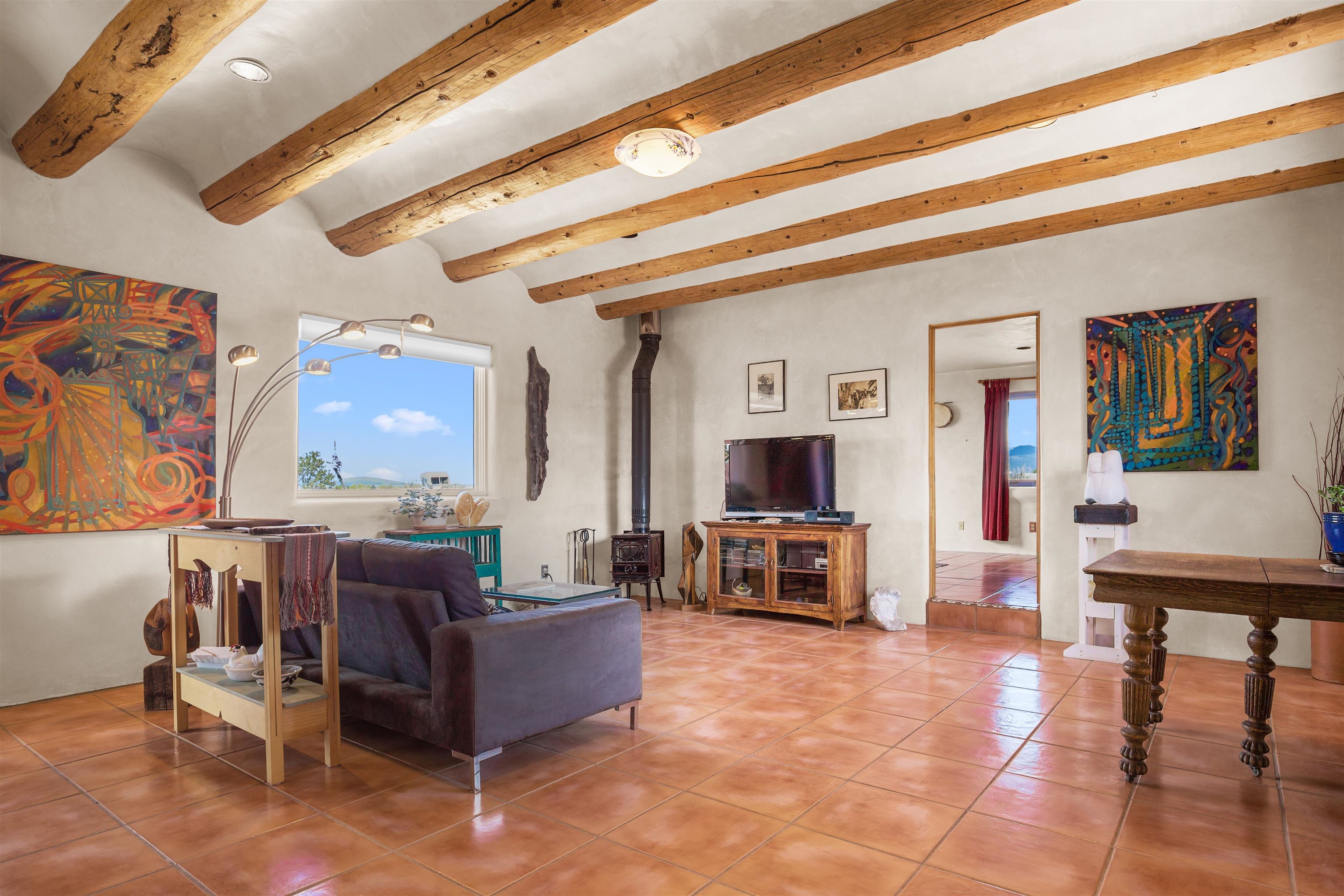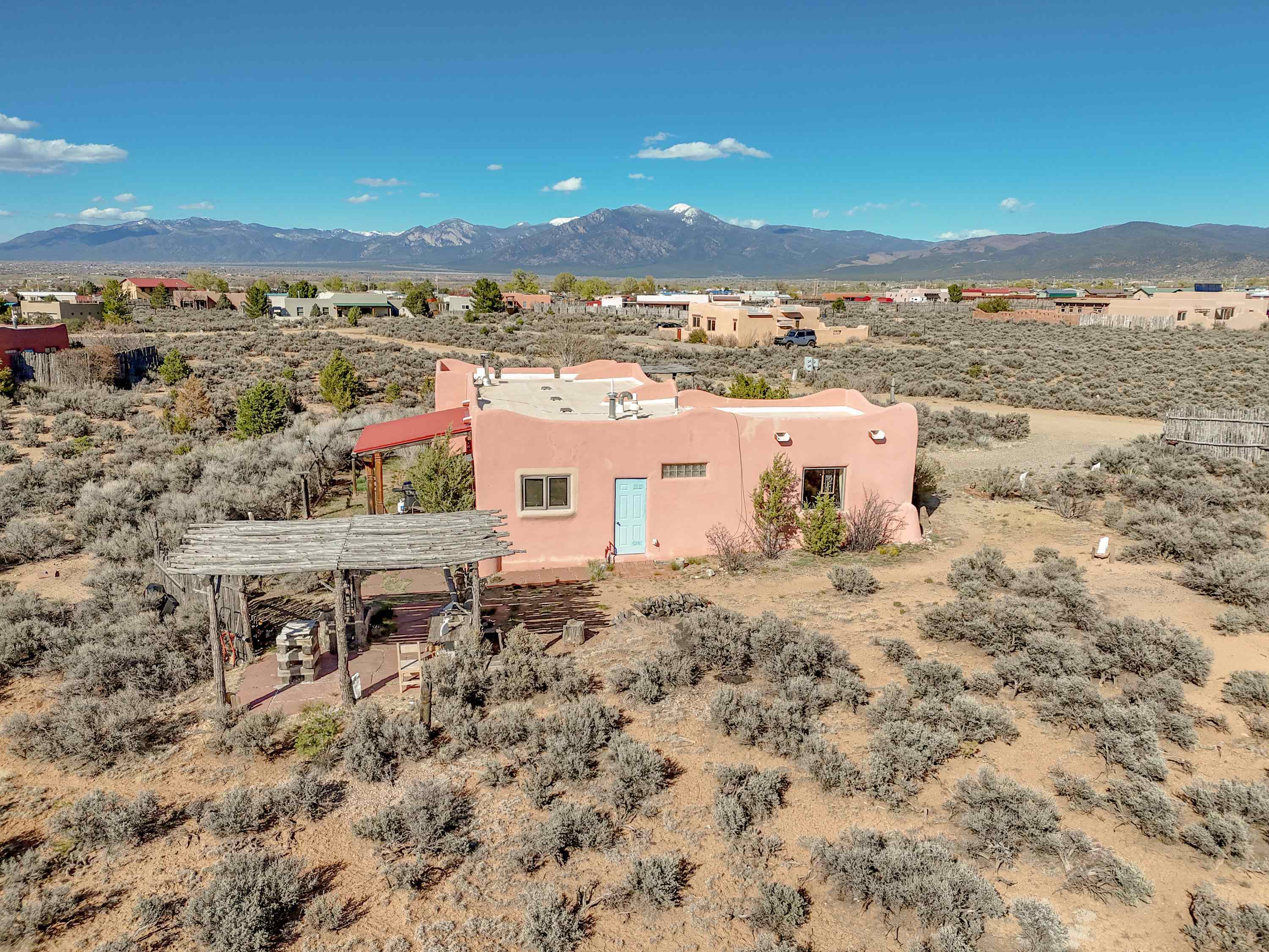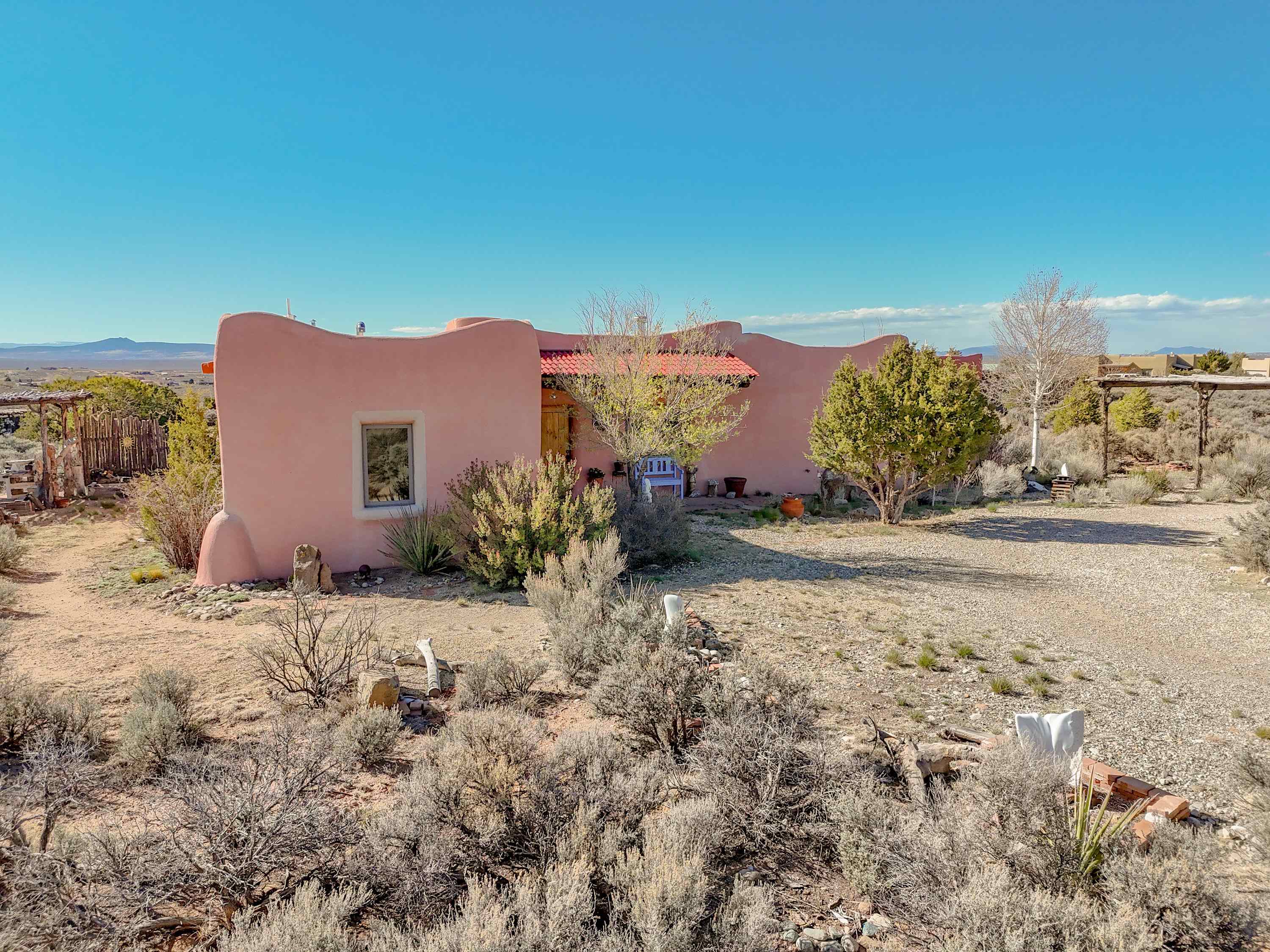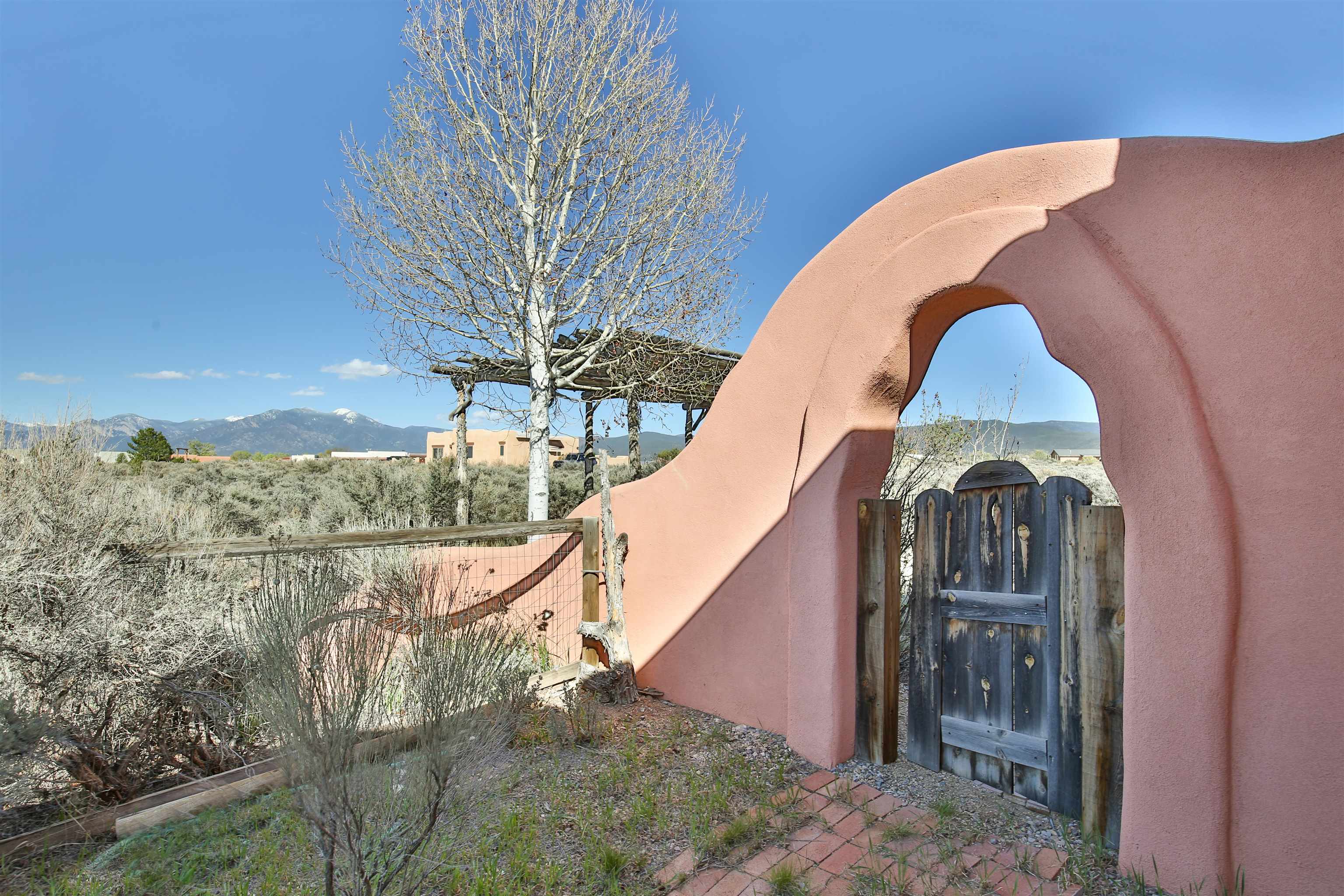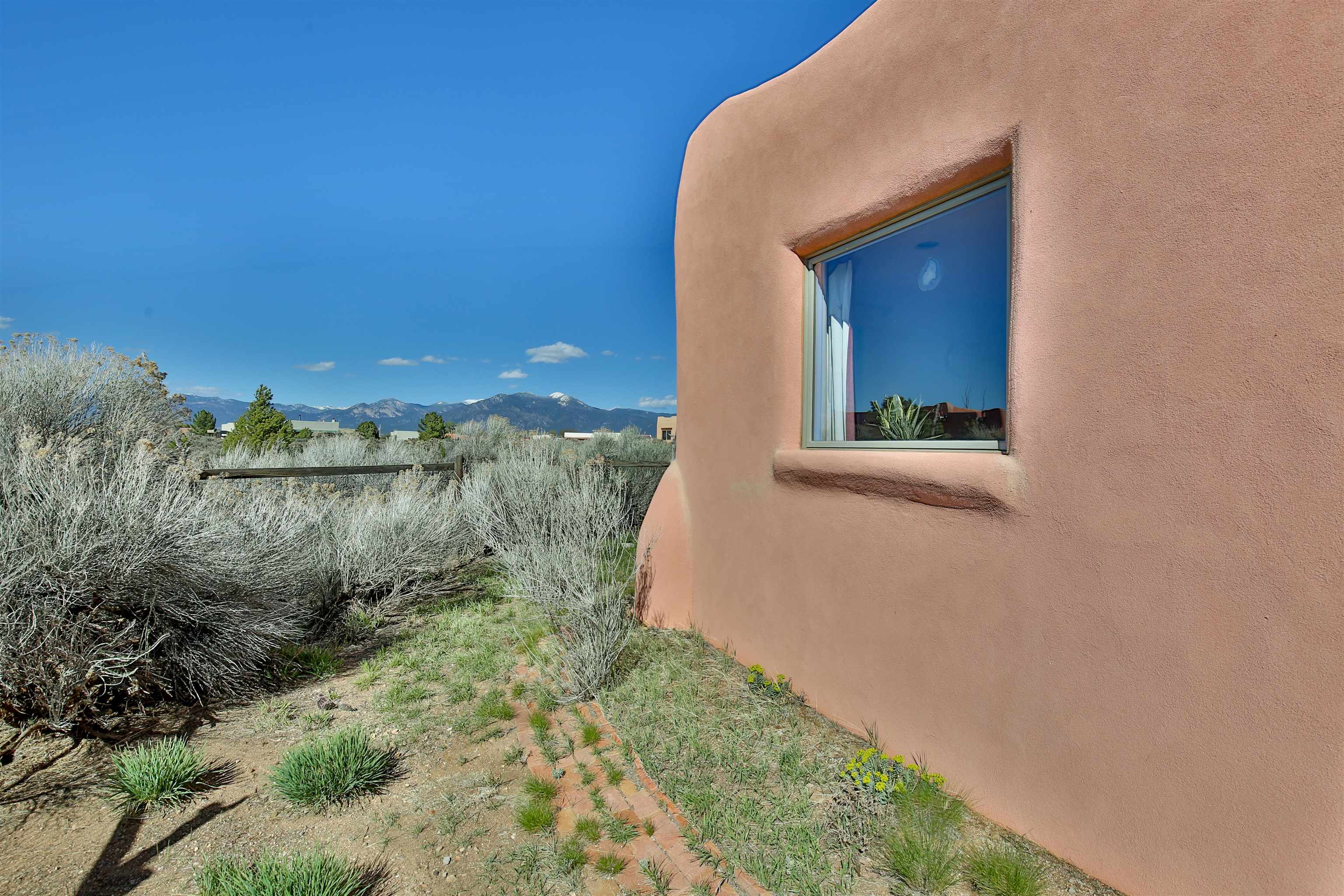 Not all adobe is created equal… this one understood the assignment. This 1,256 sq ft 2 bedroom, 2 bath home sits on 1.145 acres in the desirable Vista Linda subdivision and delivers all the Southwestern charm you were hoping for and then some. We’re talking coved viga ceilings (the best kind), nichos, handsome parapets and those beautiful diamond finish plaster walls that just feel right the second you walk in. Not only are the nichos ridiculously adorable, they were hand painted by the renowned Taos home designer Nona Wesley (Google it). The layout is open, bright, and surprisingly spacious, with a smart split bedroom design that gives everyone a little breathing room. The kitchen and bathrooms bring the personality with colorful Talavera tile, while radiant floor heat, an on demand boiler, and a radon mitigation system quietly handle the practical side of things. There’s also a cozy wood stove for those evenings when you want to lean fully into the Taos lifestyle. Step outside and it only gets better. Big mountain views in every direction, sunsets that absolutely show off, and a west facing portal that was made for evening dinners, morning coffee, or losing track of time in the best way. Mature landscaping with lilacs and aspens adds just the right amount of softness and shade. Tucked near the end of a quiet dead end road, you get peace, privacy, and a neighborhood that keeps things looking good without getting in your way. Buried utilities, reasonable covenants, and a detached one car carport keep it easy. Close to hiking, golf, and everything that makes Taos, well… Taos. Authentic adobe, modern comfort, and views that do not hold back. Come see it before someone else decides they need this kind of peace in their life. For more views: https://youtu.be/0i1UEW1tf88