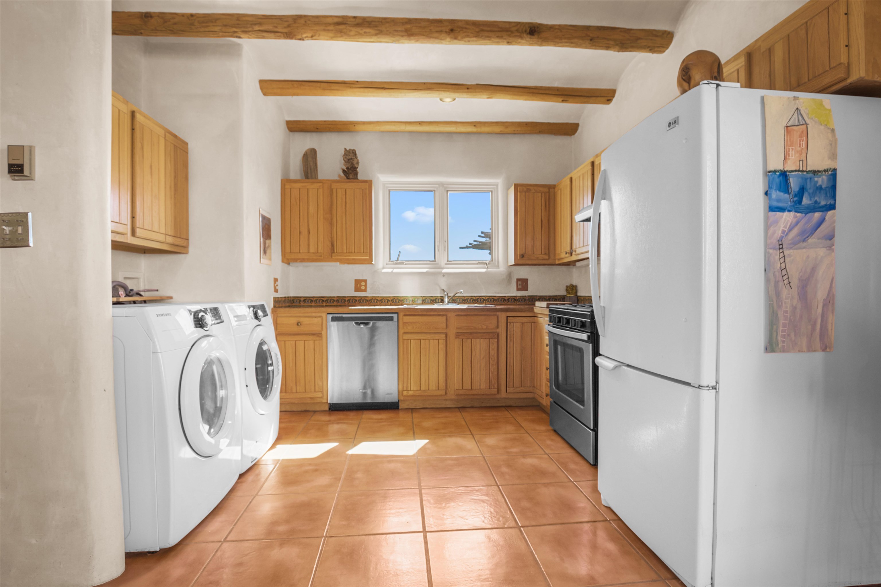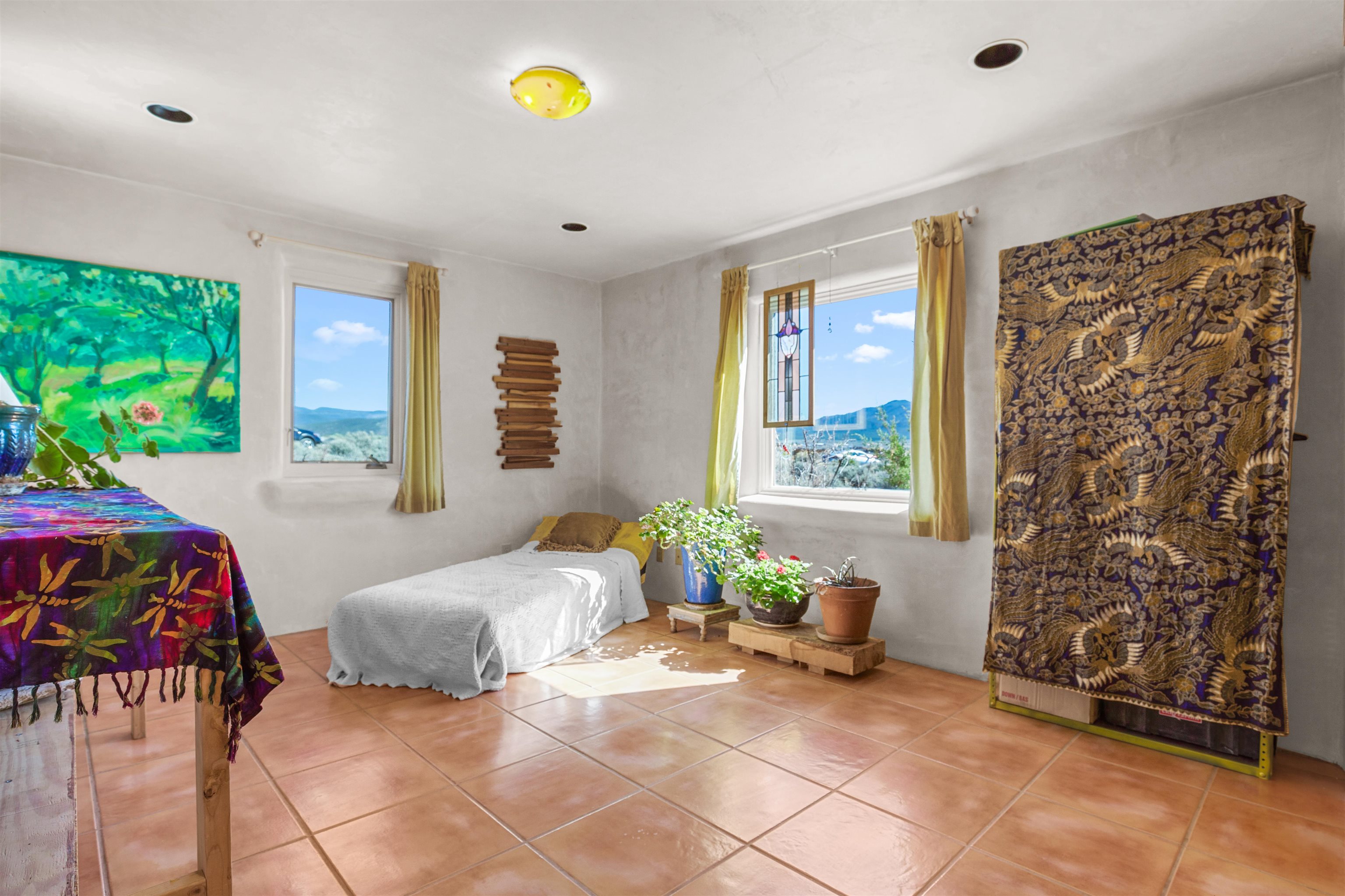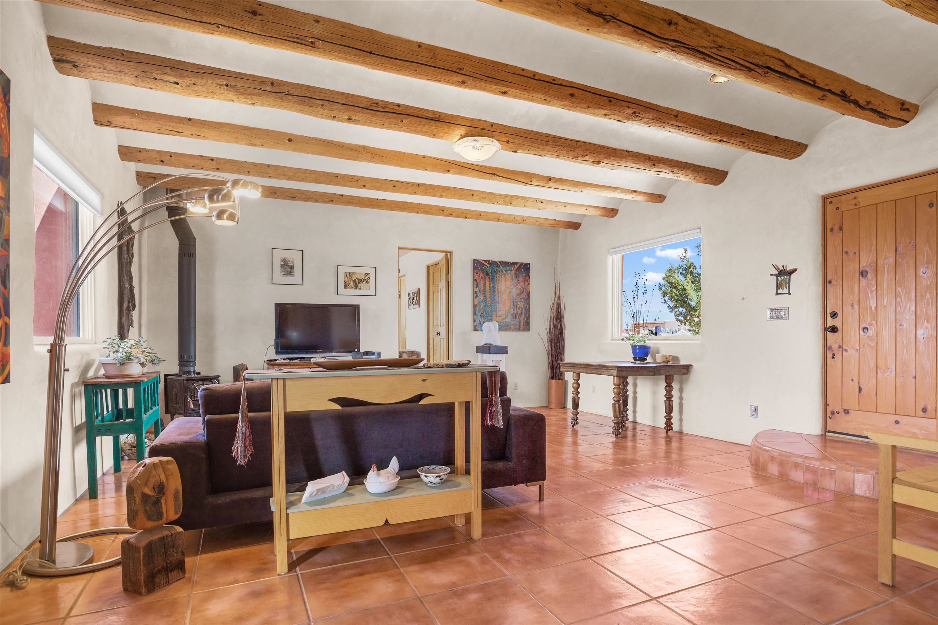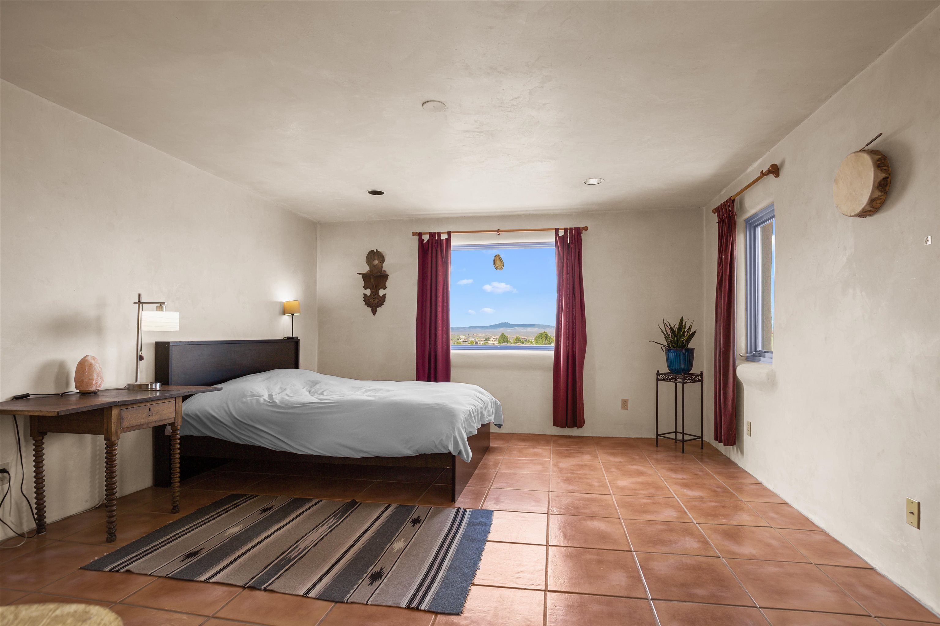 Not all adobe is created equal… this one understood the assignment. This 1,256 sq ft 2 bedroom, 2 bath home sits on 1.145 acres in the desirable Vista Linda subdivision and delivers all the Southwestern charm you were hoping for and then some. We’re talking coved viga ceilings (the best kind), nichos, handsome parapets and those beautiful diamond finish plaster walls that just feel right the second you walk in. Not only are the nichos ridiculously adorable, they were hand painted by the renowned Taos home designer Nona Wesley (Google it). The layout is open, bright, and surprisingly spacious, with a smart split bedroom design that gives everyone a little breathing room. The kitchen and bathrooms bring the personality with colorful Talavera tile, while radiant floor heat, an on demand boiler, and a radon mitigation system quietly handle the practical side of things. There’s also a cozy wood stove for those evenings when you want to lean fully into the Taos lifestyle. Step outside and it only gets better. Big mountain views in every direction, sunsets that absolutely show off, and a west facing portal that was made for evening dinners, morning coffee, or losing track of time in the best way. Mature landscaping with lilacs and aspens adds just the right amount of softness and shade. Tucked near the end of a quiet dead end road, you get peace, privacy, and a neighborhood that keeps things looking good without getting in your way. Buried utilities, reasonable covenants, and a detached one car carport keep it easy. Close to hiking, golf, and everything that makes Taos, well… Taos. Authentic adobe, modern comfort, and views that do not hold back. Come see it before someone else decides they need this kind of peace in their life. For more views: https://youtu.be/0i1UEW1tf88
