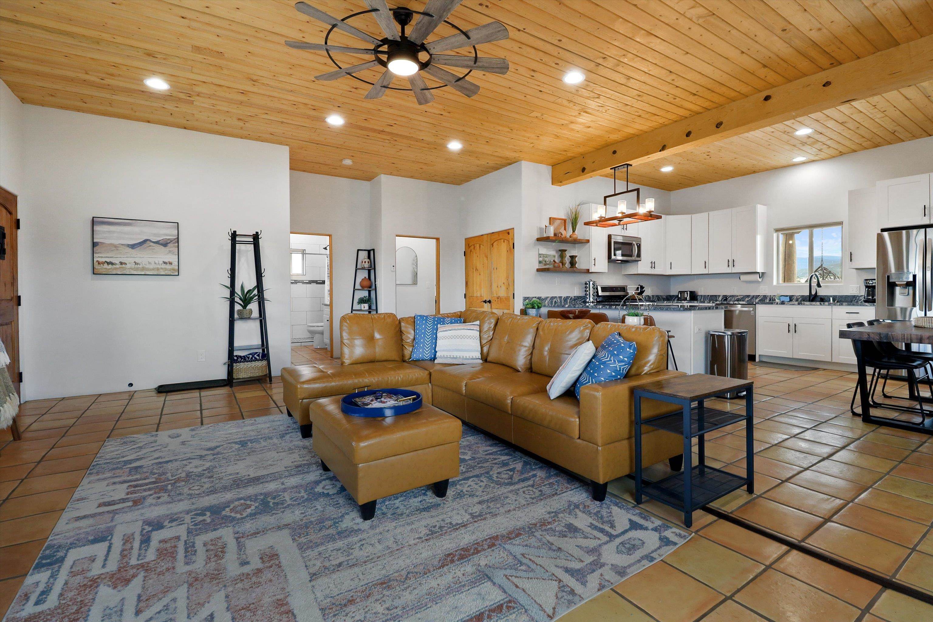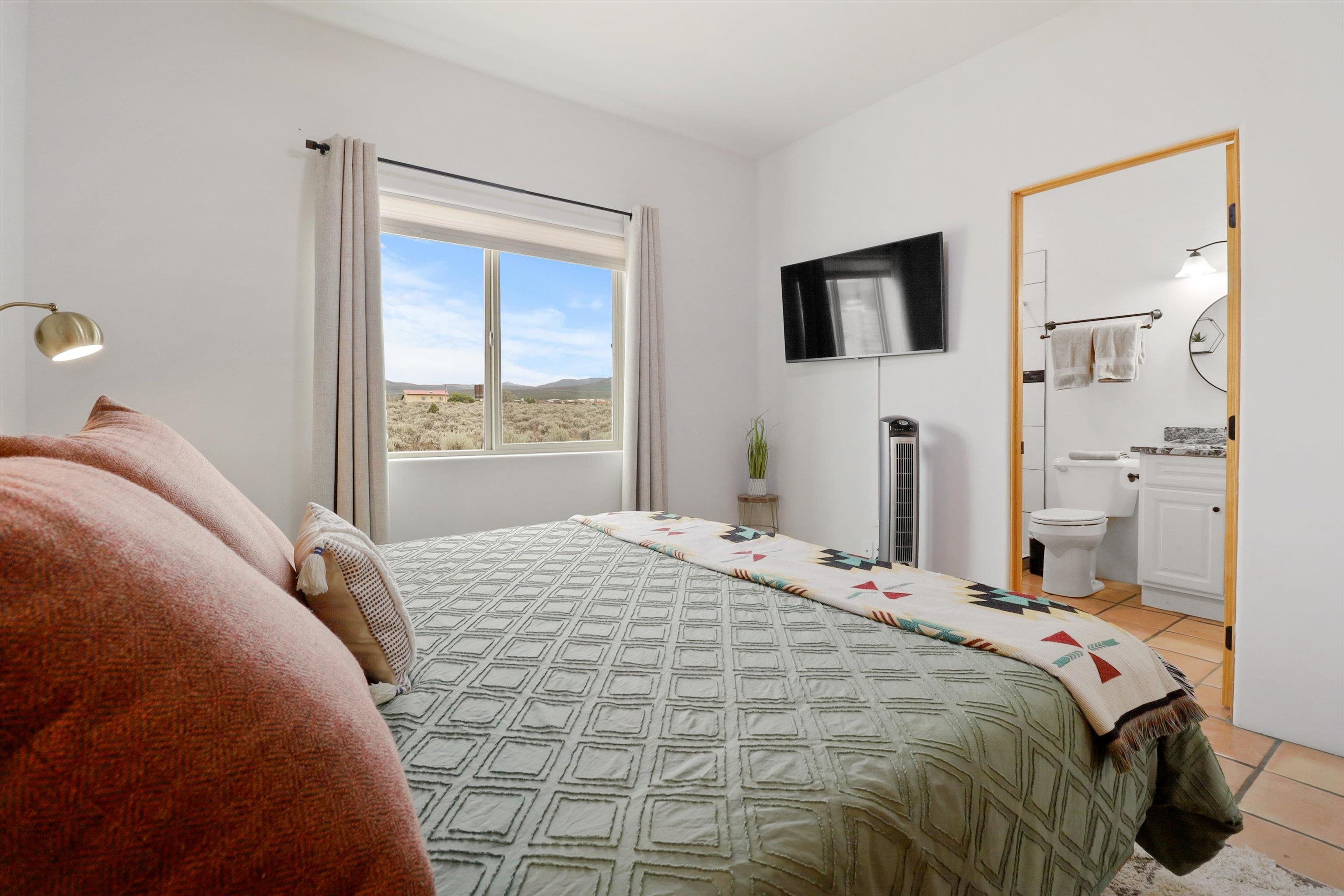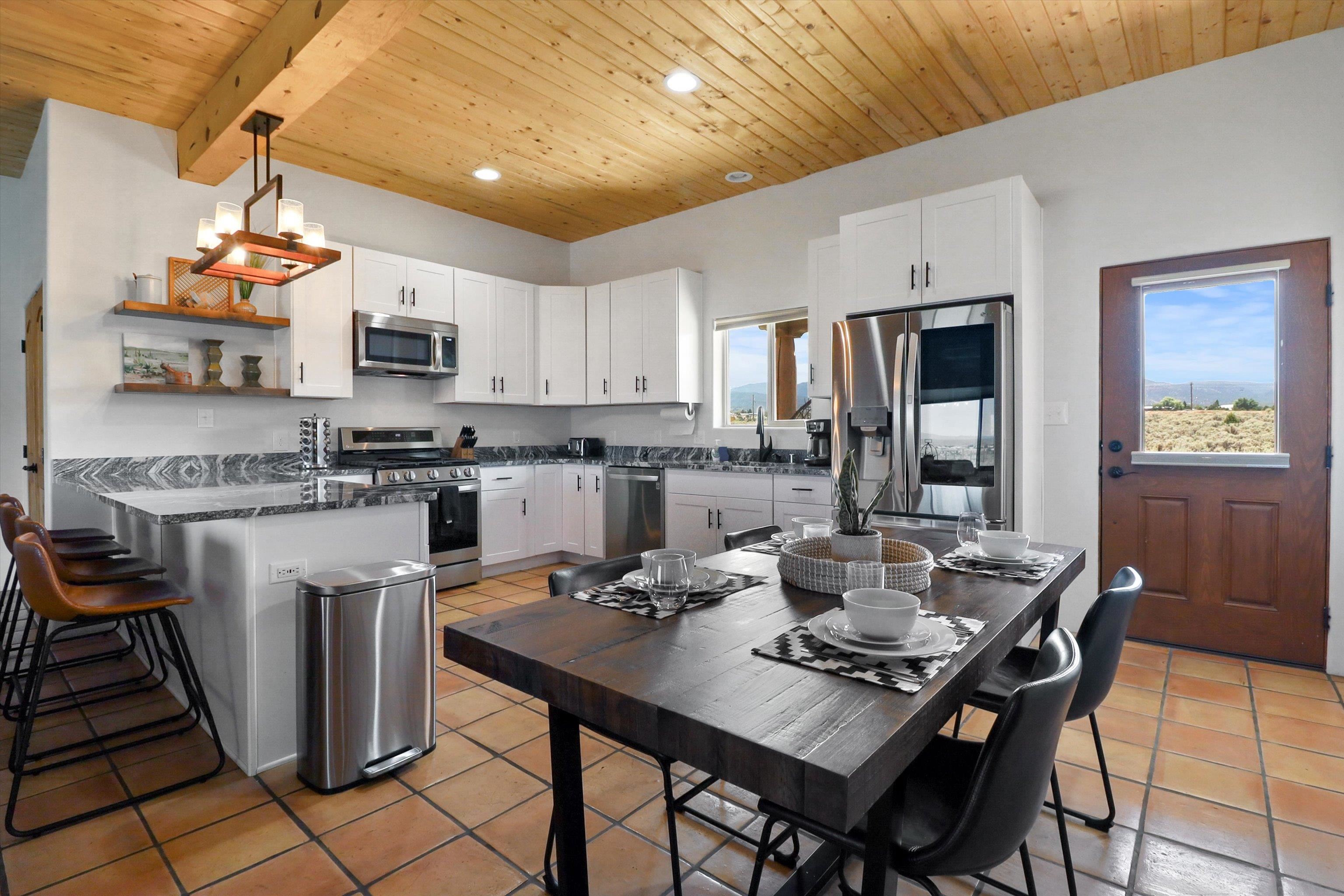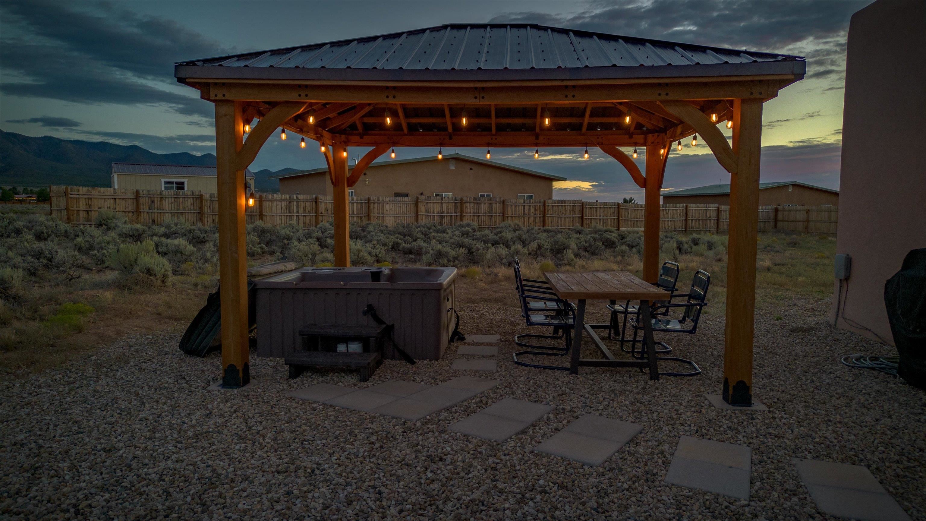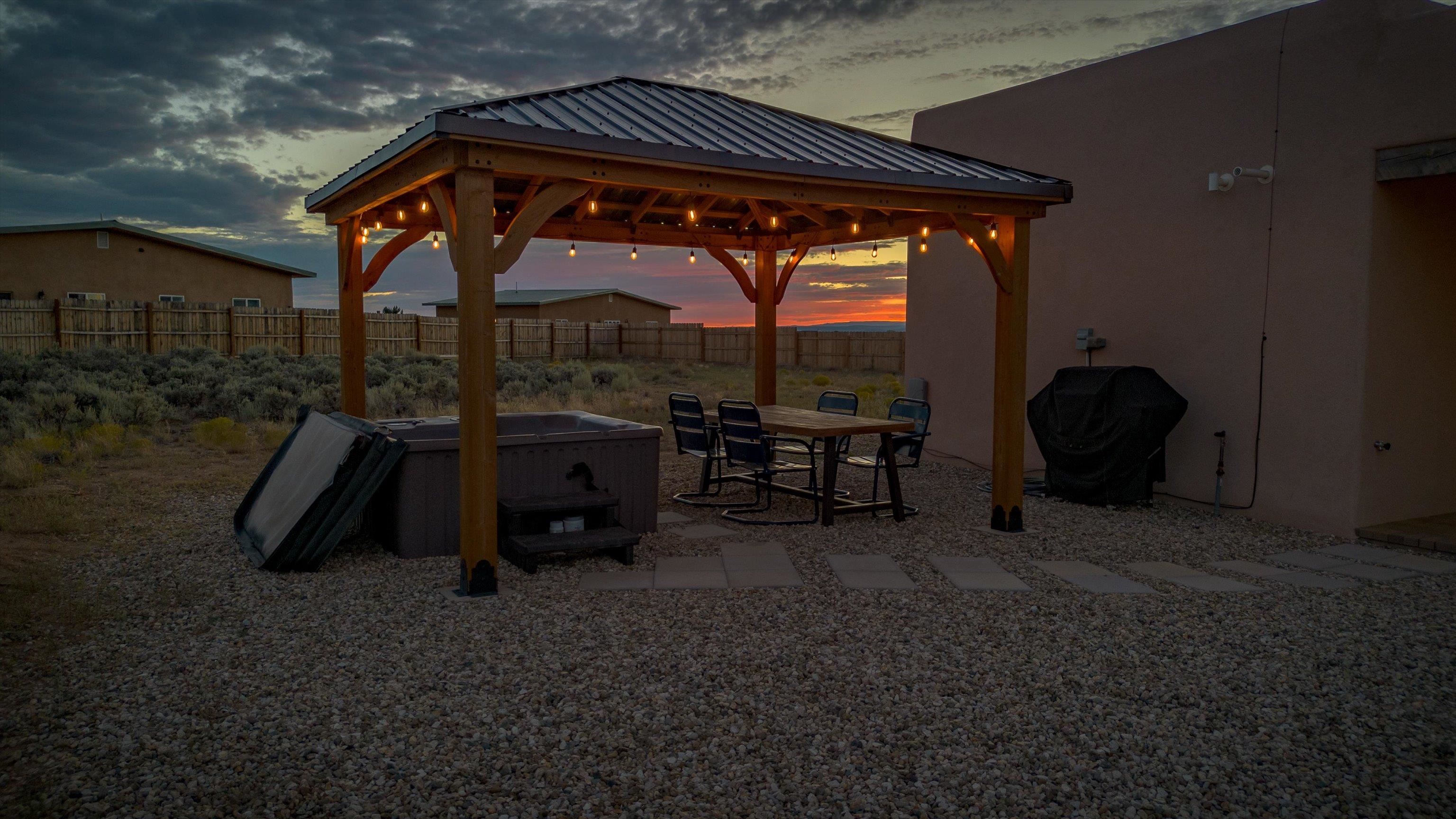 This 2-bedroom, 2-bath home offers a compelling combination of personal use, investment potential, and Taos lifestyle and can be optionally fully furnished. Built in 2023 and located in the Ranchos de Taos valley, the property has a proven track record as a successful short-term rental, with documented gross income and net operating income available. Wide-open views of the Sangre de Cristo Mountains define the experience here, with vibrant sunrises and dramatic evening sunsets visible from the property. The setting provides a sense of space and privacy while remaining just minutes from town. Inside, the home features a practical and comfortable floor plan with radiant in-floor heating, quality finishes, and thoughtful design that supports both everyday living and guest use. An oversized one-car garage adds valuable storage and convenience. Outdoor living is a highlight, with a hot tub, gazebo, and dedicated dining area that create an ideal setting for relaxing or entertaining. The combination of open skies and mountain views makes this a place people want to return to. Conveniently located near the Taos Country Club and approximately 10 minutes from Taos Plaza, the property also offers easy access to hiking, biking, and the Rio Grande in Pilar for year-round recreation. Well maintained and move-in ready, this property delivers both a comfortable home base and a proven income-producing opportunity in one of Taos’ most desirable settings