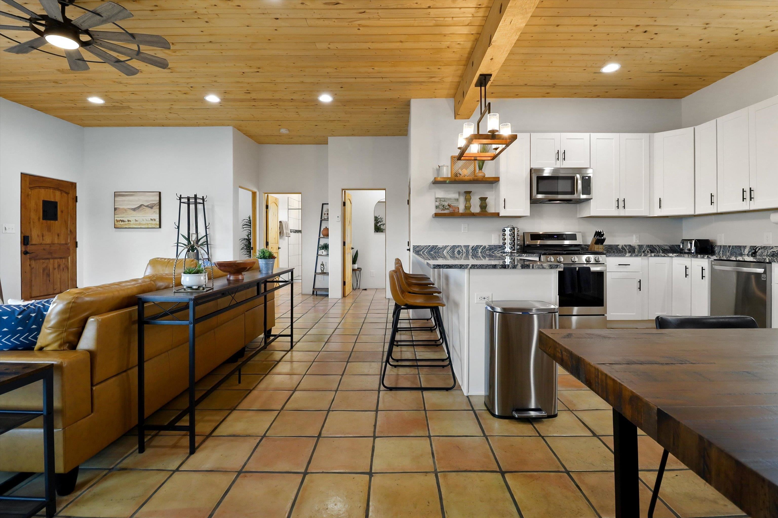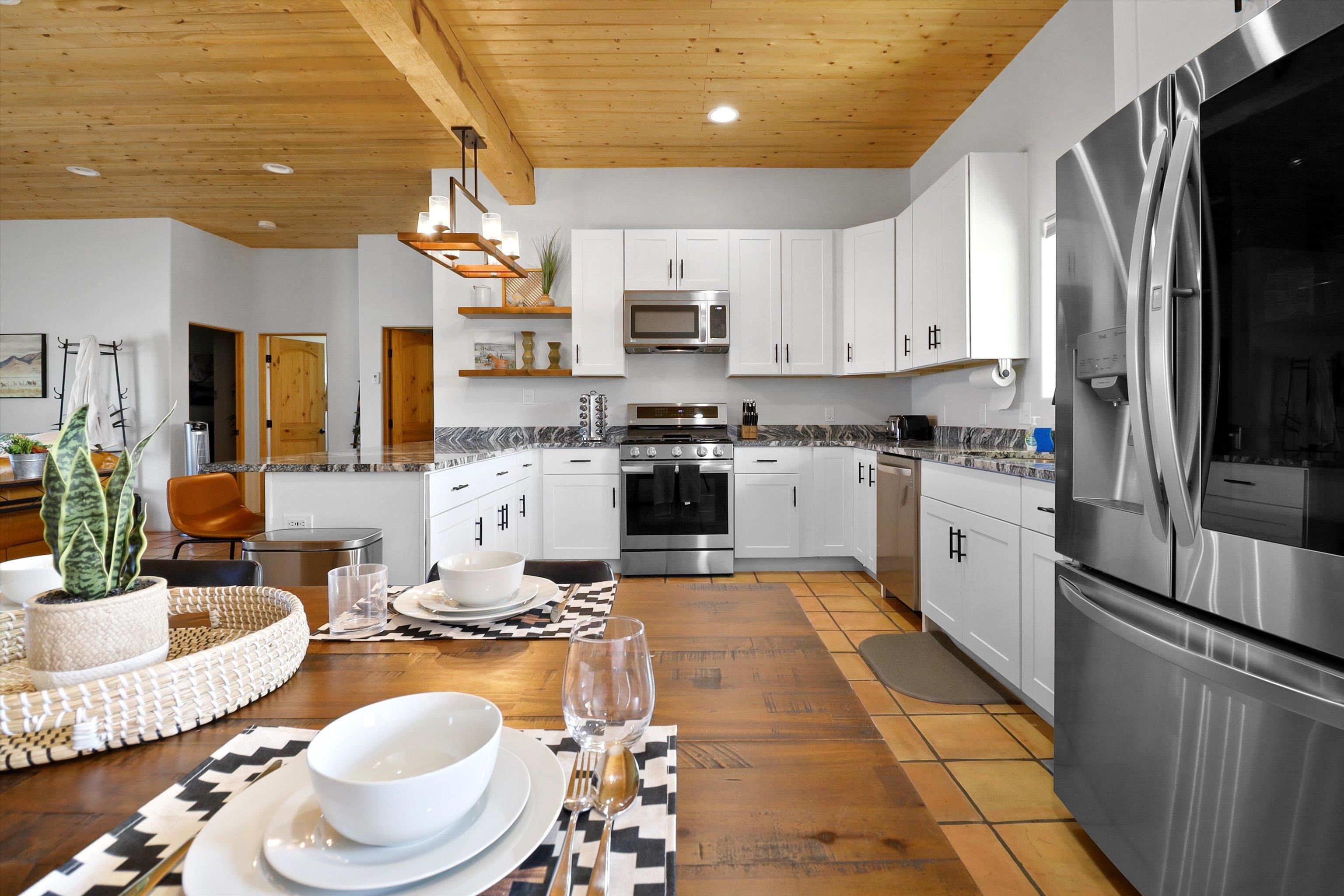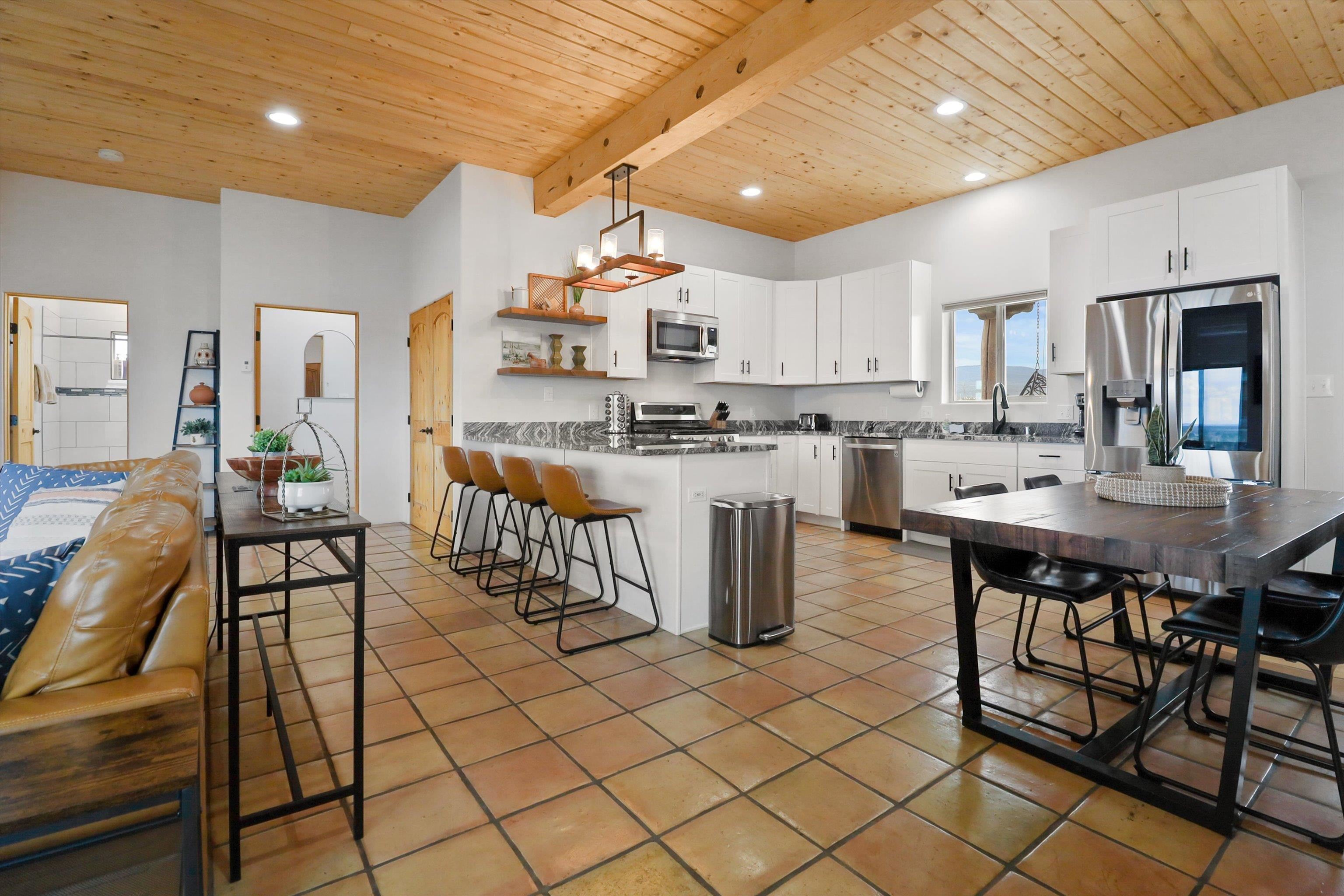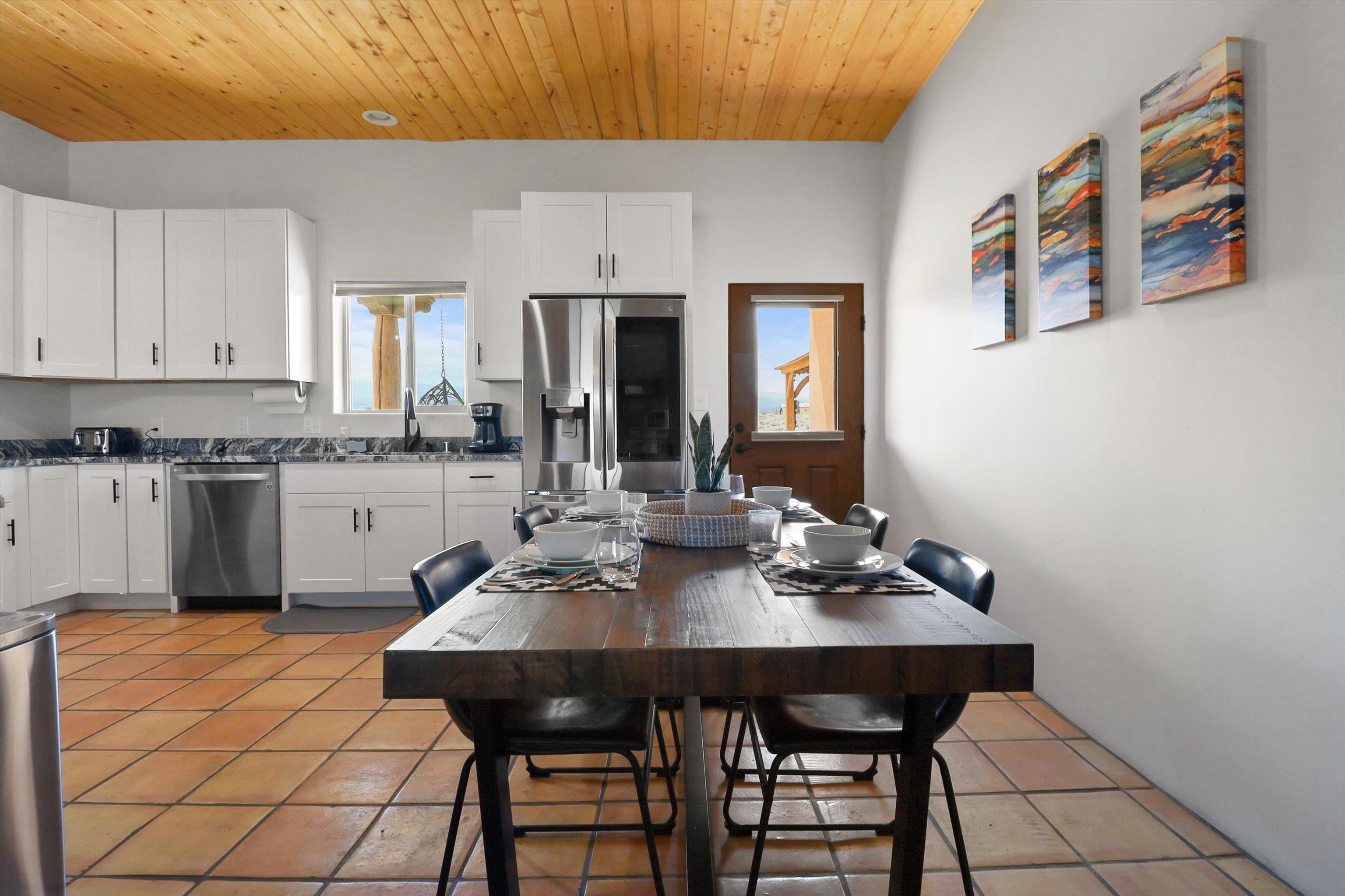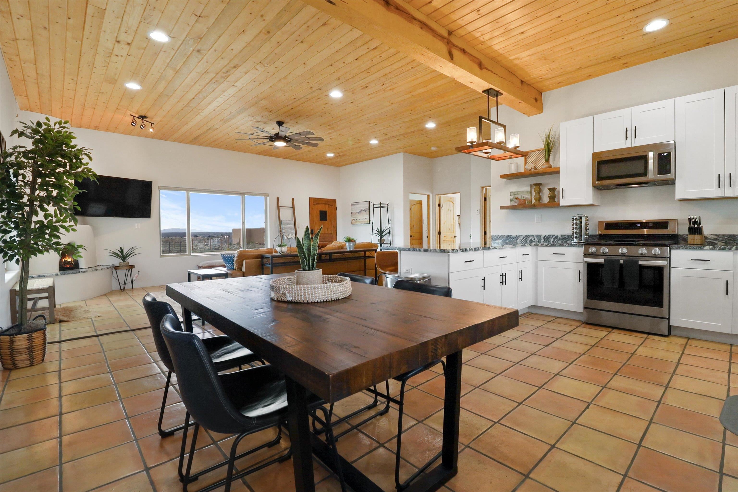 This 2-bedroom, 2-bath home offers a compelling combination of personal use, investment potential, and Taos lifestyle and can be optionally fully furnished. Built in 2023 and located in the Ranchos de Taos valley, the property has a proven track record as a successful short-term rental, with documented gross income and net operating income available. Wide-open views of the Sangre de Cristo Mountains define the experience here, with vibrant sunrises and dramatic evening sunsets visible from the property. The setting provides a sense of space and privacy while remaining just minutes from town. Inside, the home features a practical and comfortable floor plan with radiant in-floor heating, quality finishes, and thoughtful design that supports both everyday living and guest use. An oversized one-car garage adds valuable storage and convenience. Outdoor living is a highlight, with a hot tub, gazebo, and dedicated dining area that create an ideal setting for relaxing or entertaining. The combination of open skies and mountain views makes this a place people want to return to. Conveniently located near the Taos Country Club and approximately 10 minutes from Taos Plaza, the property also offers easy access to hiking, biking, and the Rio Grande in Pilar for year-round recreation. Well maintained and move-in ready, this property delivers both a comfortable home base and a proven income-producing opportunity in one of Taos’ most desirable settings