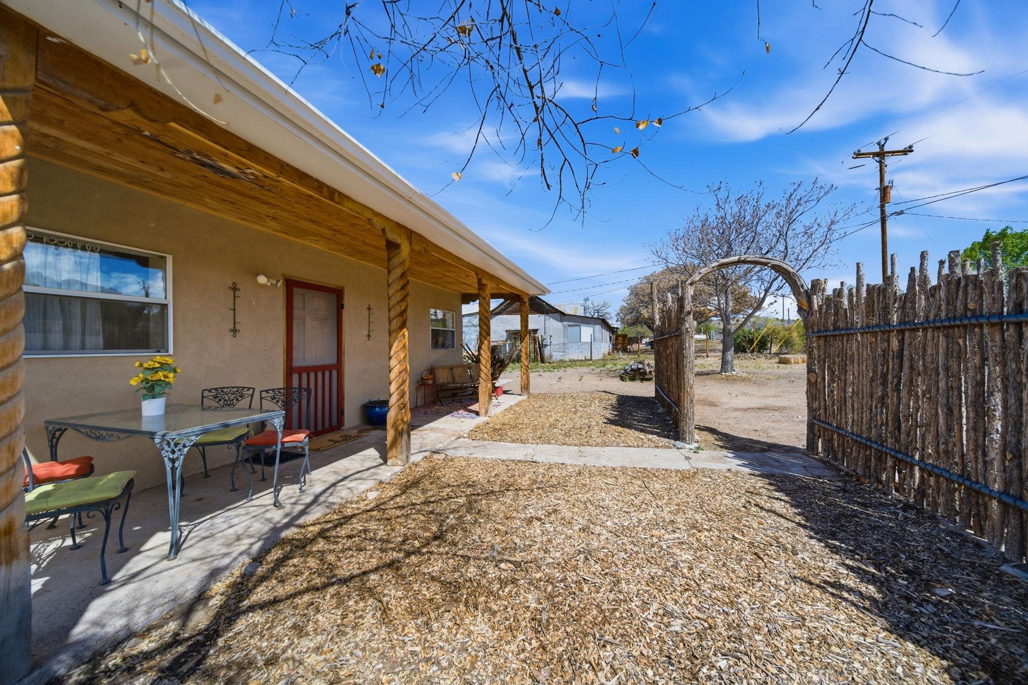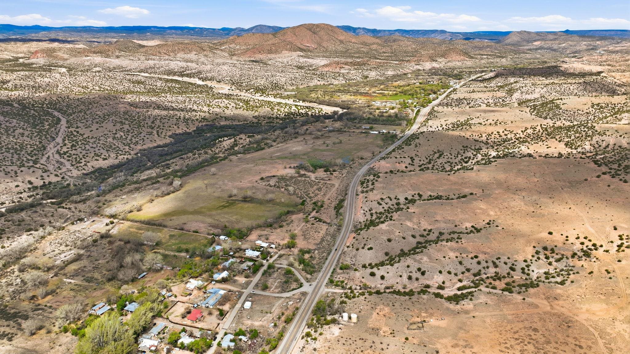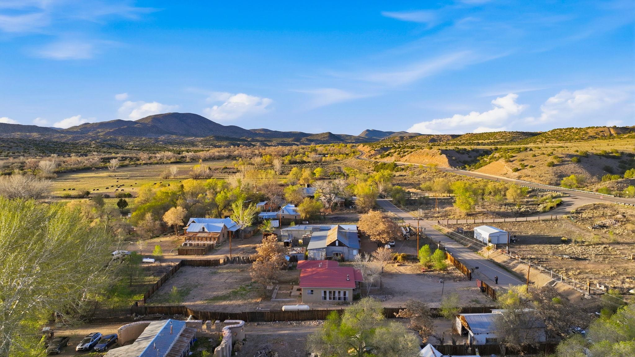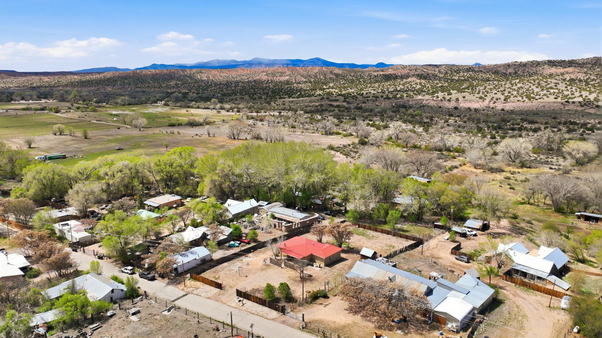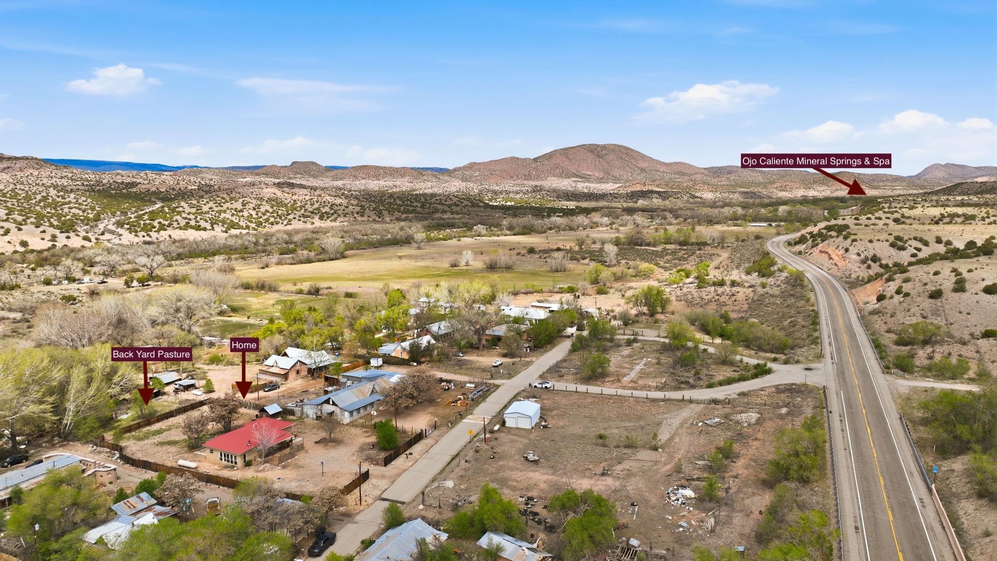 Bienvenidos! Welcome to your perfect high-desert sanctuary right here in the heart of the Ojo Caliente valley, situated a mere 2.3 miles south of the renowned Ojo Caliente Mineral Springs Resort and Spa. This property presents a rare opportunity to own an immaculately cared-for home resting on a sizable three-quarter-acre lot just down the road from one of the state's most beloved attractions, and many other attractions not much further way. The versatile three-bedroom, two-bathroom residence is ideal for full-time country living, a peaceful part-time getaway, or a highly successful short-term rental in a highly sought-after neighborhood with limited housing options. Adding to its incredible adaptability, the home's layout provides the distinct potential to be split into two separate units, offering a fantastic opportunity to maximize dual rental income or comfortably host extended family. Families will also appreciate the location, which boasts convenient access to many great options for schools in the surrounding community to suit every educational need with fantastic schools. Inside, gorgeous, newly refinished hardwood floors flow beautifully throughout the home, complementing two recently redone bathrooms and a bright, spacious sunroom off the main living area that includes a convenient attached home office with plenty of natural sunlight and warmth from the solar passive; the wood stove is also a nice touch which keeps the home comfortable in the winter. Some photos have been virtually staged to spark creativity. Outside, the expansive yard serves as a wonderful blank canvas featuring a sizable storage shed, ample room for gardening, and a separately fenced, gated area ideal for livestock or building an additional rental structure. Imagine ending your day in absolute tranquility, sitting around a cozy firepit with the family under a sweeping, star-filled high-desert sky. Set back from the highway for ultimate privacy yet offering incredibly convenient access, the property is surrounded by rich valley land, dramatic cliffside mesas, and ancient cottonwoods lining the historic acequias. From this idyllic home base, enjoy an easy commute to Española and Santa Fe for exceptional shopping and dining, along with an ideal, highly convenient route for professionals commuting to Los Alamos National Laboratory. For weekend recreation, take a scenic trip through the Carson National Forest to Taos for premier skiing, Rio Grande river adventures, and exploring the Taos Plaza, or make a quick journey in the other direction to tranquil Hopewell Lake for excellent fishing and spotting wild horses in the nearby alpine meadows. Blending timeless natural beauty with unbeatable versatility, this truly couldn't be a more perfect place to call your own in the Land of Enchantment.