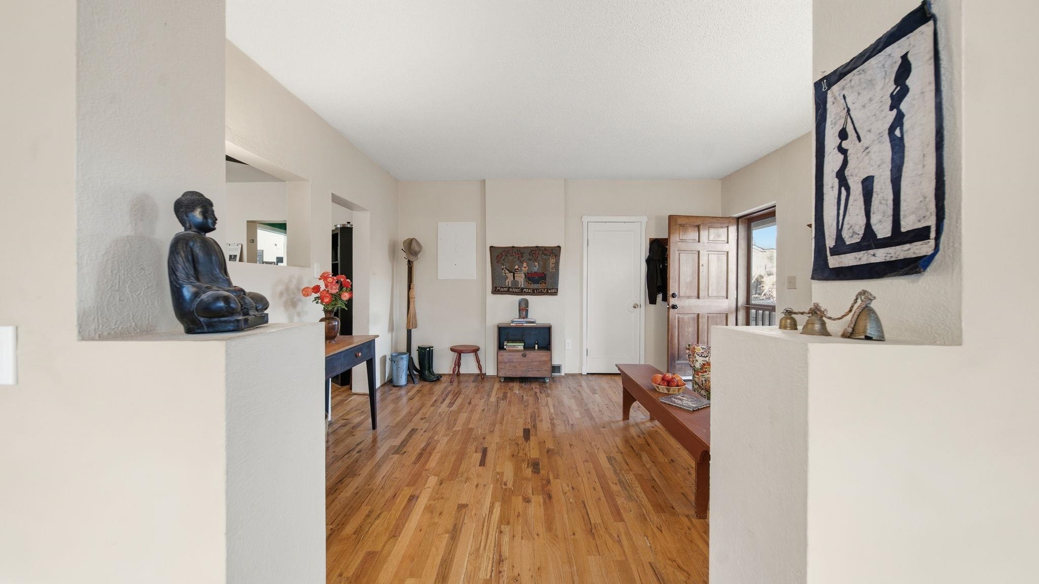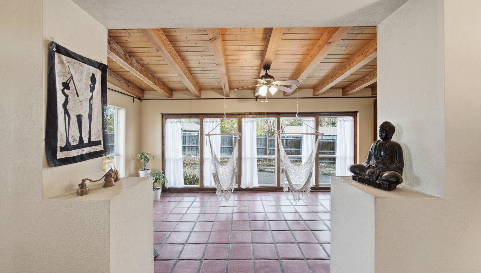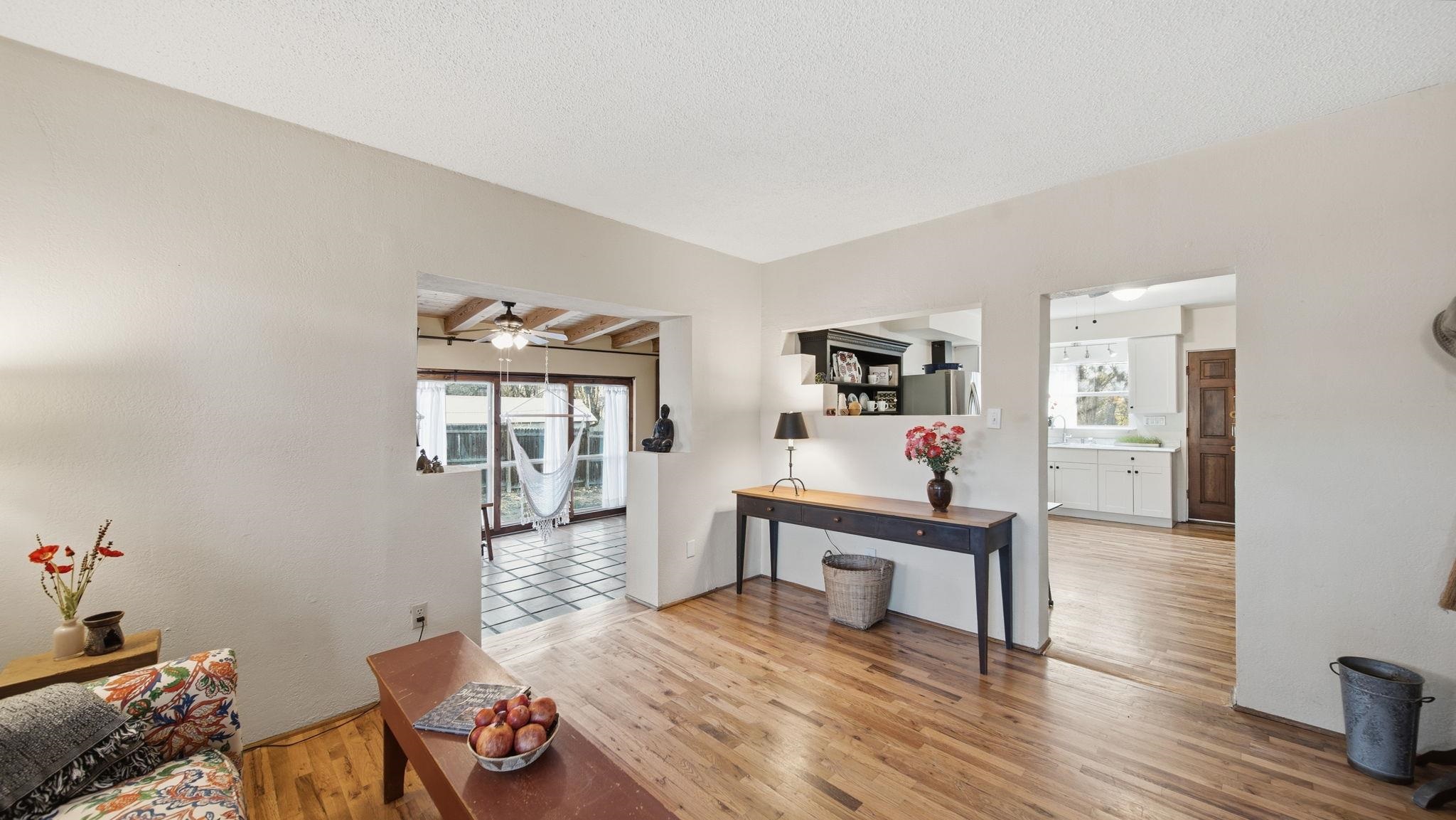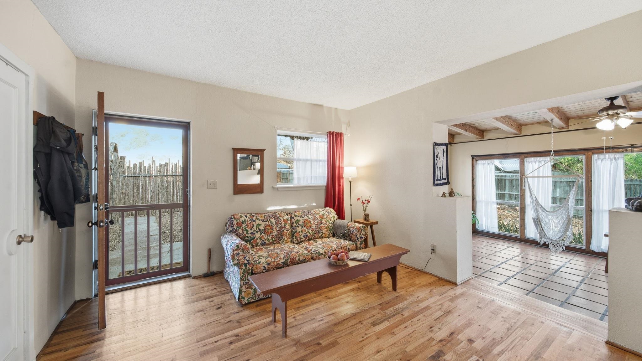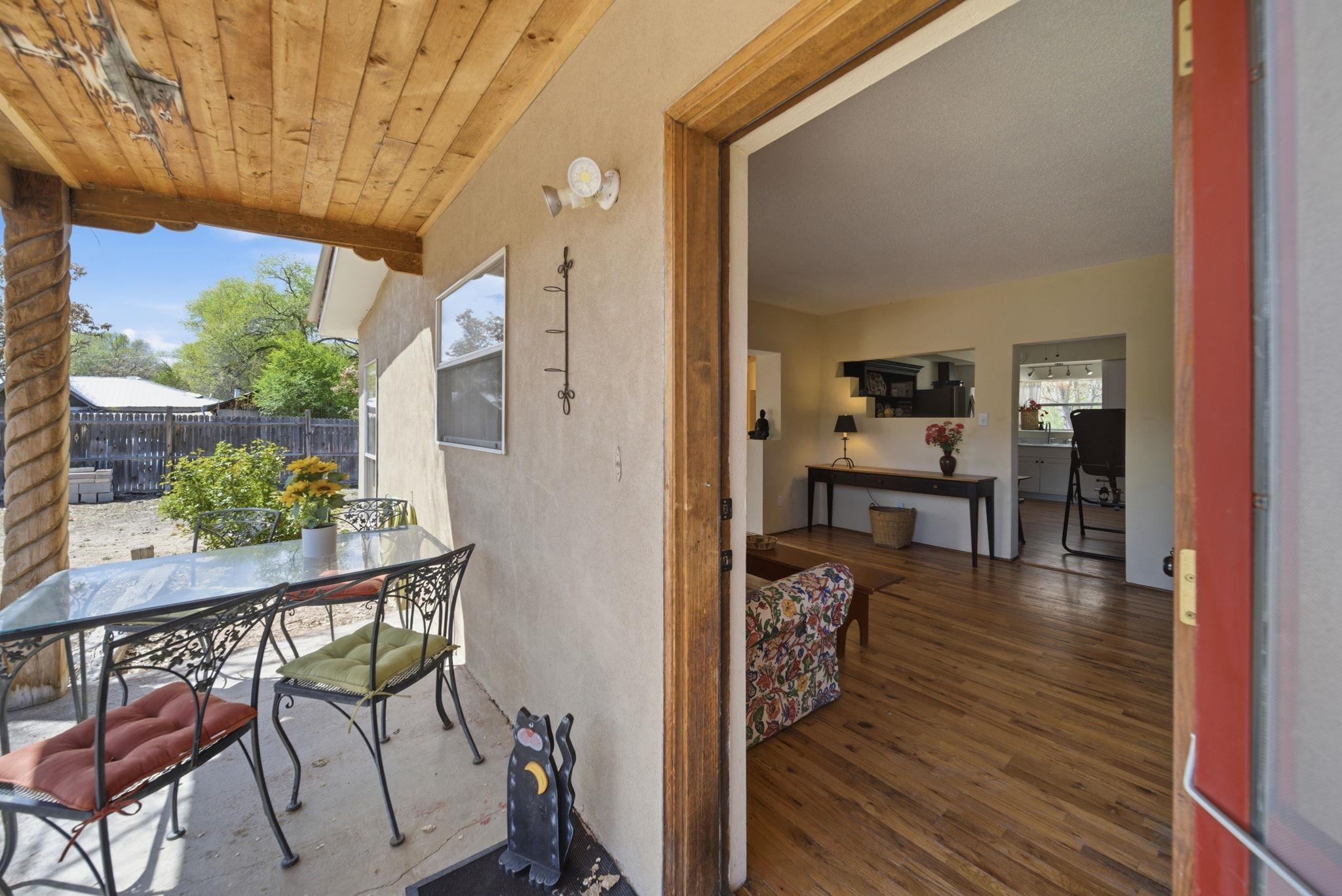 Bienvenidos! Welcome to your perfect high-desert sanctuary right here in the heart of the Ojo Caliente valley, situated a mere 2.3 miles south of the renowned Ojo Caliente Mineral Springs Resort and Spa. This property presents a rare opportunity to own an immaculately cared-for home resting on a sizable three-quarter-acre lot just down the road from one of the state's most beloved attractions, and many other attractions not much further way. The versatile three-bedroom, two-bathroom residence is ideal for full-time country living, a peaceful part-time getaway, or a highly successful short-term rental in a highly sought-after neighborhood with limited housing options. Adding to its incredible adaptability, the home's layout provides the distinct potential to be split into two separate units, offering a fantastic opportunity to maximize dual rental income or comfortably host extended family. Families will also appreciate the location, which boasts convenient access to many great options for schools in the surrounding community to suit every educational need with fantastic schools. Inside, gorgeous, newly refinished hardwood floors flow beautifully throughout the home, complementing two recently redone bathrooms and a bright, spacious sunroom off the main living area that includes a convenient attached home office with plenty of natural sunlight and warmth from the solar passive; the wood stove is also a nice touch which keeps the home comfortable in the winter. Some photos have been virtually staged to spark creativity. Outside, the expansive yard serves as a wonderful blank canvas featuring a sizable storage shed, ample room for gardening, and a separately fenced, gated area ideal for livestock or building an additional rental structure. Imagine ending your day in absolute tranquility, sitting around a cozy firepit with the family under a sweeping, star-filled high-desert sky. Set back from the highway for ultimate privacy yet offering incredibly convenient access, the property is surrounded by rich valley land, dramatic cliffside mesas, and ancient cottonwoods lining the historic acequias. From this idyllic home base, enjoy an easy commute to Española and Santa Fe for exceptional shopping and dining, along with an ideal, highly convenient route for professionals commuting to Los Alamos National Laboratory. For weekend recreation, take a scenic trip through the Carson National Forest to Taos for premier skiing, Rio Grande river adventures, and exploring the Taos Plaza, or make a quick journey in the other direction to tranquil Hopewell Lake for excellent fishing and spotting wild horses in the nearby alpine meadows. Blending timeless natural beauty with unbeatable versatility, this truly couldn't be a more perfect place to call your own in the Land of Enchantment.