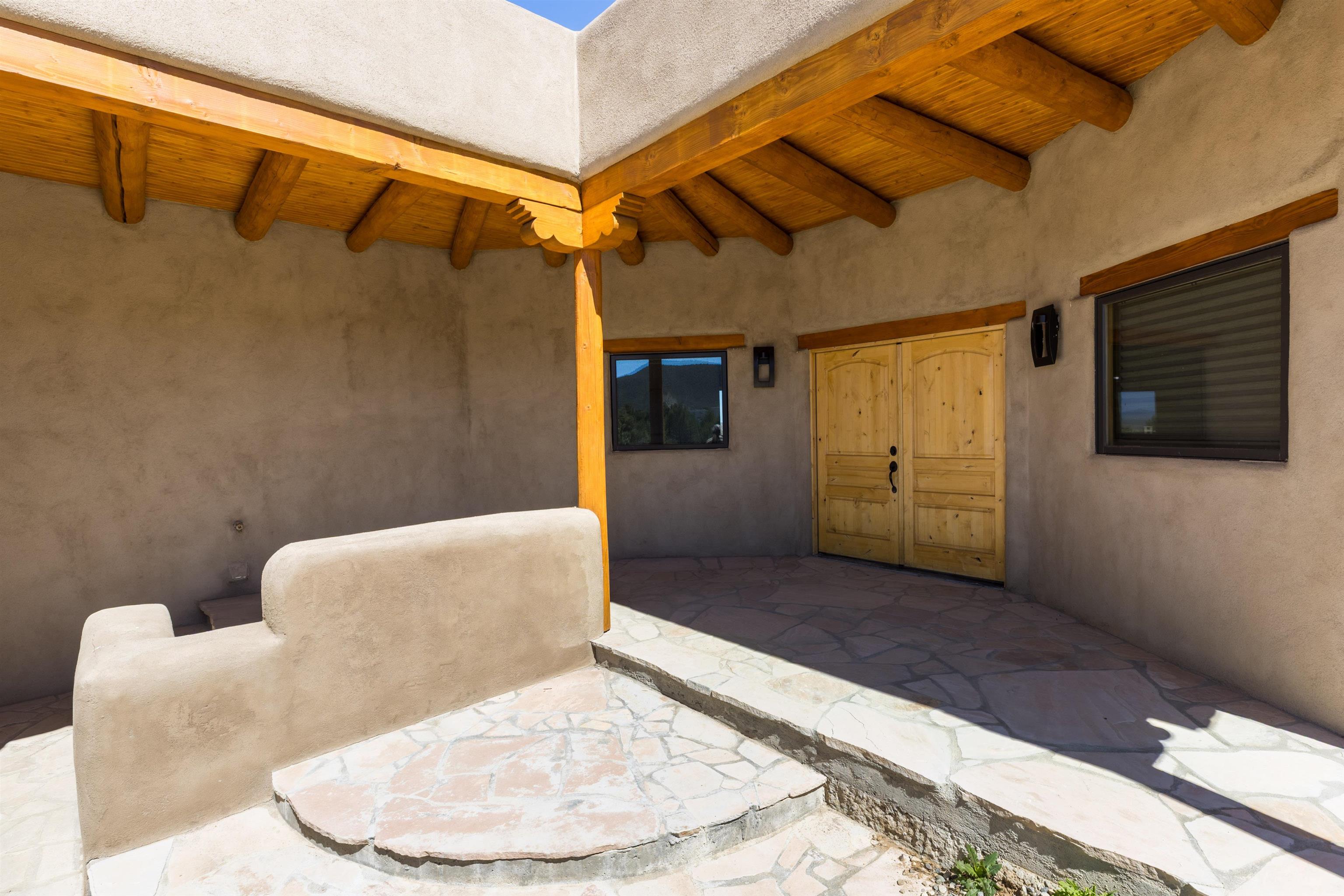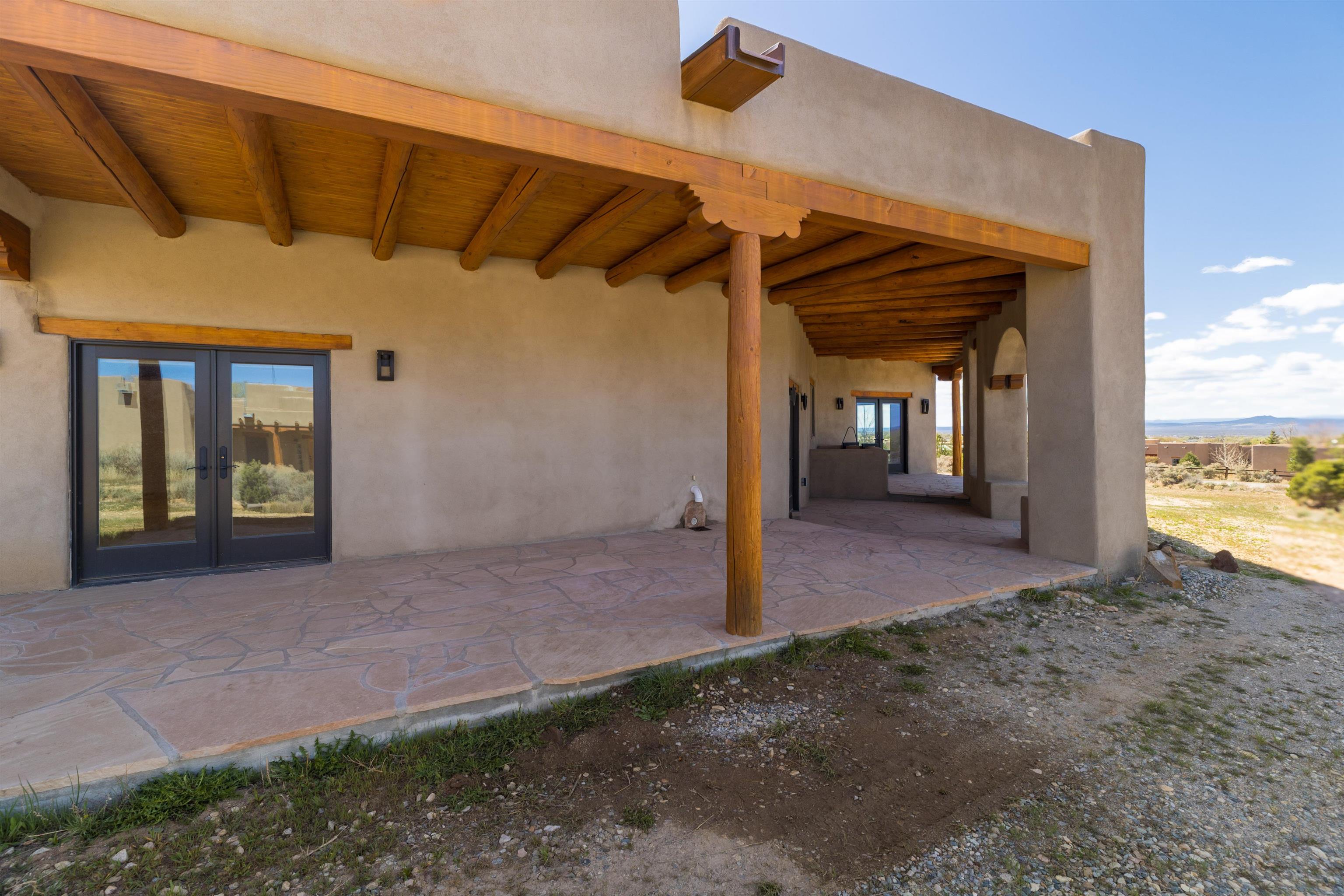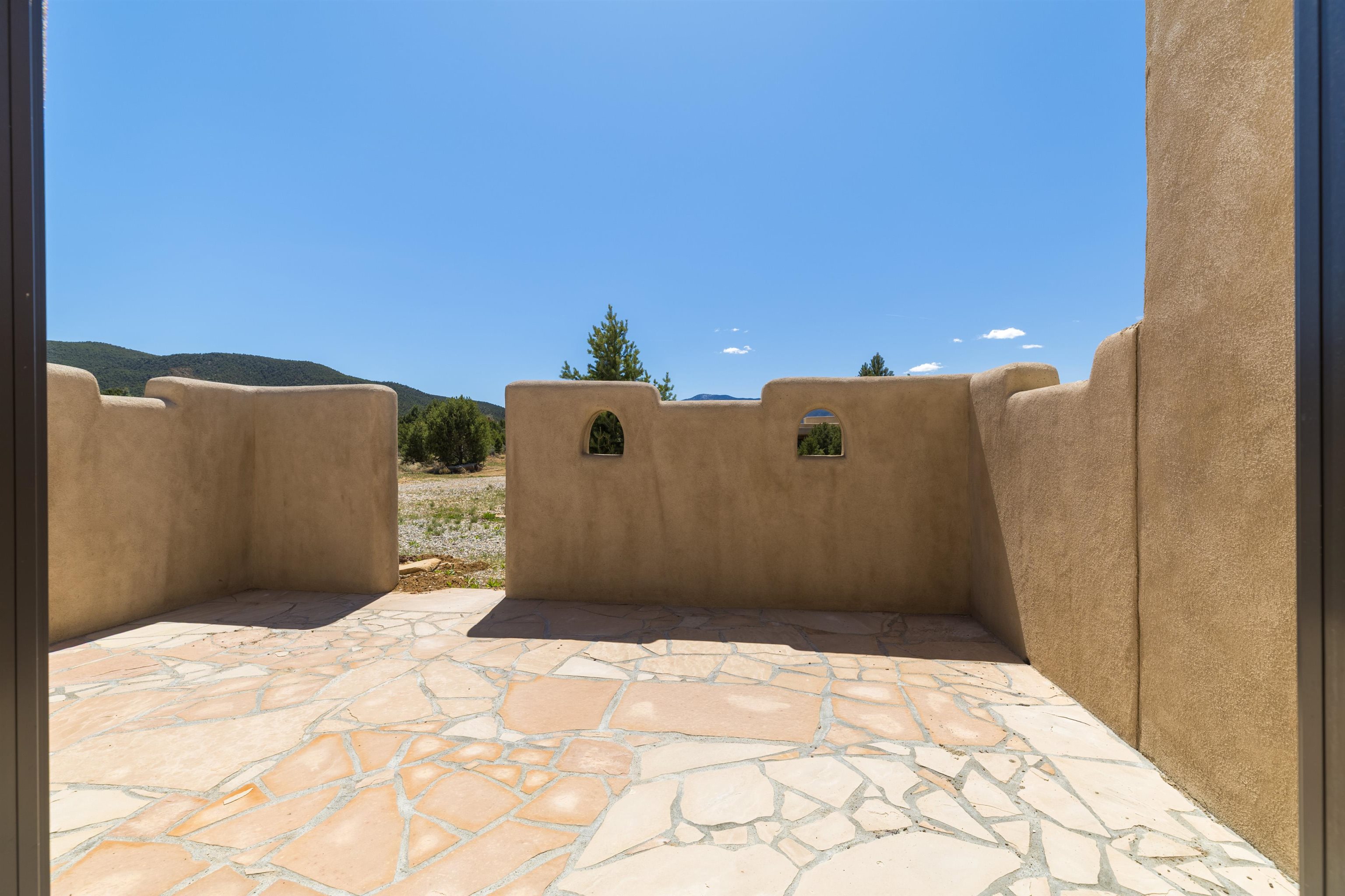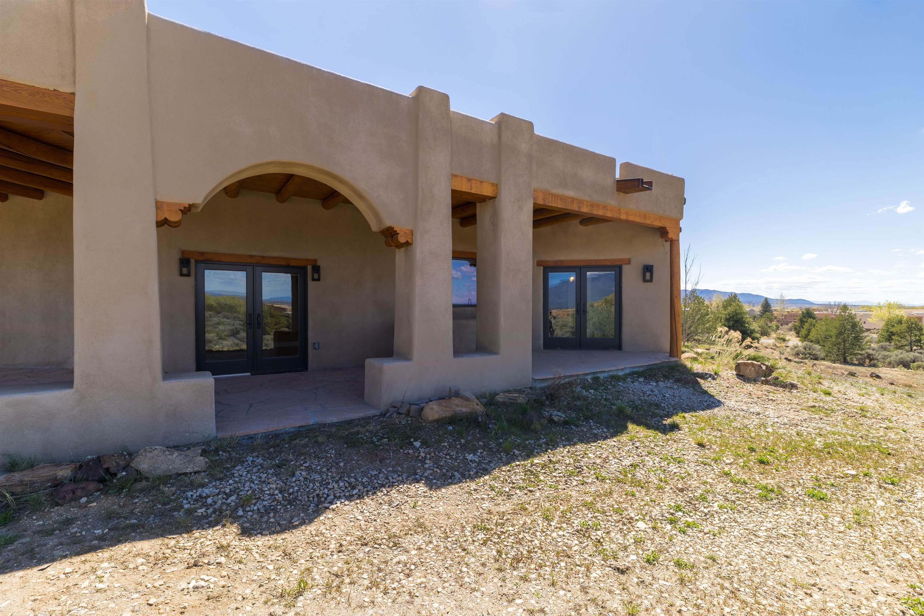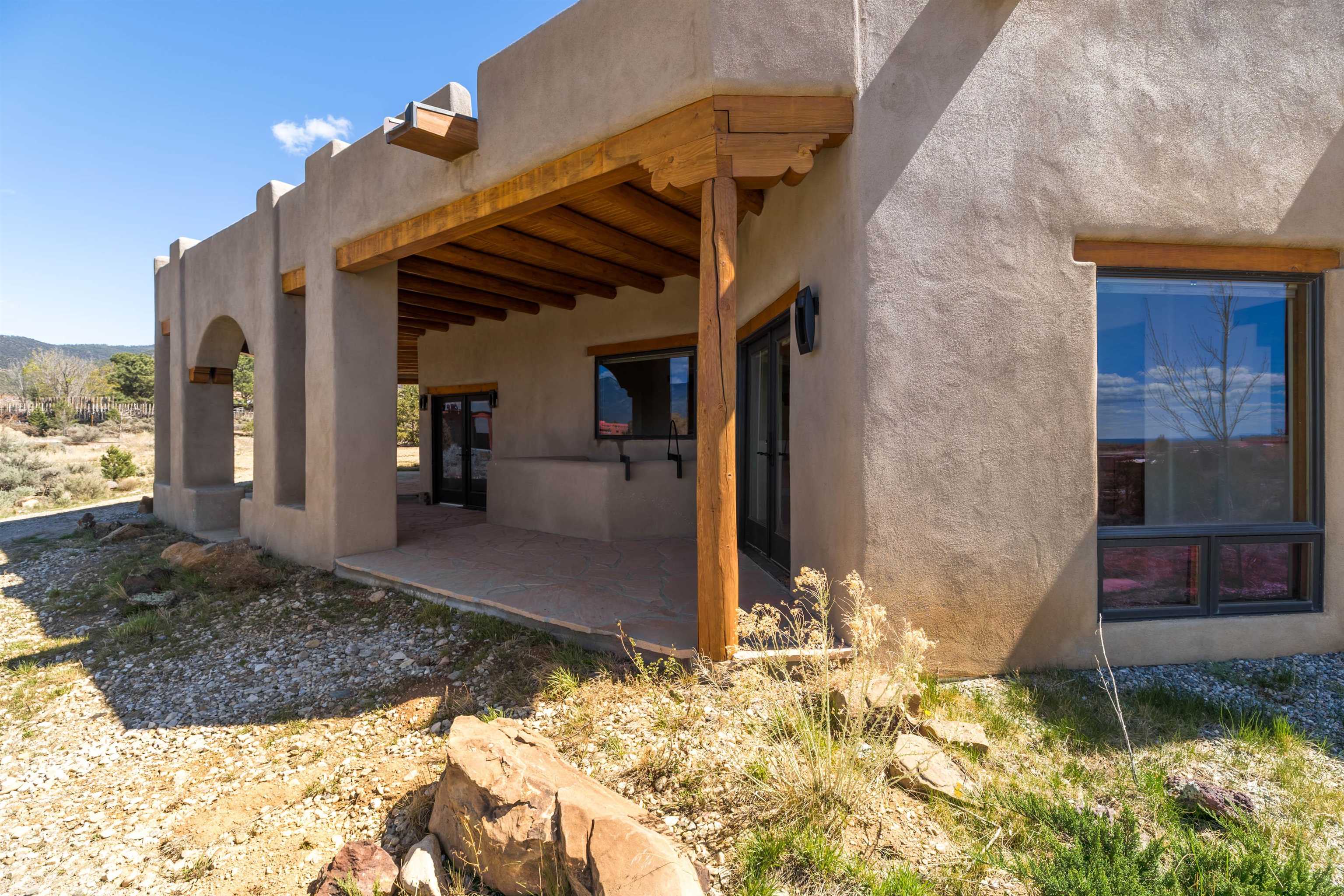 Welcome to your brand-new sanctuary blending authentic Southwestern design with refined modern touches at 1411 Maestas Road, a never-lived-in custom home set on a one-acre lot in the coveted Weimer neighborhood, offering immediate access to healthcare, shopping, and daily essentials while still feeling peacefully private. From the moment you step inside, you’ll feel the quality and care poured into every detail. Travertine natural stone flooring runs throughout the home, paired with rich oak hardwood floors in the great room and stunning viga and tongue-and-groove ceilings, hand-carved corbels, and custom wrought-iron railings that bring timeless Taos character to life. Radiant in-floor heating with three separate zones keeps the home cozy year-round with effortless efficiency. The kitchen invites connection and conversation with its open floor plan design, complete with quality finishes, stainless steel appliances, a gas cooktop, breakfast nook, full dining area, beautiful views, and a generous walk-in pantry for easy everyday living. With blinds already installed, this home is truly move-in ready. Thoughtfully designed with both beauty and flexibility in mind, the home offers two bedrooms, two full baths, and two half baths, along with a versatile flex space that can function as a home office or an additional bedroom depending on your needs. An oversized laundry room with front-load washer and dryer and a finished basement entertainment space with egress and a half bath provide additional comfort and adaptability…ideal for guests, movie nights, or a creative studio. Both bedrooms feature direct outdoor access. The primary suite is a peaceful retreat with a private courtyard, a travertine walk-in shower, an oversized soaking tub, and a spacious walk-in closet. Step outside and take in sweeping Taos Mountain views from the wraparound flagstone patio, offering multiple spaces to relax, dine, or entertain while enjoying the natural surroundings. An attached two-car garage adds everyday convenience. The Dos Arroyos Walking Trail is just down the driveway and offers scenic mountain views perfect for a short walk or hike. Ideally located just minutes from town amenities, approximately 5 miles from Taos Plaza and 30 miles from Taos Ski Valley. A home where timeless Taos design meets modern luxury, ready to welcome its very first owner.