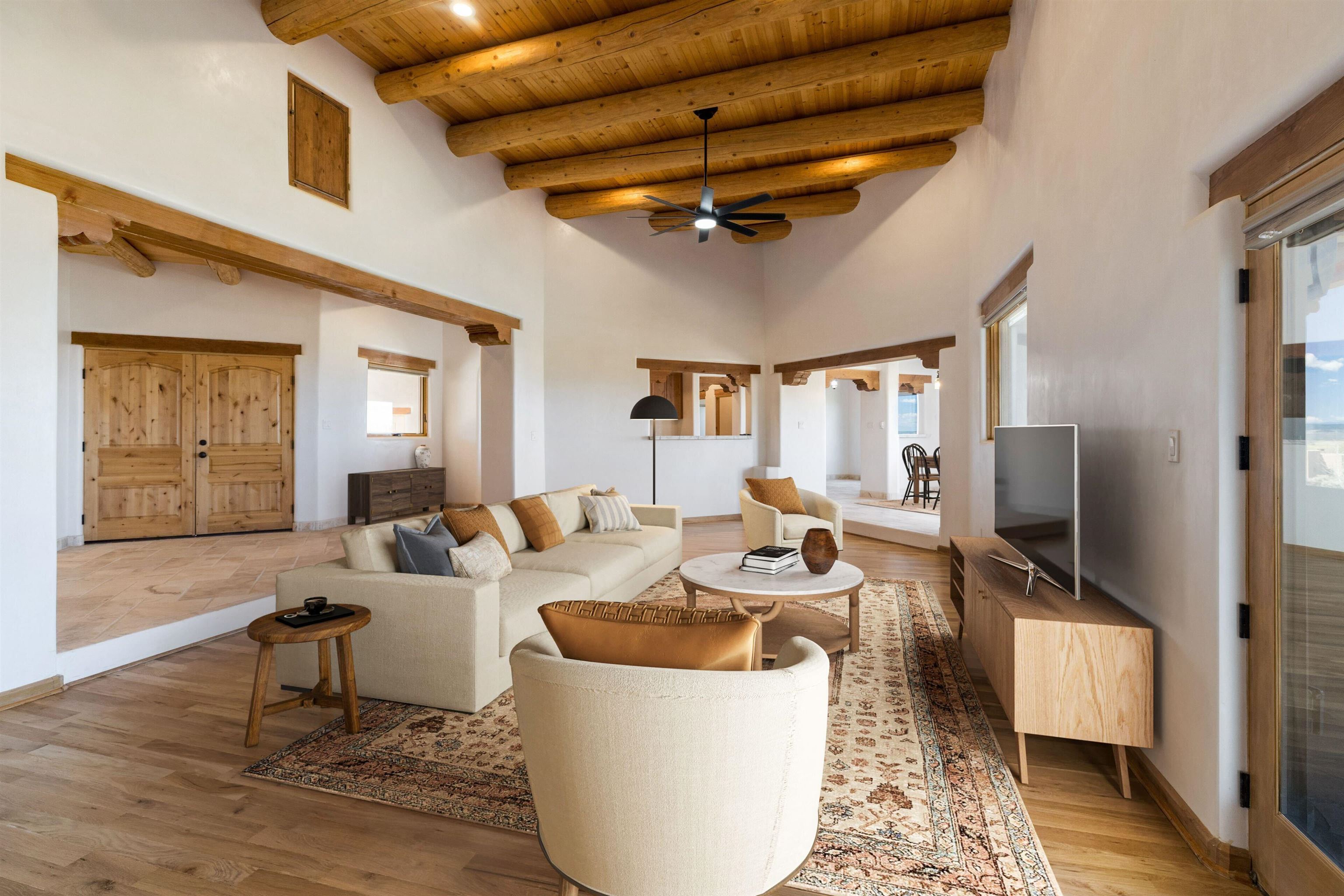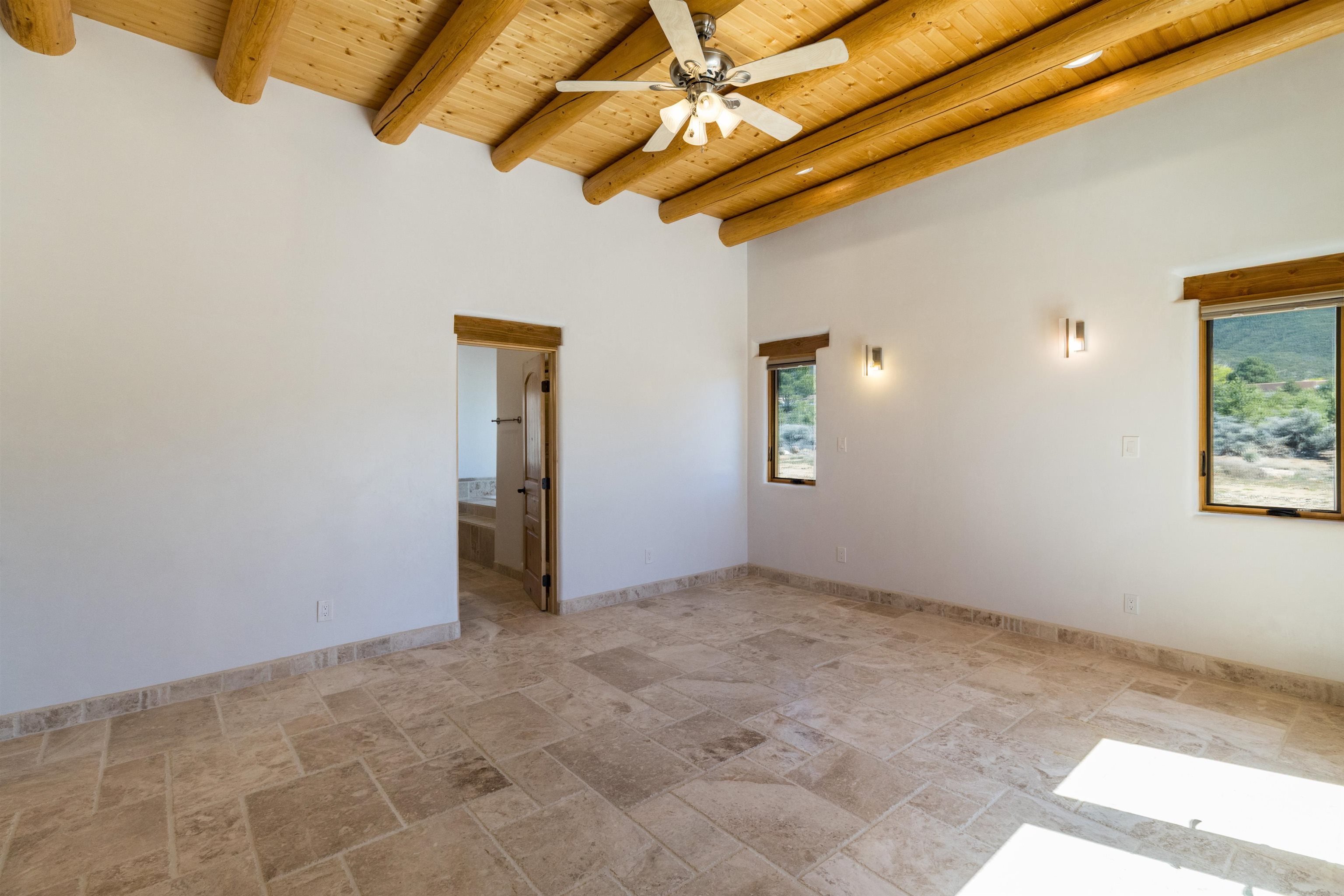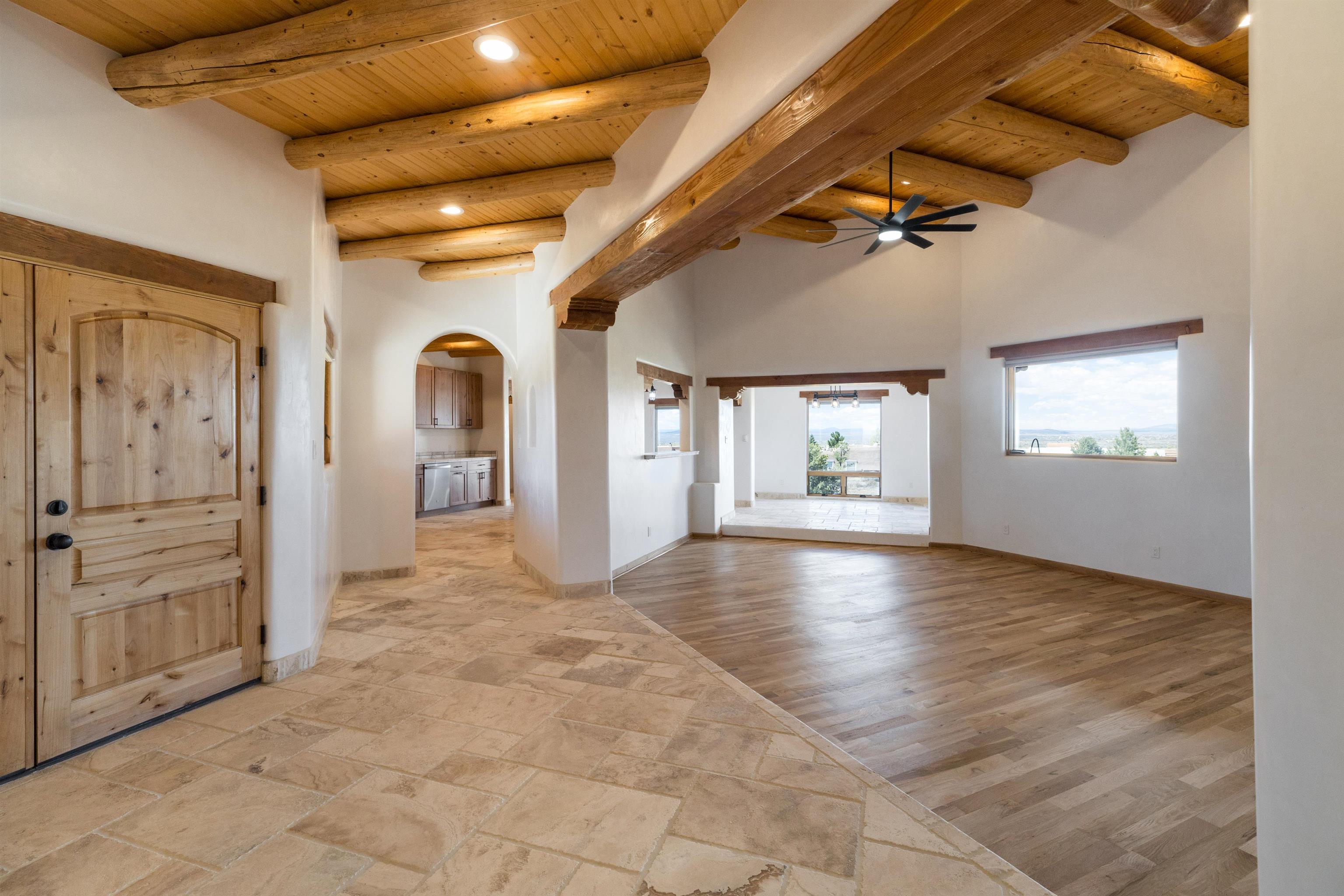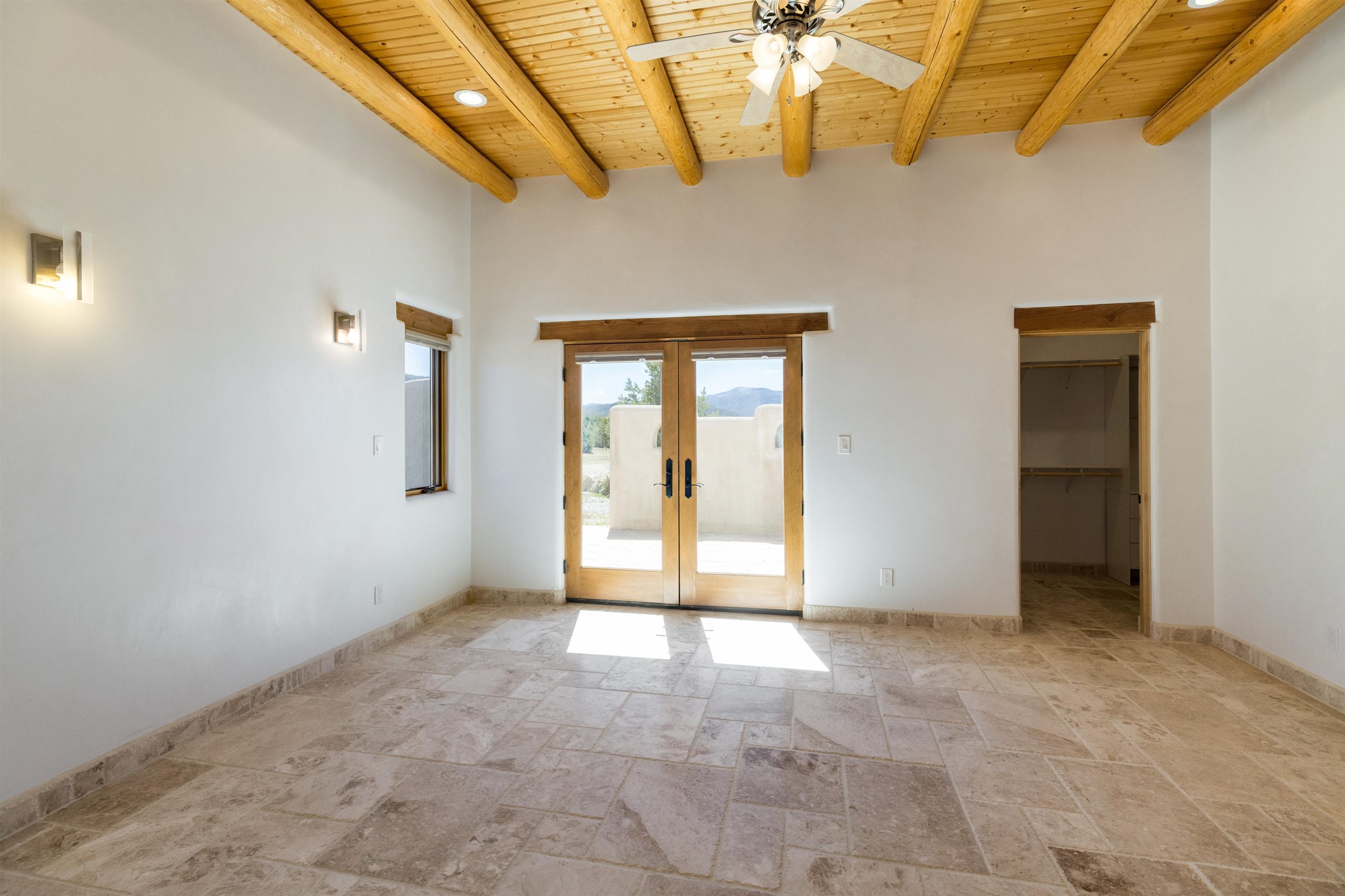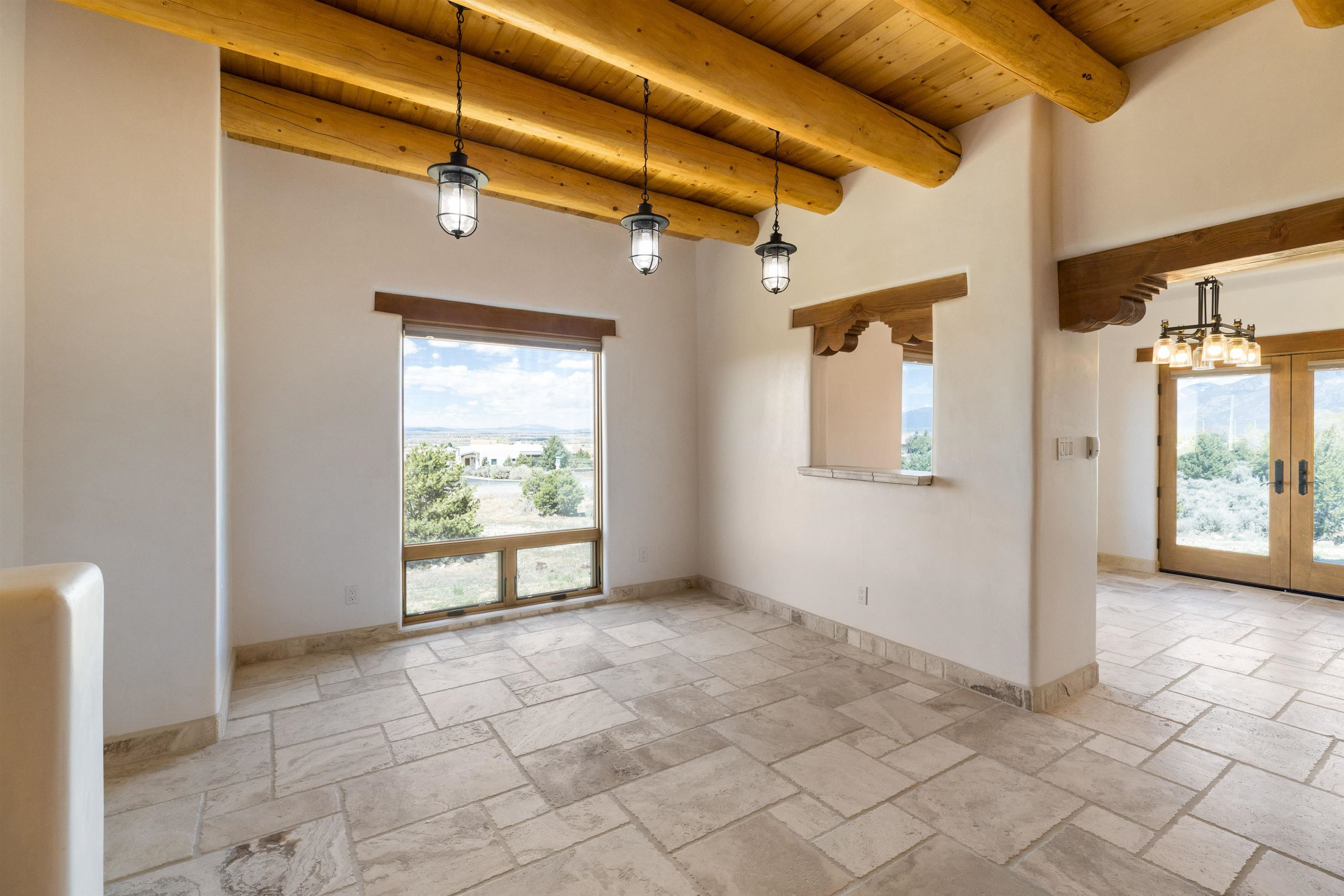 Welcome to your brand-new sanctuary blending authentic Southwestern design with refined modern touches at 1411 Maestas Road, a never-lived-in custom home set on a one-acre lot in the coveted Weimer neighborhood, offering immediate access to healthcare, shopping, and daily essentials while still feeling peacefully private. From the moment you step inside, you’ll feel the quality and care poured into every detail. Travertine natural stone flooring runs throughout the home, paired with rich oak hardwood floors in the great room and stunning viga and tongue-and-groove ceilings, hand-carved corbels, and custom wrought-iron railings that bring timeless Taos character to life. Radiant in-floor heating with three separate zones keeps the home cozy year-round with effortless efficiency. The kitchen invites connection and conversation with its open floor plan design, complete with quality finishes, stainless steel appliances, a gas cooktop, breakfast nook, full dining area, beautiful views, and a generous walk-in pantry for easy everyday living. With blinds already installed, this home is truly move-in ready. Thoughtfully designed with both beauty and flexibility in mind, the home offers two bedrooms, two full baths, and two half baths, along with a versatile flex space that can function as a home office or an additional bedroom depending on your needs. An oversized laundry room with front-load washer and dryer and a finished basement entertainment space with egress and a half bath provide additional comfort and adaptability…ideal for guests, movie nights, or a creative studio. Both bedrooms feature direct outdoor access. The primary suite is a peaceful retreat with a private courtyard, a travertine walk-in shower, an oversized soaking tub, and a spacious walk-in closet. Step outside and take in sweeping Taos Mountain views from the wraparound flagstone patio, offering multiple spaces to relax, dine, or entertain while enjoying the natural surroundings. An attached two-car garage adds everyday convenience. The Dos Arroyos Walking Trail is just down the driveway and offers scenic mountain views perfect for a short walk or hike. Ideally located just minutes from town amenities, approximately 5 miles from Taos Plaza and 30 miles from Taos Ski Valley. A home where timeless Taos design meets modern luxury, ready to welcome its very first owner.