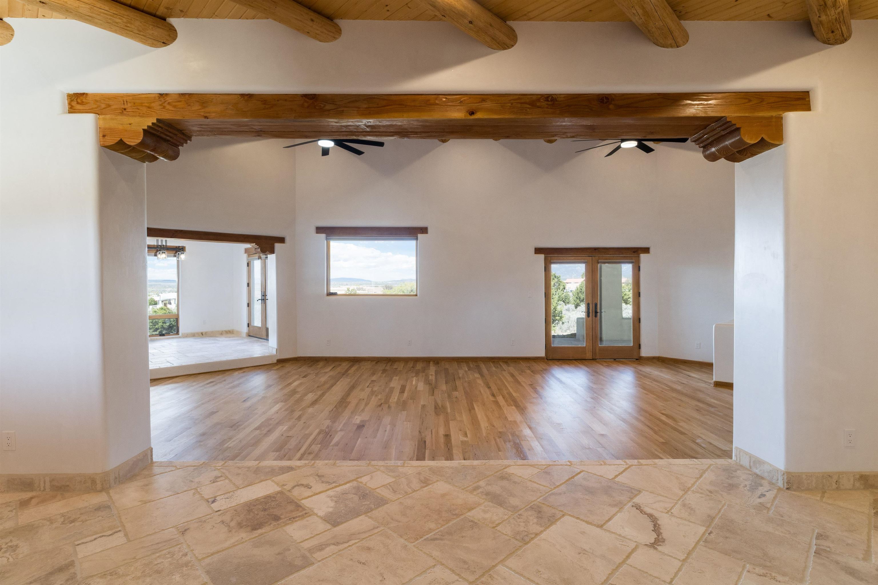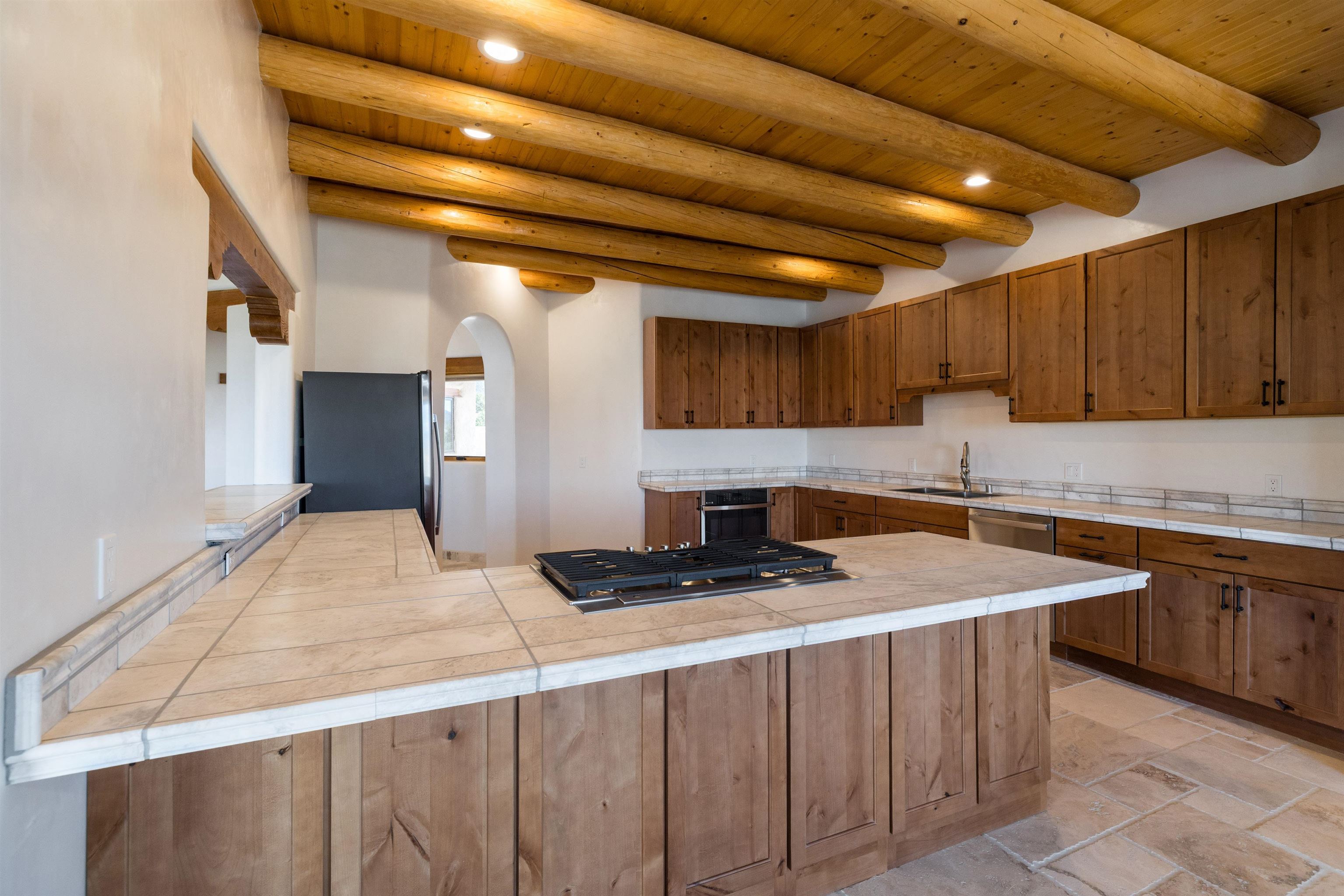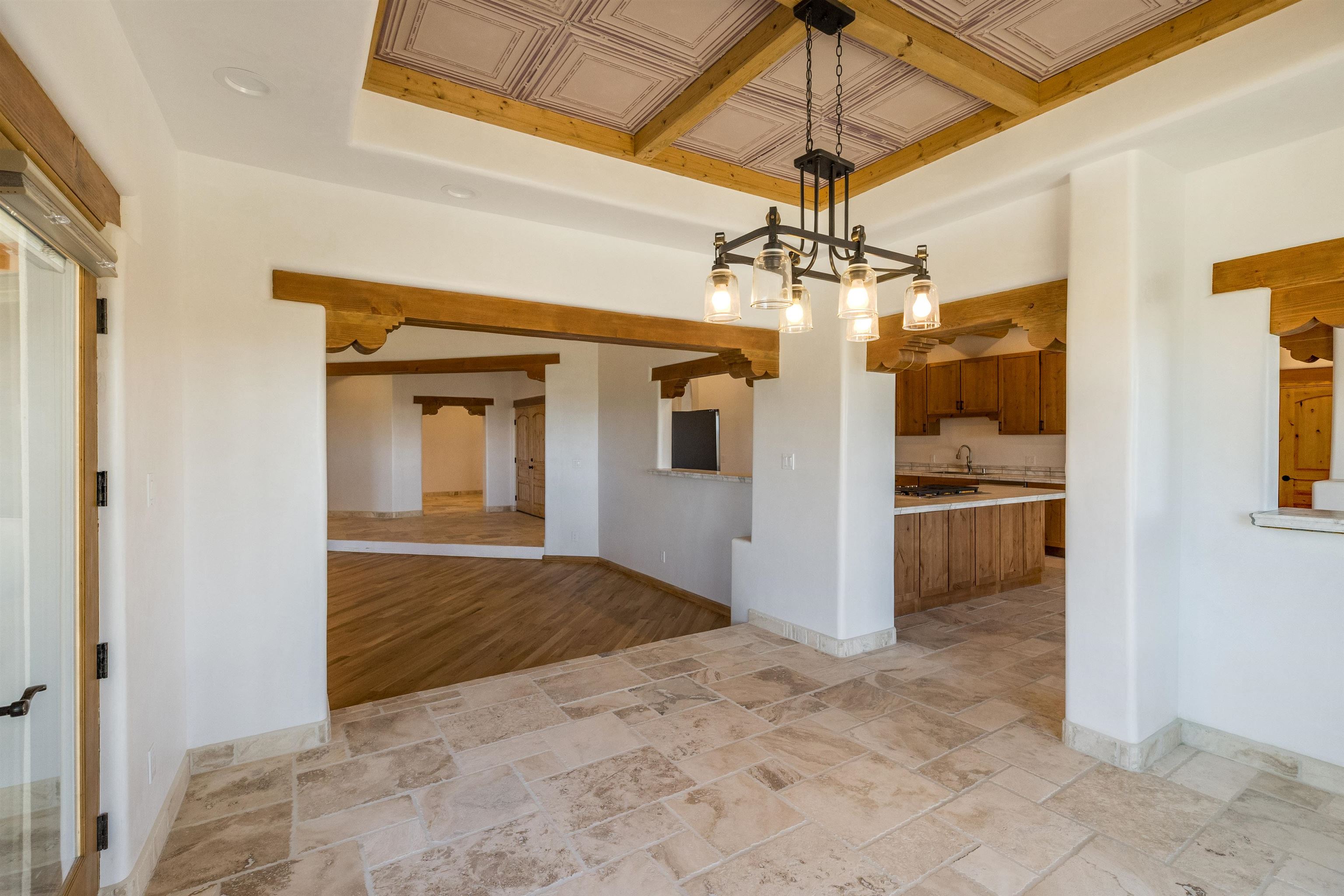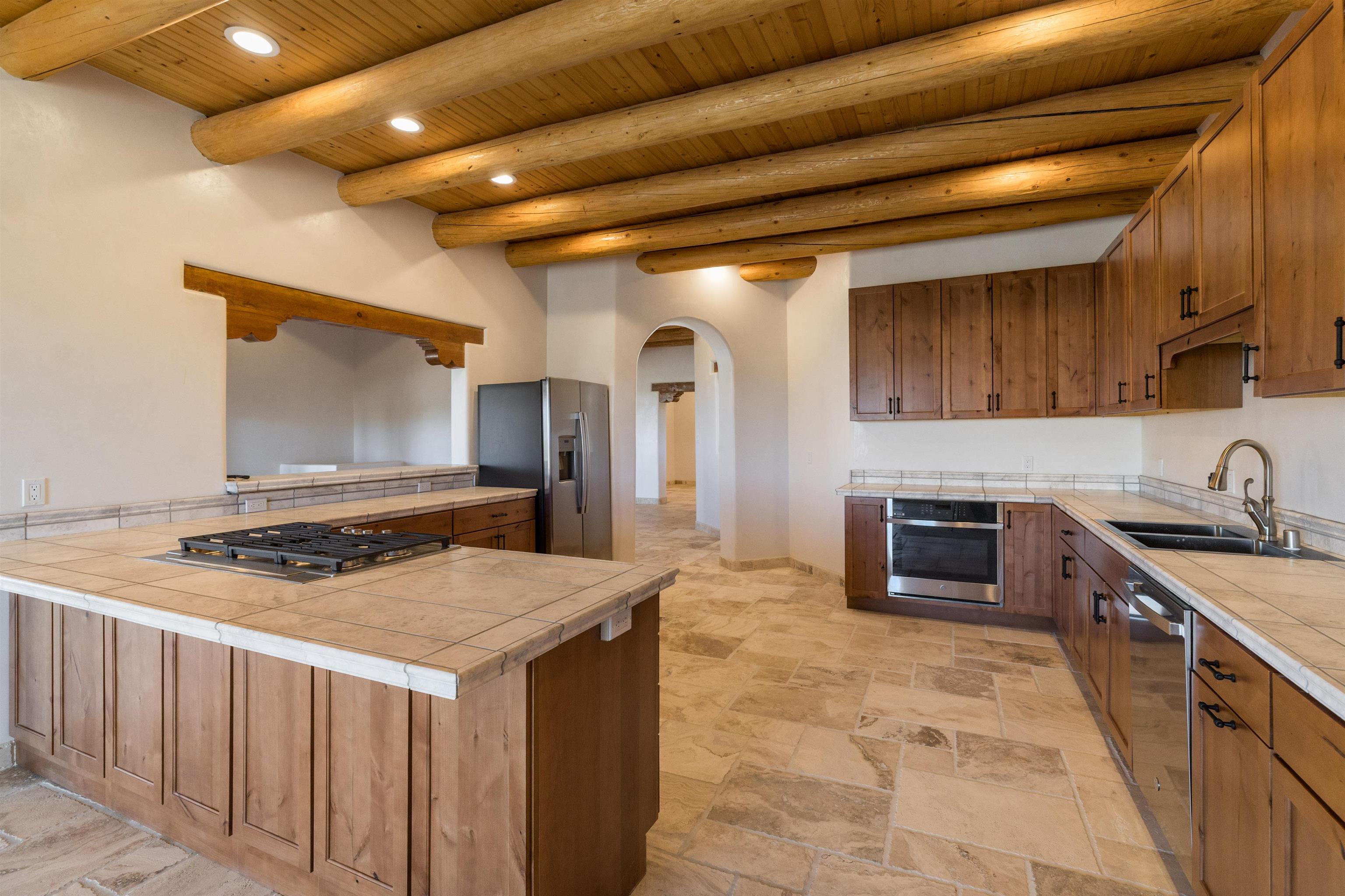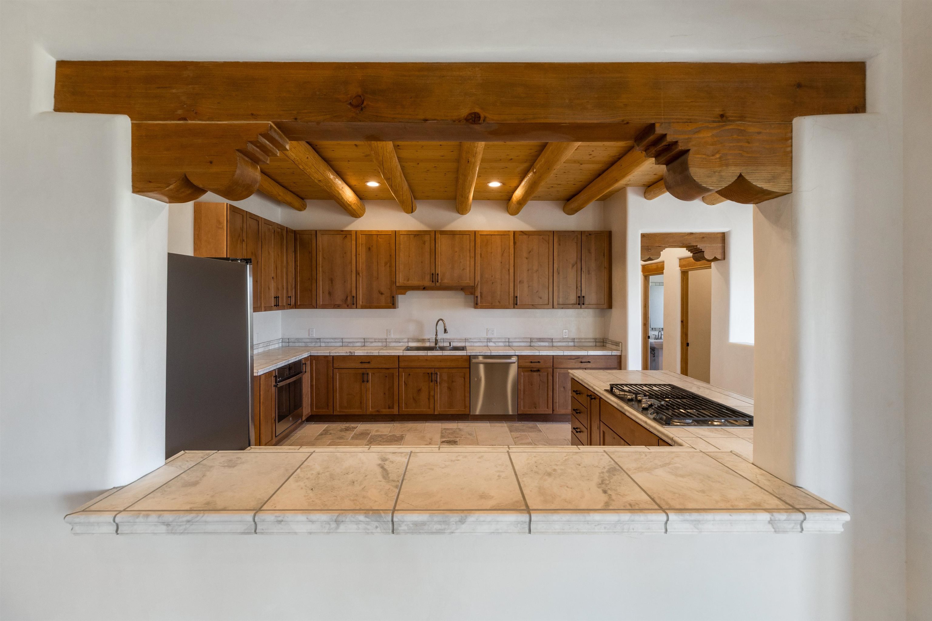 Welcome to your brand-new sanctuary blending authentic Southwestern design with refined modern touches at 1411 Maestas Road, a never-lived-in custom home set on a one-acre lot in the coveted Weimer neighborhood, offering immediate access to healthcare, shopping, and daily essentials while still feeling peacefully private. From the moment you step inside, you’ll feel the quality and care poured into every detail. Travertine natural stone flooring runs throughout the home, paired with rich oak hardwood floors in the great room and stunning viga and tongue-and-groove ceilings, hand-carved corbels, and custom wrought-iron railings that bring timeless Taos character to life. Radiant in-floor heating with three separate zones keeps the home cozy year-round with effortless efficiency. The kitchen invites connection and conversation with its open floor plan design, complete with quality finishes, stainless steel appliances, a gas cooktop, breakfast nook, full dining area, beautiful views, and a generous walk-in pantry for easy everyday living. With blinds already installed, this home is truly move-in ready. Thoughtfully designed with both beauty and flexibility in mind, the home offers two bedrooms, two full baths, and two half baths, along with a versatile flex space that can function as a home office or an additional bedroom depending on your needs. An oversized laundry room with front-load washer and dryer and a finished basement entertainment space with egress and a half bath provide additional comfort and adaptability…ideal for guests, movie nights, or a creative studio. Both bedrooms feature direct outdoor access. The primary suite is a peaceful retreat with a private courtyard, a travertine walk-in shower, an oversized soaking tub, and a spacious walk-in closet. Step outside and take in sweeping Taos Mountain views from the wraparound flagstone patio, offering multiple spaces to relax, dine, or entertain while enjoying the natural surroundings. An attached two-car garage adds everyday convenience. The Dos Arroyos Walking Trail is just down the driveway and offers scenic mountain views perfect for a short walk or hike. Ideally located just minutes from town amenities, approximately 5 miles from Taos Plaza and 30 miles from Taos Ski Valley. A home where timeless Taos design meets modern luxury, ready to welcome its very first owner.